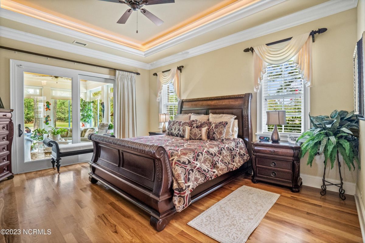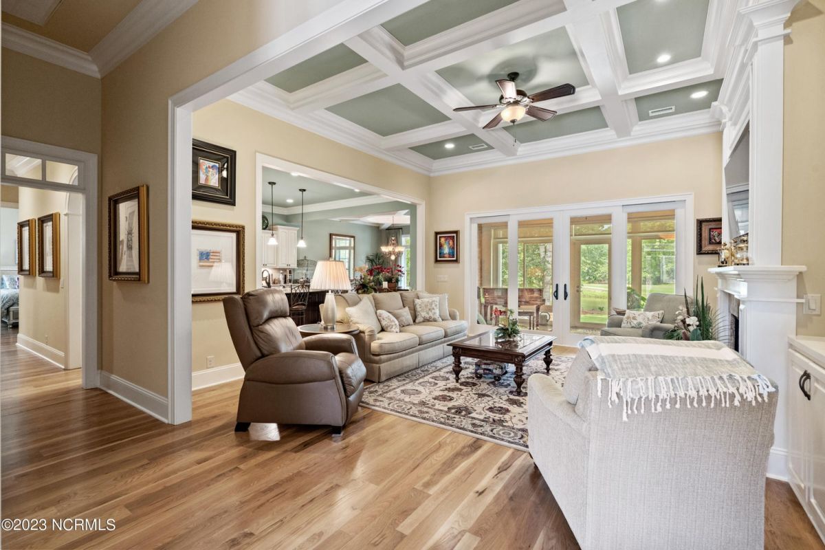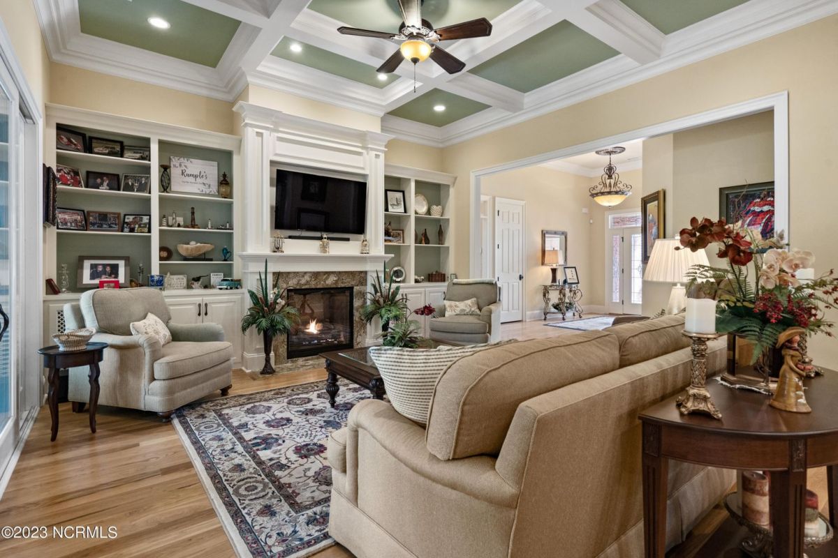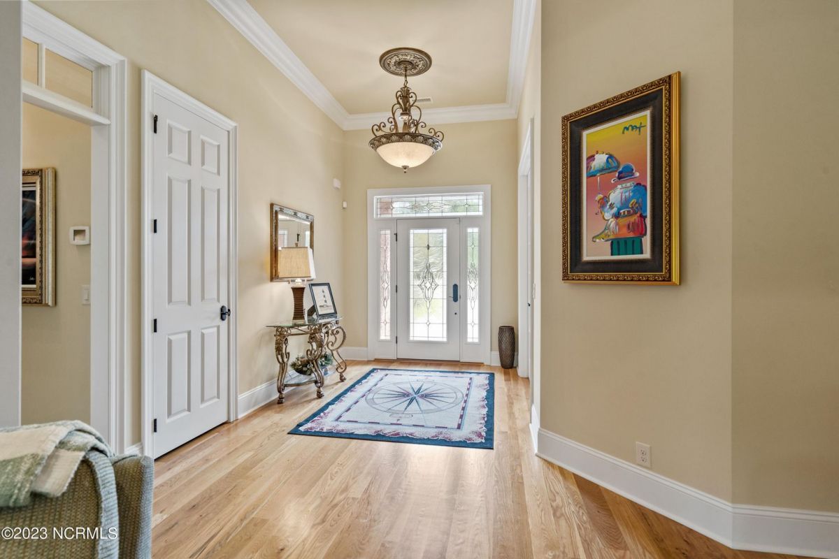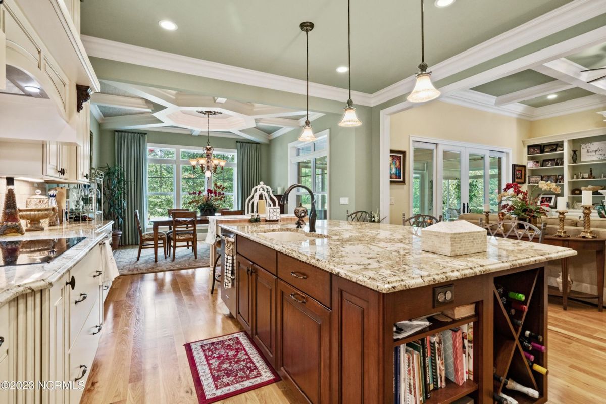 Step into luxury as you enter this gorgeous brick home with all of the upgrades in the prestigious Ocean Ridge Plantation in Ocean Isle Beach, NC. This immaculate, low maintenance home features an open and split plan with 4 bedrooms and 3 full bathrooms, plus an office/flex space and formal dining room. The primary bedroom is on the first floor along with the office/flex space, and two other bedrooms. Enjoy pond views and the 14th fairway of Leopard's Chase Golf Course from the sizeable, enclosed and conditioned sunroom with beautiful tile flooring. The 4th bedroom is a huge bonus room upstairs with a full bathroom and closet. Enhanced features in this home include hardwood floors throughout the first level, an upscale lighting package, exquisite coffered ceilings & crown moulding, an induction drop in cooktop, a double wall oven combo with microwave, above and under counter cabinet lighting in the kitchen, propane heated fireplace, custom tile in the bathrooms, full house ventilation system, instant and tankless hot water heater, central vac, custom pantry and primary bedroom closets, a paver driveway and back patio with fire pit, a new exterior walkway, propane access for your grill, and irrigation system. This home also offers an oversized 2 car garage and a huge walk -in floored attic space, whole house generator, foam insulation and an encapsulated crawl space. You will notice the upscale craftsmanship in this Blue Sky home. Move in ready and situated on a quiet and private cul-de-sac with a nature preserve to the left of the home. Ocean Ridge Plantation is regarded as one of southeastern NC's most luxurious golf and beach communities with top notch amenities that includes lush landscaping, 72 holes of premier golf, clubhouses with restaurants, oceanfront beach club in Sunset Beach, fitness & tennis, indoor & outdoor pools, sauna, walking & nature trails, community gardens, nature parks & pavilions, social clubs and more. Elegant resort living at it's finest!