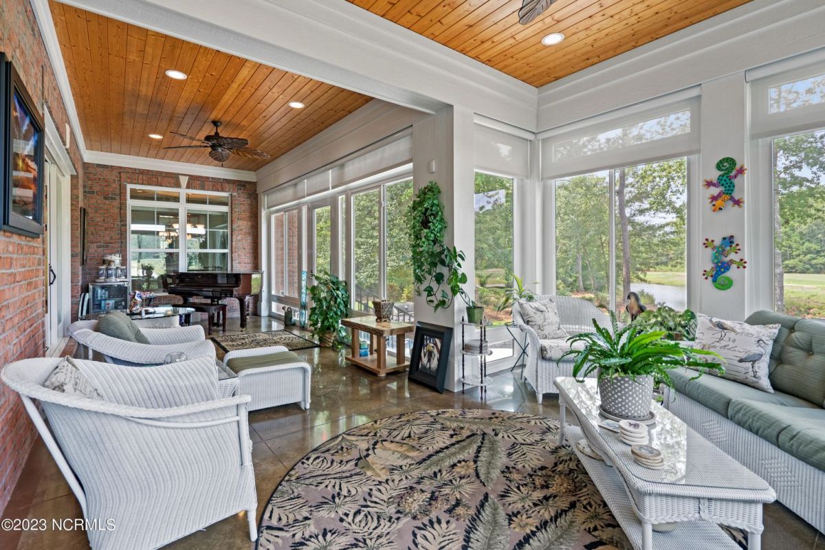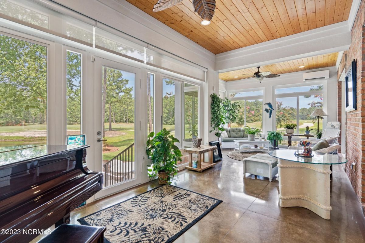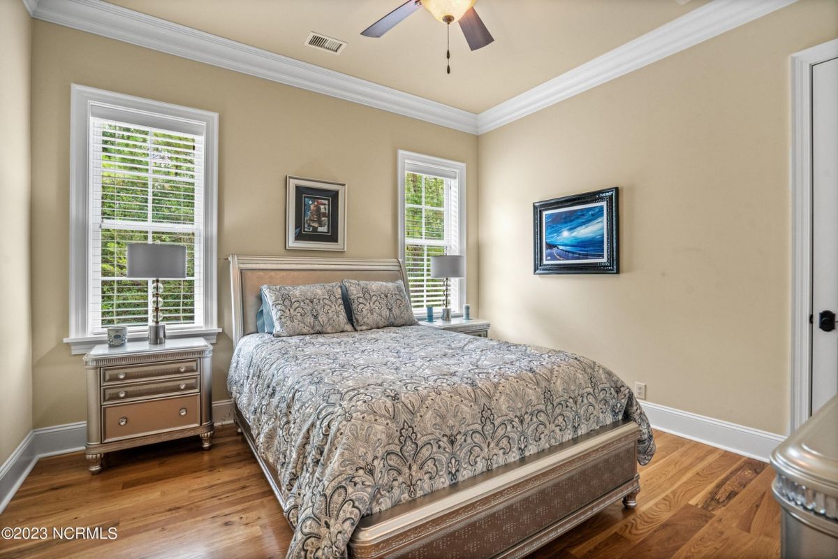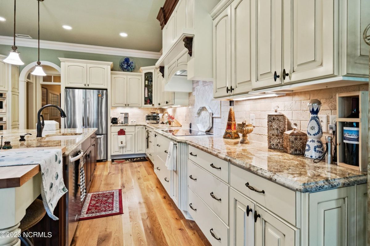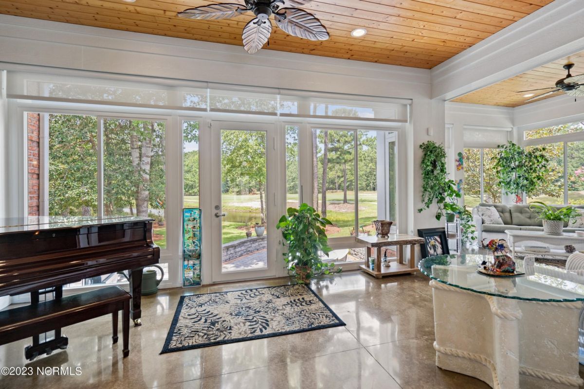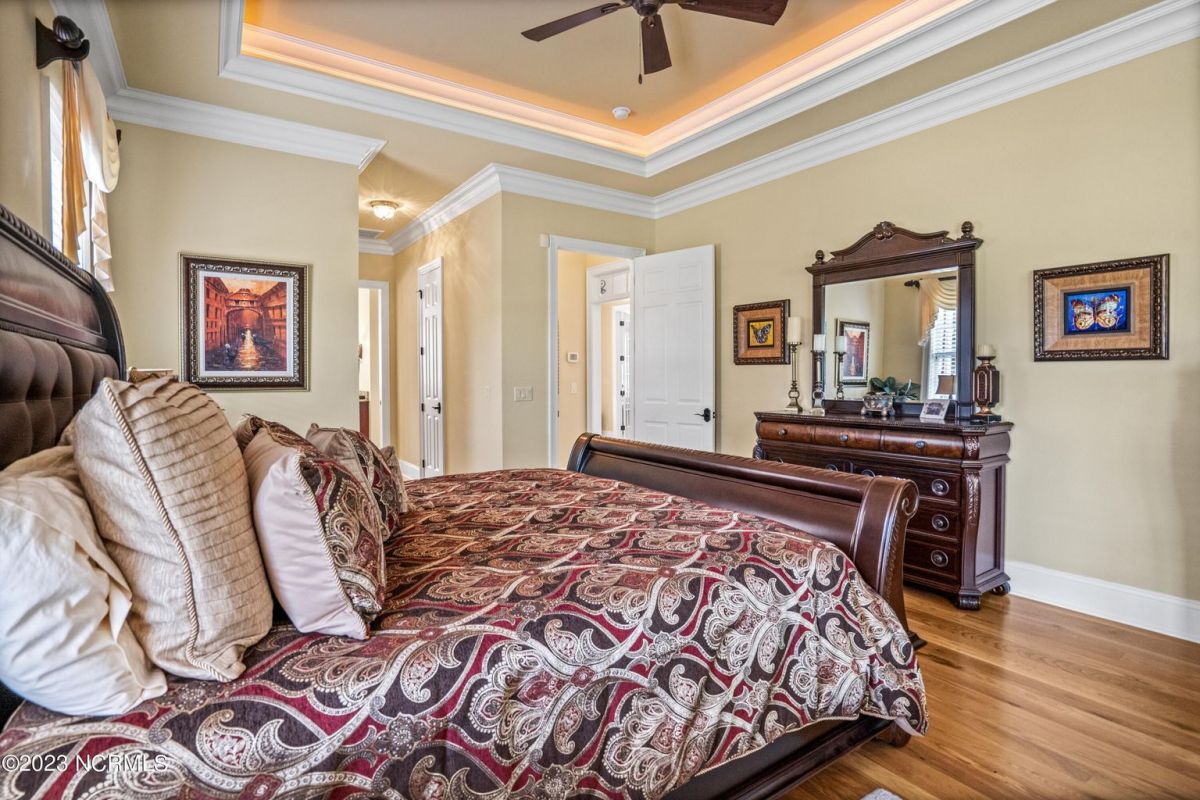 Step into luxury as you enter this gorgeous brick home with all of the upgrades in the prestigious Ocean Ridge Plantation in Ocean Isle Beach, NC. This immaculate, low maintenance home features an open and split plan with 4 bedrooms and 3 full bathrooms, plus an office/flex space and formal dining room. The primary bedroom is on the first floor along with the office/flex space, and two other bedrooms. Enjoy pond views and the 14th fairway of Leopard's Chase Golf Course from the sizeable, enclosed and conditioned sunroom with beautiful tile flooring. The 4th bedroom is a huge bonus room upstairs with a full bathroom and closet. Enhanced features in this home include hardwood floors throughout the first level, an upscale lighting package, exquisite coffered ceilings & crown moulding, an induction drop in cooktop, a double wall oven combo with microwave, above and under counter cabinet lighting in the kitchen, propane heated fireplace, custom tile in the bathrooms, full house ventilation system, instant and tankless hot water heater, central vac, custom pantry and primary bedroom closets, a paver driveway and back patio with fire pit, a new exterior walkway, propane access for your grill, and irrigation system. This home also offers an oversized 2 car garage and a huge walk -in floored attic space, whole house generator, foam insulation and an encapsulated crawl space. You will notice the upscale craftsmanship in this Blue Sky home. Move in ready and situated on a quiet and private cul-de-sac with a nature preserve to the left of the home. Ocean Ridge Plantation is regarded as one of southeastern NC's most luxurious golf and beach communities with top notch amenities that includes lush landscaping, 72 holes of premier golf, clubhouses with restaurants, oceanfront beach club in Sunset Beach, fitness & tennis, indoor & outdoor pools, sauna, walking & nature trails, community gardens, nature parks & pavilions, social clubs and more. Elegant resort living at it's finest!