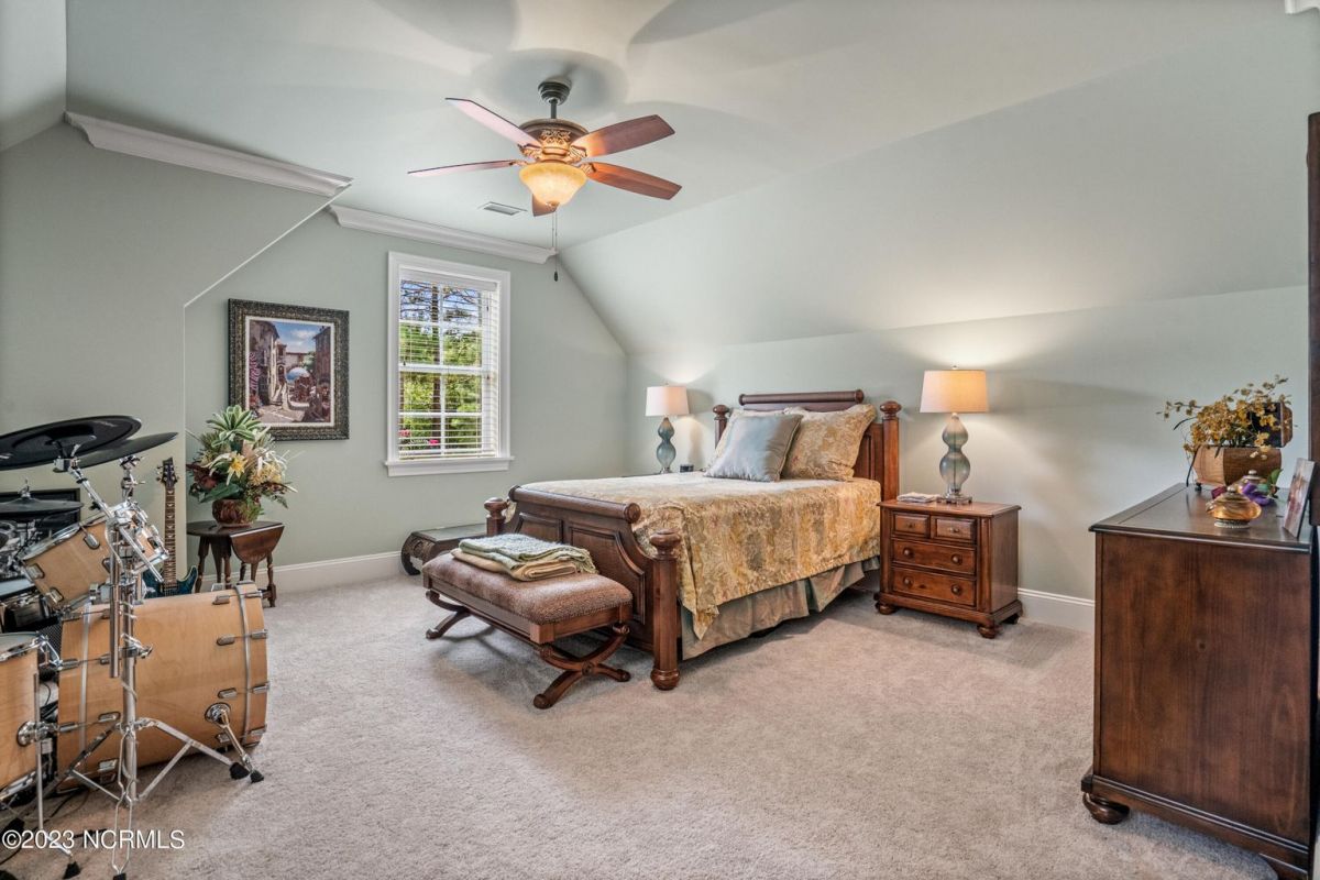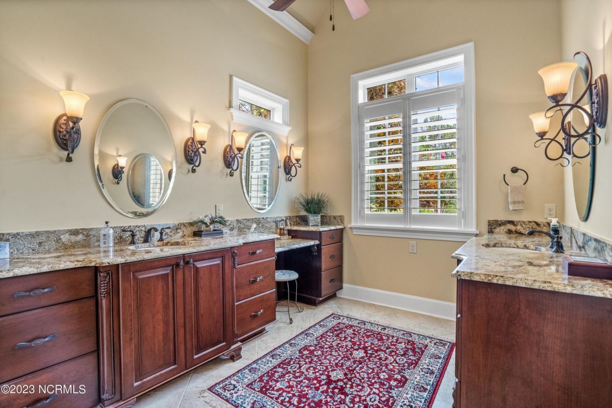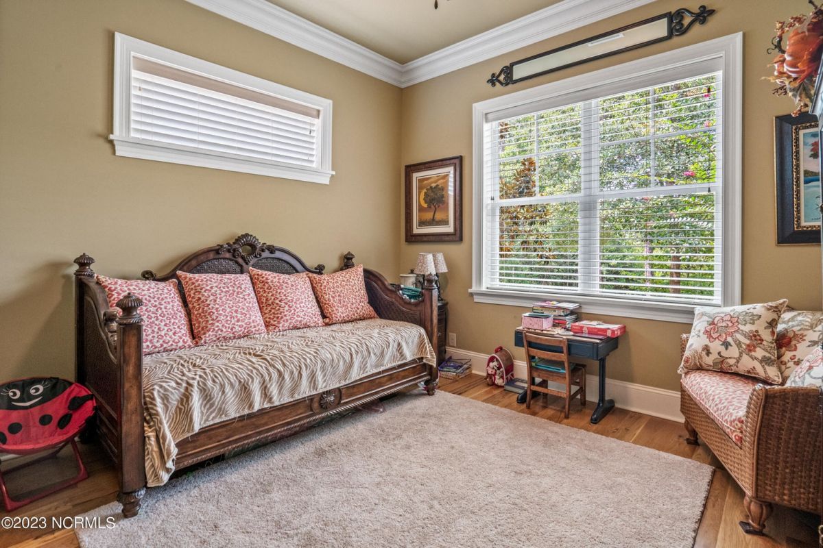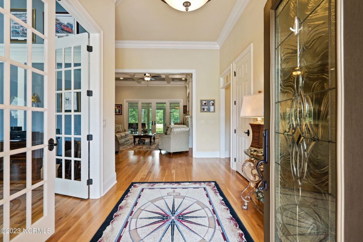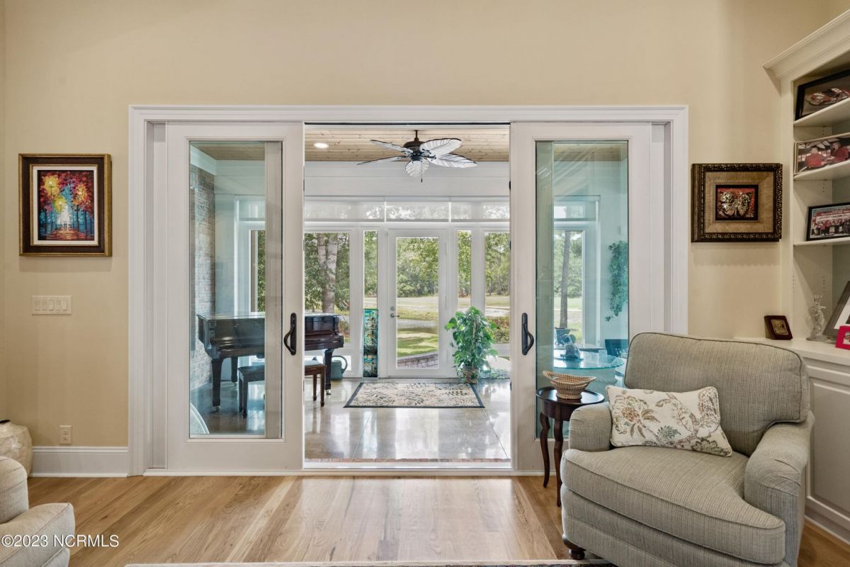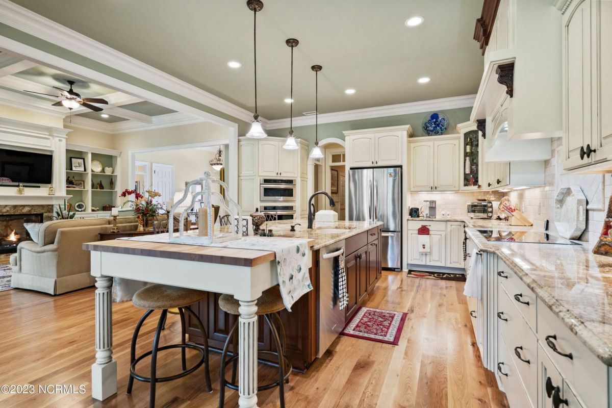 Step into luxury as you enter this gorgeous brick home with all of the upgrades in the prestigious Ocean Ridge Plantation in Ocean Isle Beach, NC. This immaculate, low maintenance home features an open and split plan with 4 bedrooms and 3 full bathrooms, plus an office/flex space and formal dining room. The primary bedroom is on the first floor along with the office/flex space, and two other bedrooms. Enjoy pond views and the 14th fairway of Leopard's Chase Golf Course from the sizeable, enclosed and conditioned sunroom with beautiful tile flooring. The 4th bedroom is a huge bonus room upstairs with a full bathroom and closet. Enhanced features in this home include hardwood floors throughout the first level, an upscale lighting package, exquisite coffered ceilings & crown moulding, an induction drop in cooktop, a double wall oven combo with microwave, above and under counter cabinet lighting in the kitchen, propane heated fireplace, custom tile in the bathrooms, full house ventilation system, instant and tankless hot water heater, central vac, custom pantry and primary bedroom closets, a paver driveway and back patio with fire pit, a new exterior walkway, propane access for your grill, and irrigation system. This home also offers an oversized 2 car garage and a huge walk -in floored attic space, whole house generator, foam insulation and an encapsulated crawl space. You will notice the upscale craftsmanship in this Blue Sky home. Move in ready and situated on a quiet and private cul-de-sac with a nature preserve to the left of the home. Ocean Ridge Plantation is regarded as one of southeastern NC's most luxurious golf and beach communities with top notch amenities that includes lush landscaping, 72 holes of premier golf, clubhouses with restaurants, oceanfront beach club in Sunset Beach, fitness & tennis, indoor & outdoor pools, sauna, walking & nature trails, community gardens, nature parks & pavilions, social clubs and more. Elegant resort living at it's finest!