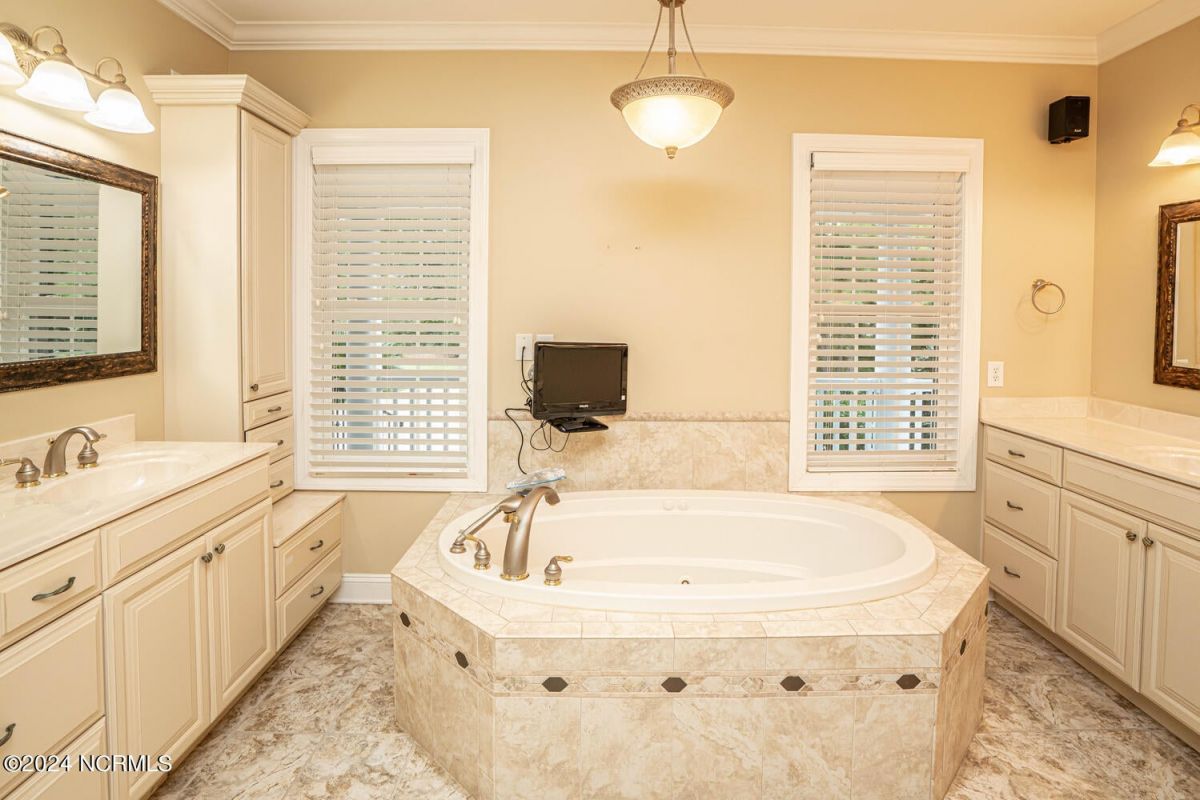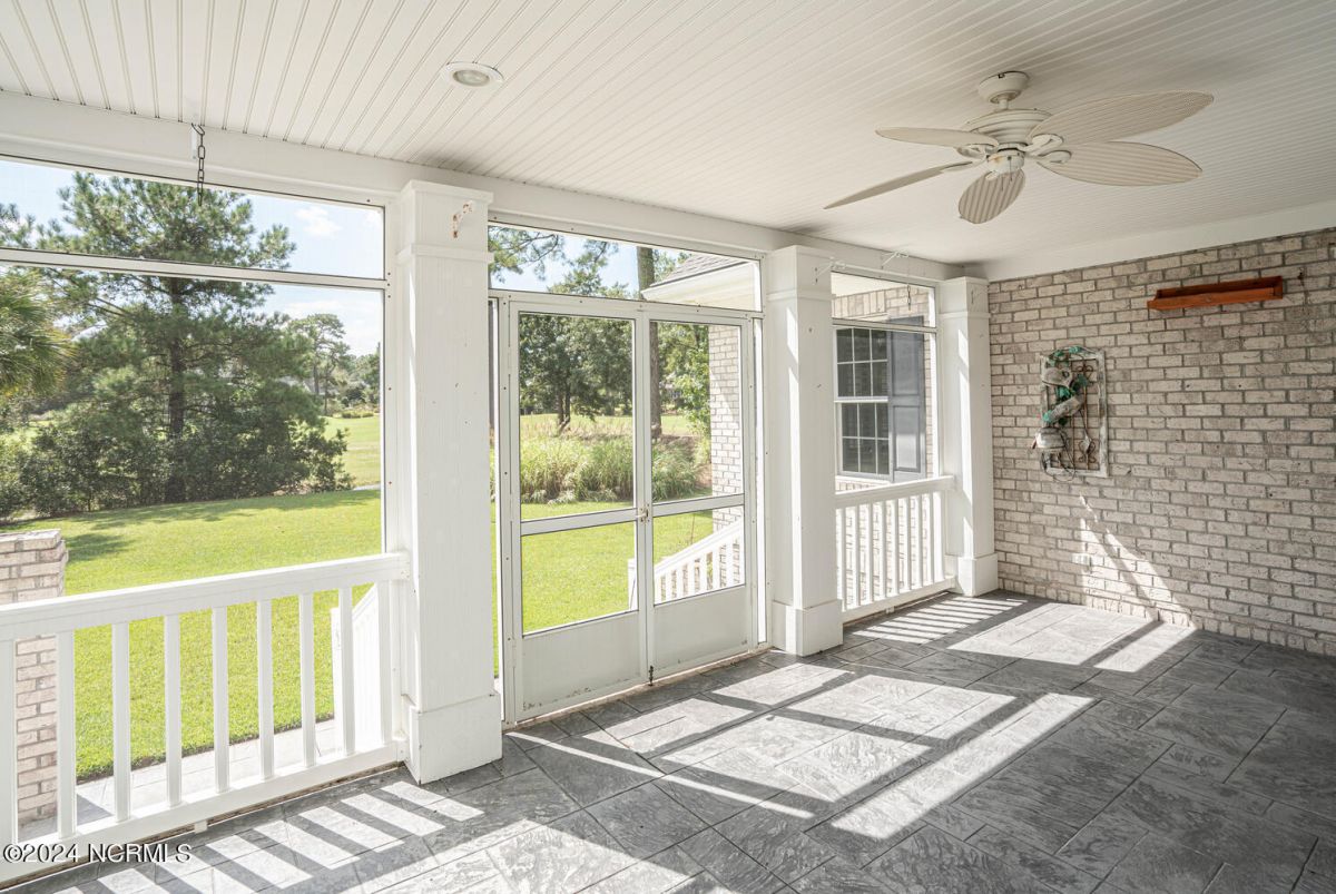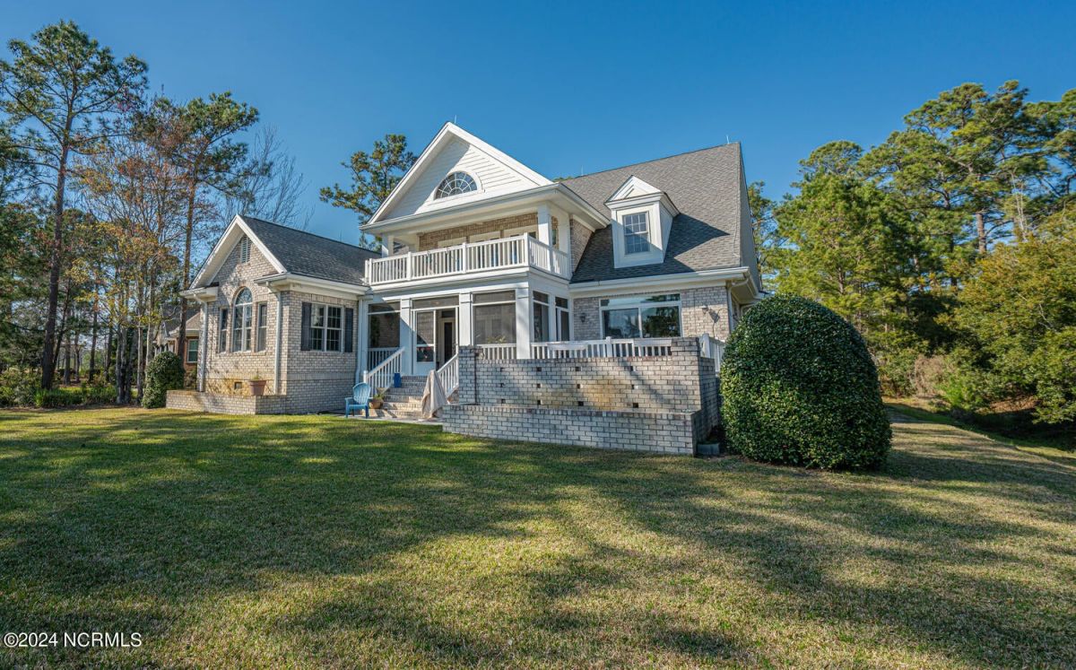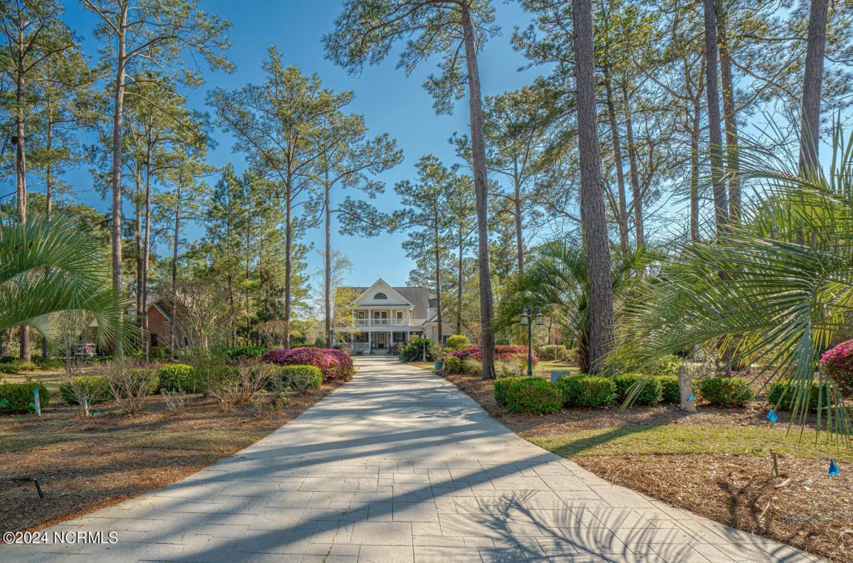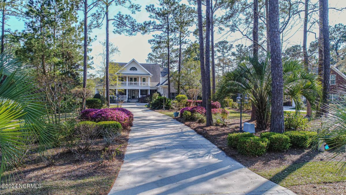 Stunning home nestled in a gorgeous southern setting on a rare .67/acre home site in Ocean Ridge Plantation. Drive up the beautiful tree-lined driveway and notice the covered low-country porch on the main and upper levels. This brick beauty built by award-winning Ernie Crews Construction welcomes guests and family alike with entertainment in mind. Upon entering, you immediately notice the beautifully detailed oak hardwoods flowing past the large formal dining room with the trey ceiling. The living room opens to the rear porch and the ceiling soars two stories high with the second floor balcony all-around allowing natural light to flood in. Built-in cabinetry flanking the marble faced fireplace provides a focal point to the living room area. Have your guests arrived? Set up your beverages at the granite mini-bar with a fridge. The kitchen has a huge pantry, custom cabinetry, an island, granite counters, tiled floors, and backsplash. Entry to rear porch and another 'living room' setting. The primary bedroom opens to the first floor porch with a large walk-in closet, the bath has dual vanities, a large soaker tub, and a tile stall shower. Worried about steps? No problem with the elevator up to and from the 2nd floor! Too many extras to list them all - oak hardwood floors, a well for the exterior lawn irrigation system, tons of storage closets including a huge unfinished bonus room with plaster boards, an encapsulated crawl space with a dehumidifier, 2-car garage with an additional work room, crown moulding throughout, a rinnai tankless water heater, several etched doors, and gorgeous exterior night lights. Ocean Ridge Plantation is widely regarded as the premier community in Southeastern NC. Ocean Ridge has something for everyone-4 golf courses, 2 golf clubhouses, a heated indoor pool, sauna, steam room, jacuzzi, fitness center, outdoor pool, pickleball courts, a nature pavilion, a community garden, over 65 social clubs, and a beach clubhouse on Sunset Beach!