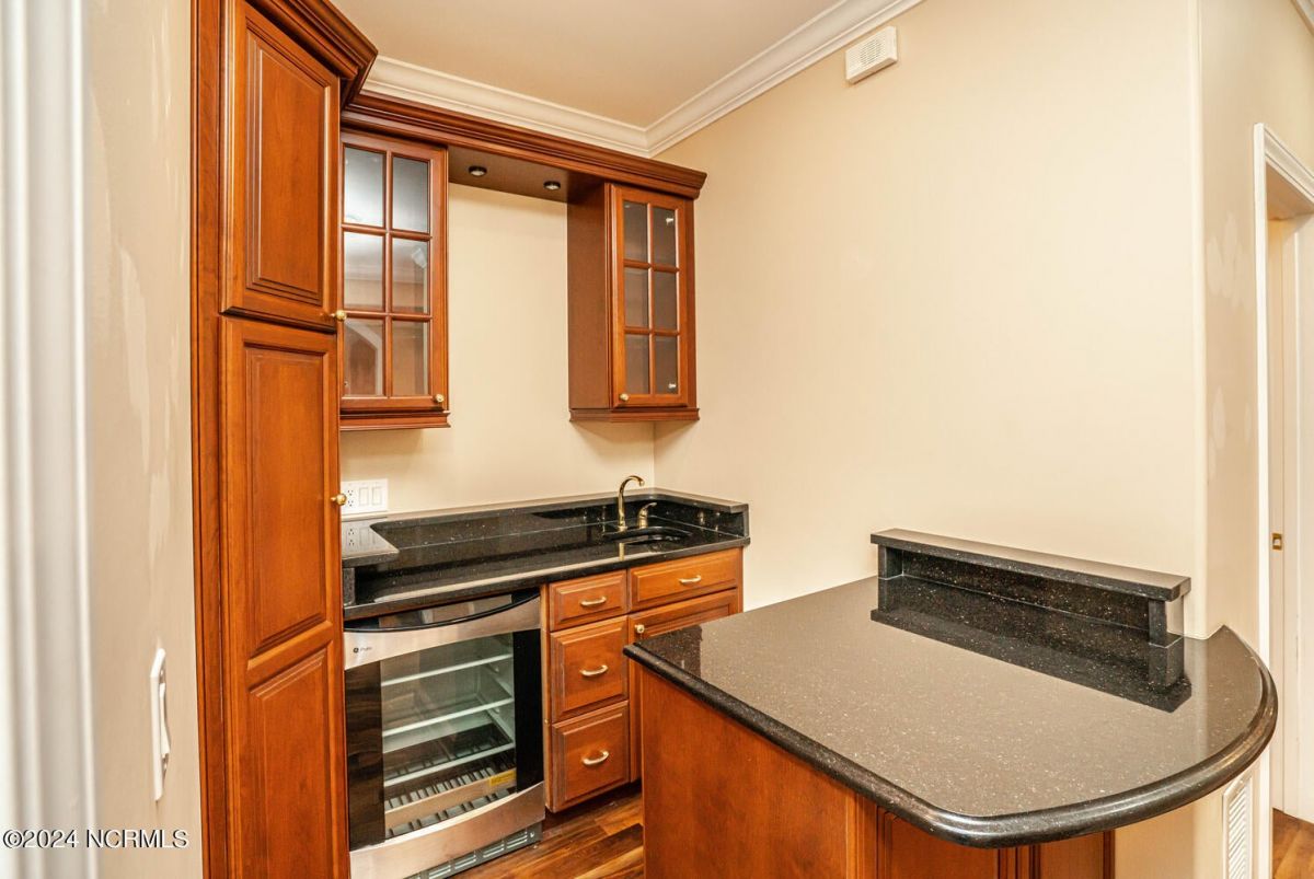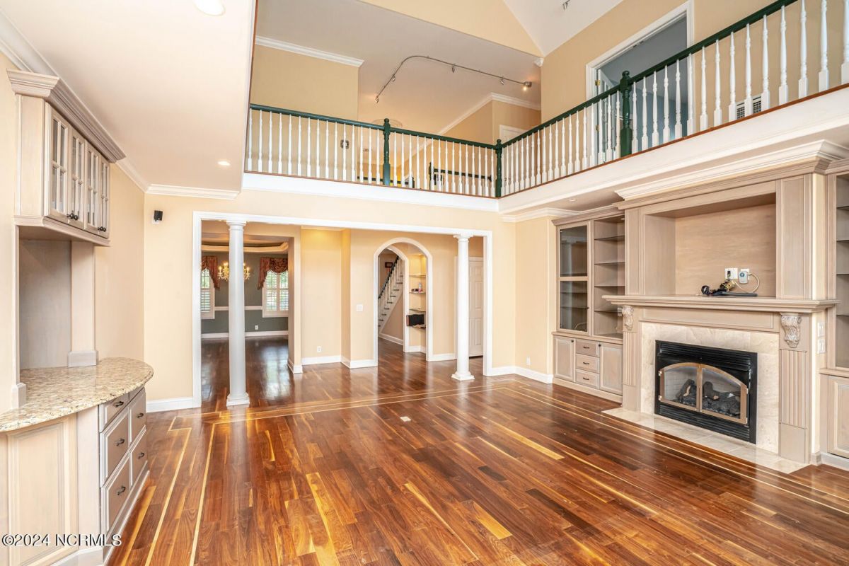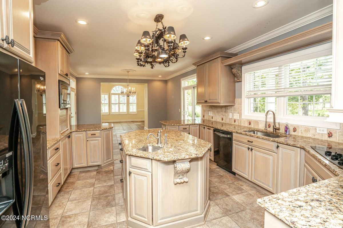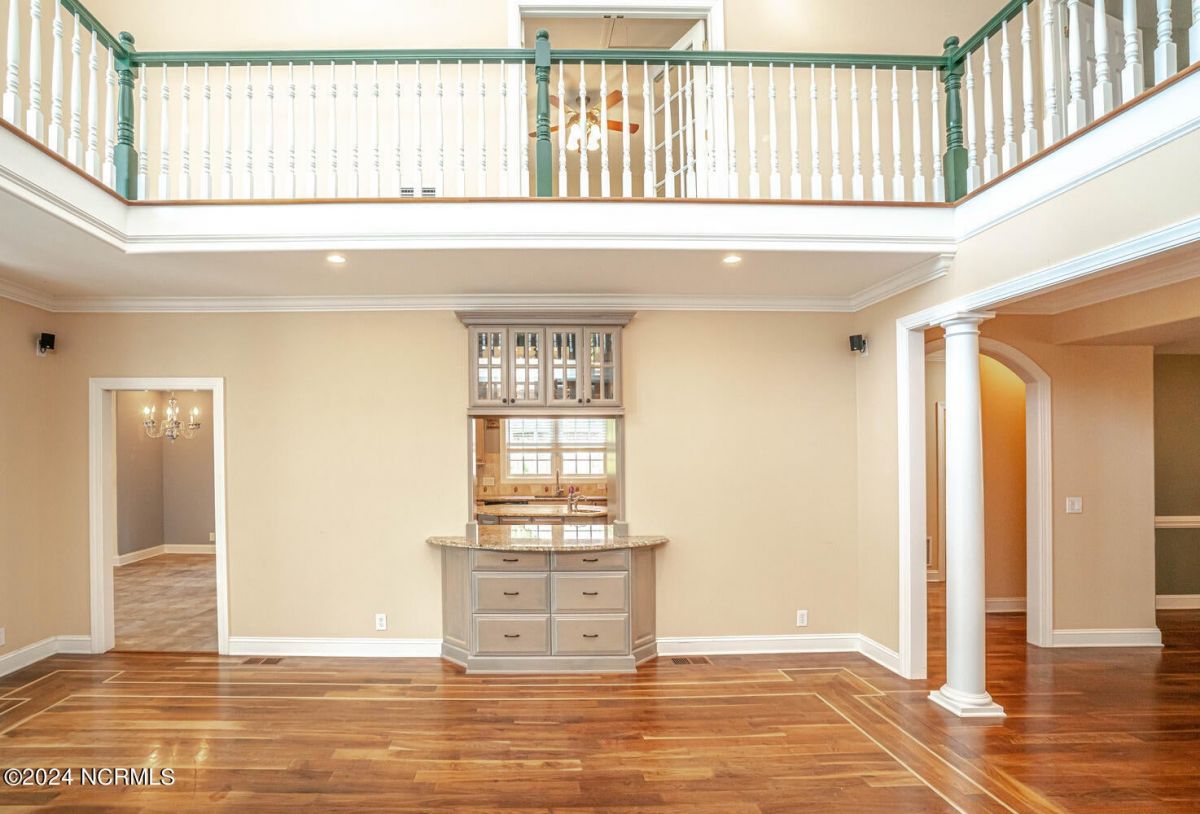 Stunning home nestled in a gorgeous southern setting on a rare .67/acre home site in Ocean Ridge Plantation. Drive up the beautiful tree-lined driveway and notice the covered low-country porch on the main and upper levels. This brick beauty built by award-winning Ernie Crews Construction welcomes guests and family alike with entertainment in mind. Upon entering, you immediately notice the beautifully detailed oak hardwoods flowing past the large formal dining room with the trey ceiling. The living room opens to the rear porch and the ceiling soars two stories high with the second floor balcony all-around allowing natural light to flood in. Built-in cabinetry flanking the marble faced fireplace provides a focal point to the living room area. Have your guests arrived? Set up your beverages at the granite mini-bar with a fridge. The kitchen has a huge pantry, custom cabinetry, an island, granite counters, tiled floors, and backsplash. Entry to rear porch and another 'living room' setting. The primary bedroom opens to the first floor porch with a large walk-in closet, the bath has dual vanities, a large soaker tub, and a tile stall shower. Worried about steps? No problem with the elevator up to and from the 2nd floor! Too many extras to list them all - oak hardwood floors, a well for the exterior lawn irrigation system, tons of storage closets including a huge unfinished bonus room with plaster boards, an encapsulated crawl space with a dehumidifier, 2-car garage with an additional work room, crown moulding throughout, a rinnai tankless water heater, several etched doors, and gorgeous exterior night lights. Ocean Ridge Plantation is widely regarded as the premier community in Southeastern NC. Ocean Ridge has something for everyone-4 golf courses, 2 golf clubhouses, a heated indoor pool, sauna, steam room, jacuzzi, fitness center, outdoor pool, pickleball courts, a nature pavilion, a community garden, over 65 social clubs, and a beach clubhouse on Sunset Beach!