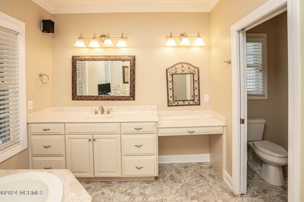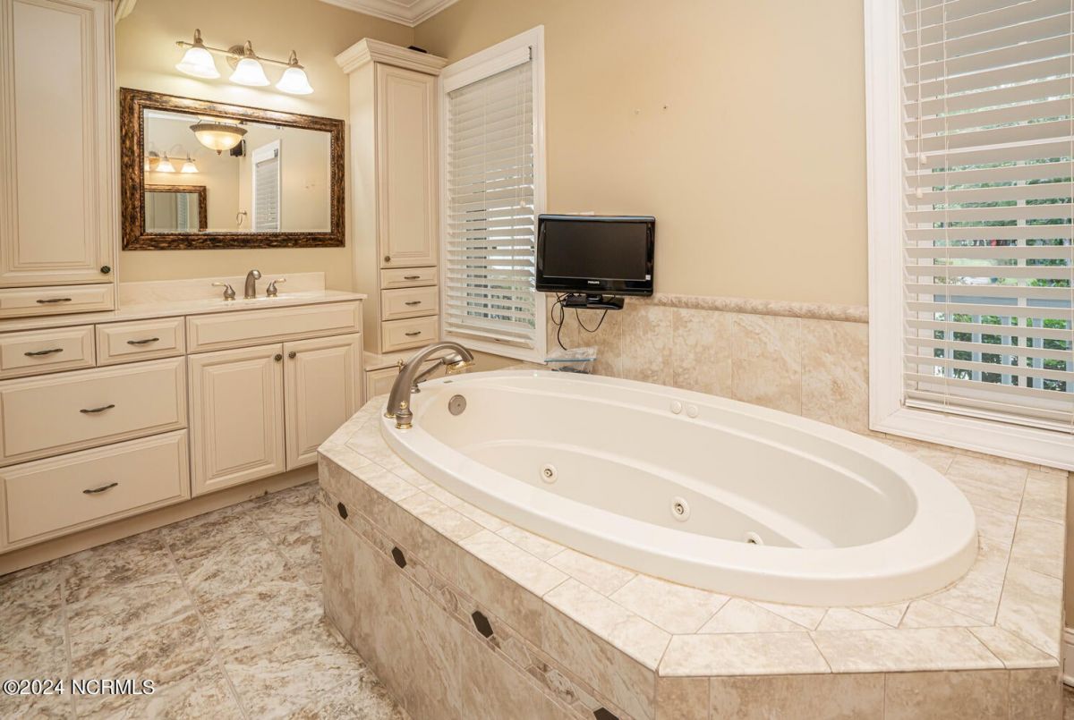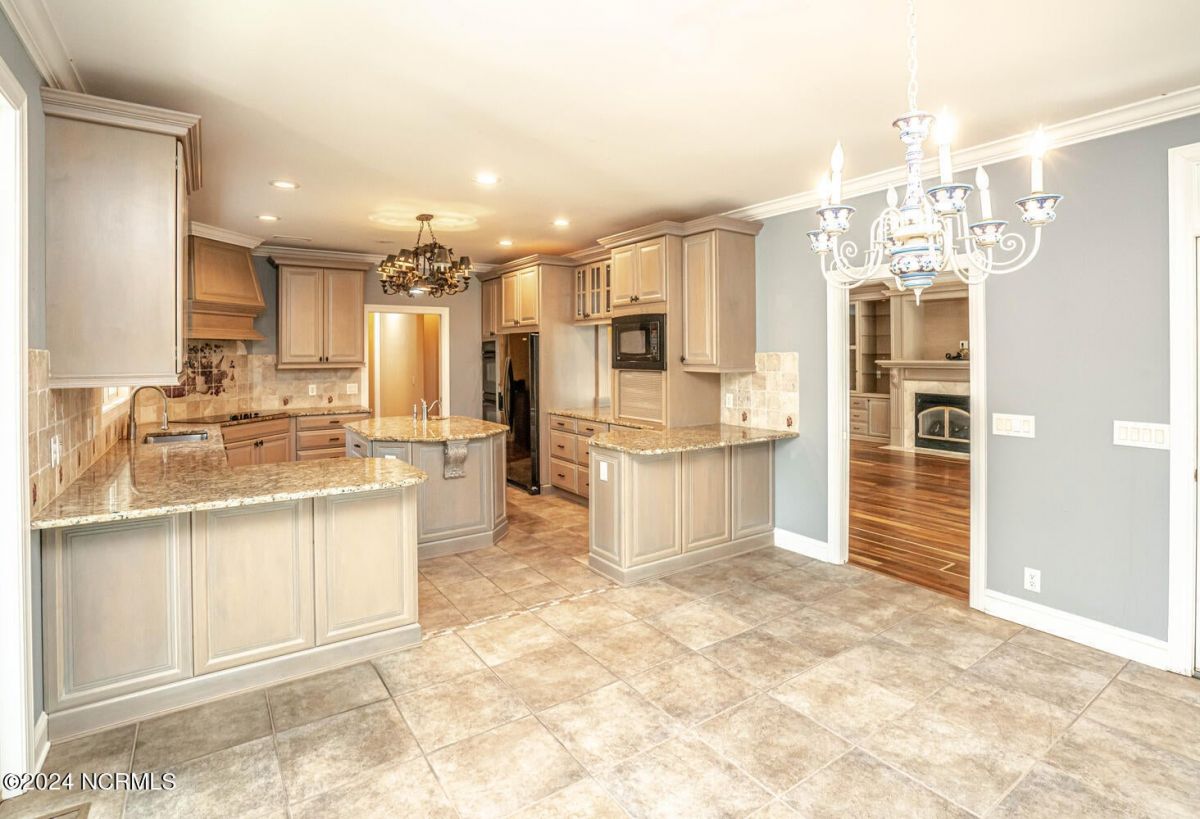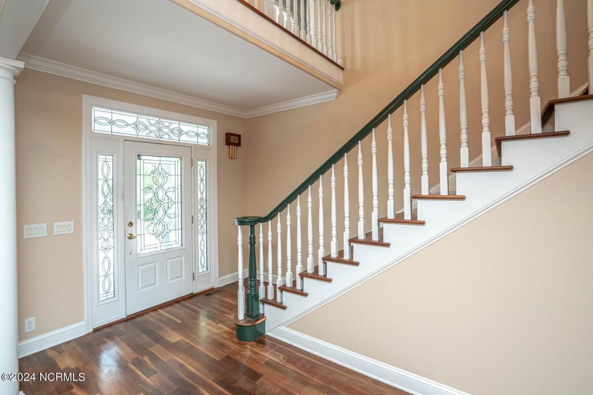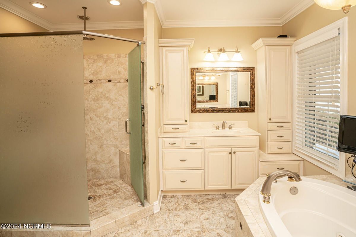Stunning home nestled in a gorgeous southern setting on a rare .67/acre home site in Ocean Ridge Plantation. Drive up the beautiful tree-lined driveway and notice the covered low-country porch on the main and upper levels. This brick beauty built by award-winning Ernie Crews Construction welcomes guests and family alike with entertainment in mind. Upon entering, you immediately notice the beautifully detailed oak hardwoods flowing past the large formal dining room with the trey ceiling. The living room opens to the rear porch and the ceiling soars two stories high with the second floor balcony all-around allowing natural light to flood in. Built-in cabinetry flanking the marble faced fireplace provides a focal point to the living room area. Have your guests arrived? Set up your beverages at the granite mini-bar with a fridge. The kitchen has a huge pantry, custom cabinetry, an island, granite counters, tiled floors, and backsplash. Entry to rear porch and another 'living room' setting. The primary bedroom opens to the first floor porch with a large walk-in closet, the bath has dual vanities, a large soaker tub, and a tile stall shower. Worried about steps? No problem with the elevator up to and from the 2nd floor! Too many extras to list them all - oak hardwood floors, a well for the exterior lawn irrigation system, tons of storage closets including a huge unfinished bonus room with plaster boards, an encapsulated crawl space with a dehumidifier, 2-car garage with an additional work room, crown moulding throughout, a rinnai tankless water heater, several etched doors, and gorgeous exterior night lights. Ocean Ridge Plantation is widely regarded as the premier community in Southeastern NC. Ocean Ridge has something for everyone-4 golf courses, 2 golf clubhouses, a heated indoor pool, sauna, steam room, jacuzzi, fitness center, outdoor pool, pickleball courts, a nature pavilion, a community garden, over 65 social clubs, and a beach clubhouse on Sunset Beach!