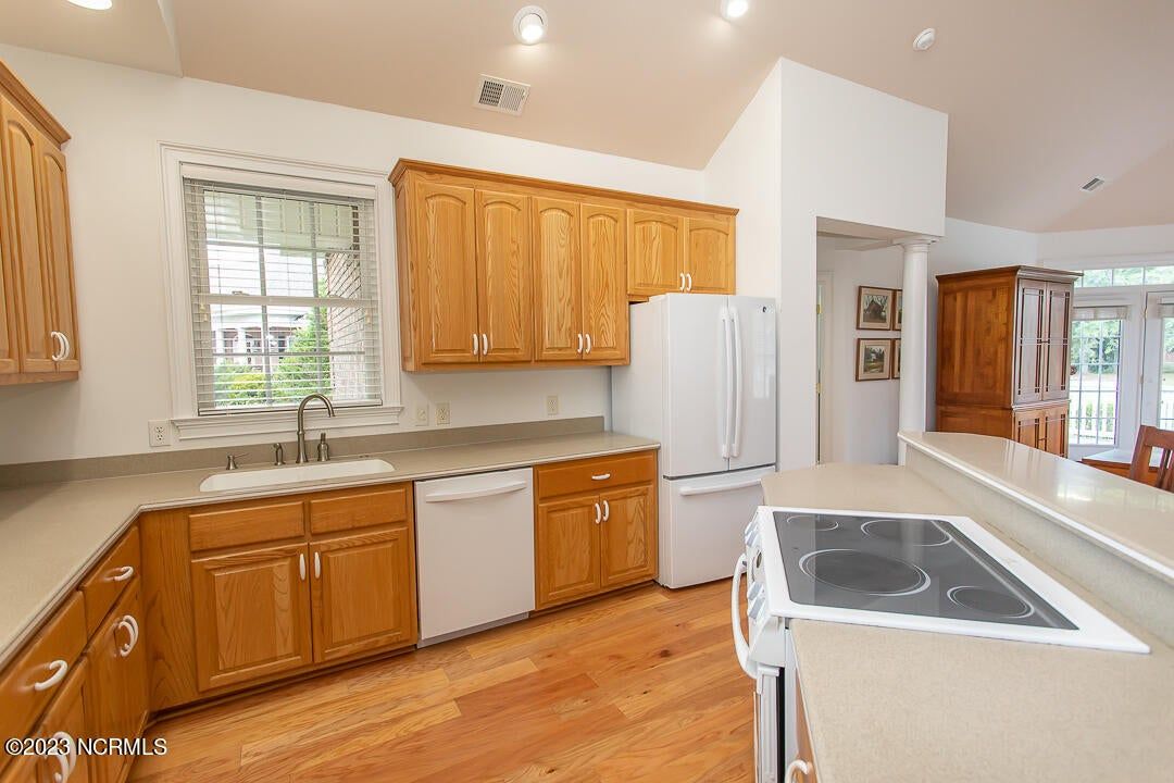 Wonderful curb appeal on a huge .54/acre home site on a quiet cul-de-sac in Ocean Ridge Plantation. Offers 3 bedrooms and 3 full bathrooms all on one level. Open living room with lots of natural light shining through on the engineered hardwood floors which were put in 3-4 years ago. New roof in June of 2022. Home is equipped with ADA handicapped accessibilty. Also offers dual primary suites with full bathrooms off of 2 of the bedrooms. Wonderful views overlooking the 17th tee box of Panther's Run Golf Course (par 3). The setting is what separates this one from the rest as there are only about 10 homes on this quiet cul-de-sac. Located in the heart of Ocean Ridge and close to all of the amenities and entrances/exits. Ocean Ridge is widely regarded as the premier community in the area with it's 4 golf courses, 2 golf clubhouses, a heated indoor pool, sauna, steam room, jacuzzi, a well-equipped fitness center, banquet room, an outdoor pool, pickle ball courts, a nature pavilion, and a beach clubhouse on Sunset Beach!