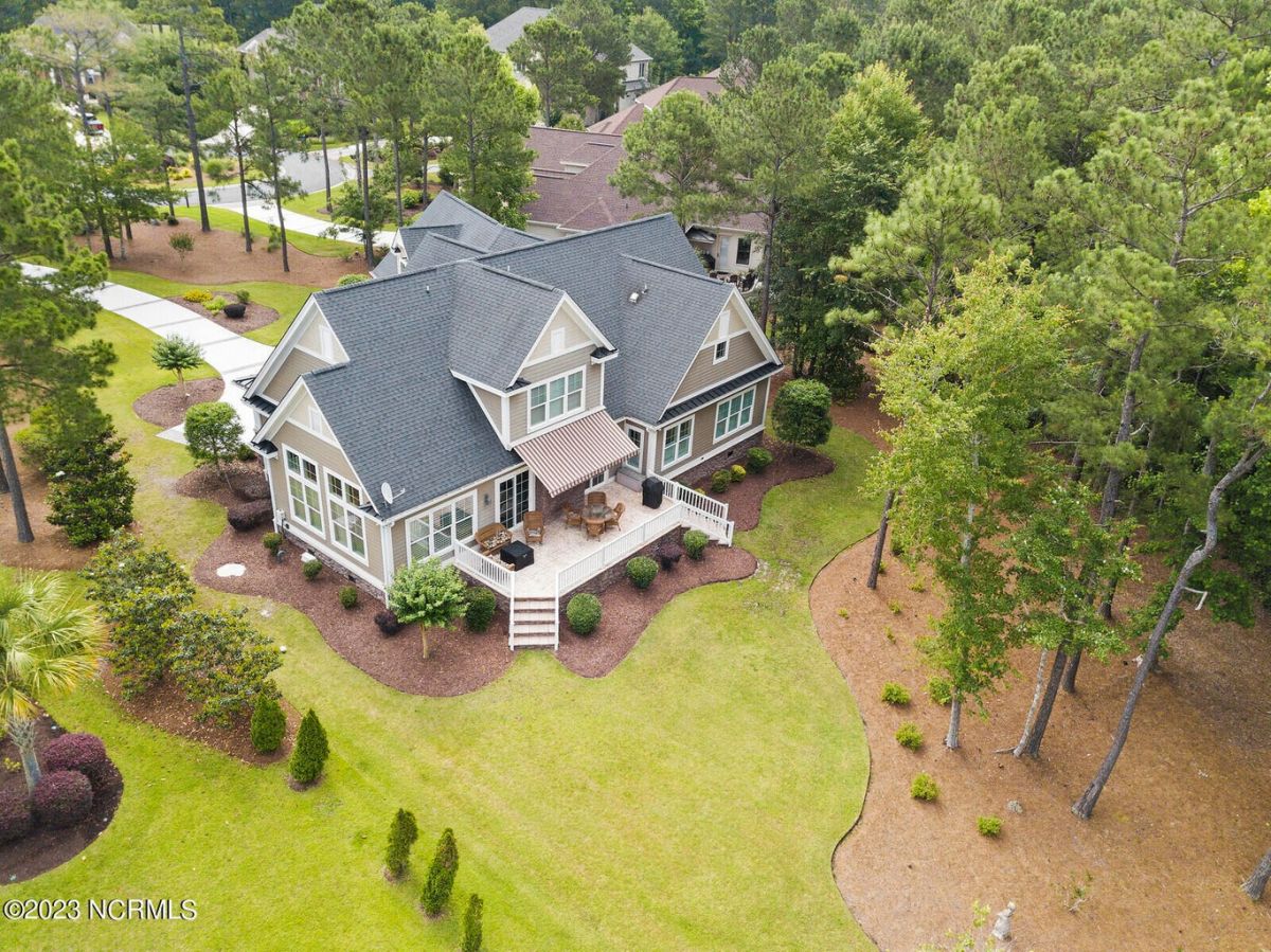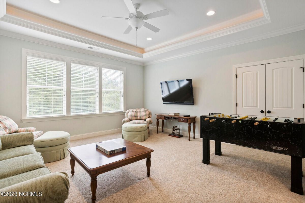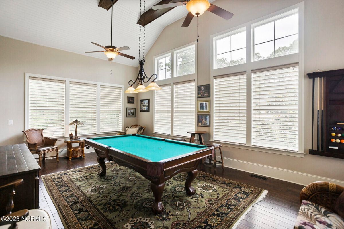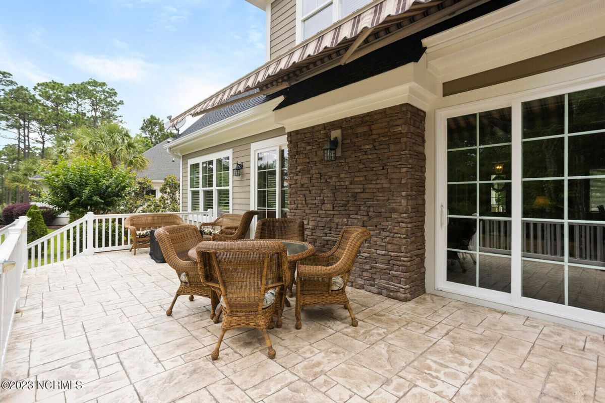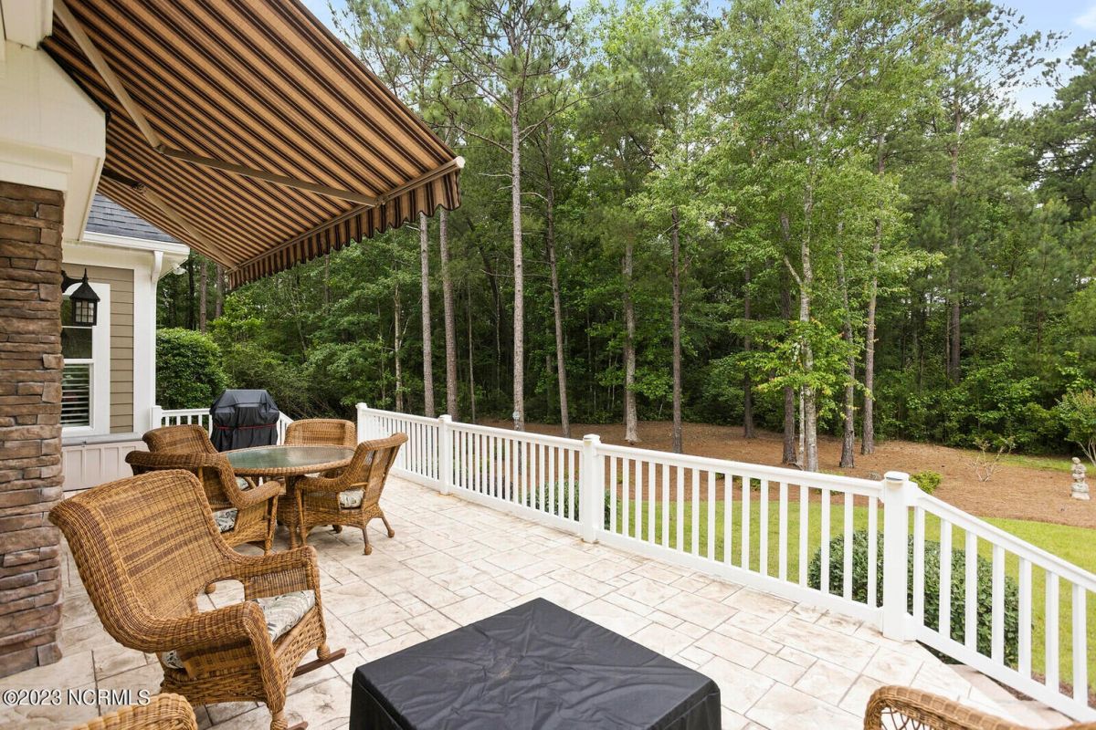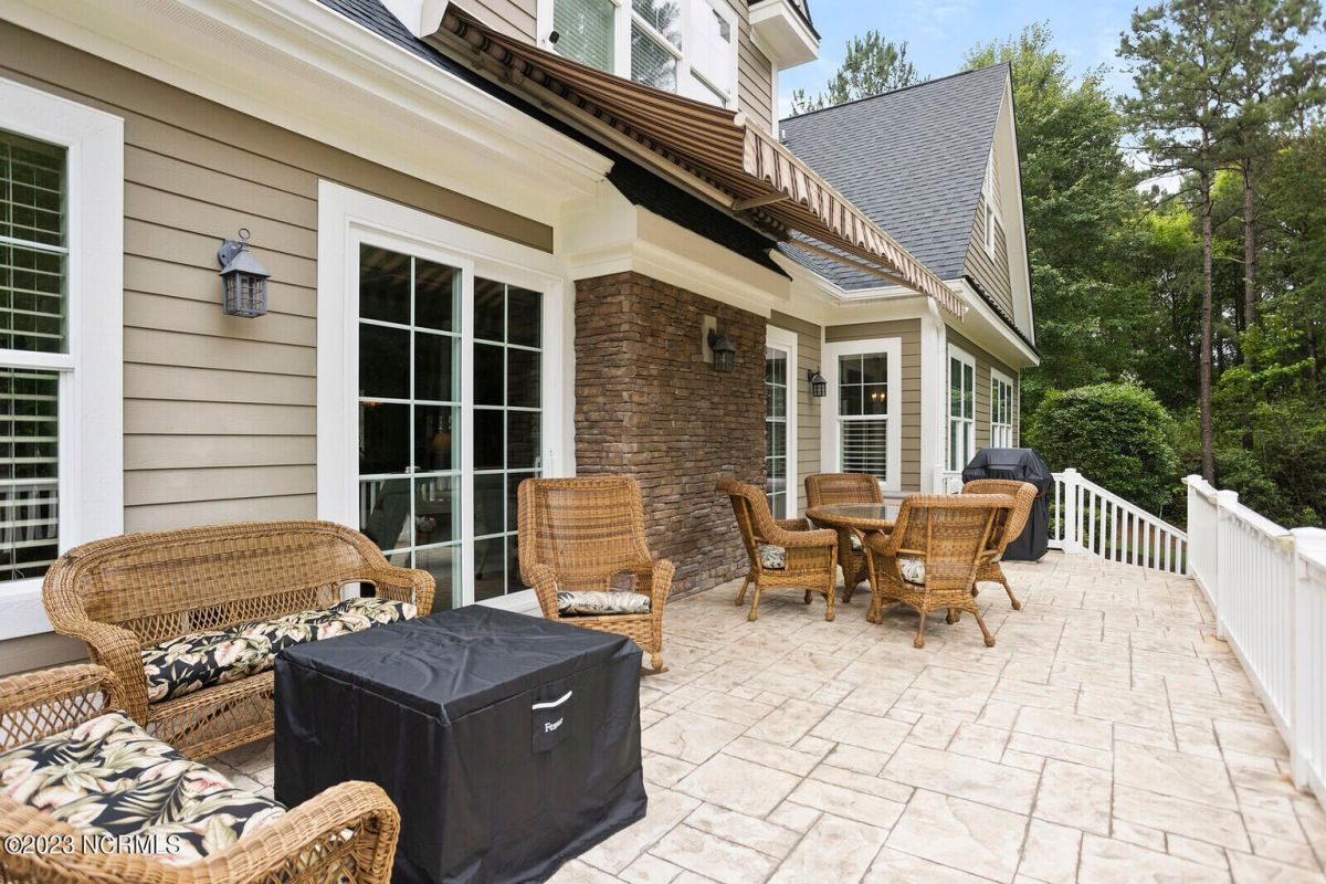 Welcome Home! This exquisite custom home offers all the features and upgrades you dreamed about. Situated on over 1/2 acre in a private cul-de-sac setting, you will quickly notice the detail and fine appointments. Walk onto the stamped concrete front porch and front entry, you know you are entering a warm, inviting home with the very popular open floor plan. The great room, kitchen & breakfast area is one expansive space providing an easy flow throughout the main living area, graced with beautiful hardwood floors. The great room features coffered ceilings, a stone fireplace, & 2 sets of sliding doors that lead to the rear porch. In the kitchen, there is lots of space for casual dining. The custom cabinetry is accented with granite counters & coordinating backsplash, with ample cooking space for the chef of the home. Additional features include a gas cooktop, a double oven, coffee station & walk-in pantry. A formal dining room, adjacent to the kitchen boasts coffered ceilings & wainscoting. From the great room, enter a very large recreation room, perfect for a pool table and/or game tables. The tongue and groove ceiling and wall to wall windows is very inviting for entertaining your family & friends. If working at home is an option, the large office will serve the purpose. The owner's suite features a tray ceiling with indirect lighting & his & her closets. The owner's bath offers double vanities, ceramic floors, makeup vanity & a large walk-in shower. The laundry is conveniently located near the owner's bathroom with lots of cabinetry, ceramic floors & a utility closet. The second floor features three guest bedrooms & 2 full baths. There are two large storage rooms, one is climate controlled. The garage is oversized, allowing extra space for workspace. Relax on the rear porch, featuring a retractable awning and enjoy the serenity that surrounds you. There is a view of the golf course. There are too many features to mention that it must be seen.