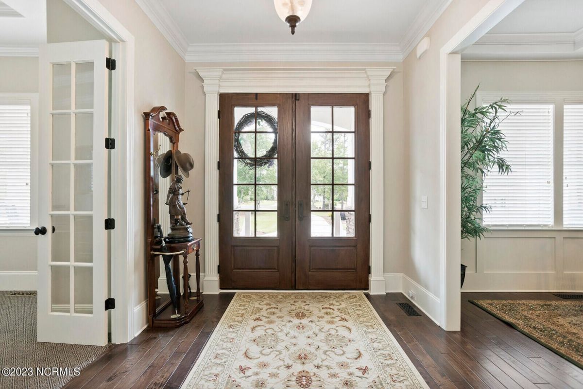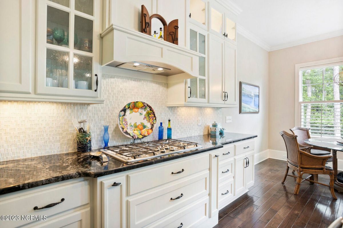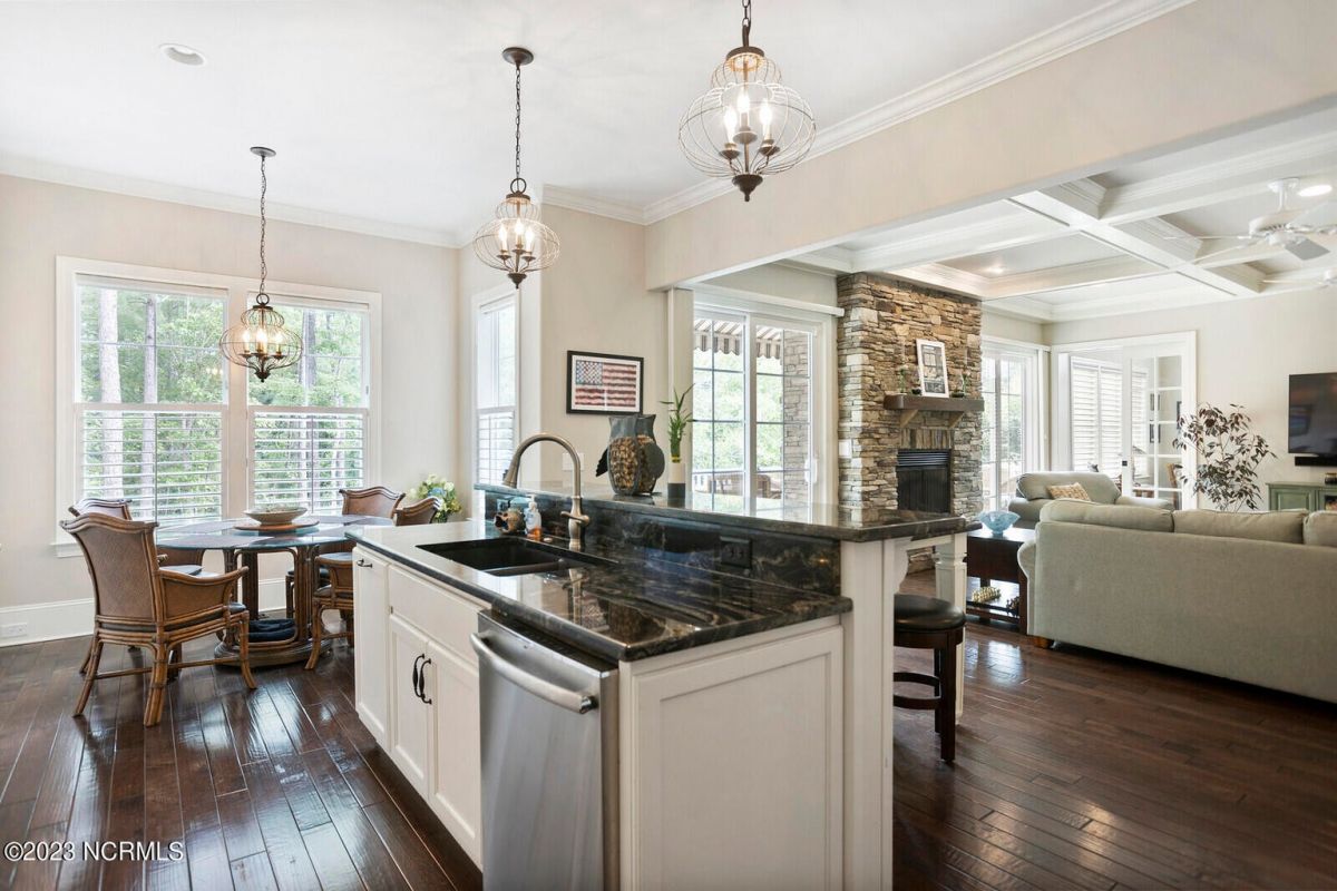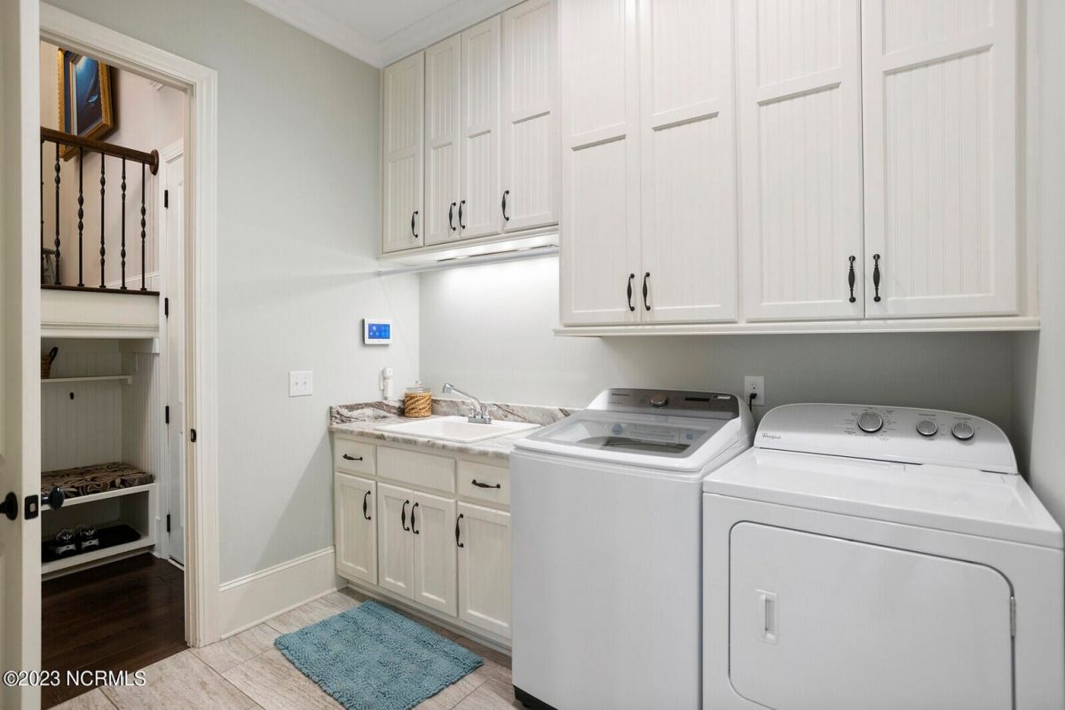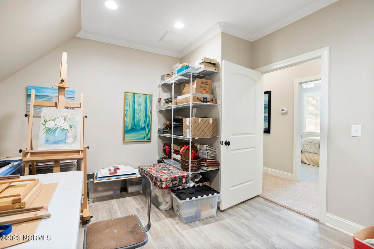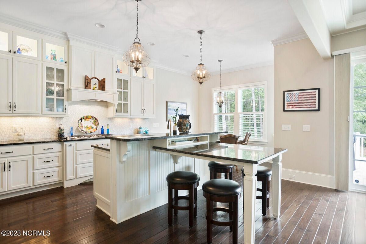 Welcome Home! This exquisite custom home offers all the features and upgrades you dreamed about. Situated on over 1/2 acre in a private cul-de-sac setting, you will quickly notice the detail and fine appointments. Walk onto the stamped concrete front porch and front entry, you know you are entering a warm, inviting home with the very popular open floor plan. The great room, kitchen & breakfast area is one expansive space providing an easy flow throughout the main living area, graced with beautiful hardwood floors. The great room features coffered ceilings, a stone fireplace, & 2 sets of sliding doors that lead to the rear porch. In the kitchen, there is lots of space for casual dining. The custom cabinetry is accented with granite counters & coordinating backsplash, with ample cooking space for the chef of the home. Additional features include a gas cooktop, a double oven, coffee station & walk-in pantry. A formal dining room, adjacent to the kitchen boasts coffered ceilings & wainscoting. From the great room, enter a very large recreation room, perfect for a pool table and/or game tables. The tongue and groove ceiling and wall to wall windows is very inviting for entertaining your family & friends. If working at home is an option, the large office will serve the purpose. The owner's suite features a tray ceiling with indirect lighting & his & her closets. The owner's bath offers double vanities, ceramic floors, makeup vanity & a large walk-in shower. The laundry is conveniently located near the owner's bathroom with lots of cabinetry, ceramic floors & a utility closet. The second floor features three guest bedrooms & 2 full baths. There are two large storage rooms, one is climate controlled. The garage is oversized, allowing extra space for workspace. Relax on the rear porch, featuring a retractable awning and enjoy the serenity that surrounds you. There is a view of the golf course. There are too many features to mention that it must be seen.