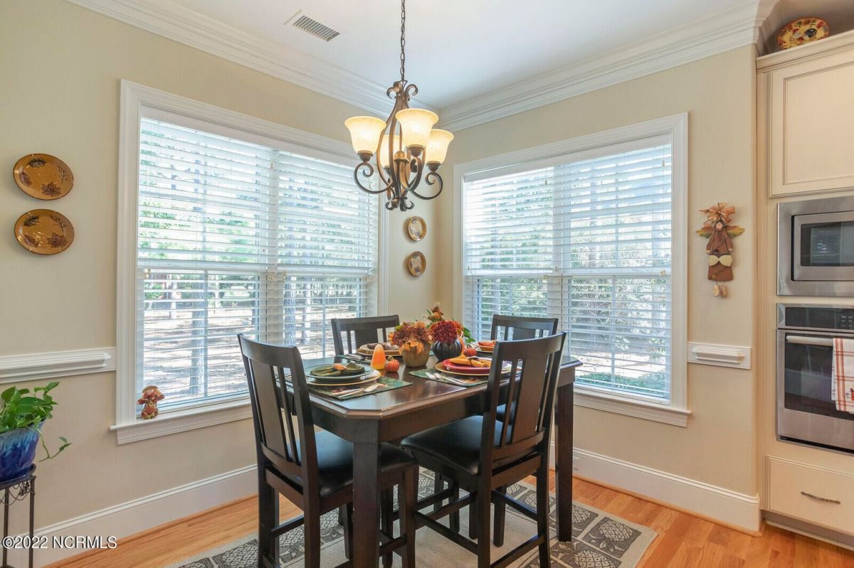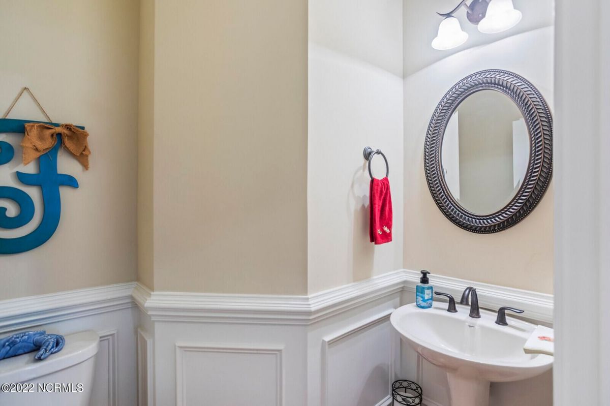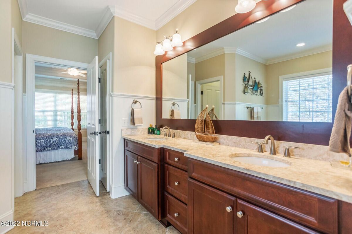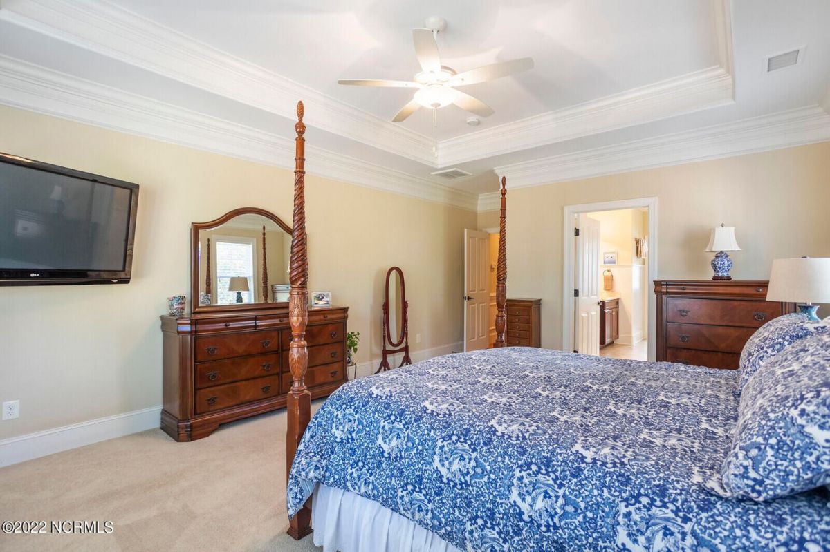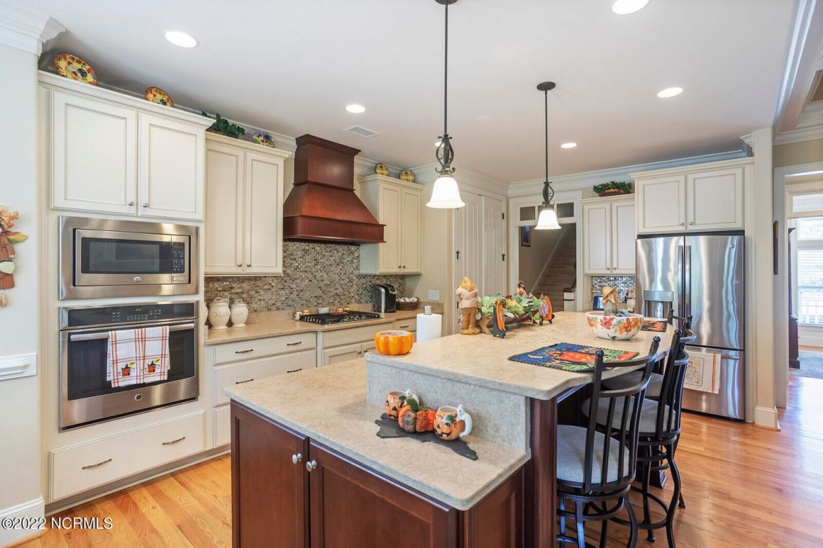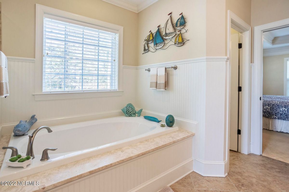 Offering southern living at its finest, this casually elegant residence sits on a tranquil lot nestled by tall shade trees and beautiful landscaping. The home greets you with a delightful overhead pineapple pendant light on the front porch and continues to enchant inside with hardwood flooring, double and triple crown molding, wainscoting and transom windows throughout. The gourmet kitchen showcases white-sand colored cabinets offset by oyster shell granite counters and glass tile backsplash along with a 5-burner gas stove, built-in microwave/convection oven and a huge pantry for easy storage. This kitchen allows plenty of room for everyday dining at the breakfast bar or kitchen table. A formal dining area accommodates large family gatherings. The living room features a coffered ceiling and gas log fireplace surrounded by built-in shelving and cabinets. Some quiet reflection time can be found on the large screened porch or the stamped concrete patio as you observe nature. There are three carpeted bedrooms on the first floor. Two bedrooms share a full bath. The impressive owner's suite sits under a trey ceiling and offers a spa-like experience with a soaking tub, ceramic tiled shower, double vanity and a walk-in closet large enough for an office area. A creative living space on the second floor is equipped with a full bathroom making it the perfect space for a 4th guest suite or family room. This meticulously maintained home offers so many extras including a wet bar with fridge, surround sound, large laundry room, walk-through attic, irrigation system and 2-car side entry garage. Ocean Ridge amenities including indoor & outdoor pools, four championship golf courses, fitness center, walking paths and a private oceanfront beach club at beautiful Sunset Beach. It's all right here – shouldn't you be?