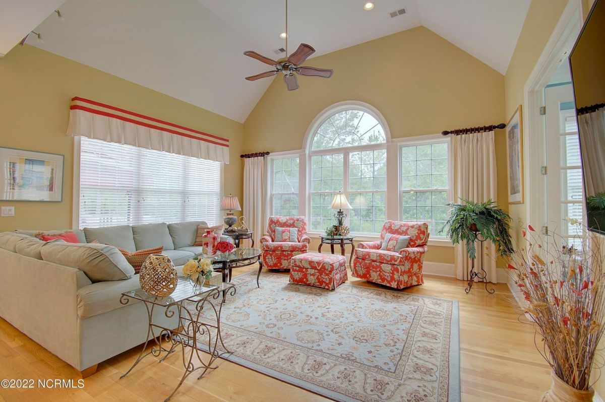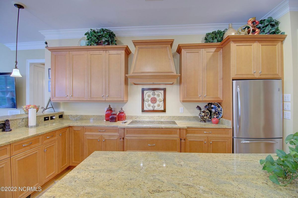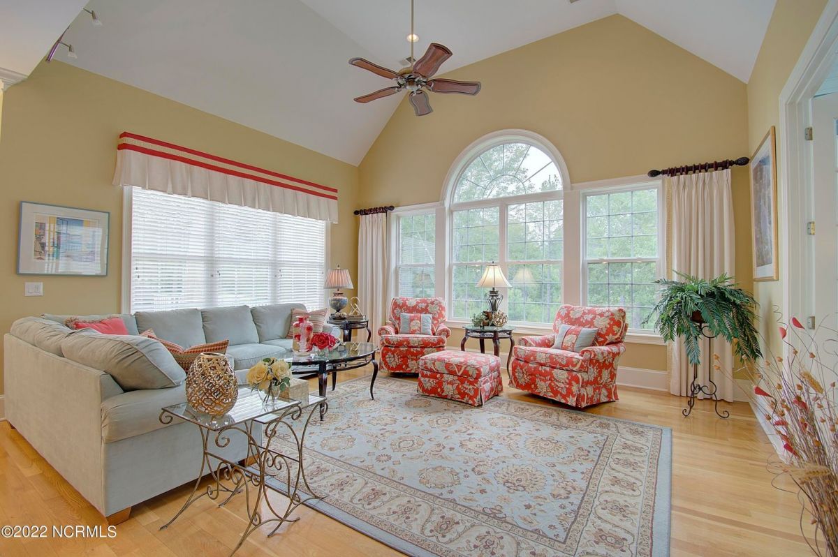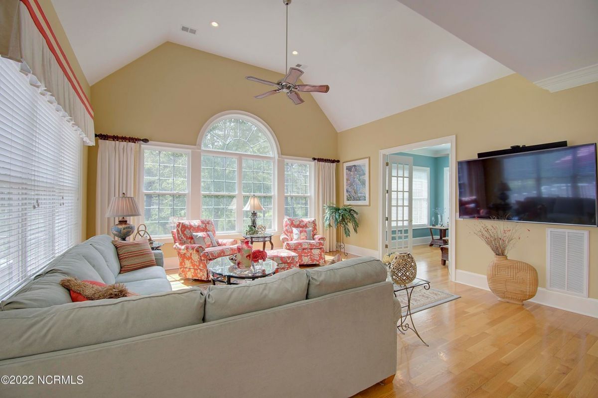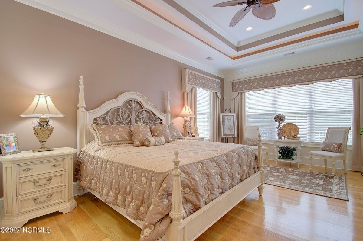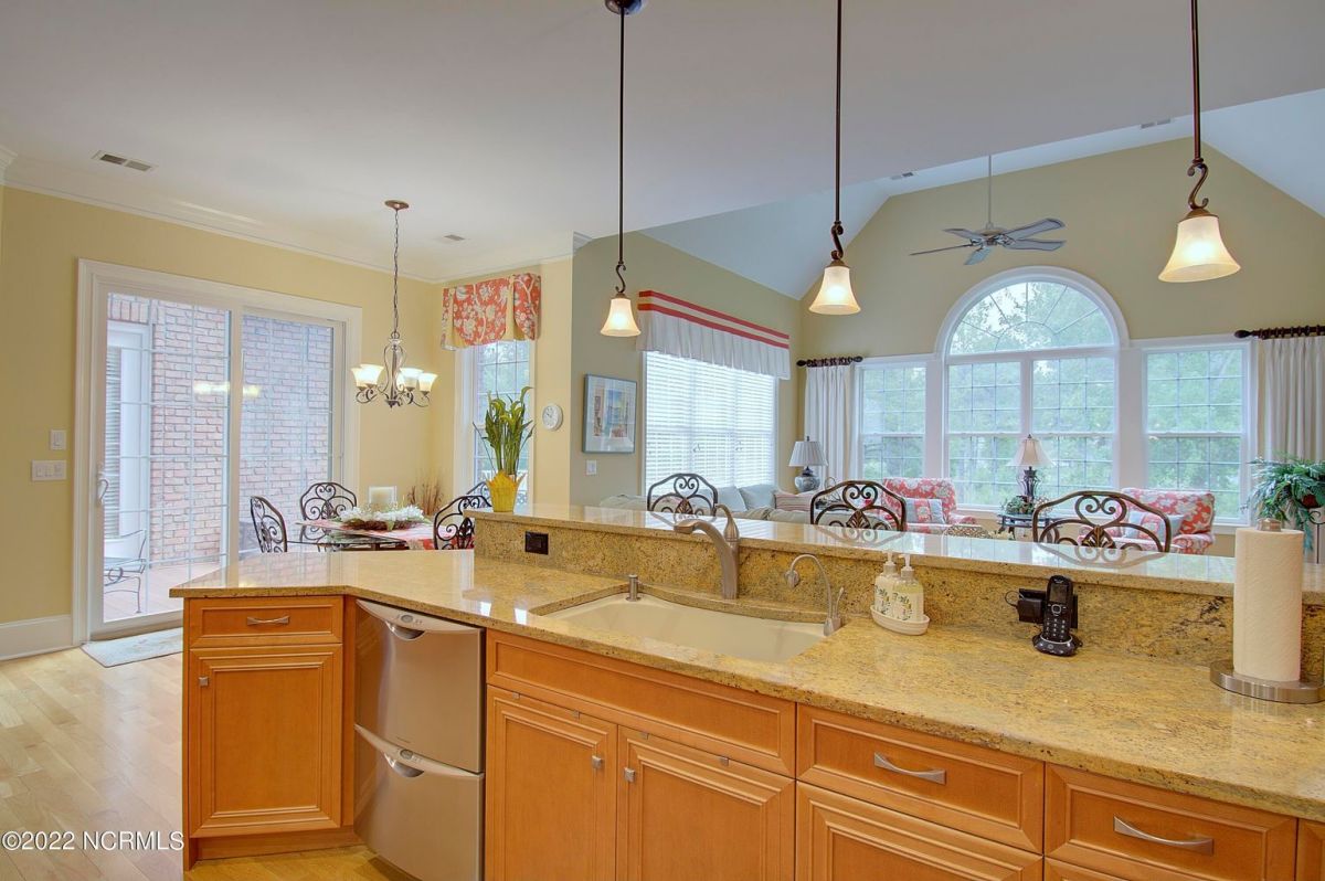 Must-see Ocean Ridge custom home built with attention to detail in mind and a rare 3-car garage! The open floor plan highlights the entertainment options as you move from the formal living room, the formal dining room to the open kitchen. Vaulted and trey ceilings with arched windows throughout. The huge kitchen features gleaming custom cabinets, an island, granite countertops, stainless steel appliances, a double oven, and a warming drawer. Breakfast nook and large family room are directly off of the kitchen. The Primary Suite offers a large bedroom with a trey ceiling and sitting area, the dressing closet with built-ins for everything, and a large bathroom with a soaker tub, a walk-in tiled shower, and twin vanities. 2nd guest bedroom downstairs with a full bathroom for your guests. Large laundry area has a built-in desk, room for a spare fridge, and lots of cabinetry storage. Head upstairs to find a 3rd living area/tv room and a 3rd bedroom with a full bath. The attic has a huge storage area with great shelving and flooring for all of your extras. 3 car oversized garage. Beautiful low maintenance brick exterior, composite decking, and extensive landscaping with curbed bedding in front and an irrigation system. Beautiful setting out back to enjoy a morning coffee or an afternoon beverage or three as you get a sneak peak of the hackers at a par 3 on Leopard's Chase Golf Course from afar. Ocean Ridge has it all with its 4 golf courses, 2 golf clubhouses, a beach clubhouse on Sunset Beach, a heated indoor pool, sauna, steam room, a jacuzzi, a banquet room, an outdoor pool, pickle ball courts, a well-equipped fitness center, walking trails, a pavilion area, a community garden, and over 50 social groups available to join. There's literally something for everyone in Ocean Ridge!