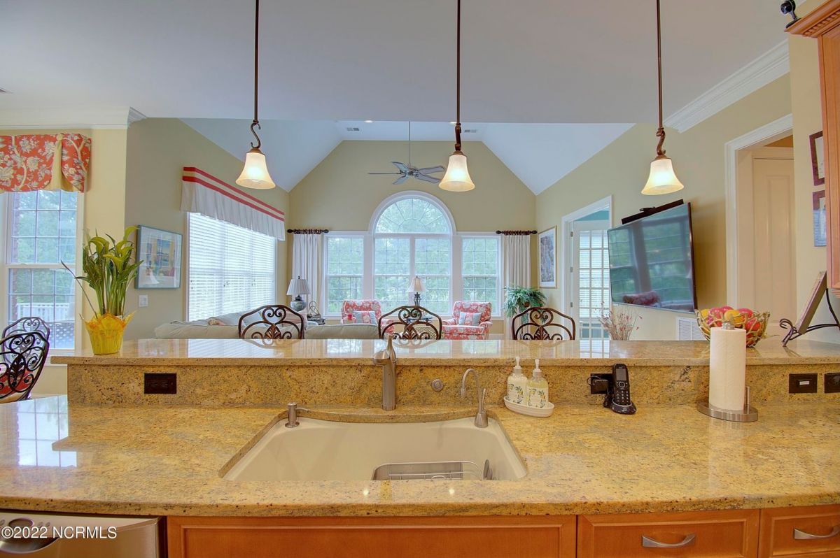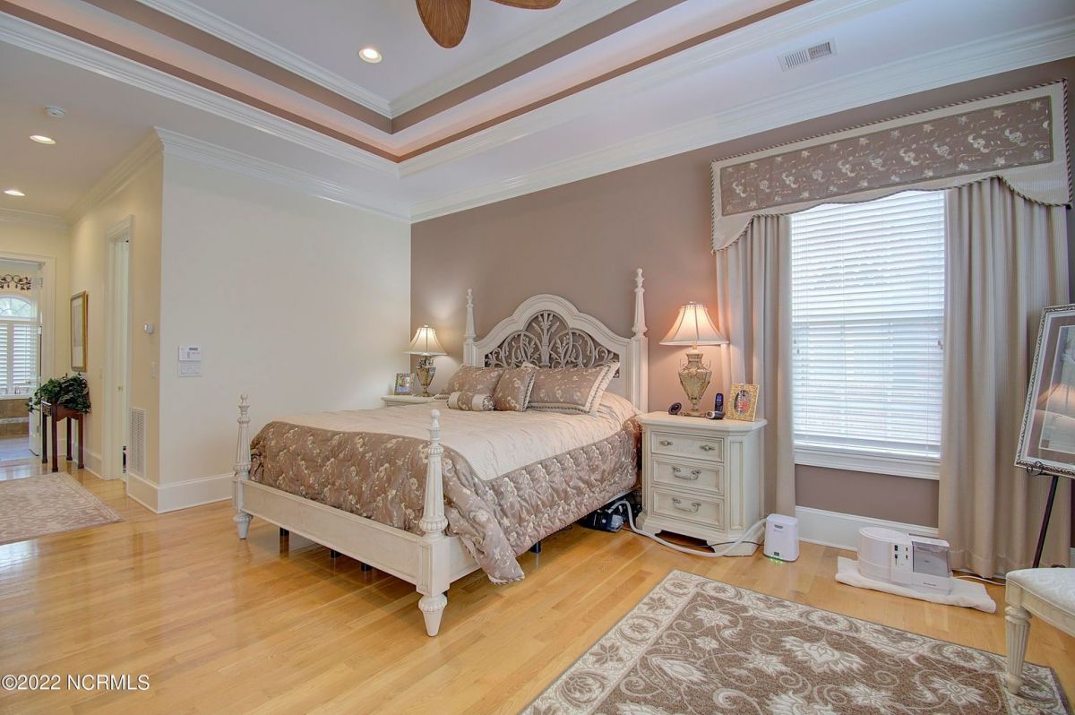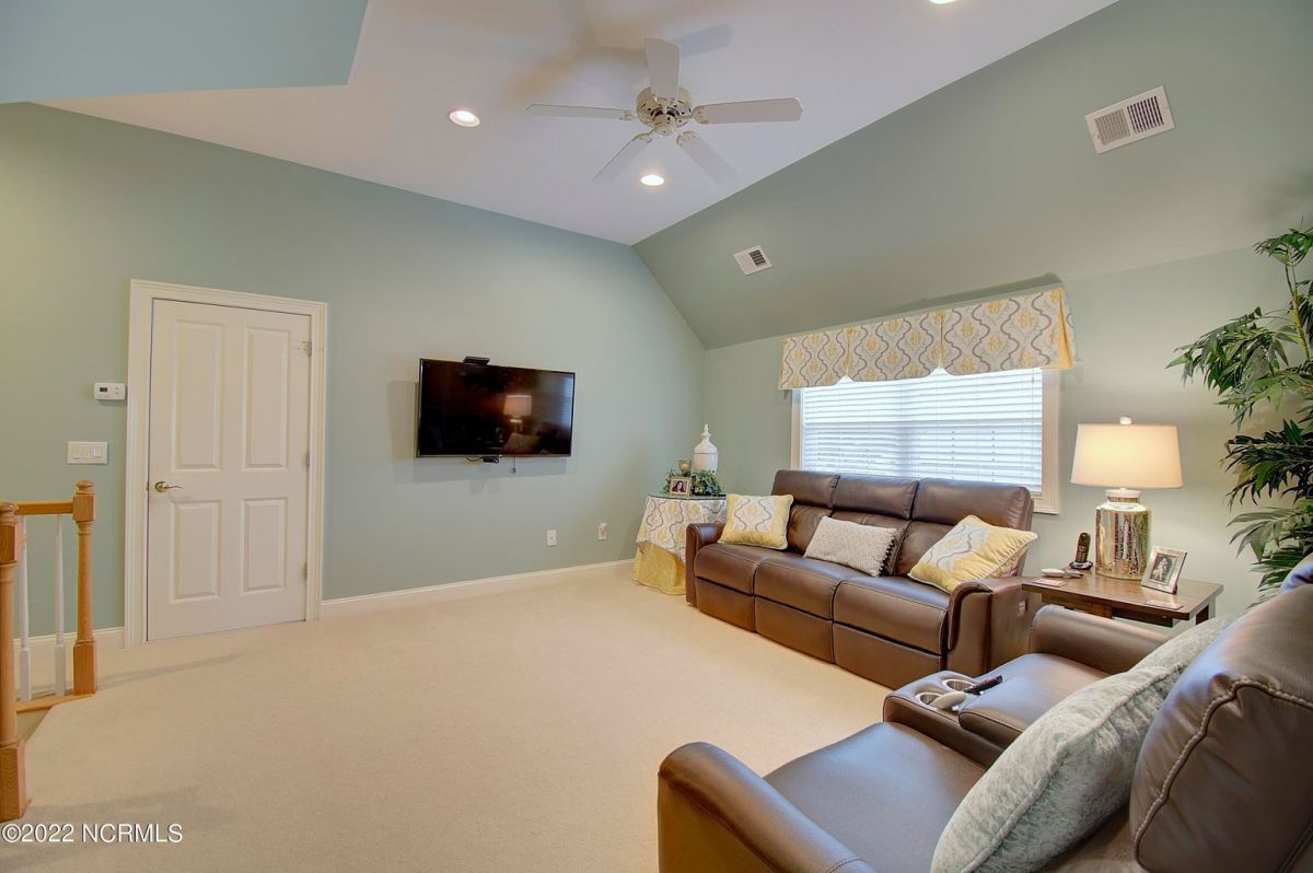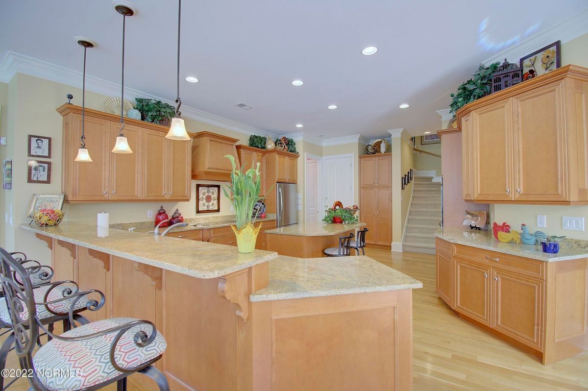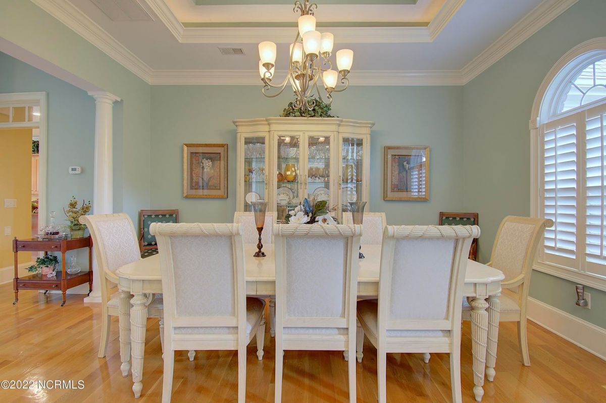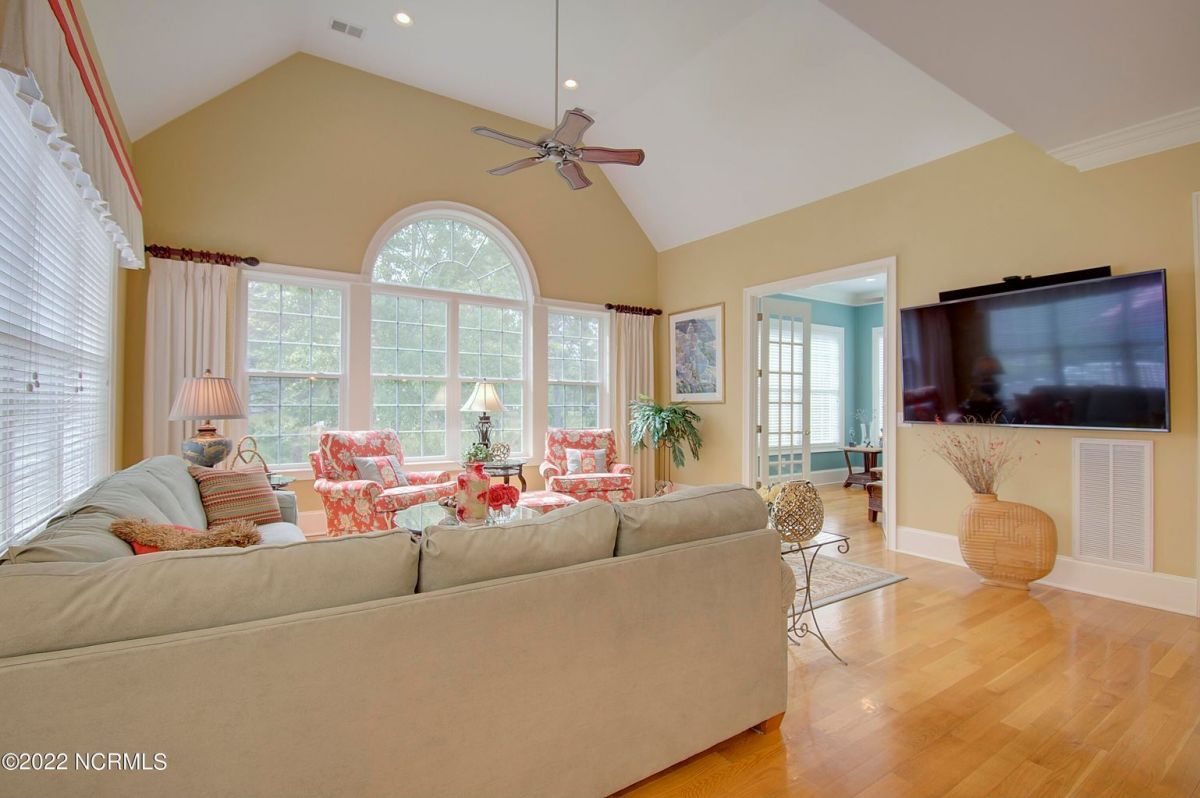 Must-see Ocean Ridge custom home built with attention to detail in mind and a rare 3-car garage! The open floor plan highlights the entertainment options as you move from the formal living room, the formal dining room to the open kitchen. Vaulted and trey ceilings with arched windows throughout. The huge kitchen features gleaming custom cabinets, an island, granite countertops, stainless steel appliances, a double oven, and a warming drawer. Breakfast nook and large family room are directly off of the kitchen. The Primary Suite offers a large bedroom with a trey ceiling and sitting area, the dressing closet with built-ins for everything, and a large bathroom with a soaker tub, a walk-in tiled shower, and twin vanities. 2nd guest bedroom downstairs with a full bathroom for your guests. Large laundry area has a built-in desk, room for a spare fridge, and lots of cabinetry storage. Head upstairs to find a 3rd living area/tv room and a 3rd bedroom with a full bath. The attic has a huge storage area with great shelving and flooring for all of your extras. 3 car oversized garage. Beautiful low maintenance brick exterior, composite decking, and extensive landscaping with curbed bedding in front and an irrigation system. Beautiful setting out back to enjoy a morning coffee or an afternoon beverage or three as you get a sneak peak of the hackers at a par 3 on Leopard's Chase Golf Course from afar. Ocean Ridge has it all with its 4 golf courses, 2 golf clubhouses, a beach clubhouse on Sunset Beach, a heated indoor pool, sauna, steam room, a jacuzzi, a banquet room, an outdoor pool, pickle ball courts, a well-equipped fitness center, walking trails, a pavilion area, a community garden, and over 50 social groups available to join. There's literally something for everyone in Ocean Ridge!