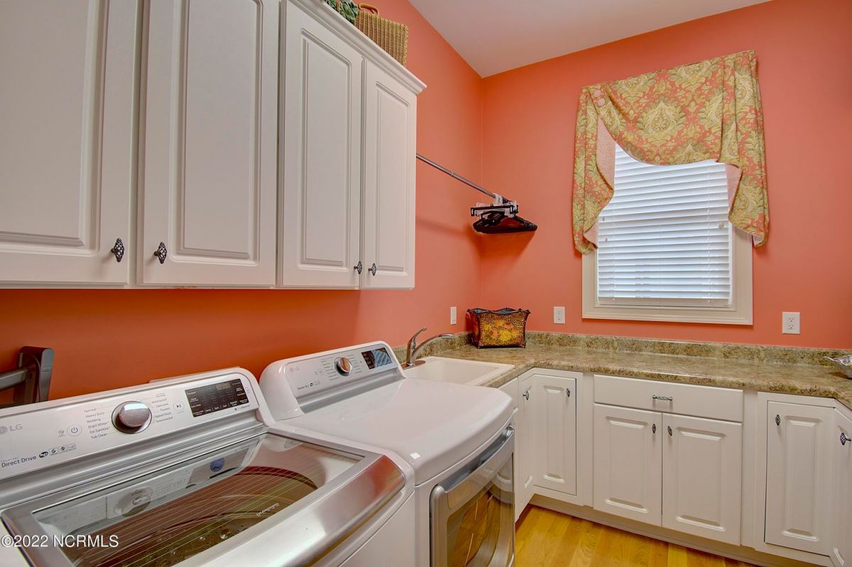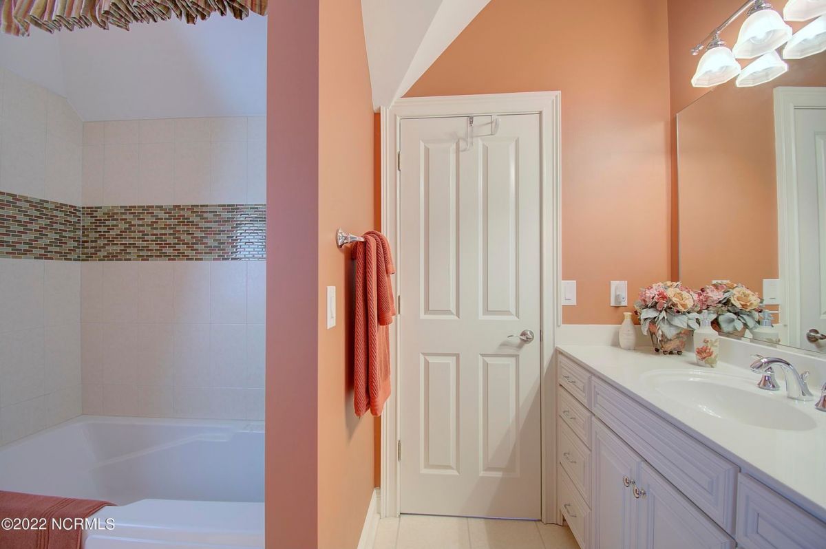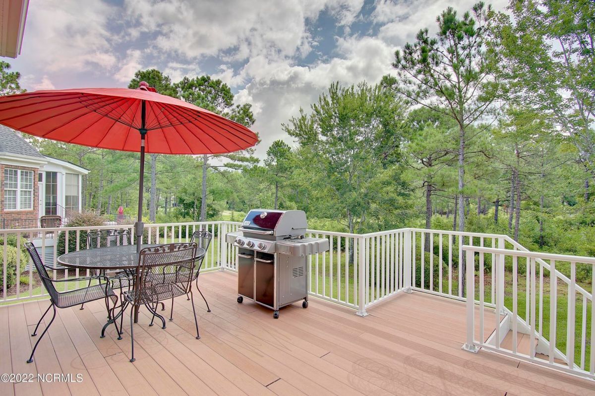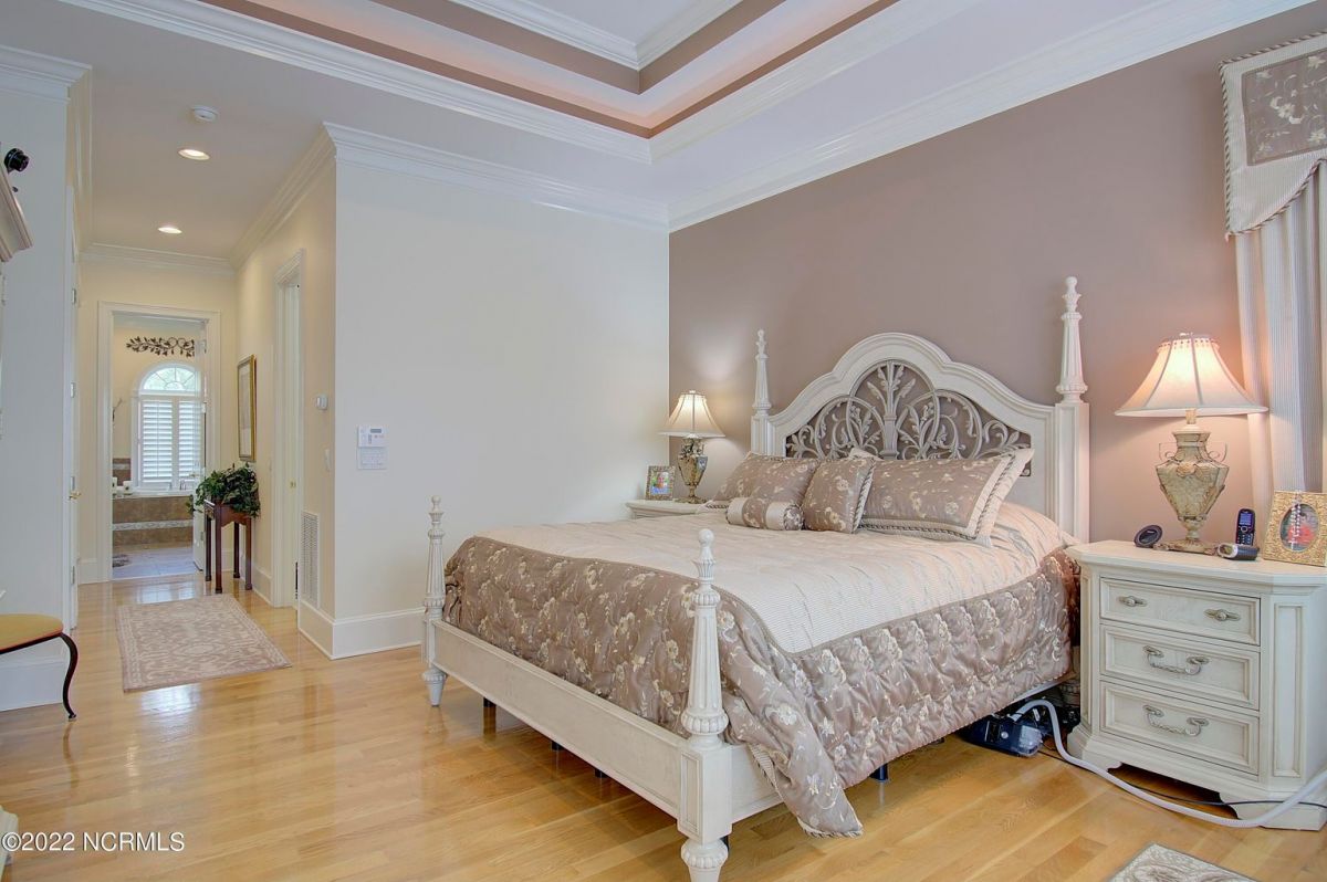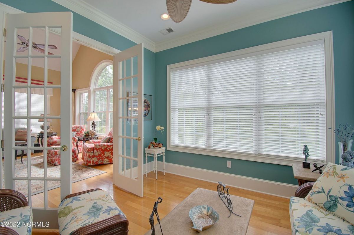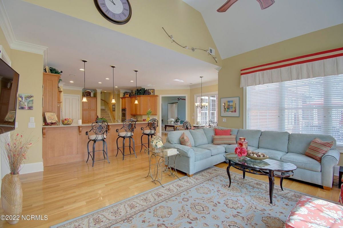 Must-see Ocean Ridge custom home built with attention to detail in mind and a rare 3-car garage! The open floor plan highlights the entertainment options as you move from the formal living room, the formal dining room to the open kitchen. Vaulted and trey ceilings with arched windows throughout. The huge kitchen features gleaming custom cabinets, an island, granite countertops, stainless steel appliances, a double oven, and a warming drawer. Breakfast nook and large family room are directly off of the kitchen. The Primary Suite offers a large bedroom with a trey ceiling and sitting area, the dressing closet with built-ins for everything, and a large bathroom with a soaker tub, a walk-in tiled shower, and twin vanities. 2nd guest bedroom downstairs with a full bathroom for your guests. Large laundry area has a built-in desk, room for a spare fridge, and lots of cabinetry storage. Head upstairs to find a 3rd living area/tv room and a 3rd bedroom with a full bath. The attic has a huge storage area with great shelving and flooring for all of your extras. 3 car oversized garage. Beautiful low maintenance brick exterior, composite decking, and extensive landscaping with curbed bedding in front and an irrigation system. Beautiful setting out back to enjoy a morning coffee or an afternoon beverage or three as you get a sneak peak of the hackers at a par 3 on Leopard's Chase Golf Course from afar. Ocean Ridge has it all with its 4 golf courses, 2 golf clubhouses, a beach clubhouse on Sunset Beach, a heated indoor pool, sauna, steam room, a jacuzzi, a banquet room, an outdoor pool, pickle ball courts, a well-equipped fitness center, walking trails, a pavilion area, a community garden, and over 50 social groups available to join. There's literally something for everyone in Ocean Ridge!