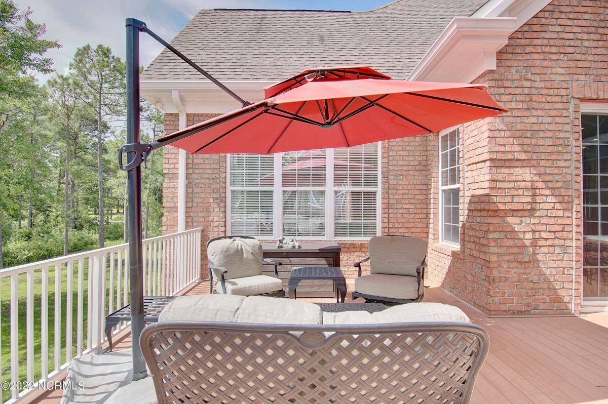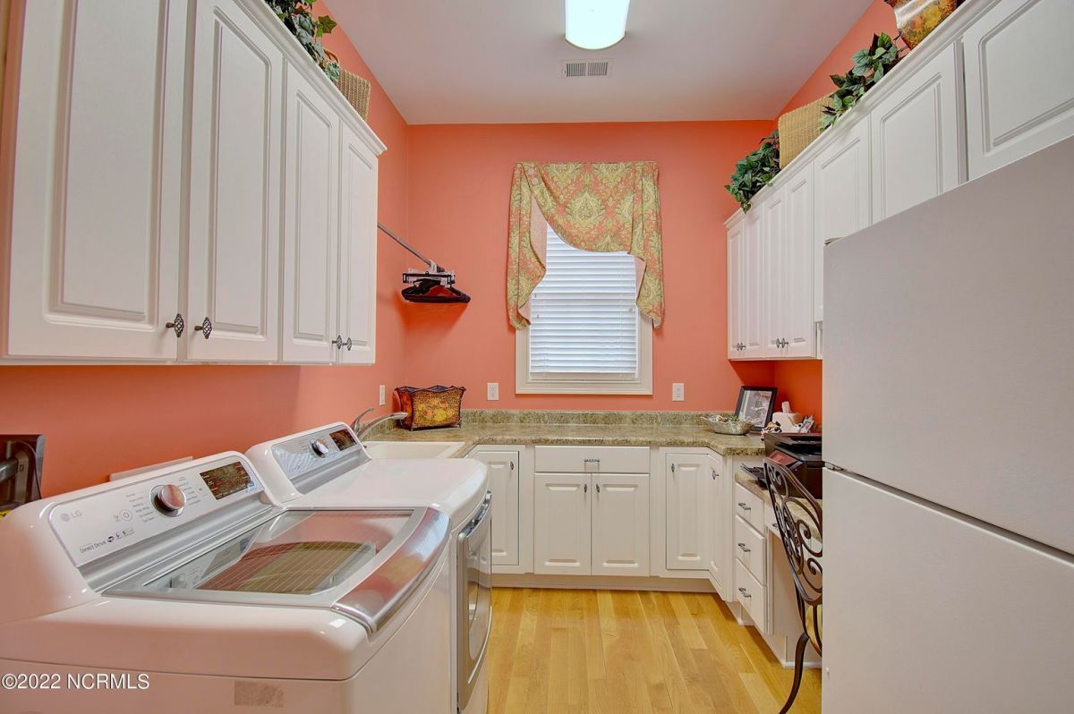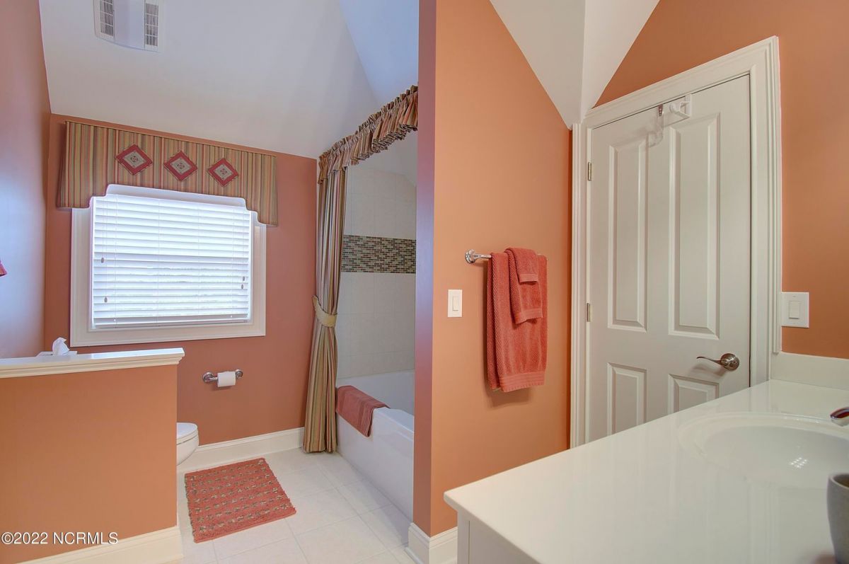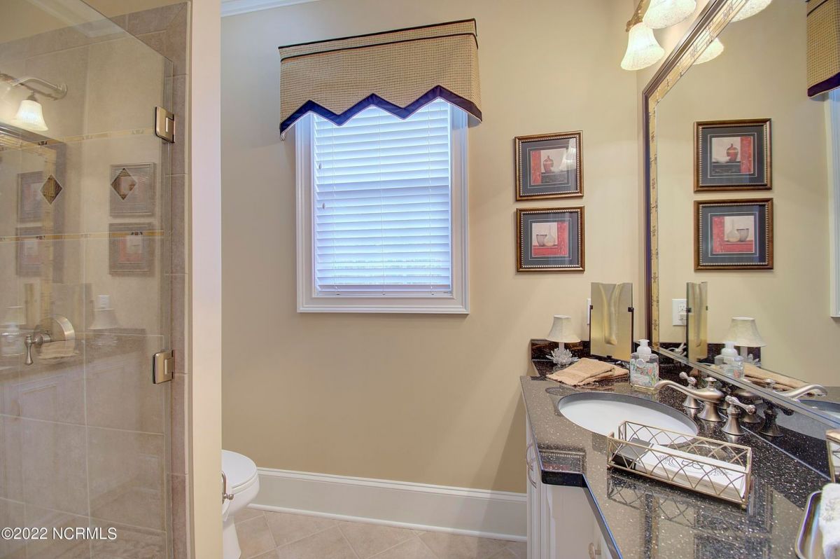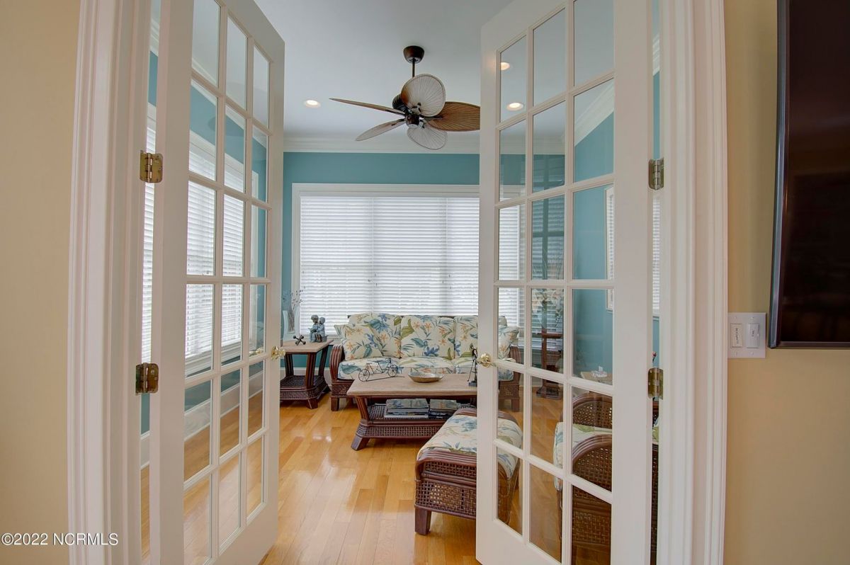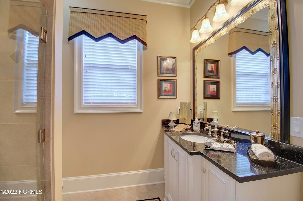 Must-see Ocean Ridge custom home built with attention to detail in mind and a rare 3-car garage! The open floor plan highlights the entertainment options as you move from the formal living room, the formal dining room to the open kitchen. Vaulted and trey ceilings with arched windows throughout. The huge kitchen features gleaming custom cabinets, an island, granite countertops, stainless steel appliances, a double oven, and a warming drawer. Breakfast nook and large family room are directly off of the kitchen. The Primary Suite offers a large bedroom with a trey ceiling and sitting area, the dressing closet with built-ins for everything, and a large bathroom with a soaker tub, a walk-in tiled shower, and twin vanities. 2nd guest bedroom downstairs with a full bathroom for your guests. Large laundry area has a built-in desk, room for a spare fridge, and lots of cabinetry storage. Head upstairs to find a 3rd living area/tv room and a 3rd bedroom with a full bath. The attic has a huge storage area with great shelving and flooring for all of your extras. 3 car oversized garage. Beautiful low maintenance brick exterior, composite decking, and extensive landscaping with curbed bedding in front and an irrigation system. Beautiful setting out back to enjoy a morning coffee or an afternoon beverage or three as you get a sneak peak of the hackers at a par 3 on Leopard's Chase Golf Course from afar. Ocean Ridge has it all with its 4 golf courses, 2 golf clubhouses, a beach clubhouse on Sunset Beach, a heated indoor pool, sauna, steam room, a jacuzzi, a banquet room, an outdoor pool, pickle ball courts, a well-equipped fitness center, walking trails, a pavilion area, a community garden, and over 50 social groups available to join. There's literally something for everyone in Ocean Ridge!