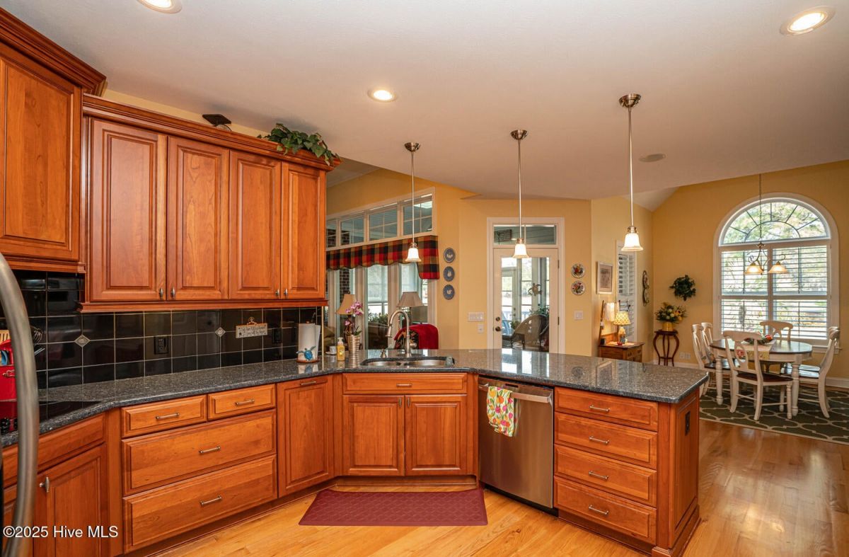 Gorgeous brick home on .54/acre with pond & golf views which is rare to find in Ocean Ridge Plantation. Backing up to the par 5 16th hole of Panther's Run, this home sits on a private eyebrow. Watch the hackers go by on your screened-in porch with EZ Breeze windows or while you're grilling from the huge paver patio. As you step in the foyer, you're greeted with gleaming hardwood floors with custom accents. The formal dining area off the foyer has plenty of room for the entire family or your friends. Great home for entertaining with the open living room, formal dining room, a breakfast nook, and a separate bar and den area off of the breakfast nook. The large kitchen has granite counters, stainless steel appliances, a huge pantry, and tons of cabinet space. Split floor plan with the primary suite on one side & the 2 guest bedrooms on the other which share a jack and jill bath. Primary bath has dual vanities, granite counters, and a tiled walk-in shower. Expansive bonus room upstairs with a full bath opens up a myriad of options - a 4th bedroom, a craft room, or another TV room. Walk-in attic for all of your extras. New roof and a tankless rinnai in 2023. The screened-in porch has a split unit for heating and cooling in the hot/cool months although it doesn't count towards the square footage since it's not glassed in. With our great year-round weather, the owners used this space as another living area. It's rare that a home this well-maintained with both pond and golf views comes on the market so come see this one before it goes! Ocean Ridge Plantation is widely regarded as the premier community in Coastal NC with 4 golf courses, 2 golf clubhouses/restaurants, a heated indoor pool, sauna, steam room, jacuzzi, fitness center, outdoor pool, pickleball courts, a nature pavilion, a community garden, walking trails, and an oceanfront beach clubhouse on Sunset Beach. Over 75+ social groups/activites so there's something for everyone. 2nd/new amenity center opening soon.