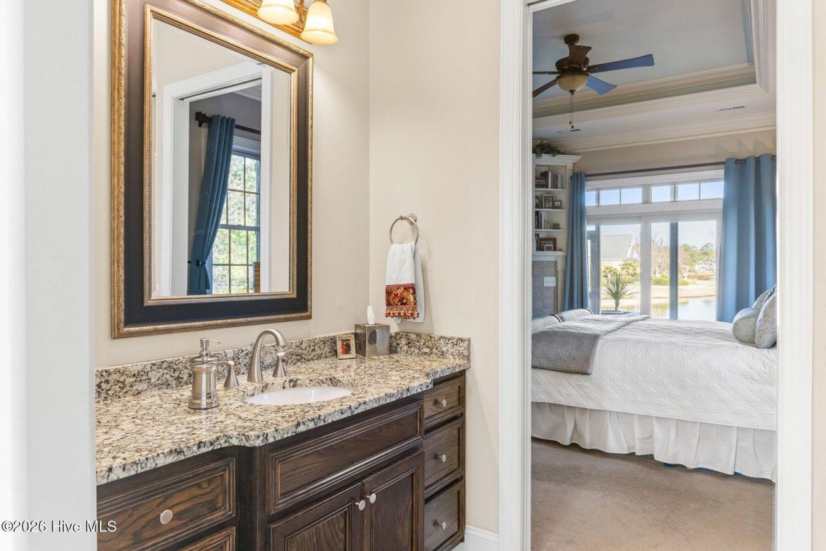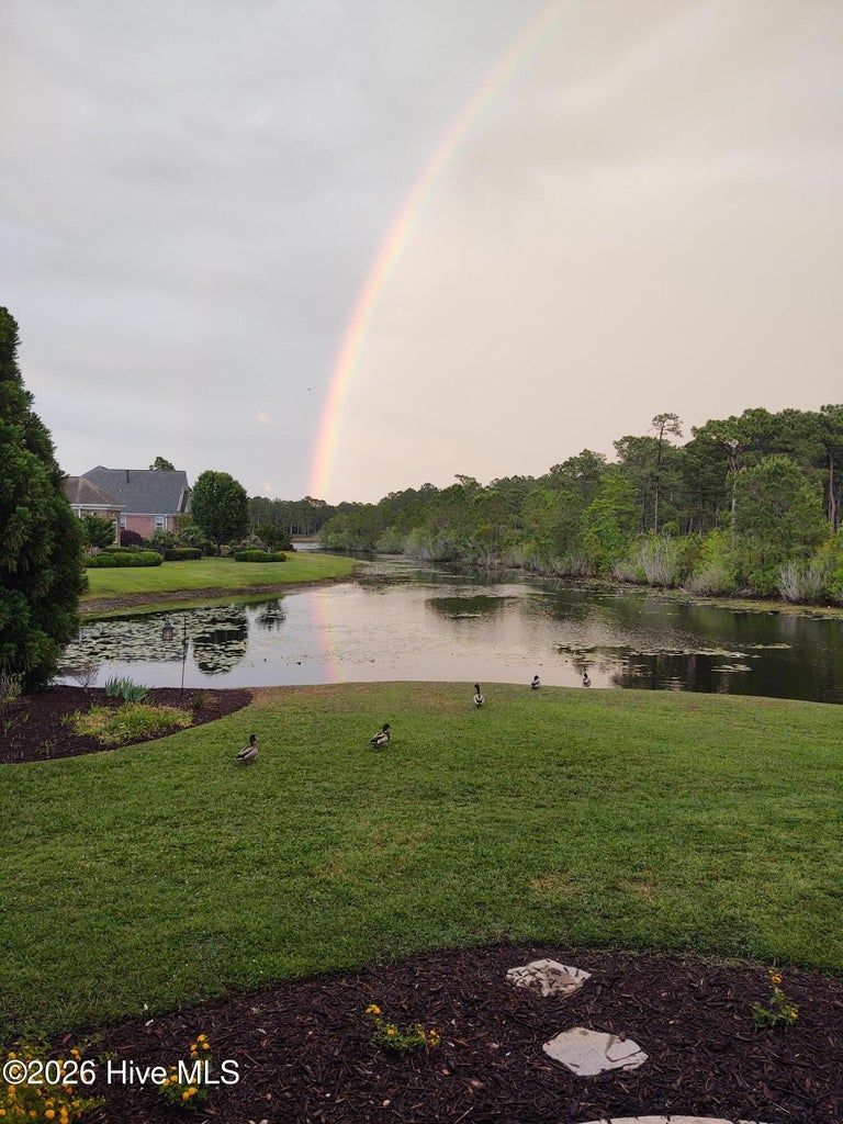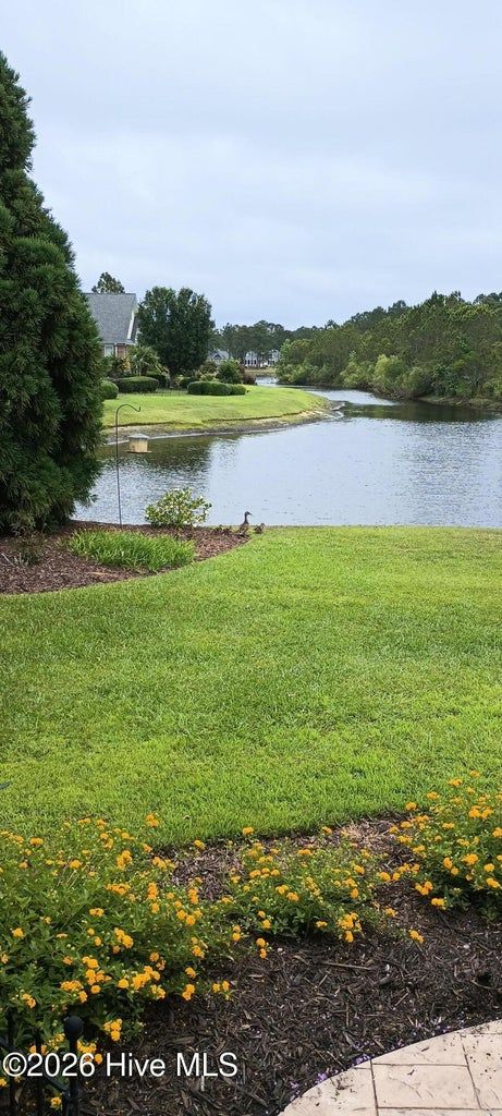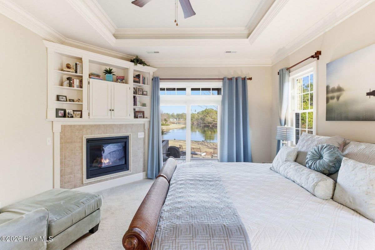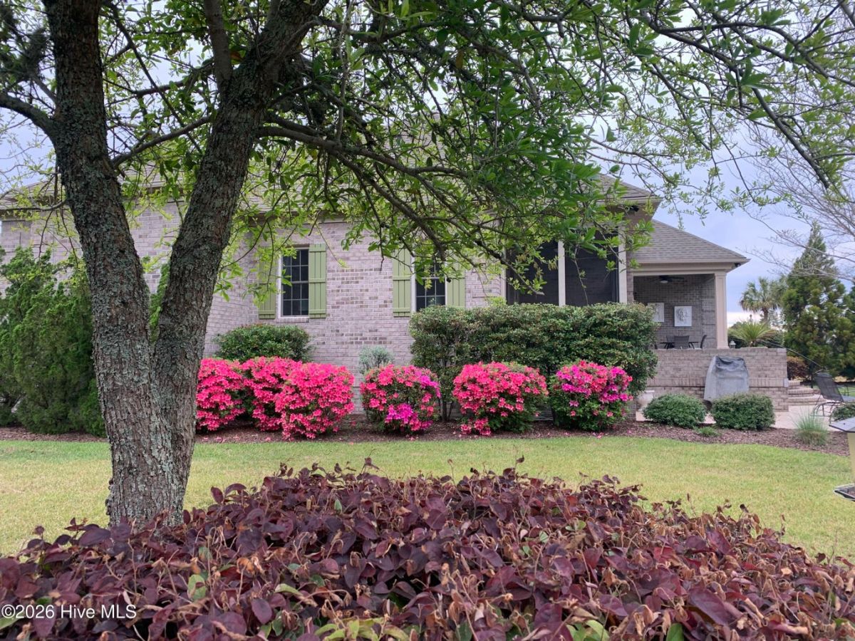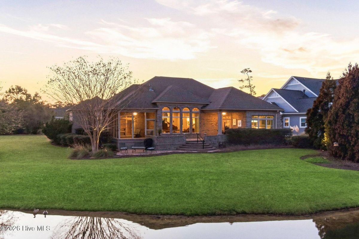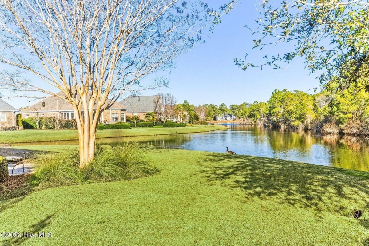 Some homes capture water views. This one lives in them. Custom built and meticulously maintained by its original owner, this full-brick waterfront residence offers 2,673 square feet of thoughtfully designed living within the prestigious gates of Ocean Ridge Plantation. Positioned at the end of a quiet cul-de-sac, the setting enhances both privacy and presence. Expansive windows frame open water across the homesite, while a natural forested edge adds depth and seclusion -- a perspective that feels grounded, peaceful, and rare. The home offers three bedrooms and three full baths, with two bedrooms located on the main level and a private third bedroom upstairs. Morning light glides across the water from the covered screened porch as birds and wind through the trees become the soundtrack. By afternoon, reflections settle into long, quiet lines, creating a view that shifts beautifully throughout the day. Inside, hardwood flooring, elevated ceilings, custom trim, and built-ins add warmth and character. The living room fireplace anchors the space while drawing the eye naturally toward the water beyond. The kitchen blends refinement and function with granite countertops, GE appliances, generous cabinetry, and a layout designed for everyday living and entertaining. The main-level primary suite offers its own retreat with fireplace, built-ins, dual vanities, separate closets, jetted soaking tub, and direct porch access. A second main-level bedroom (currently styled as an office) is positioned near an additional full bath. Upstairs, a spacious third bedroom with its own full bath provides ideal guest privacy. Built with longevity in mind: full brick exterior, whole-home generator, encapsulated crawlspace with dehumidification, and transferable termite bond (2023). Ocean Ridge Plantation amenities include indoor/outdoor pools, fitness, pickleball, walking paths, championship golf, and a private oceanfront beach clubhouse at Sunset Beach. A carefully built one-owner home capturing one of the community's most compelling water perspectives - where structural integrity and coastal lifestyle meet