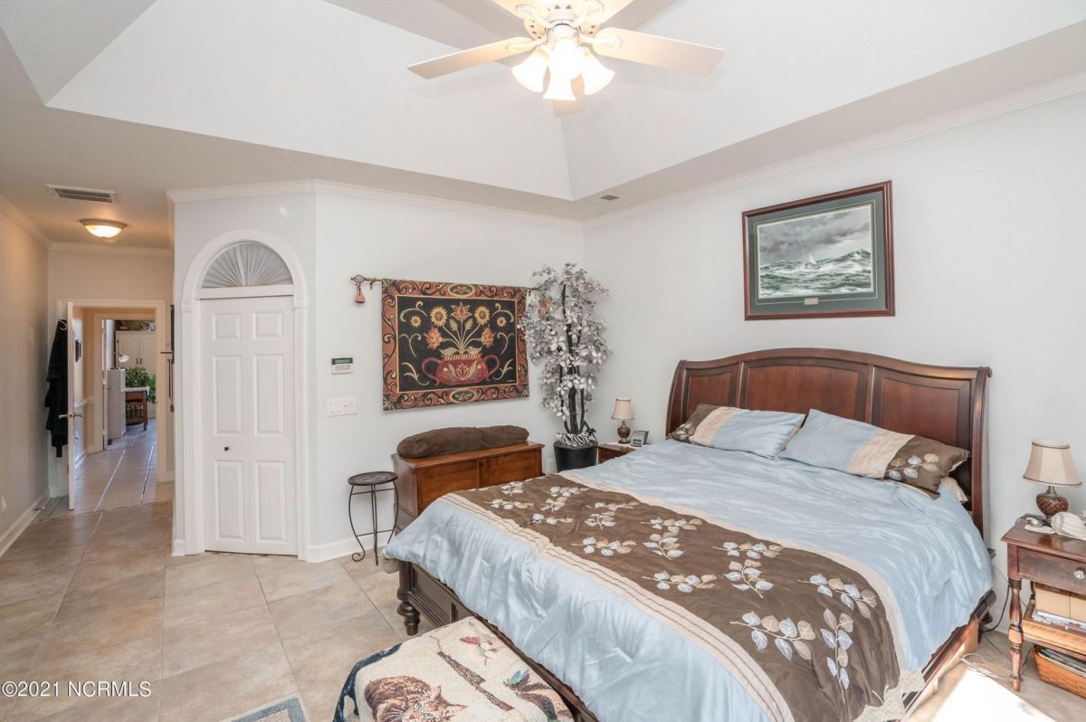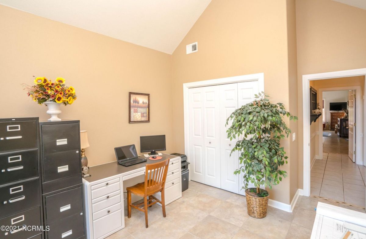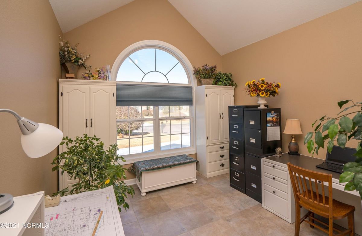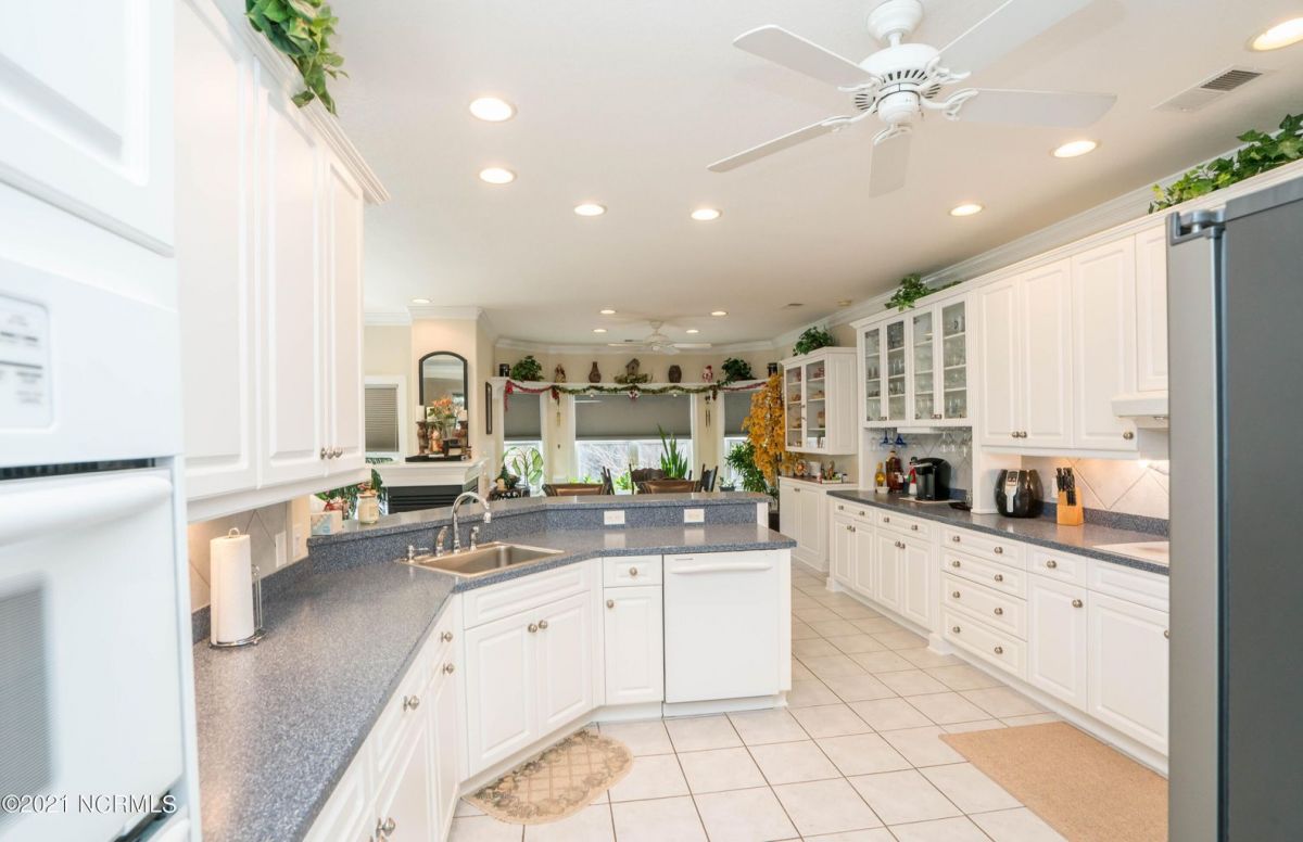 Curb appeal abounds! This beautiful brick home sits at the end of a quiet cul-de-sac with a sweeping driveway delivering you to the front door. The entryway opens to the formal dining room to the right and the vaulted ceiling living room. Entertainment options immediately come to mind. Ceramic tile throughout makes it very easy to maintain. Chair rail and crown molding throughout. The kitchen, with its oven/microwave combo, French door refrigerator, ceramic cook-top, and 'miles' of counters and cabinets make it clear that this is the perfect party house. The less formal kitchen dining option is also available. Then look back to sliding doors in the living room opening to the large deck! Sit with your morning or afternoon beverage of choice and watch the waterfowl come in for a landing on the pond! This home offers the always popular split floor plan with the primary bedroom suite behind the living room. The highlights in the primary bedroom suite are a vaulted ceiling, large window with a pond view, large walk-in closet, private bath with dual vanity, a walk-in tiled shower, a large soaking tub, and a separate water closet. A separate office completes this suite. On the opposite side of the home are two guest rooms, each with its own full bathroom. The separate laundry room features cabinets galore, a hanging rack, a sink, and a folding counter. Oversized 2 car garage with an additional 500 square feet of storage space in the walk up floored attic. And, last but not least, this oasis sits in the one and only Ocean Ridge Plantation! Ocean Ridge is widely regarded as the premier community in the Coastal Carolinas with its 4 golf courses, 2 golf clubhouses, a Clubhouse with a heated indoor pool, sauna, steam room, jacuzzi, well-equipped fitness center, banquet room, tennis/pickle ball courts, walking trails, a nature pavilion, over 50 social groups, a community garden, and a beach clubhouse on famed Sunset Beach. There is something for everyone in Ocean Ridge!