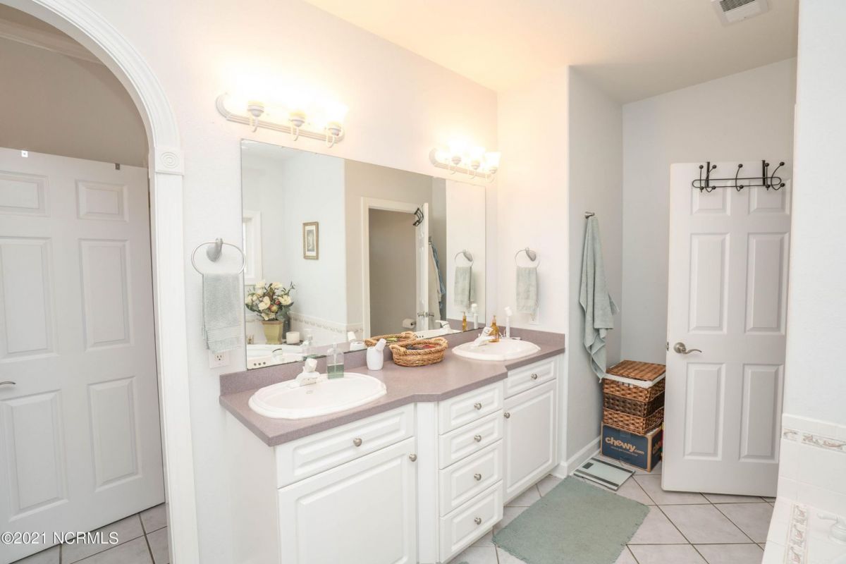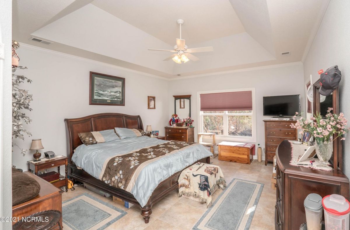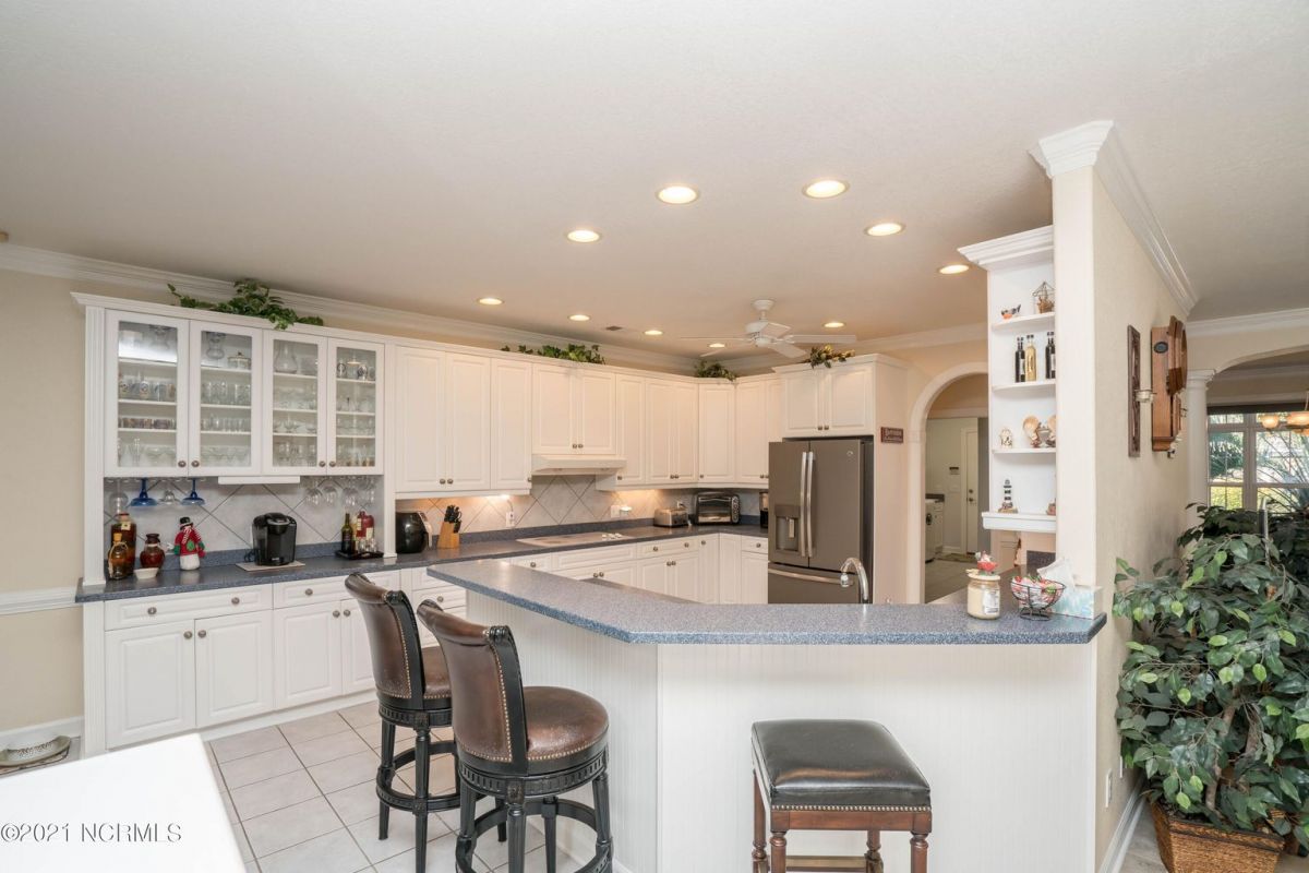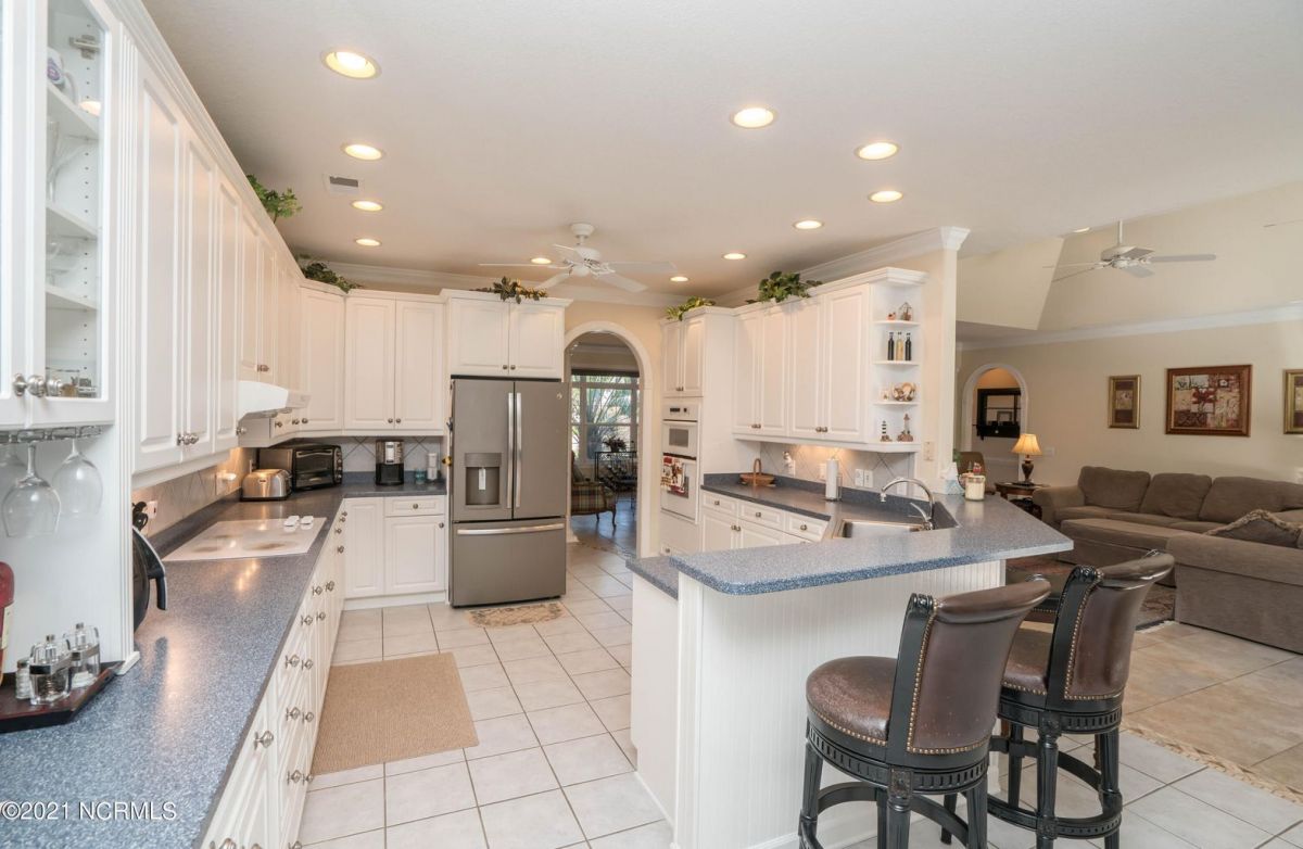 Curb appeal abounds! This beautiful brick home sits at the end of a quiet cul-de-sac with a sweeping driveway delivering you to the front door. The entryway opens to the formal dining room to the right and the vaulted ceiling living room. Entertainment options immediately come to mind. Ceramic tile throughout makes it very easy to maintain. Chair rail and crown molding throughout. The kitchen, with its oven/microwave combo, French door refrigerator, ceramic cook-top, and 'miles' of counters and cabinets make it clear that this is the perfect party house. The less formal kitchen dining option is also available. Then look back to sliding doors in the living room opening to the large deck! Sit with your morning or afternoon beverage of choice and watch the waterfowl come in for a landing on the pond! This home offers the always popular split floor plan with the primary bedroom suite behind the living room. The highlights in the primary bedroom suite are a vaulted ceiling, large window with a pond view, large walk-in closet, private bath with dual vanity, a walk-in tiled shower, a large soaking tub, and a separate water closet. A separate office completes this suite. On the opposite side of the home are two guest rooms, each with its own full bathroom. The separate laundry room features cabinets galore, a hanging rack, a sink, and a folding counter. Oversized 2 car garage with an additional 500 square feet of storage space in the walk up floored attic. And, last but not least, this oasis sits in the one and only Ocean Ridge Plantation! Ocean Ridge is widely regarded as the premier community in the Coastal Carolinas with its 4 golf courses, 2 golf clubhouses, a Clubhouse with a heated indoor pool, sauna, steam room, jacuzzi, well-equipped fitness center, banquet room, tennis/pickle ball courts, walking trails, a nature pavilion, over 50 social groups, a community garden, and a beach clubhouse on famed Sunset Beach. There is something for everyone in Ocean Ridge!