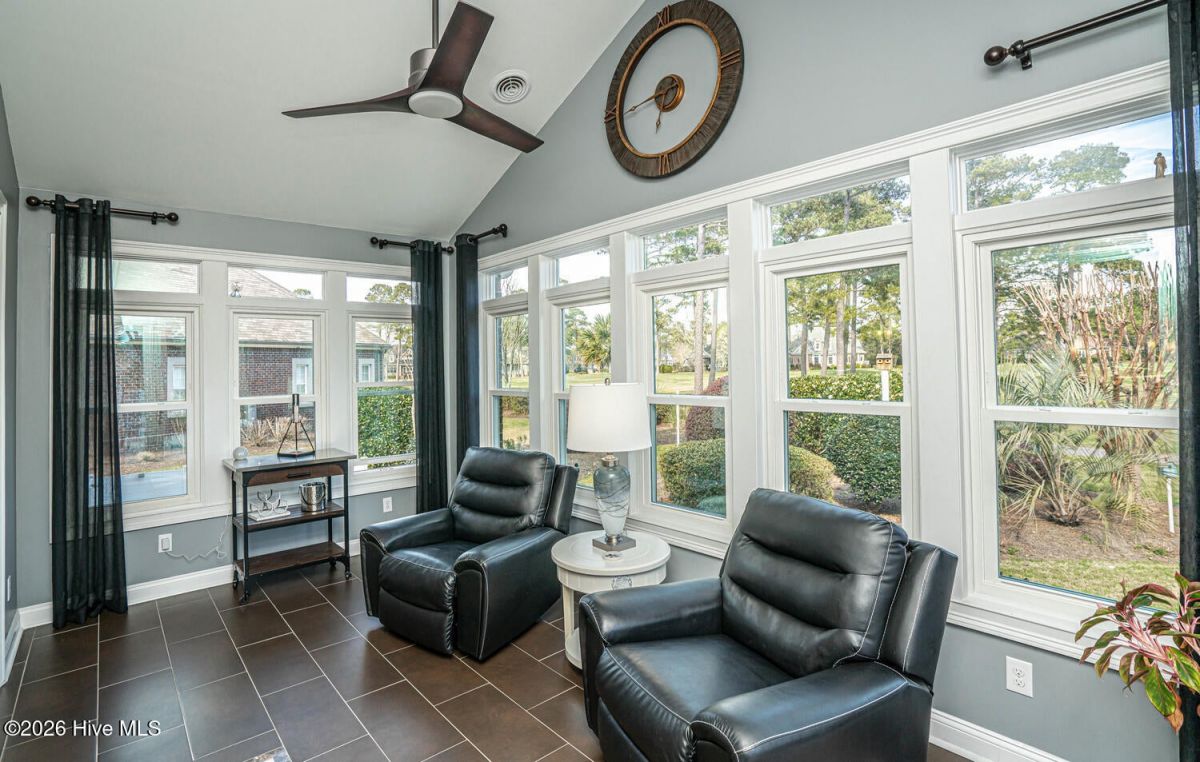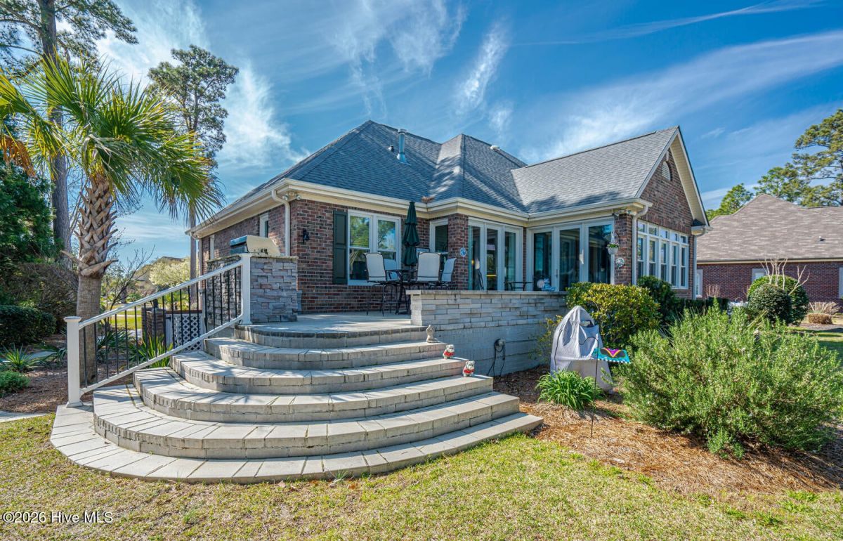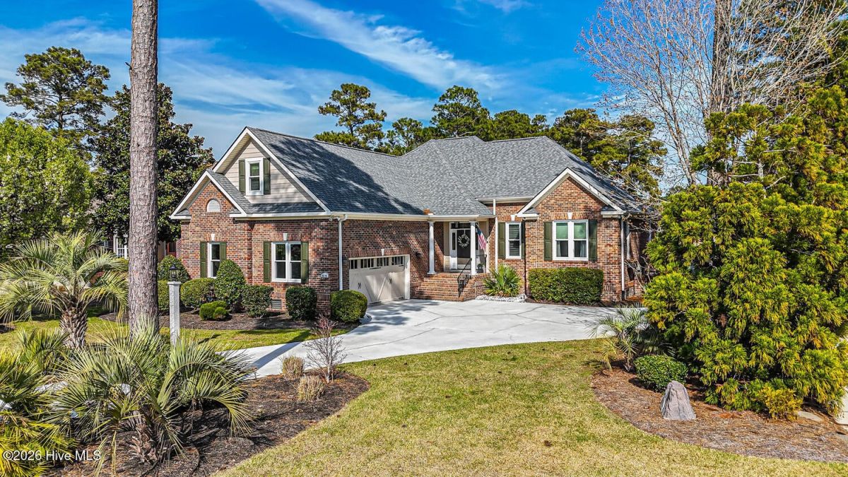 Almost completely renovated within the last few years, this low-maintenance 3BR/3BA brick beauty is located on a quiet notch in the heart of Ocean Ridge Plantation. This home backs up to the par 4 15th green of Panther's Run Golf Course so you can see the approach shots come in from the beautifully renovated sunroom. New glass along the back of the home to enjoy abundant natural light and the breathtaking setting with pond/golf views and mature landscaping. Huge outdoor paver patio to enjoy our year-round temperate climate and an outdoor kitchen. A common area out in front of the home provides an additional buffer for even more privacy. This 2513 square foot home offers the coveted split floor plan with the primary bedroom on one side and the 2 guest bedrooms on the other side for added privacy for all. Bonus room upstairs has a full bath and is currently being used as a bedroom, but it could also be a great entertainment or craft room. Features an open kitchen overlooking the cozy living room anchored by a beautiful fireplace/mantle. The kitchen was completely remodeled with granite, tile backsplash, painted/refinished cabinets, and newer stainless steel appliances. Both bathrooms downstairs were renovated within the last few years with new tiled showers, vanities, sinks, toilets, and a soaking tub in the primary bath. Other recent upgrades include the re-stained wood flooring in the living room, beautiful tiled flooring throughout much of the main level, new lighting/ceiling fans, a whole-house water filtration system with reverse osmosis in the kitchen, a new roof in 2022, crawl space was encapsulated by the current owners with a dehumidifier, an epoxy garage floor, and a new HVAC in 2017 (and air handler replaced in 2025). So many updates it's hard to list them all...This one is move-in ready! A must-see in Ocean Ridge Plantation which is widely regarded as the premier community in southern NC. Ocean Ridge is home to 4 great golf courses, 2 golf clubhouses, 2 amenity centers with a heated indoor pool, jacuzzi, sauna, steam room, 2 outdoor pools, pickleball courts, a newly remodeled fitness center, meeting/party rooms, a nature pavilion, walking trails, a community garden, & a beach clubhouse on the locals favorite, Sunset Beach!
