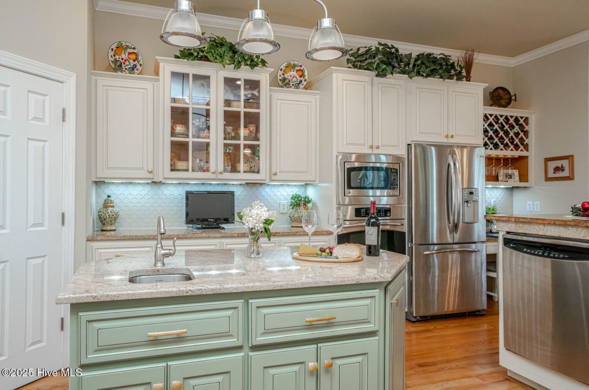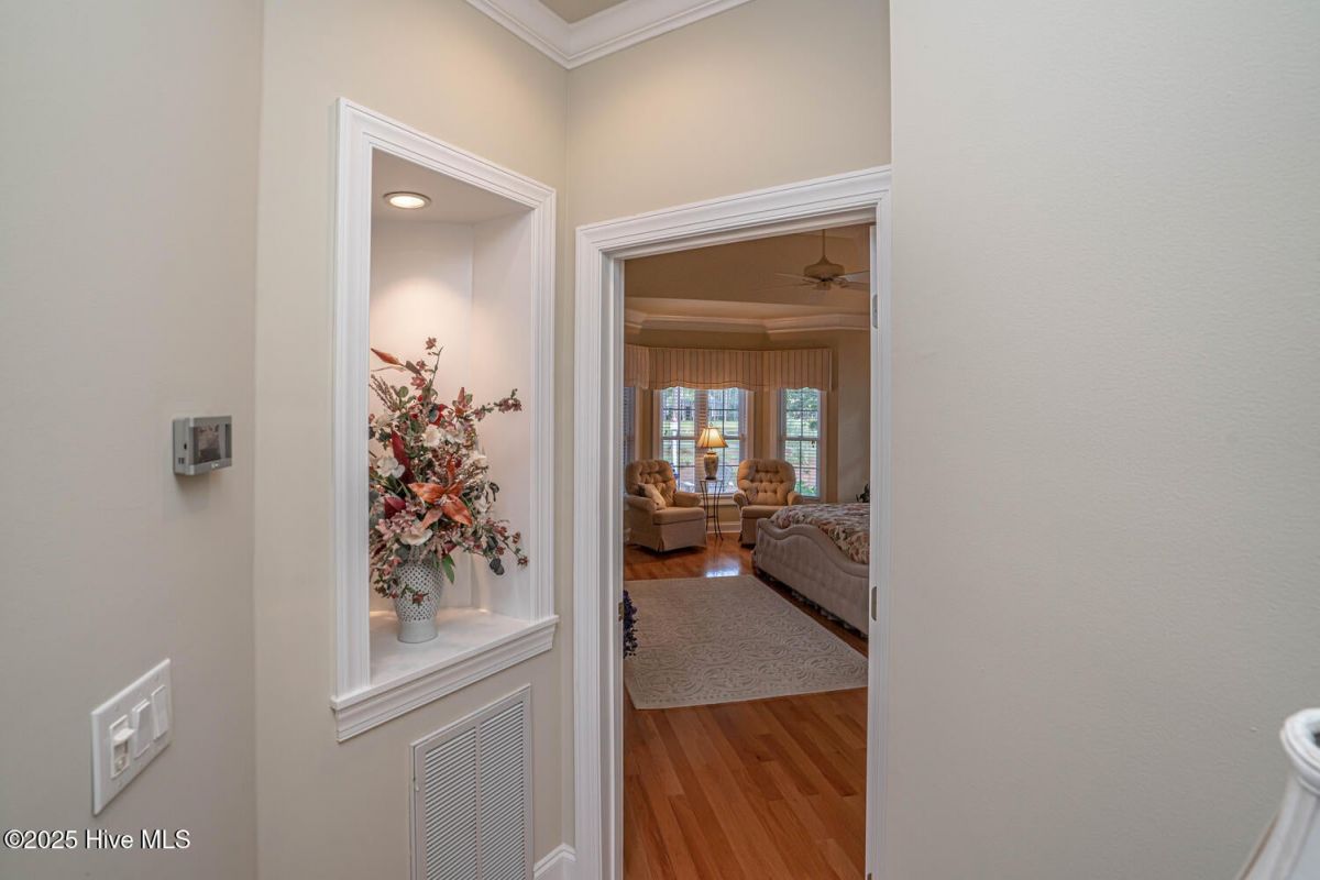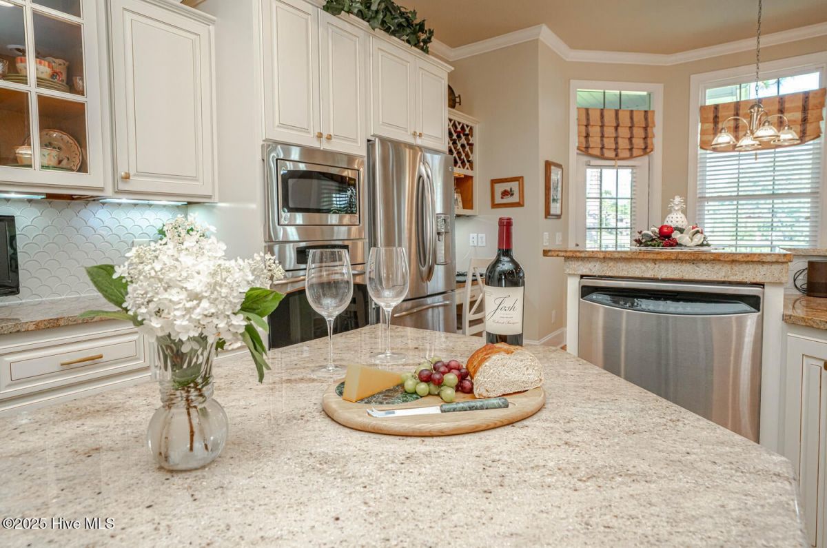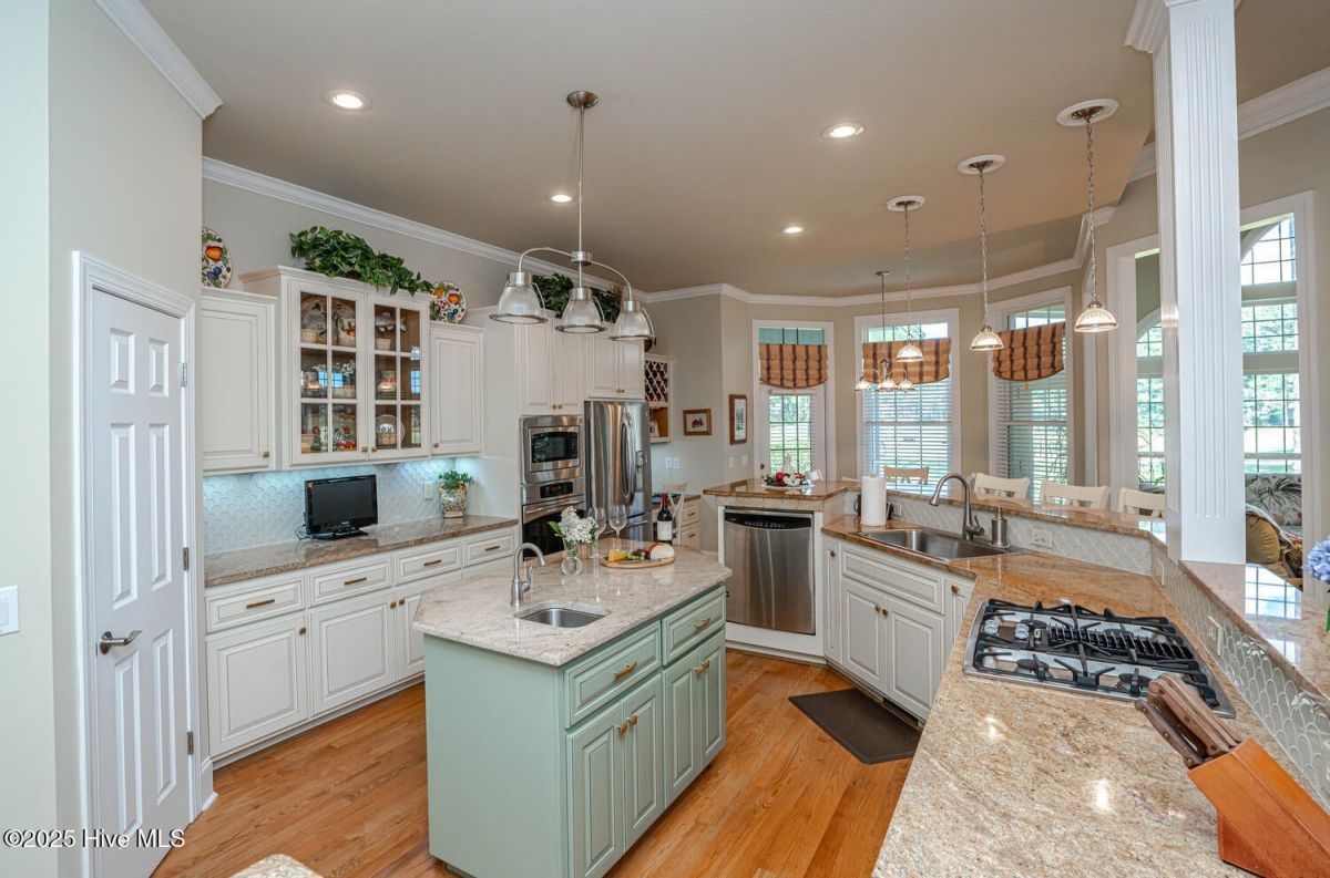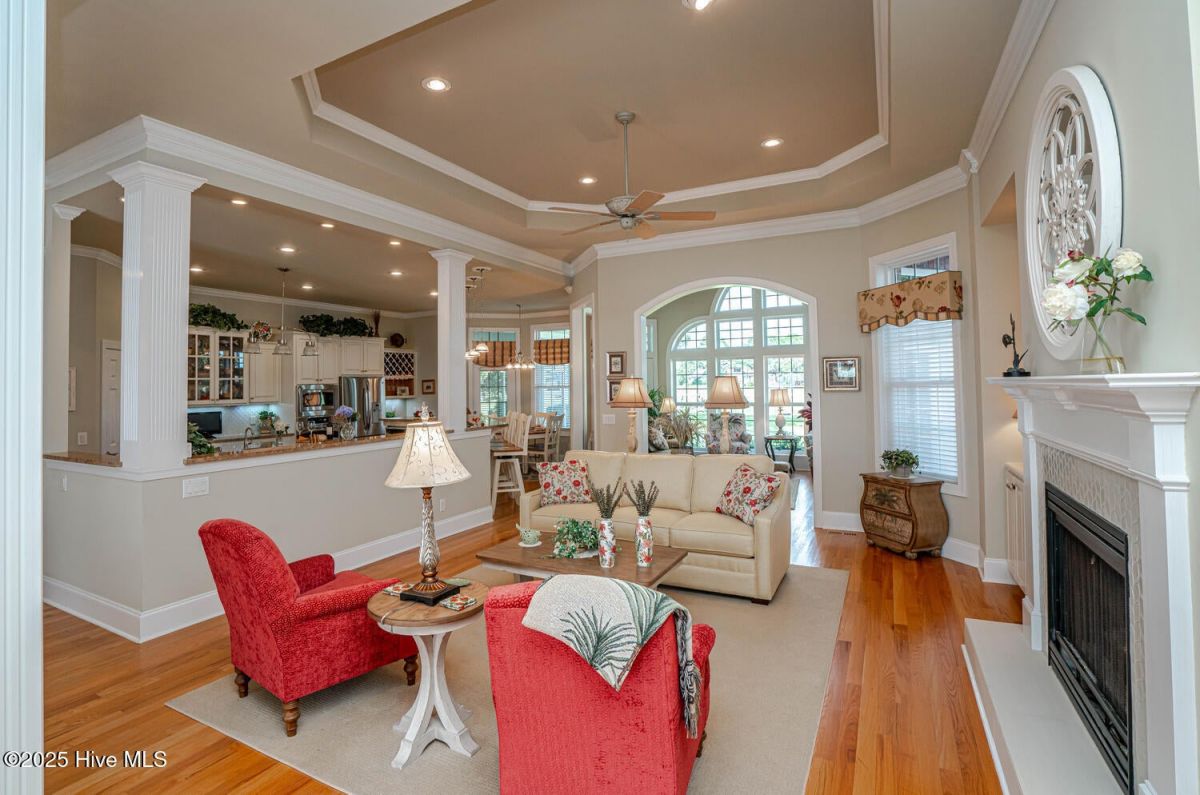 Have a look at this impeccably maintained brick beauty! Gorgeous & mature landscaping outside on .49/acre with so many updates inside! Green-to-tee golf course & pond views of the 15th hole of Panther's Run Golf Course. This home was built w/ entertaining in mind. The kitchen was tastefully redesigned to open up to the living room. Plenty of room to gather around the sprawling granite counters w/ 3 bar stools, refinished custom cabinetry w/ custom pull-outs, elegant backsplash, & a huge granite work island. Stainless Steel GE Profile appliances w/ a counter depth fridge, a gas cooktop, built-in microwave, & a warming drawer below the oven. A deep pantry & an office area complete the kitchen. Formal dining room for those special occasions & a breakfast nook for day-to-day use. The sun room's arched windows allow for natural light to pour in w/ the desirable eastern exposure offering morning sun & afternoon shade. Soak in the views of the golf course, pond, & the assortment of birds that frequent the back yard. The expansive primary bedroom has it's own cozy fireplace, 2 huge walk-in custom closets, dual sinks w/ granite counters, & a massive tiled shower w/ a heater above it. Your company will be staying in style as they take in the golf/pond views & their own full bathroom which was renovated w/ tiled flooring, shower, & granite counters. The laundry room with ample cabinets, a spare fridge, & a work sink completes the first floor. The sleek & modern staircase to the 2nd floor leads to the 3rd BR which also has a full BA. Walk-up floored attic & 2 additional storage areas for all of your extras. Gas Pack for improved heat efficiency in the few cooler months, a generator hook-up, 2 fireplaces, & an encapsulated crawl space w/ a dehumidifer. The screened-in porch w/ stamped concrete is the perfect spot for your morning coffee or an afternoon adult beverage while taking in the amazing views. Upgraded trex deck for lounging and grilling. This home is truly special! Ocean Ridge is widely regarded as the premier community in Coastal NC with its beautiful custom homes, gorgeous landscaping, 4 golf courses, 2 clubhouses with outdoor pools, a heated indoor pool, sauna, steam room, jacuzzi, a fitness center under renovation currently, pickleball courts, meeting/party rooms, a nature pavilion, walking trails, a community garden, and last but not least, a beach clubhouse on the locals' favorite, Sunset Beach. Ocean Ridge has something for everyone socially with over 75 social groups/activities to offer!