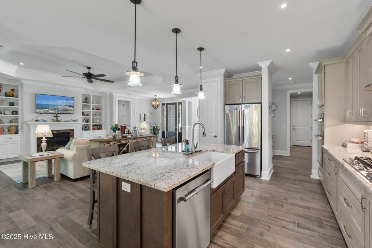 Motivated Sellers! Gorgeous Custom 4Bed/4Bath Home On .45 Acres w/3 Car Garage, Office/Bonus Room, Large Sunroom, Fenced Yard, & Open Floor Plan In Amenity Rich Gated Golf Community w/ Private Beach Club On Sunset Beach. This is luxury coastal living at its finest with all the bells and whistles! Located in the highly sought after Ocean Ridge Plantation and custom crafted by Coleman Fine Homes, this home is tucked in a prime location behind a beautiful protected green space and is seconds away from the communities newest amenity center w/ pool & pickle ball courts. As you walk in the front door, the natural light carries your eye through the open floor plan & highlights the living room, dining room, sunroom, & spacious gourmet kitchen w/informal dinning area. The kitchen boasts a gas stovetop w/pot filler & exhaust hood, under cabinet lighting, island with sink & hidden storage cabinets, bar seating, separate wet bar w/sink & wine cooler, & informal dinning area w/wainscot that opens to the sunroom & overlooks the private back yard. The living room includes a recessed ceiling, gas fireplace w/ built-in shelves & cabinetry, & large triple slider that opens to the sunroom, complete with tung & groove ceiling, dual ceiling fans, professional shades, stamped concrete flooring, & calming views of the back patio and gas fire pit. The elegant dining room has recessed ceiling, wainscoting, & chandelier. The master bedroom is located to the right of the living space and hosts a private entrance to the sunroom, recessed ceiling, dual walk-in closets, zero entry shower, deep free standing tub, dual vanities & water closet. There are 2 bedrooms on the left side of the 1st floor that share a bathroom, private office/bonus room w/recessed ceiling & bathroom behind the wet bar area, & large bedroom w/skylights & private bath upstairs. The 3 car garage includes a dog wash zone, ceiling fan, back door to side yard, & entry into convenient drop zone. The laundry room is off of the drop zone by the garage door w/sink & additional large storage room with plenty of space for extra fridge is located further through the laundry room. Some additional features include: whole house generator, Leaf Filter gutter guards, Plantation Shutters, wainscot in foyer, 3 inch LED recessed lighting in main areas, porcelain plank tile flooring in the living area, ceramic tile flooring in bathrooms, engineered wood flooring in downstairs bedrooms, carpet in upstairs bedroom, dual HVAC units w/4 zones, hose spigots & electrical outlets on every side of home, gas grill hook-up, speaker system in living & sunroom. The neighborhood amenities are paramount including Beach House w/beach access to Sunset Beach, ample pickle ball courts, multiple community pools & hot tubs, sauna, newly renovated fitness center, walking trails, & Plantation Gardens. There are also 4 award winning golf courses & 2 restaurants in the neighborhood. Call to schedule your showing today. You do not want to miss this masterpiece!