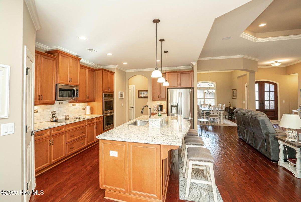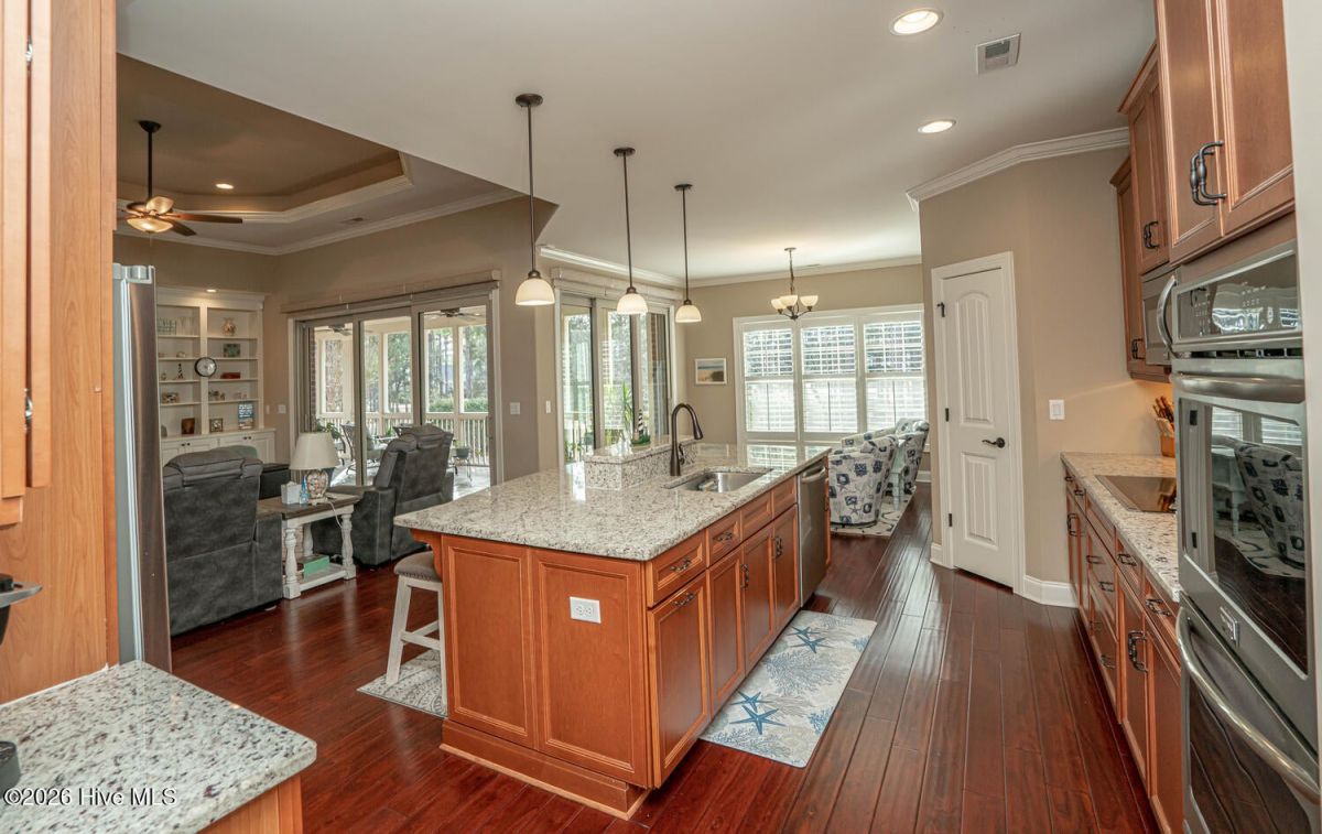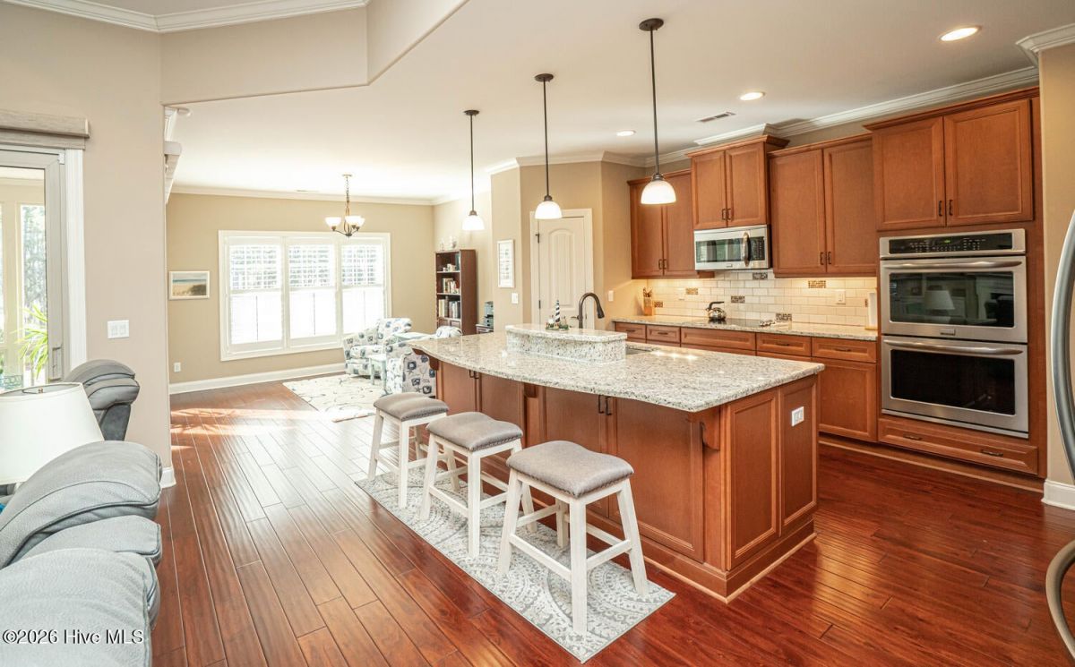 Welcome to 6609 Annesbrook, this home shows like new, offering an impressive blend of craftsmanship, comfort, & thoughtful upgrades throughout. The elegant double‑door entry opens to a bright, open floorplan with a spacious Great room and a beautifully appointed gourmet kitchen featuring under‑cabinet lighting, double ovens, a large walk‑in pantry, granite countertops, tile backsplash, upgraded appliances, an oversized island, & abundant cabinetry that makes both cooking & entertaining a pleasure. The primary suite is a true retreat, highlighted by a tray ceiling, two walk‑in closets with beautiful wood shelving, a stunning spa‑style bathroom complete with a soaking tub, walk‑in shower, & dual vanities. Two additional guest bedrooms are located on the opposite side of the home, including one enlarged during construction for exceptional comfort, along with engineered hardwood or tile flooring throughout (No Carpet) & a convenient half bath. Upstairs, a massive bonus room with a full bathroom provides ideal space for guests, hobbies, a media room, or a private getaway. An expansive screened porch offers year‑round enjoyment of the coastal climate & extends the home's living space outdoors. The entire yard, front & rear, has been recently resodded to enhance the professional landscaping, which features multiple palm trees that create a relaxing, tropical, resort‑style atmosphere, while the oversized garage includes an additional storage room for added convenience. The owners have also added a whole‑home water filtration system. Located in the desirable Ocean Ridge community, residents enjoy four championship golf courses, indoor & outdoor pools, a well‑equipped fitness center, miles of walking trails, a community garden, tennis & pickleball courts, & an Oceanfront beach clubhouse on nearby Sunset Beach. This like‑new home is ready now at a fraction of the cost of new construction, offering exceptional va Value. Make your viewing appointment today and see for yourself!