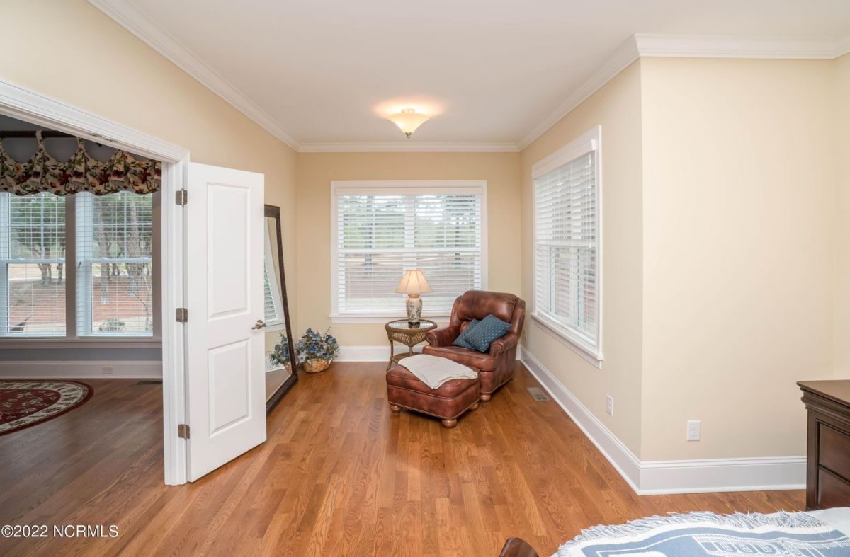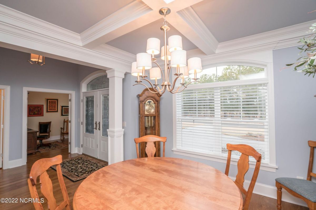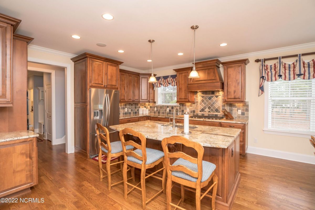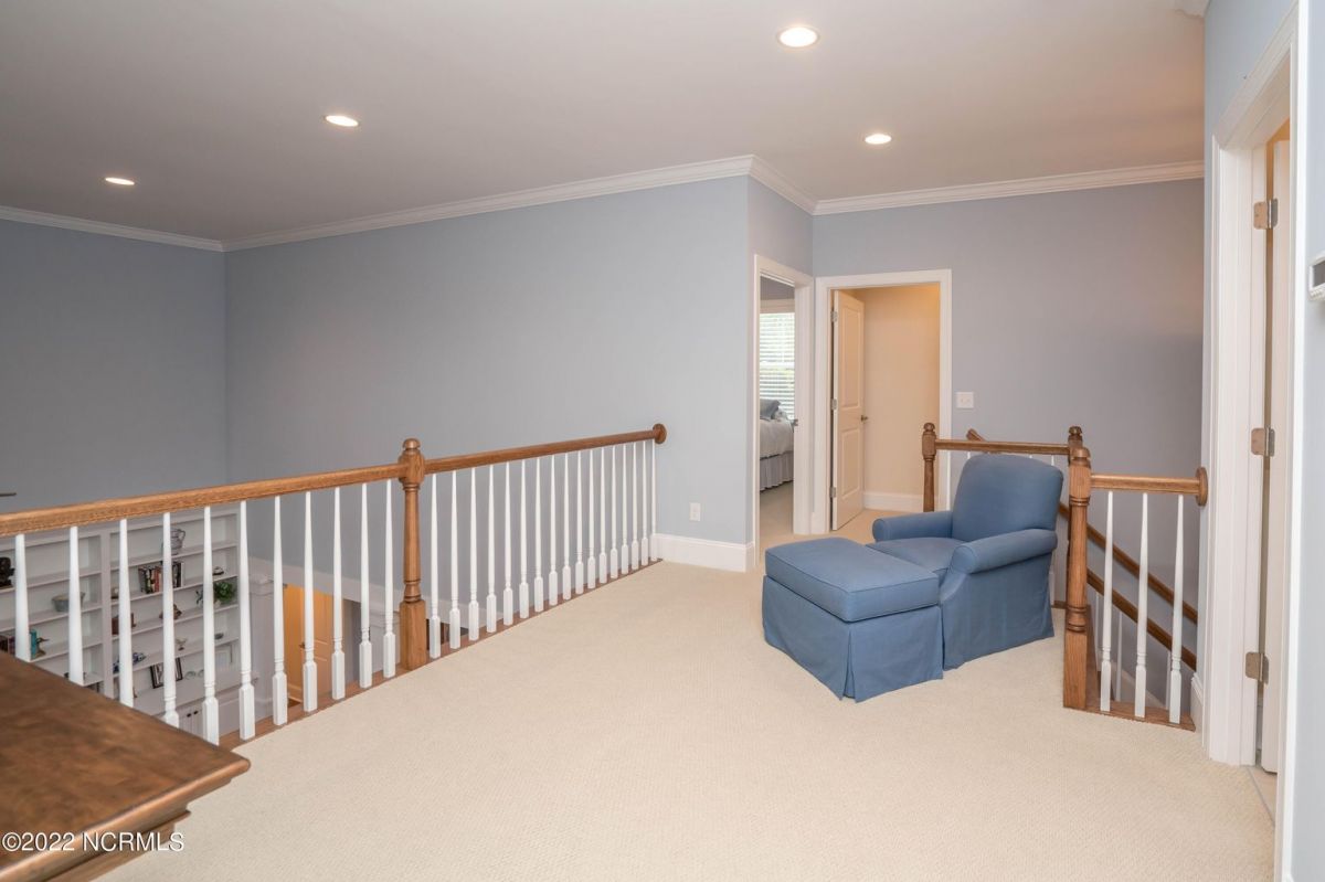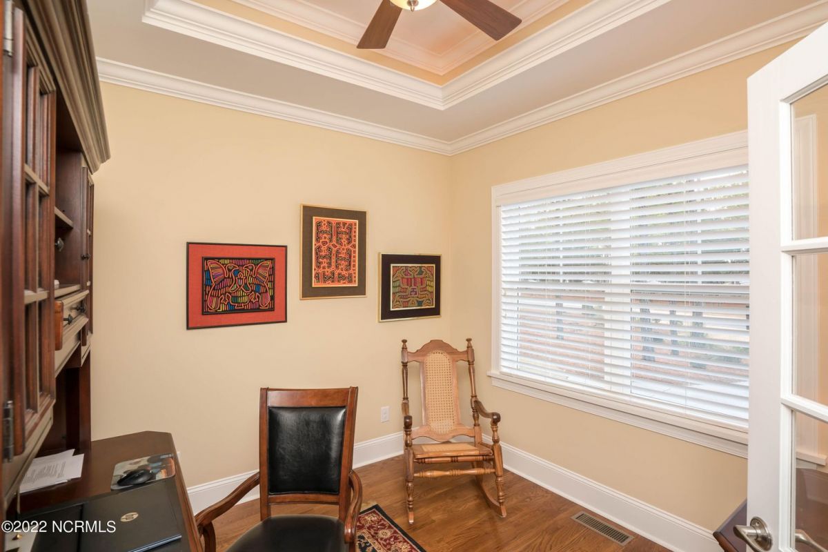 This is the house you have been looking for! This like new home combines quality, space, golf views & privacy into one. As soon as you enter through the front door, you will instantly appreciate how well this home has been maintained by the original owners. There is an office and half bath on the right when you enter. On the opposite side of the entry way you will find a spacious dining room with coffered ceilings. This dining area opens to a huge living room that features built in bookcases/cabinets along with a gas fireplace. Off of the living room there is a sunroom that is filled with natural light overlooking the golf course, a small pond and Nature. This sunroom is complete with a built in bar and provides access to the oversized stamped concrete patio. The kitchen is a chef's dream with stunning granite counter tops, tile backsplash, a gas range with hood, built in wall oven, convection oven, a huge walk in pantry and very high end cabinets. There is bar top seating at the kitchen island along with room for an eat in kitchen table. The master suite completes the first floor, as you enter the master suite through double doors, you will find a sitting area and lots of details that you expect to find in a home of this quality. The tray ceiling has rope lighting, there are two walk in closets and a stunning master bath with two vanities and a beautiful walk in shower. Upstairs there are two more guest bedrooms and a massive bonus room. Each bedroom has nice sized closets and if you need storage, make sure you check out the attic space. There is a full bathroom upstairs and a loft overlooking the living room. The garage is finished and offers additional storage or room for a work bench as well as a sink. This home is located on a quiet cul-de-sac street and overlooks the #11 hole of Leopard's Chase course. Ocean Ridge continues to be one of the most popular communities in coastal NC. Come explore this opportunity for yourself before it's too late.