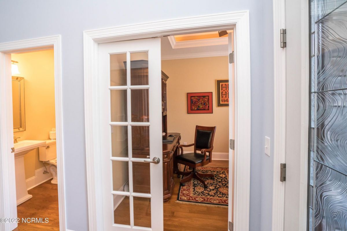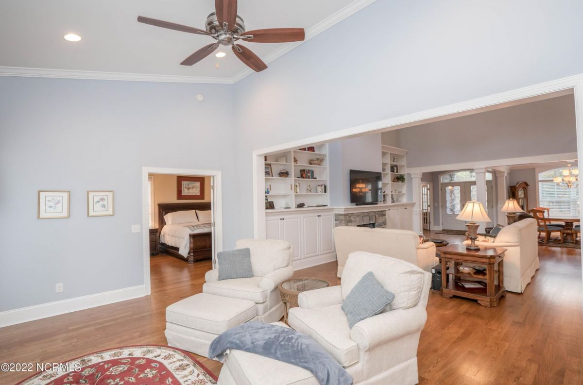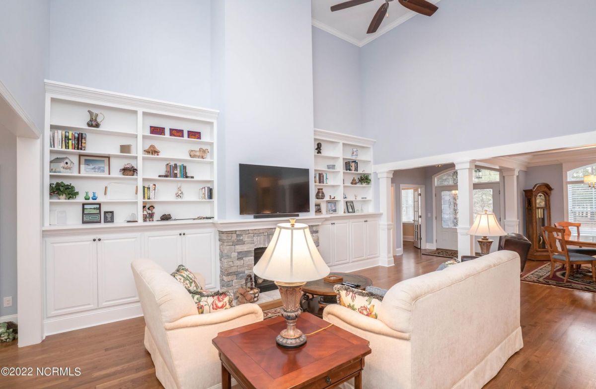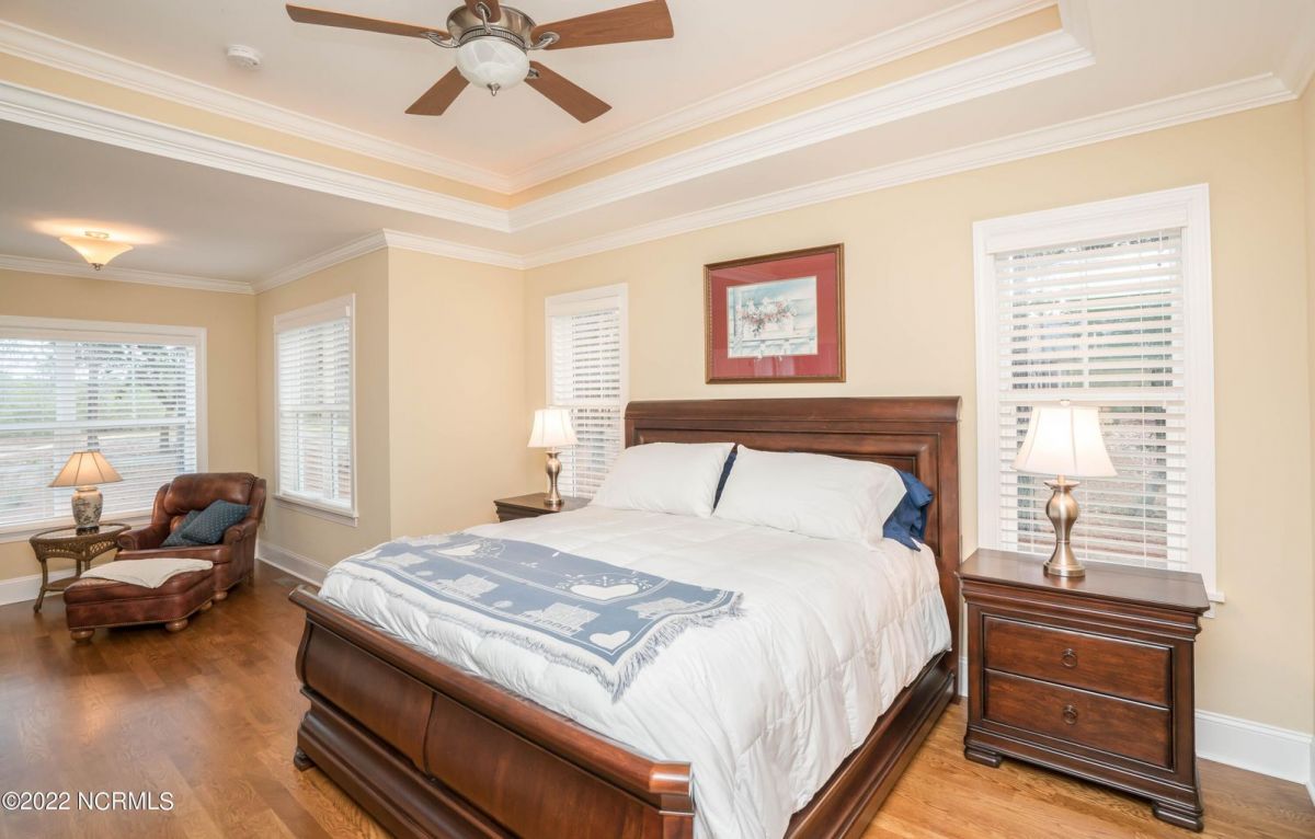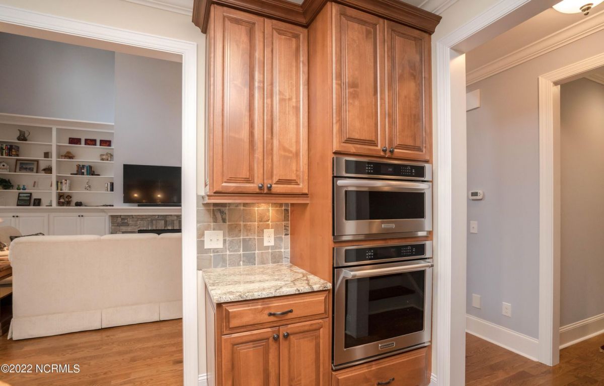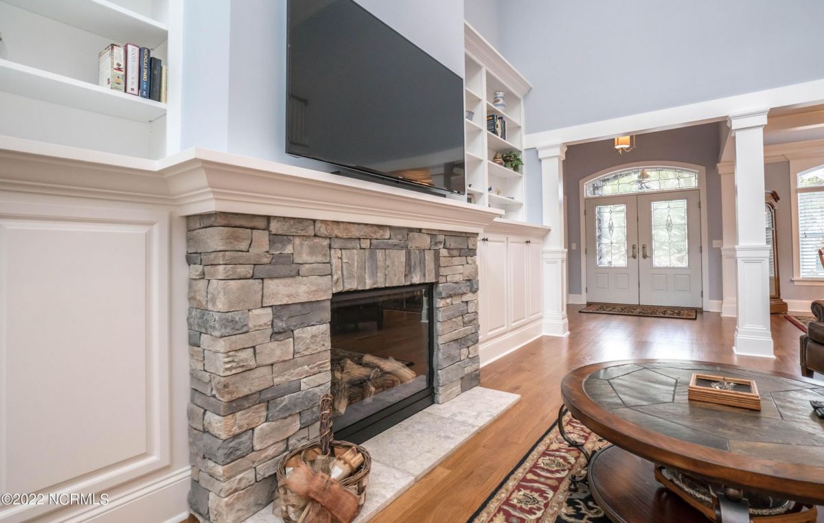 This is the house you have been looking for! This like new home combines quality, space, golf views & privacy into one. As soon as you enter through the front door, you will instantly appreciate how well this home has been maintained by the original owners. There is an office and half bath on the right when you enter. On the opposite side of the entry way you will find a spacious dining room with coffered ceilings. This dining area opens to a huge living room that features built in bookcases/cabinets along with a gas fireplace. Off of the living room there is a sunroom that is filled with natural light overlooking the golf course, a small pond and Nature. This sunroom is complete with a built in bar and provides access to the oversized stamped concrete patio. The kitchen is a chef's dream with stunning granite counter tops, tile backsplash, a gas range with hood, built in wall oven, convection oven, a huge walk in pantry and very high end cabinets. There is bar top seating at the kitchen island along with room for an eat in kitchen table. The master suite completes the first floor, as you enter the master suite through double doors, you will find a sitting area and lots of details that you expect to find in a home of this quality. The tray ceiling has rope lighting, there are two walk in closets and a stunning master bath with two vanities and a beautiful walk in shower. Upstairs there are two more guest bedrooms and a massive bonus room. Each bedroom has nice sized closets and if you need storage, make sure you check out the attic space. There is a full bathroom upstairs and a loft overlooking the living room. The garage is finished and offers additional storage or room for a work bench as well as a sink. This home is located on a quiet cul-de-sac street and overlooks the #11 hole of Leopard's Chase course. Ocean Ridge continues to be one of the most popular communities in coastal NC. Come explore this opportunity for yourself before it's too late.
