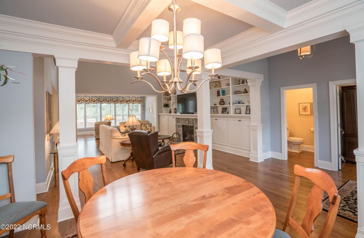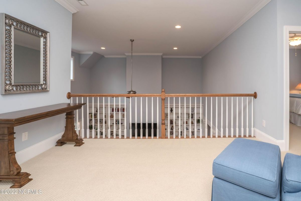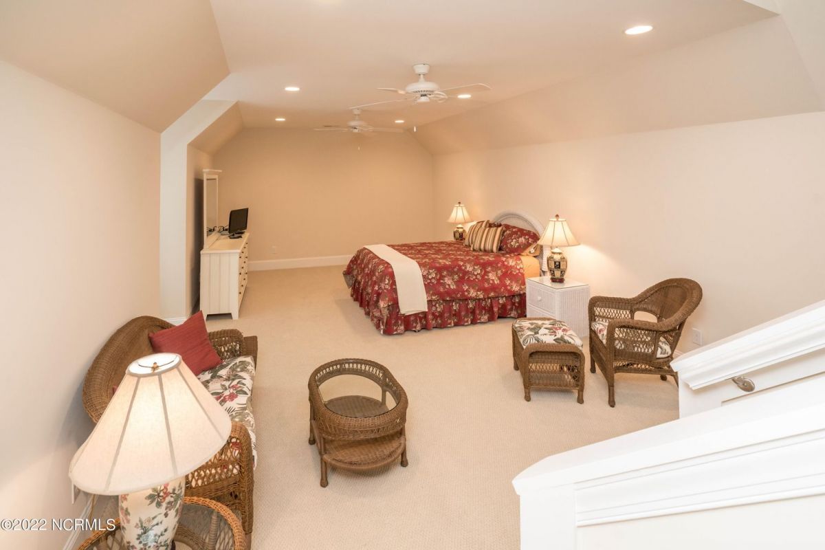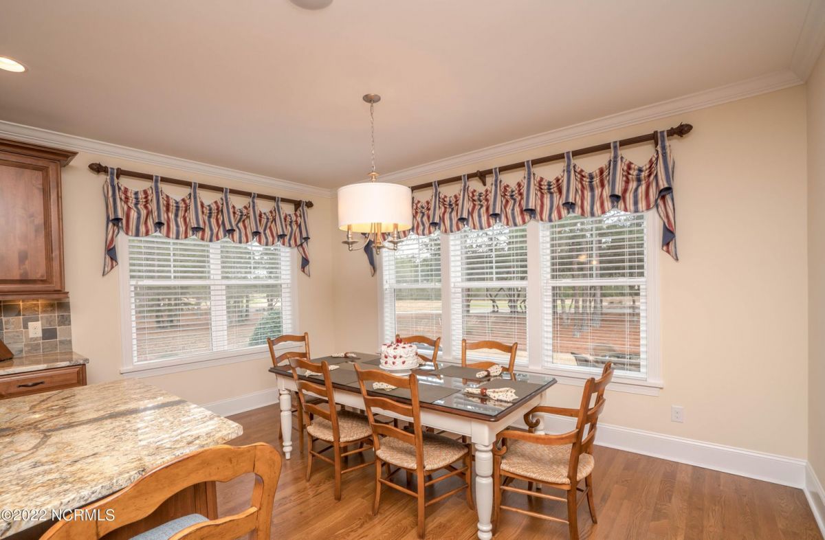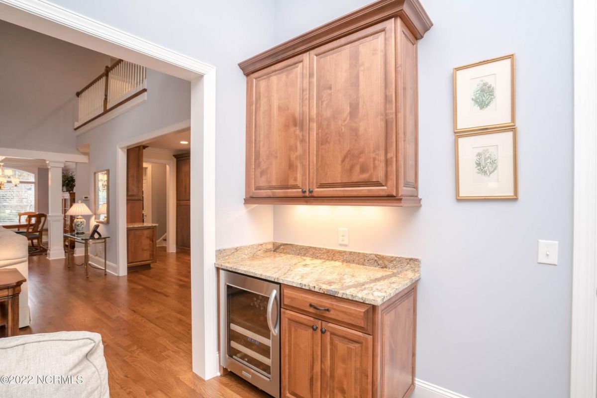 This is the house you have been looking for! This like new home combines quality, space, golf views & privacy into one. As soon as you enter through the front door, you will instantly appreciate how well this home has been maintained by the original owners. There is an office and half bath on the right when you enter. On the opposite side of the entry way you will find a spacious dining room with coffered ceilings. This dining area opens to a huge living room that features built in bookcases/cabinets along with a gas fireplace. Off of the living room there is a sunroom that is filled with natural light overlooking the golf course, a small pond and Nature. This sunroom is complete with a built in bar and provides access to the oversized stamped concrete patio. The kitchen is a chef's dream with stunning granite counter tops, tile backsplash, a gas range with hood, built in wall oven, convection oven, a huge walk in pantry and very high end cabinets. There is bar top seating at the kitchen island along with room for an eat in kitchen table. The master suite completes the first floor, as you enter the master suite through double doors, you will find a sitting area and lots of details that you expect to find in a home of this quality. The tray ceiling has rope lighting, there are two walk in closets and a stunning master bath with two vanities and a beautiful walk in shower. Upstairs there are two more guest bedrooms and a massive bonus room. Each bedroom has nice sized closets and if you need storage, make sure you check out the attic space. There is a full bathroom upstairs and a loft overlooking the living room. The garage is finished and offers additional storage or room for a work bench as well as a sink. This home is located on a quiet cul-de-sac street and overlooks the #11 hole of Leopard's Chase course. Ocean Ridge continues to be one of the most popular communities in coastal NC. Come explore this opportunity for yourself before it's too late.