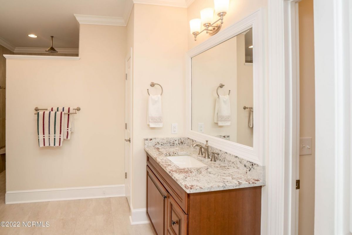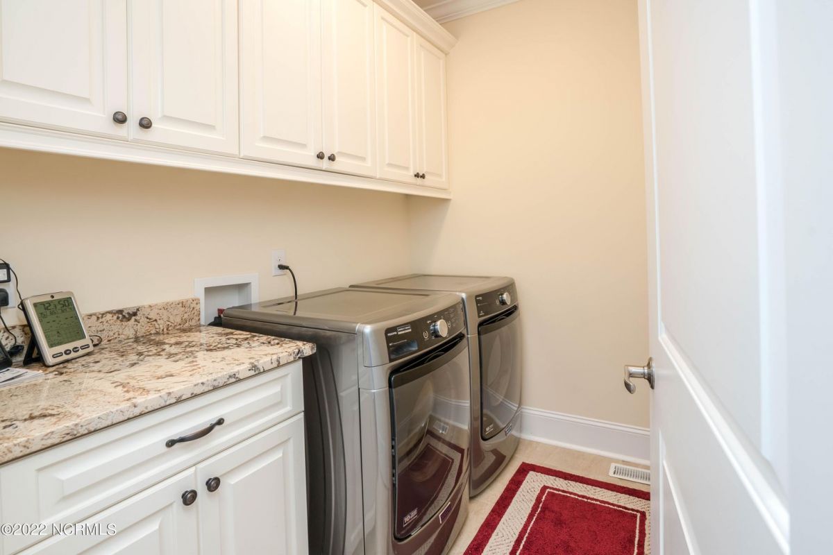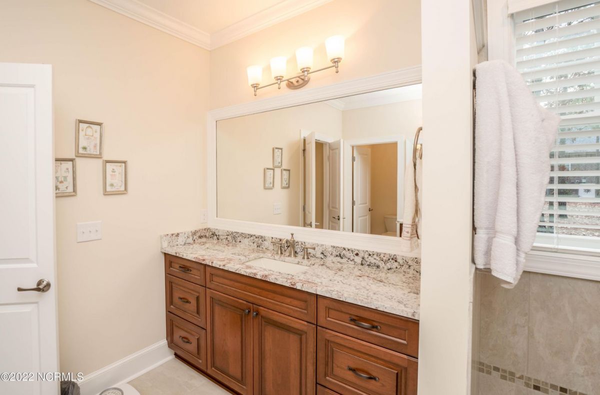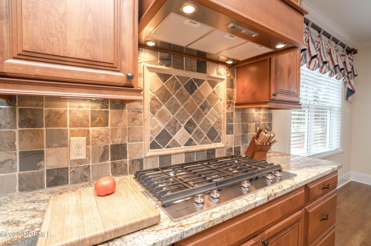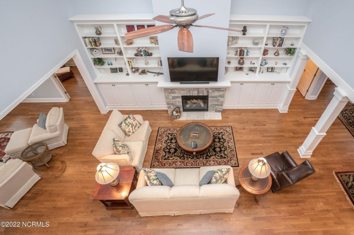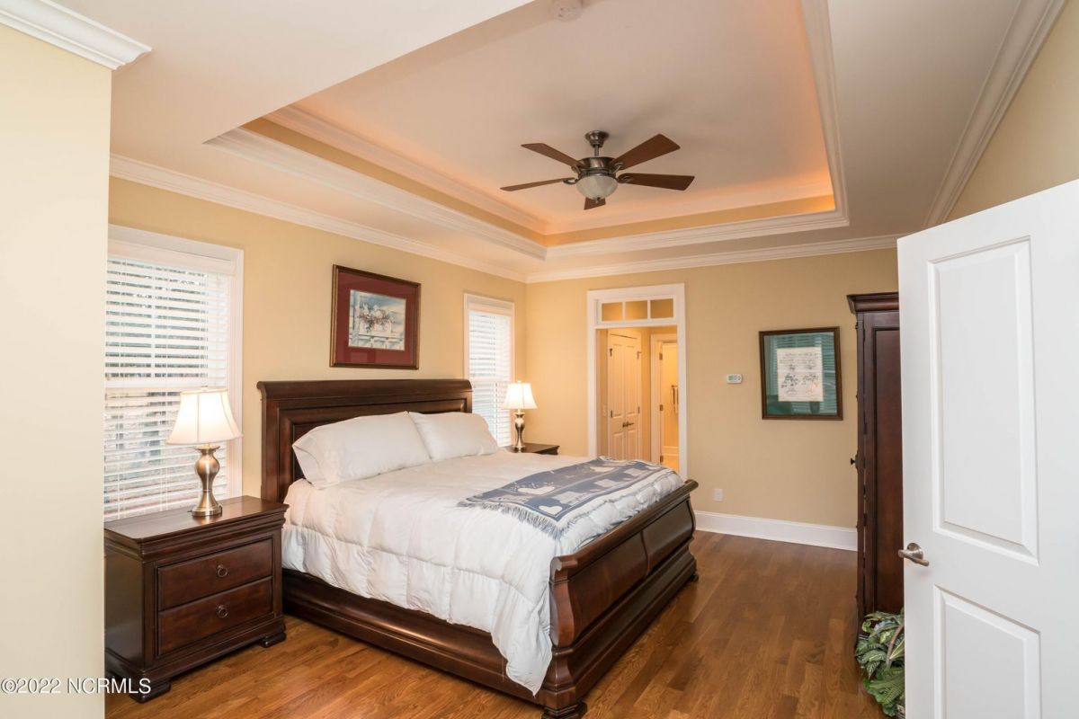 This is the house you have been looking for! This like new home combines quality, space, golf views & privacy into one. As soon as you enter through the front door, you will instantly appreciate how well this home has been maintained by the original owners. There is an office and half bath on the right when you enter. On the opposite side of the entry way you will find a spacious dining room with coffered ceilings. This dining area opens to a huge living room that features built in bookcases/cabinets along with a gas fireplace. Off of the living room there is a sunroom that is filled with natural light overlooking the golf course, a small pond and Nature. This sunroom is complete with a built in bar and provides access to the oversized stamped concrete patio. The kitchen is a chef's dream with stunning granite counter tops, tile backsplash, a gas range with hood, built in wall oven, convection oven, a huge walk in pantry and very high end cabinets. There is bar top seating at the kitchen island along with room for an eat in kitchen table. The master suite completes the first floor, as you enter the master suite through double doors, you will find a sitting area and lots of details that you expect to find in a home of this quality. The tray ceiling has rope lighting, there are two walk in closets and a stunning master bath with two vanities and a beautiful walk in shower. Upstairs there are two more guest bedrooms and a massive bonus room. Each bedroom has nice sized closets and if you need storage, make sure you check out the attic space. There is a full bathroom upstairs and a loft overlooking the living room. The garage is finished and offers additional storage or room for a work bench as well as a sink. This home is located on a quiet cul-de-sac street and overlooks the #11 hole of Leopard's Chase course. Ocean Ridge continues to be one of the most popular communities in coastal NC. Come explore this opportunity for yourself before it's too late.