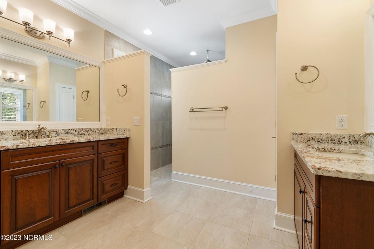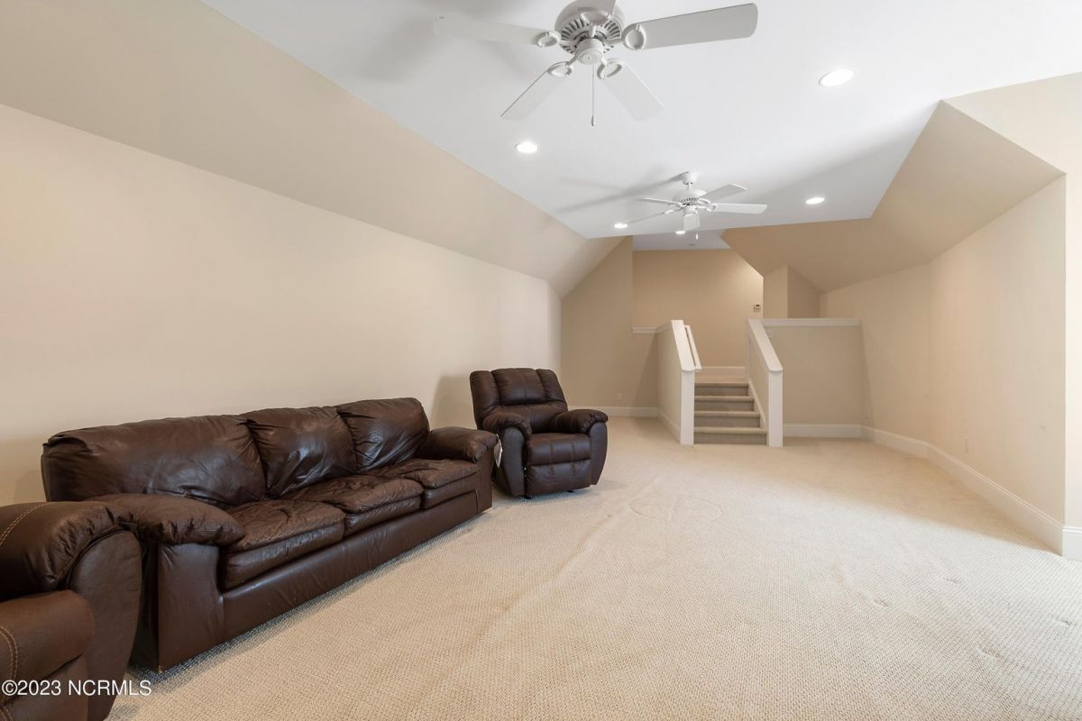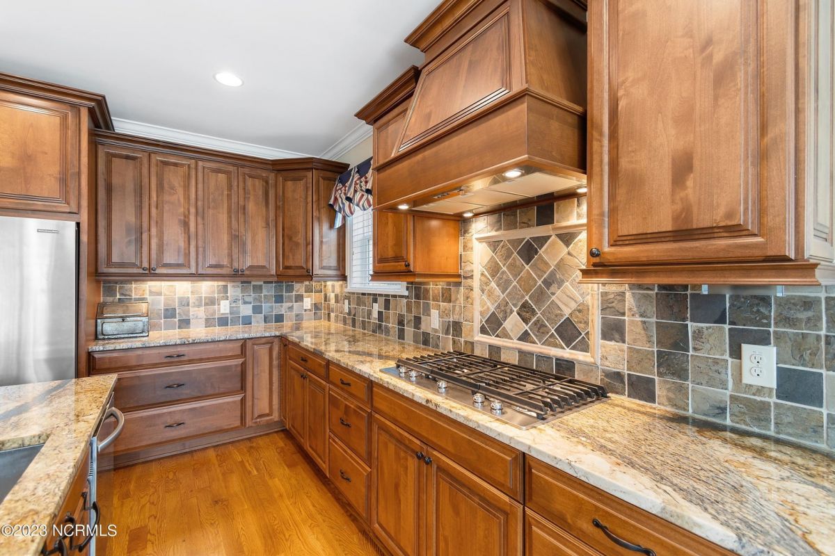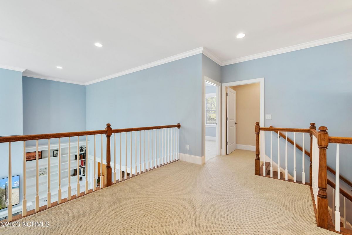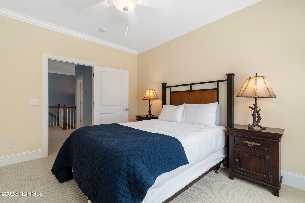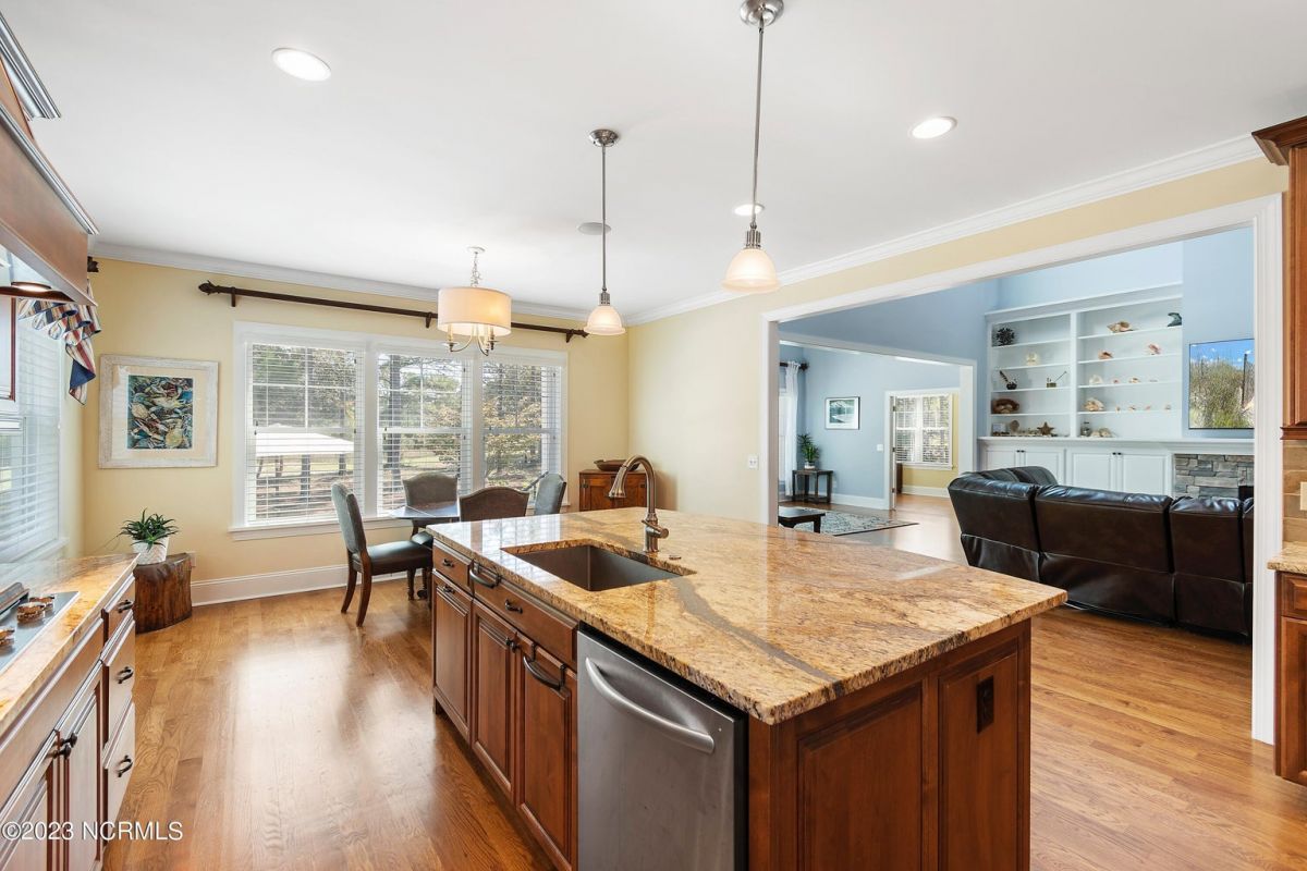 Welcome to your stunning golf course view home with modern luxury. Nestled right on the picturesque Leopard's Chase Golf Course's 11th hole in the highly desirable Ocean Ridge Plantation. This exquisite property boasts a traditional and modern architecture, making it the perfect haven for golf enthusiasts and those seeking elegant living spaces. As you step through the double front doors into the inviting foyer, you'll be greeted by the warm embrace of real golden oak hardwood floors, setting the tone for the entire main area. To your right, an office space awaits, complete with double glass French doors, hardwood flooring, a ceiling fan, trayed ceiling, and crown molding- a tranquil setting for work or relaxation. The adjacent dining area is a masterpiece of design, showcasing coffered ceilings, decorative columns, and, of course, those beautiful hardwood floors. In the living room, you'll discover built-in shelving and a stunning stone-accented gas fireplace. The home is equipped with a below-ground propane tank for your convenience. The main living space continues to impress with its 20-foot-tall ceilings, ceiling fan, and more hardwood flooring. Wireless hi-fi system sonos speakers in the living room and kitchen. There is a Carolina room complete with windows, ceiling fan and a mini fridge / dry bar area. The kitchen is a chef's dream, offering hardwood floors, an eat-in dining area, breakfast bar, kitchen island, 5-burner gas stove, wall oven, microwave, fridge, garbage disposal, and even an instant hot feature. Custom built-ins adorn the pantry, and a coat closet with central vacuum completes the package. The laundry room comes equipped with a washer, dryer, and cabinets with granite countertops. The master bedroom is a sanctuary unto itself, featuring double doors, golden oak hardwood flooring, a relaxing sitting area, trayed ceiling, crown molding, and two large closets with custom built-ins. The master bathroom offers tile flooring, a double sink vanity, a separate toilet closet, a linen closet, a wall-in tile shower with a window and built-in seat, and two shower heads- all elegantly accented with crown molding. Upstairs, you'll find a versatile loft landing area with two spacious bedrooms, bathroom and a huge bonus room. The guest bedrooms feature carpet, ceiling fans, crown molding and closets. The guest bathroom boasts granite countertops, tub / shower combination and tile flooring. Next, the sizable bonus room can serve as an additional bedroom, offering ample space, carpeting, and double closets. There is also a door leading to a generously sized walk-in attic space complete with flooring. This home is equipped with two HVAC systems and three thermostats, ensuring optimal comfort year-round. The spacious two-car garage includes a convenient door leading to the outside, storage shelving, and a utility sink. Outside, a patio area with stamped concrete overlooks the lush backyard, surrounded by live oak trees, palm trees, and a Japanese maple. The property also features a sprinkler system to keep your landscaping vibrant. Ocean Ridge Plantation is the most exclusive and luxurious golf community. Amenities include indoor and outdoor pool, 72 holes of premier golf, fitness center, wet & dry sauna, library, outdoor grilling pavilion, 4 acre fishing lake, nature park, community gardens, outdoor whirlpool, tennis and pickleball courts. Don't forget about the luxurious oceanfront beach club located on gorgeous Sunset Beach, NC. The private oceanfront club provides convenience with a full kitchen, wet bar, porches, elevator and parking. Ocean Ridge Plantation is conveniently tucked away between the historic charm of Wilmington, NC, and the excitement of Myrtle Beach, SC. Don't miss this opportunity to own a truly exceptional property that seamlessly blends modern luxury with golf!