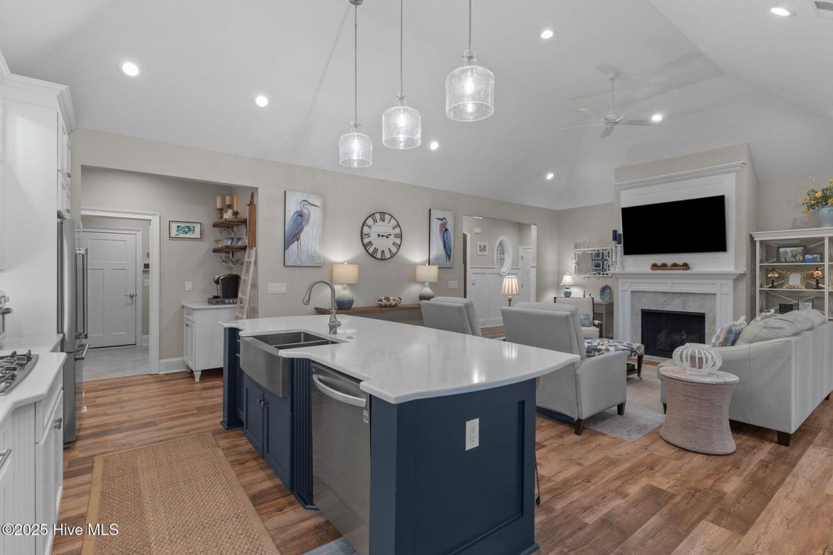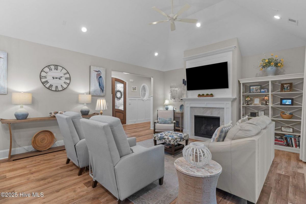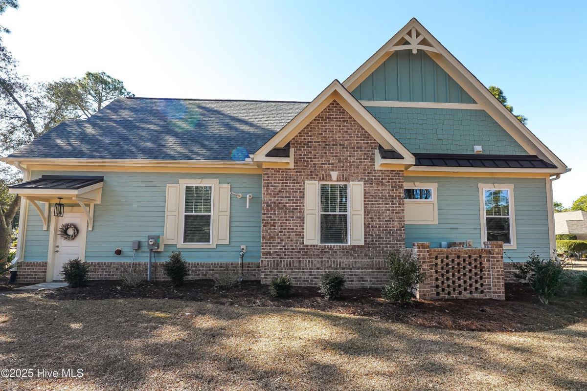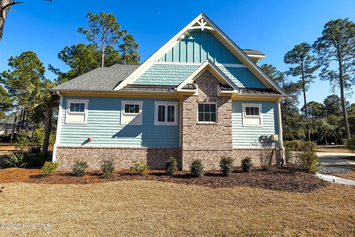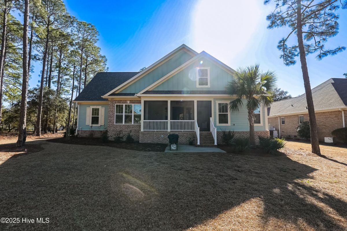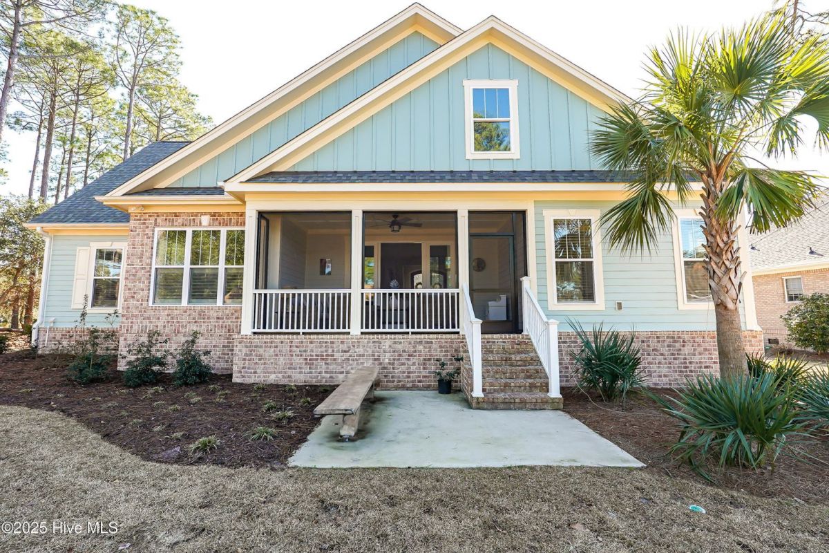 Exquisite Single-Story Home in Ocean Ridge Plantation. Nestled in a premier golf course community, this refined retreat offers exceptional amenities, including four golf courses, indoor and outdoor pools, pickleball courts, clubhouses, a fitness center, walking trails, and an oceanfront beach house in Sunset Beach. The home's elegant exterior features James Hardie lap siding, board and batten, shingle and brick accents, and detailed gable stickwork. Enter through arched, stained double doors into a foyer adorned with wainscoting. The vaulted Great Room boasts a 36-inch vent-free fireplace and sliding doors leading to a spacious, tiled, screened porch. Designed for entertaining, the kitchen features quartz countertops, an eat-in island, subway tile backsplash, under-cabinet lighting, and stainless steel appliances, including a microwave/oven combo, gas cooktop, and vent hood. White and navy soft-close cabinetry and a large walk-in pantry with a pocket door add to its functionality. The Owner's Suite impresses with a presidential tray ceiling, rope and recessed lighting, USB outlets, and a custom walk-in closet. The spa-inspired bath includes a fully tiled zero-entry shower with an LED-lit wall niche, a soaking tub, and a dual-sink quartz vanity. The guest bath features an upgraded tile shower with a transom window. Additional highlights include a laundry/mudroom with storage cubbies, solid core doors, HERS certification for energy efficiency, a tankless water heater, an irrigation system, an epoxy-coated garage floor, and a large patio equipped for grilling. This home blends luxury, comfort, and efficiency in a sought-after location.