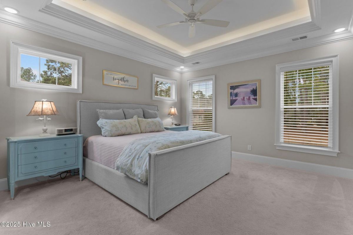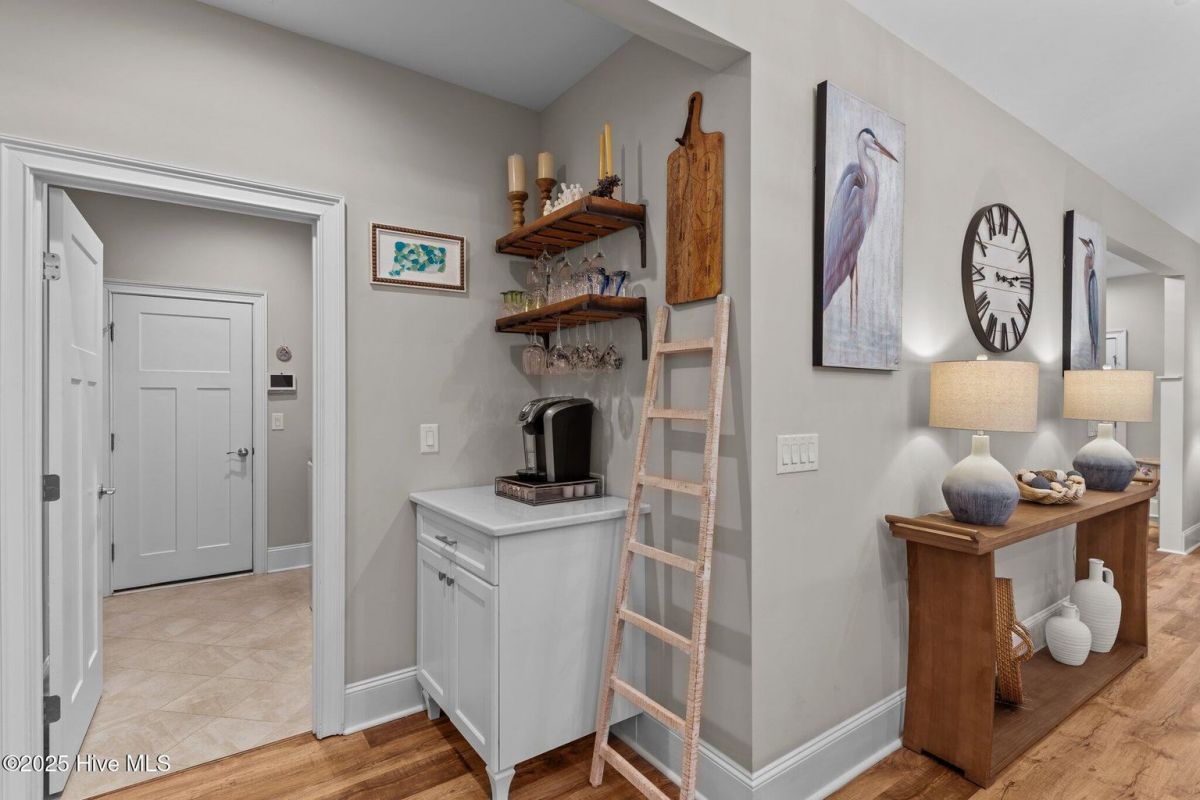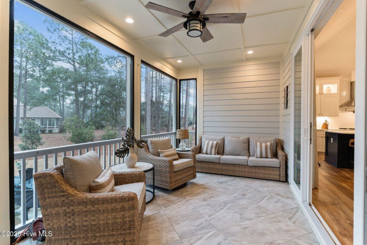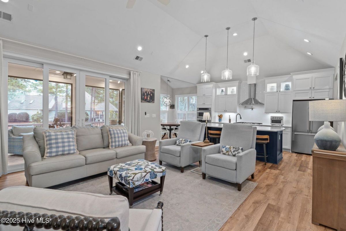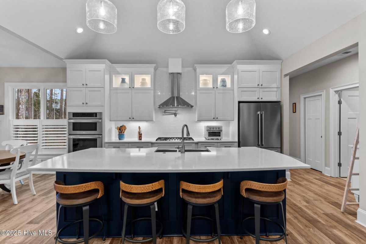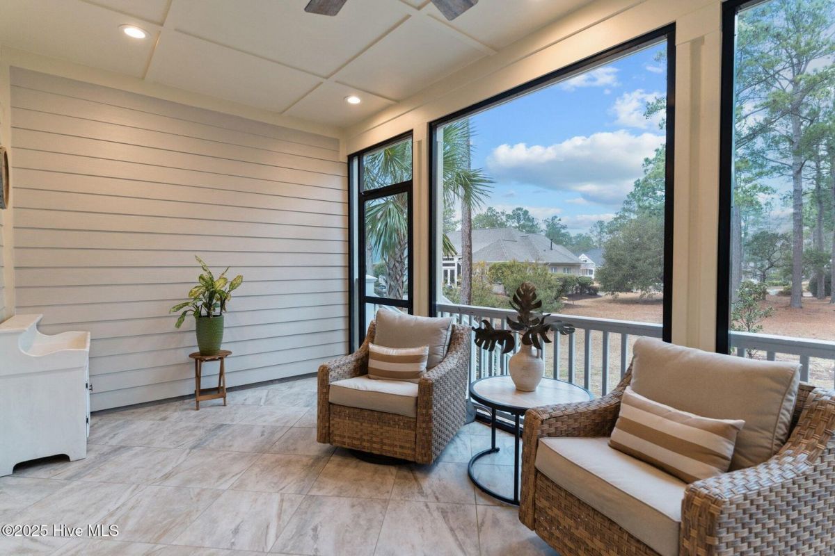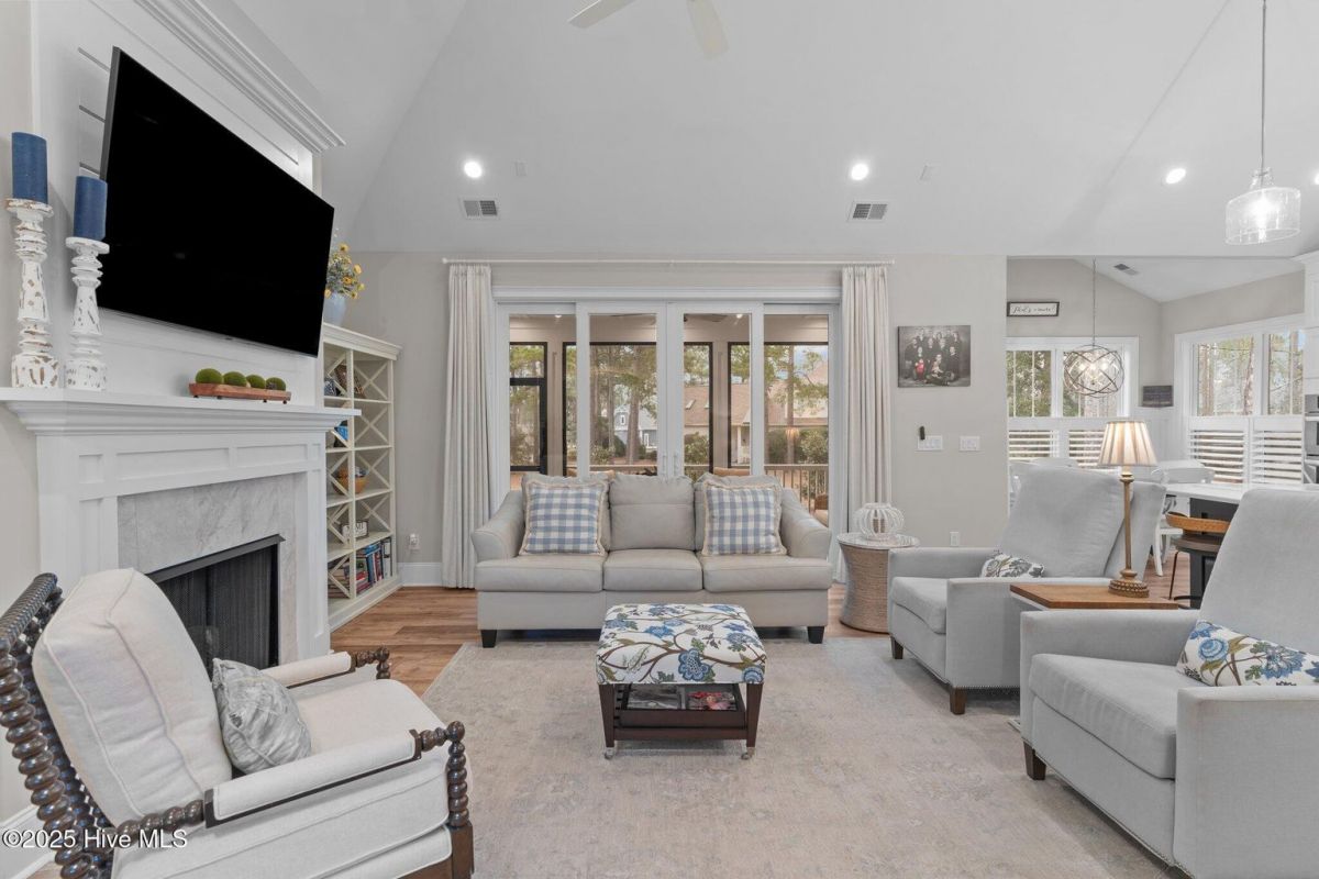 Exquisite Single-Story Home in Ocean Ridge Plantation. Nestled in a premier golf course community, this refined retreat offers exceptional amenities, including four golf courses, indoor and outdoor pools, pickleball courts, clubhouses, a fitness center, walking trails, and an oceanfront beach house in Sunset Beach. The home's elegant exterior features James Hardie lap siding, board and batten, shingle and brick accents, and detailed gable stickwork. Enter through arched, stained double doors into a foyer adorned with wainscoting. The vaulted Great Room boasts a 36-inch vent-free fireplace and sliding doors leading to a spacious, tiled, screened porch. Designed for entertaining, the kitchen features quartz countertops, an eat-in island, subway tile backsplash, under-cabinet lighting, and stainless steel appliances, including a microwave/oven combo, gas cooktop, and vent hood. White and navy soft-close cabinetry and a large walk-in pantry with a pocket door add to its functionality. The Owner's Suite impresses with a presidential tray ceiling, rope and recessed lighting, USB outlets, and a custom walk-in closet. The spa-inspired bath includes a fully tiled zero-entry shower with an LED-lit wall niche, a soaking tub, and a dual-sink quartz vanity. The guest bath features an upgraded tile shower with a transom window. Additional highlights include a laundry/mudroom with storage cubbies, solid core doors, HERS certification for energy efficiency, a tankless water heater, an irrigation system, an epoxy-coated garage floor, and a large patio equipped for grilling. This home blends luxury, comfort, and efficiency in a sought-after location.