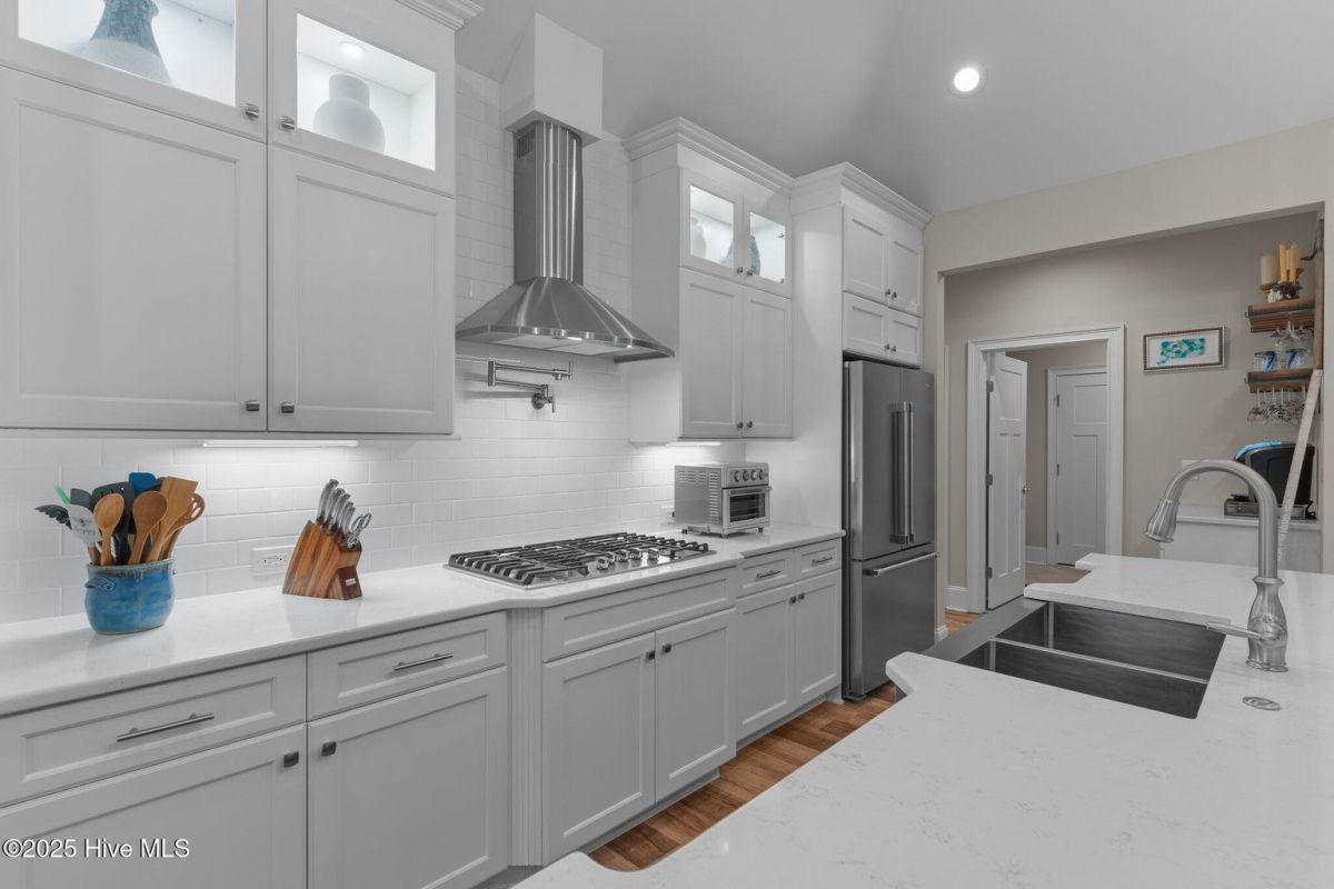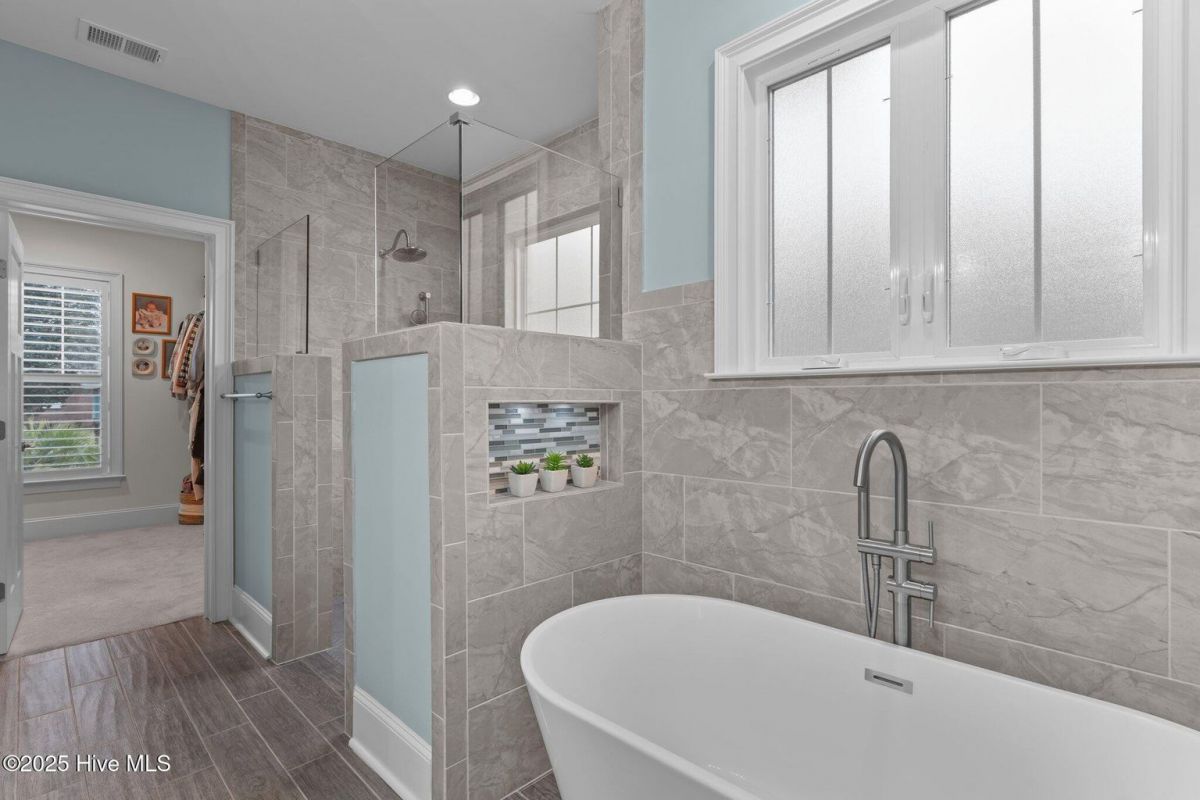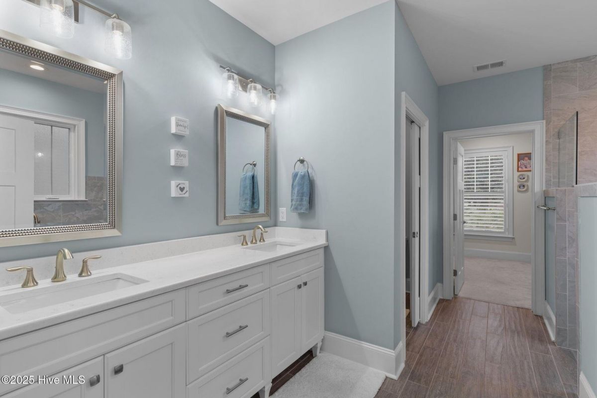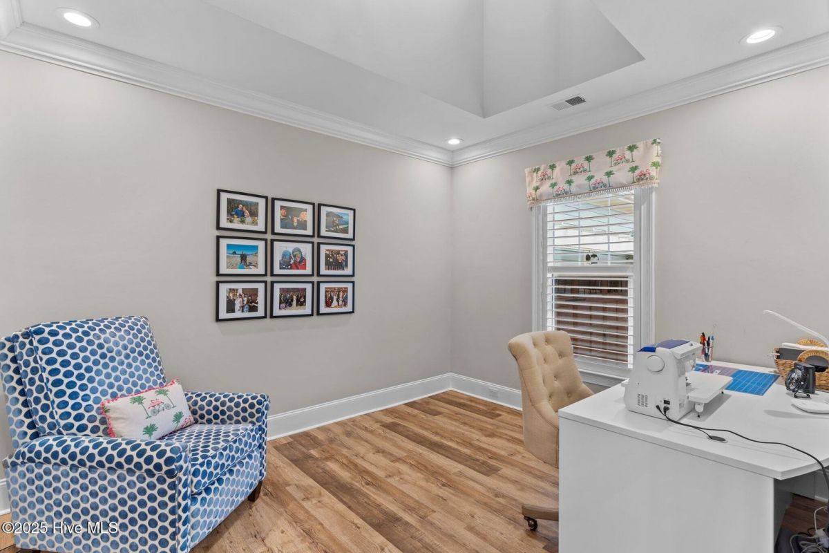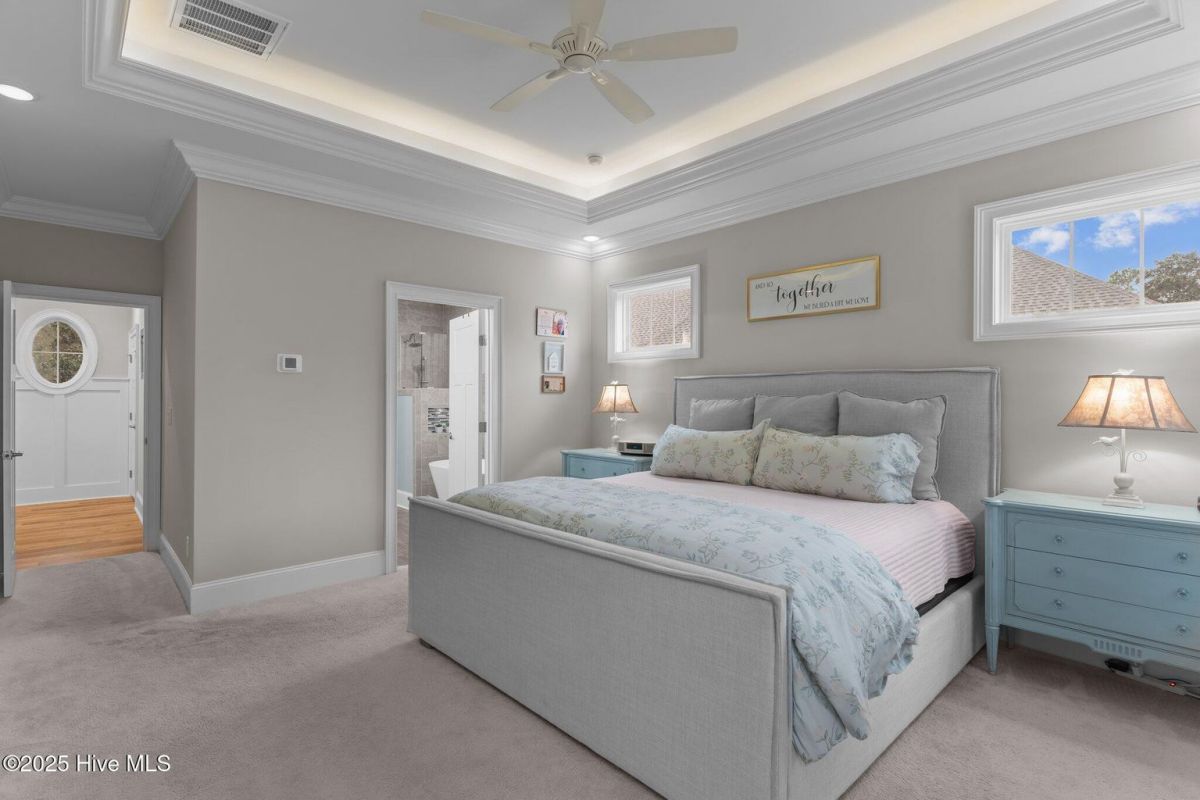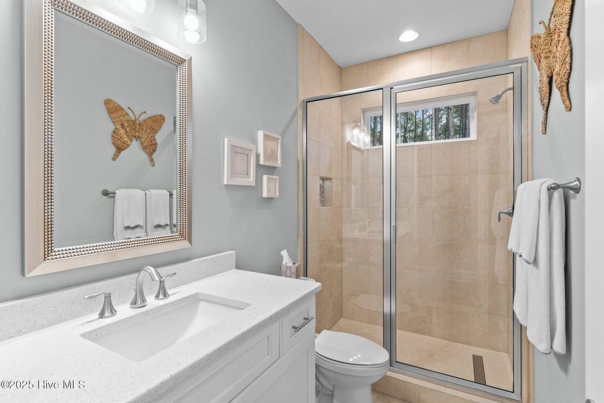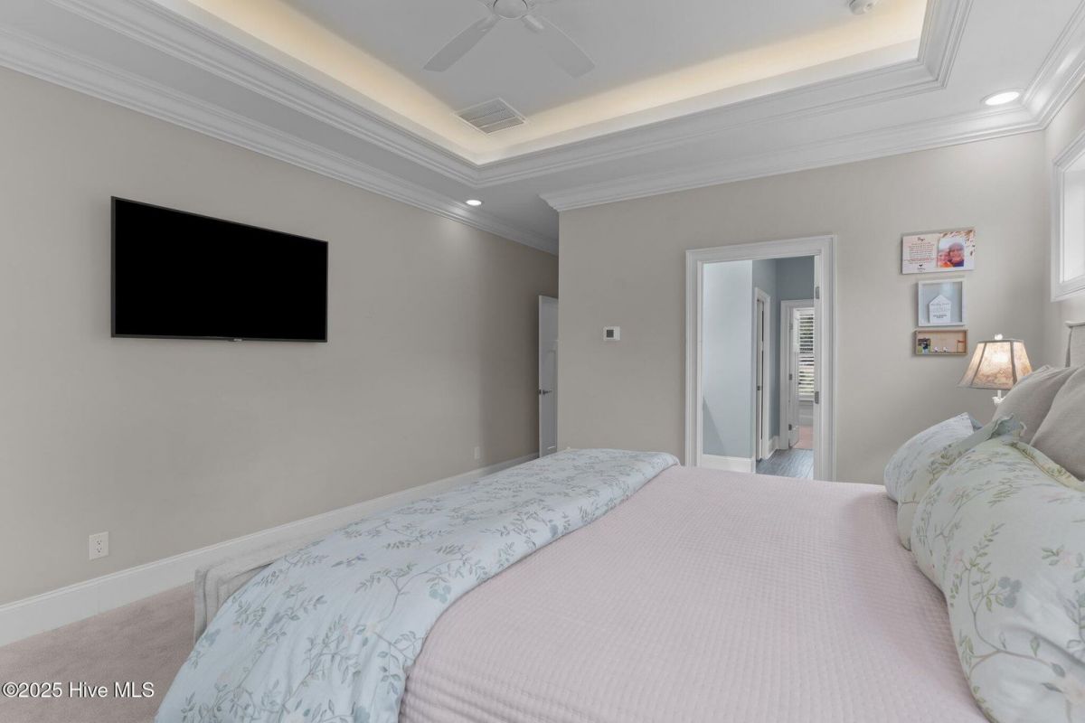 Exquisite Single-Story Home in Ocean Ridge Plantation. Nestled in a premier golf course community, this refined retreat offers exceptional amenities, including four golf courses, indoor and outdoor pools, pickleball courts, clubhouses, a fitness center, walking trails, and an oceanfront beach house in Sunset Beach. The home's elegant exterior features James Hardie lap siding, board and batten, shingle and brick accents, and detailed gable stickwork. Enter through arched, stained double doors into a foyer adorned with wainscoting. The vaulted Great Room boasts a 36-inch vent-free fireplace and sliding doors leading to a spacious, tiled, screened porch. Designed for entertaining, the kitchen features quartz countertops, an eat-in island, subway tile backsplash, under-cabinet lighting, and stainless steel appliances, including a microwave/oven combo, gas cooktop, and vent hood. White and navy soft-close cabinetry and a large walk-in pantry with a pocket door add to its functionality. The Owner's Suite impresses with a presidential tray ceiling, rope and recessed lighting, USB outlets, and a custom walk-in closet. The spa-inspired bath includes a fully tiled zero-entry shower with an LED-lit wall niche, a soaking tub, and a dual-sink quartz vanity. The guest bath features an upgraded tile shower with a transom window. Additional highlights include a laundry/mudroom with storage cubbies, solid core doors, HERS certification for energy efficiency, a tankless water heater, an irrigation system, an epoxy-coated garage floor, and a large patio equipped for grilling. This home blends luxury, comfort, and efficiency in a sought-after location.