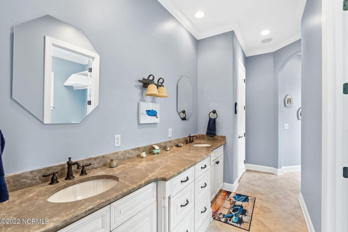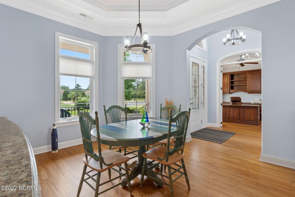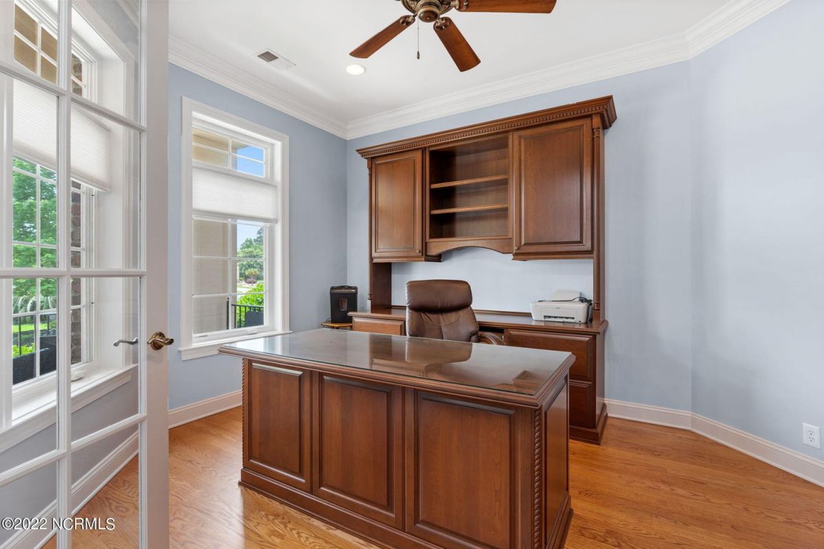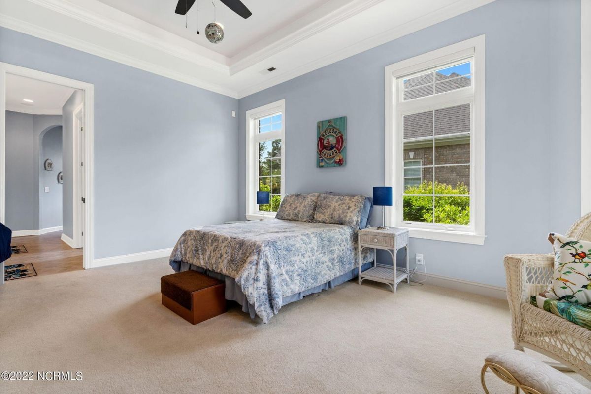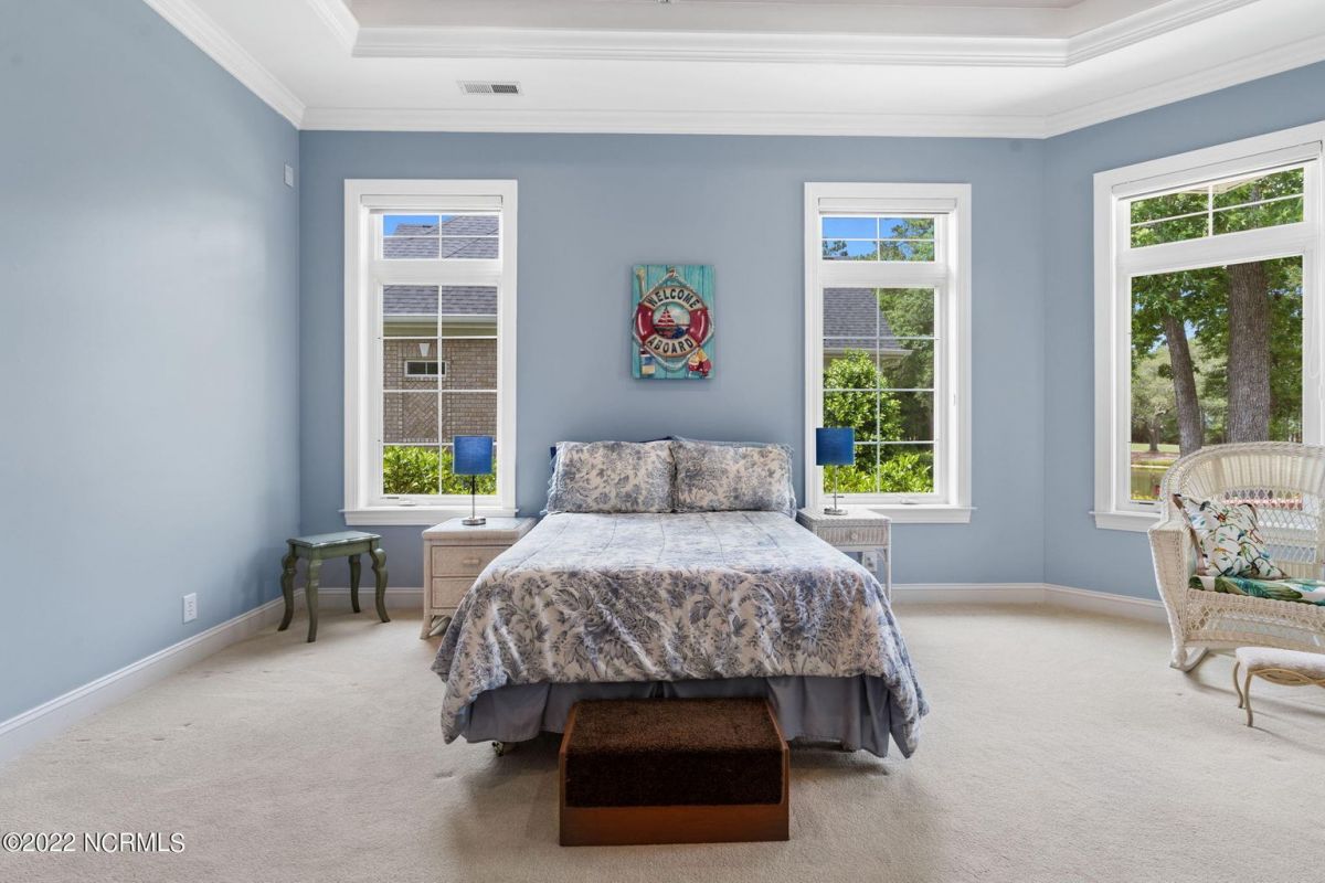 Introducing this spectacular custom built home by award winning Ernest Crews Construction in the heart of Ocean Ridge Plantation, southeastern North Carolina's premier golf and beach community! Situated on a quiet corner homesite with picturesque water and golf views you'll feel like you're on vacation every day. This stunning home features all 3 bedrooms downstairs with the master retreat on one side of the home and the guest bedrooms are on the other side for privacy. The multi-purpose room upstairs with a full bath can be used as a 4th bedroom, media room or craft room. The elegant master retreat has an en-suite bath with a double vanity, an expansive shower and custom closets. Additional details include rounded corners, archways, crown molding, hardwood floors in the living rooms and kitchen area. Stainless steel appliances in the kitchen, custom backsplash, custom cabinets and under-cabinet lighting add ambiance. This home also boasts an office/den area on the first level with trey ceilings. Enjoy the Four Big Cats golf courses, 2 golf clubhouses/restaurants, a Plantation Clubhouse with a heated indoor pool, a sauna, steam room, a jacuzzi, a fitness center, a banquet room, tennis/pickle ball courts, walking trails, over 50 social and sports groups, a community garden, a pavilion area and park and a private owner's oceanfront beach club on Sunset Beach. Ideally located just minutes to the beach and between historic Wilmington, NC and Myrtle Beach, SC. So what are you waiting for? Come and live the coastal lifestyle you've always dreamed of today.