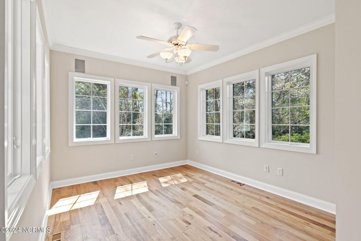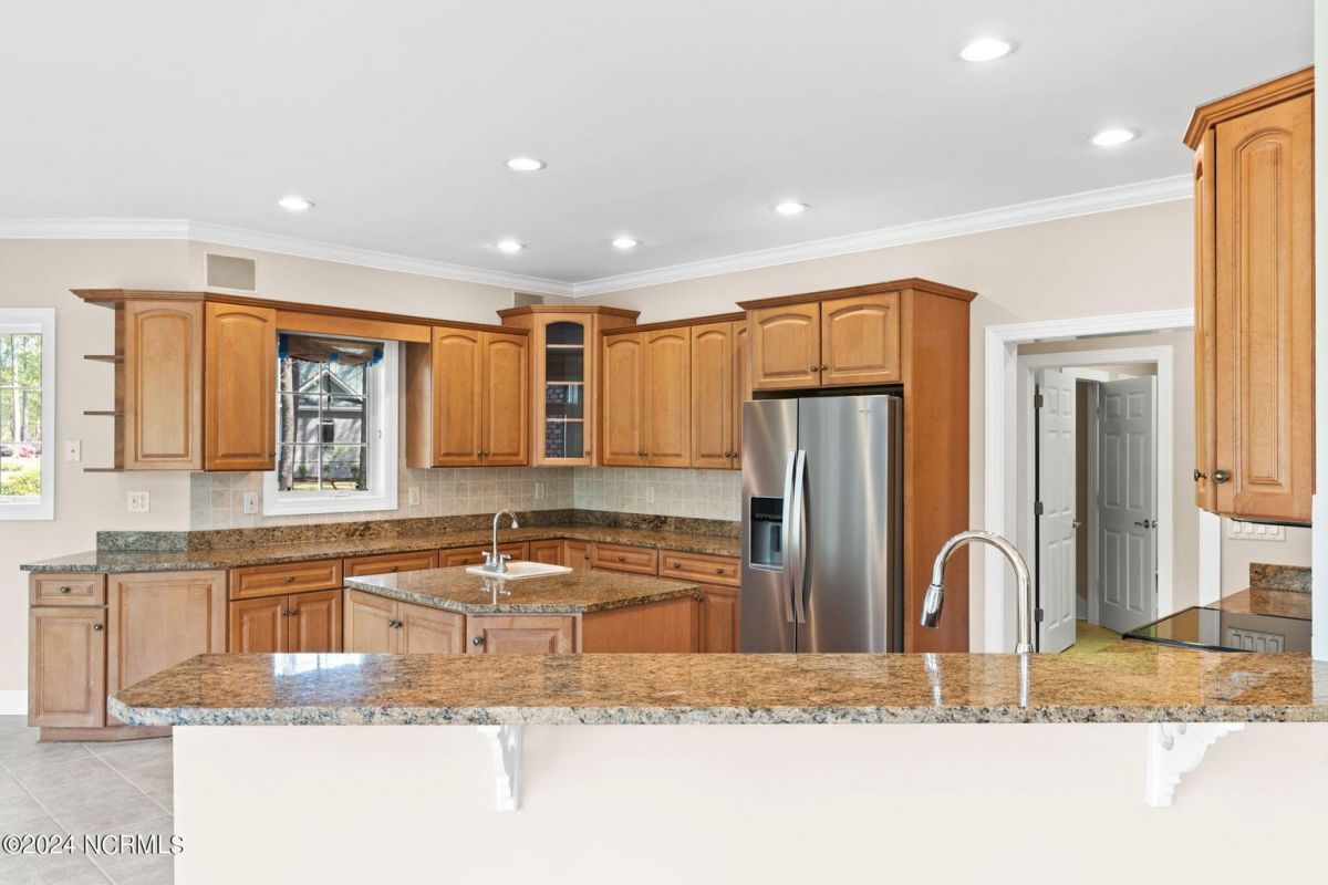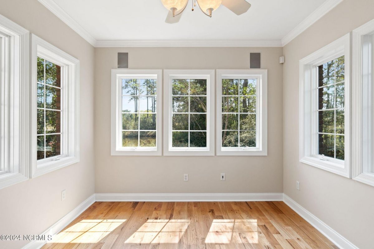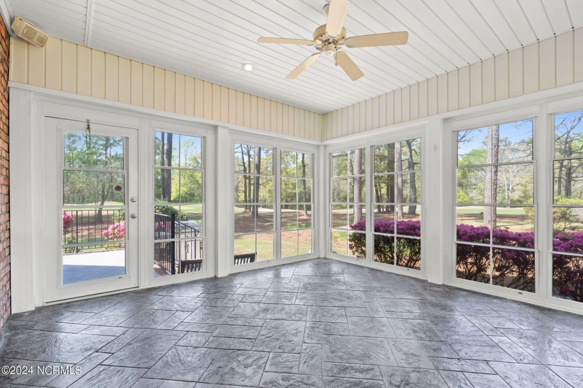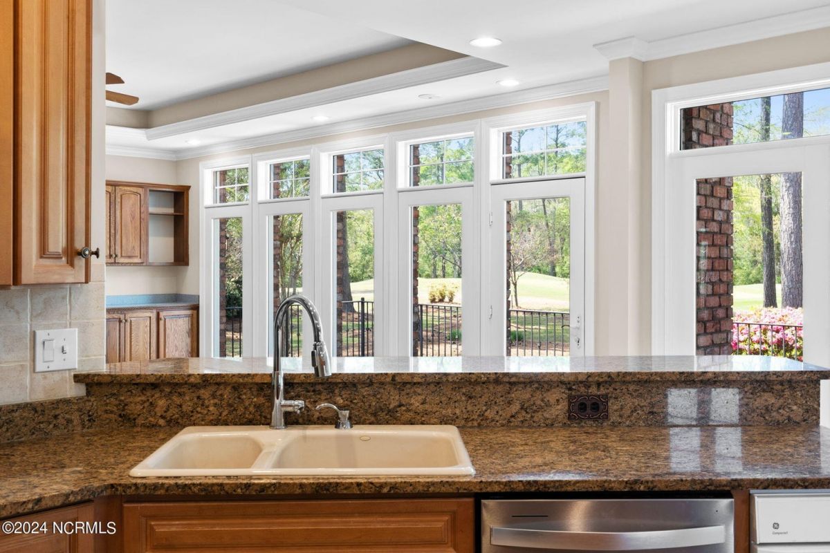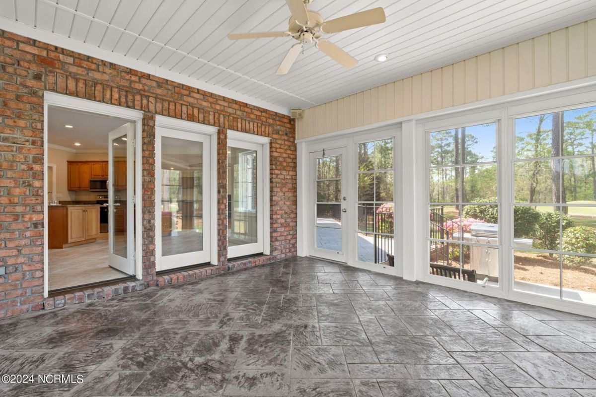 Welcome to your serene retreat nestled in the heart of Ocean Ridge Plantation, where luxury meets tranquility. This exquisite 4 BR, 4 BA all-brick, custom built home offers a haven of comfort & elegance. It features a freshly painted interior & brand-new luxury carpeting in all bedrooms including custom padding & a 25-year stain-proof warranty. An inviting open floor plan boasts expansive windows to admire the panoramic views of the tranquil pond & the lush greenery of the 9th green of Panther's Run golf course. Upon entering, you're greeted by a large formal dining room to the left with a butler's pantry & niche that adds an extra touch of elegance. A spacious living room features a trey ceiling, with built-in cabinetry, a gas fireplace, and plenty of room for entertaining. The well-designed kitchen includes brand-new high-end appliances including a stainless-steel refrigerator, dishwasher, oven/range, microwave, & trash compactor, and features custom cabinets with granite countertops. The kitchen also leads to a large rear patio and the nearby sunroom with EZ Breeze windows, allowing you to enjoy the scenery year-round. The main level also includes the master suite, an office, and two bathrooms. Designed by renowned architect Bernie Thuersam of Shoreline Design Group & meticulously crafted by Tumminello Builders, known for their quality construction & steel framing, this home exudes timeless sophistication. Interior Designer Grace Ann Philips has left no detail untouched, with fine finishes enhancing the beauty of every corner. Entertain guests in style in the billiards room on the second floor featuring a wet bar, and a second gas fireplace. There are also three additional bedrooms & two bathrooms on this level. A bonus room above the garage offers versatile space for a hobby area or a 5th bedroom. Outside, to the left of the home lies a peaceful bird sanctuary, while the option to purchase the vacant lot to the right ensures added privacy.