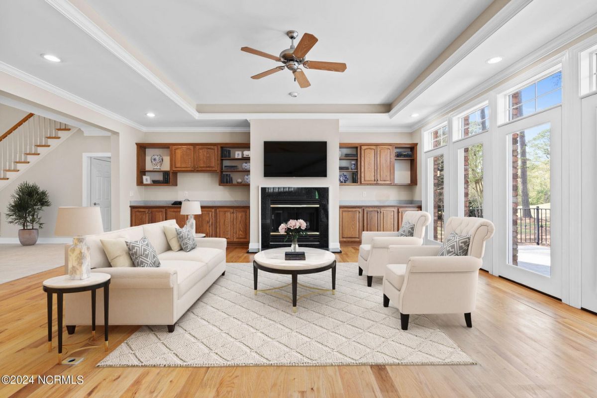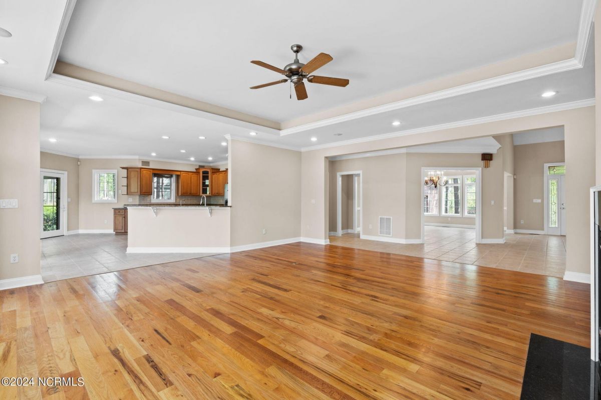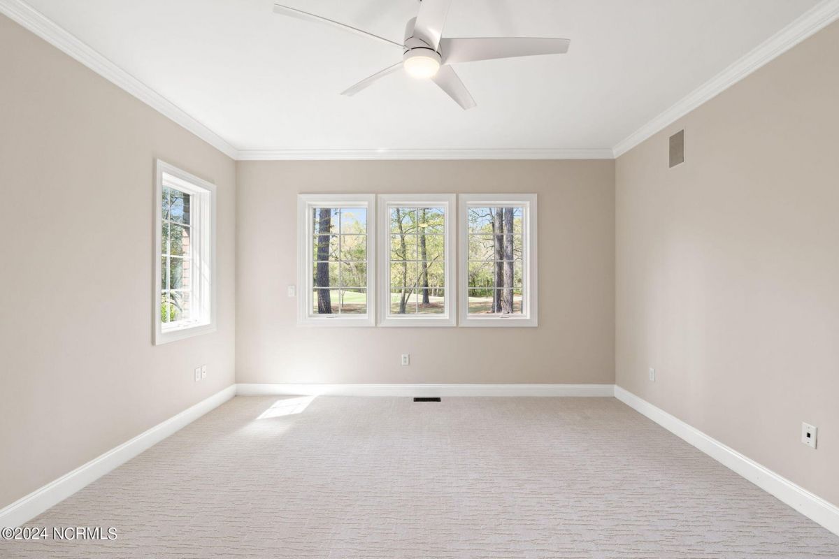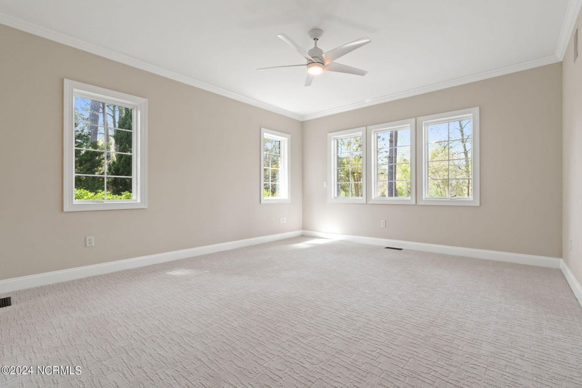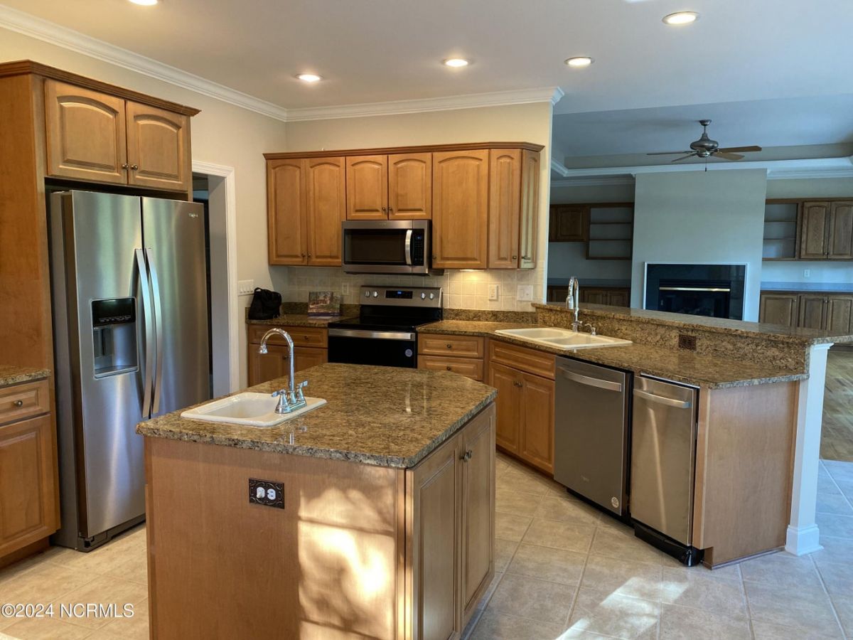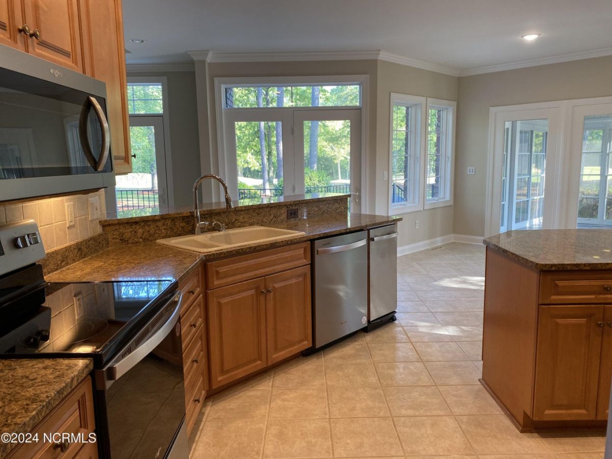 Welcome to your serene retreat nestled in the heart of Ocean Ridge Plantation, where luxury meets tranquility. This exquisite 4 BR, 4 BA all-brick, custom built home offers a haven of comfort & elegance. It features a freshly painted interior & brand-new luxury carpeting in all bedrooms including custom padding & a 25-year stain-proof warranty. An inviting open floor plan boasts expansive windows to admire the panoramic views of the tranquil pond & the lush greenery of the 9th green of Panther's Run golf course. Upon entering, you're greeted by a large formal dining room to the left with a butler's pantry & niche that adds an extra touch of elegance. A spacious living room features a trey ceiling, with built-in cabinetry, a gas fireplace, and plenty of room for entertaining. The well-designed kitchen includes brand-new high-end appliances including a stainless-steel refrigerator, dishwasher, oven/range, microwave, & trash compactor, and features custom cabinets with granite countertops. The kitchen also leads to a large rear patio and the nearby sunroom with EZ Breeze windows, allowing you to enjoy the scenery year-round. The main level also includes the master suite, an office, and two bathrooms. Designed by renowned architect Bernie Thuersam of Shoreline Design Group & meticulously crafted by Tumminello Builders, known for their quality construction & steel framing, this home exudes timeless sophistication. Interior Designer Grace Ann Philips has left no detail untouched, with fine finishes enhancing the beauty of every corner. Entertain guests in style in the billiards room on the second floor featuring a wet bar, and a second gas fireplace. There are also three additional bedrooms & two bathrooms on this level. A bonus room above the garage offers versatile space for a hobby area or a 5th bedroom. Outside, to the left of the home lies a peaceful bird sanctuary, while the option to purchase the vacant lot to the right ensures added privacy.