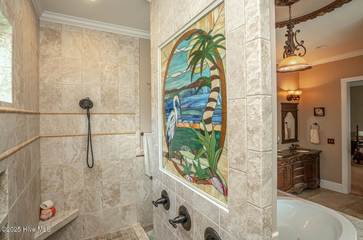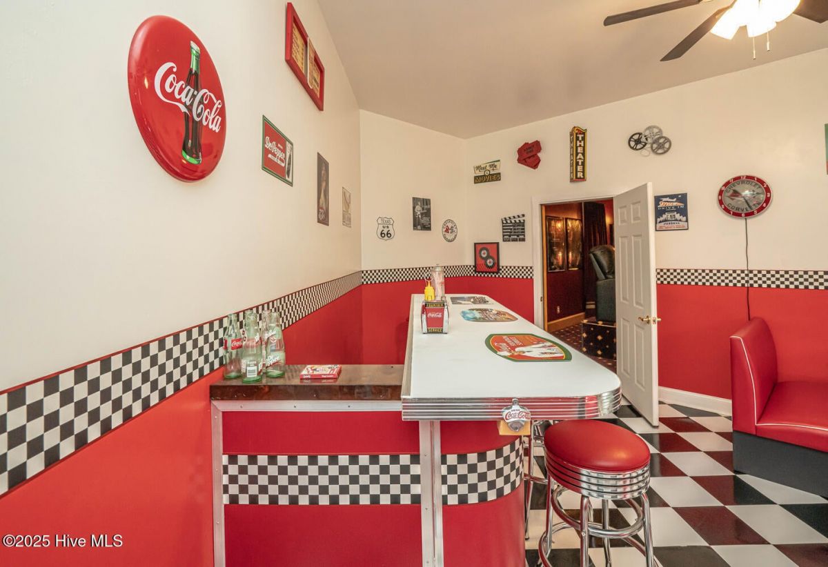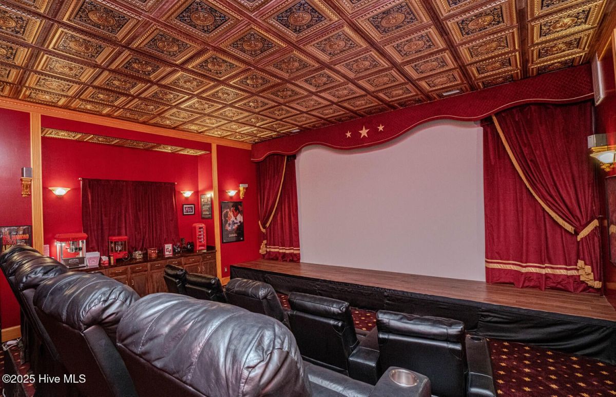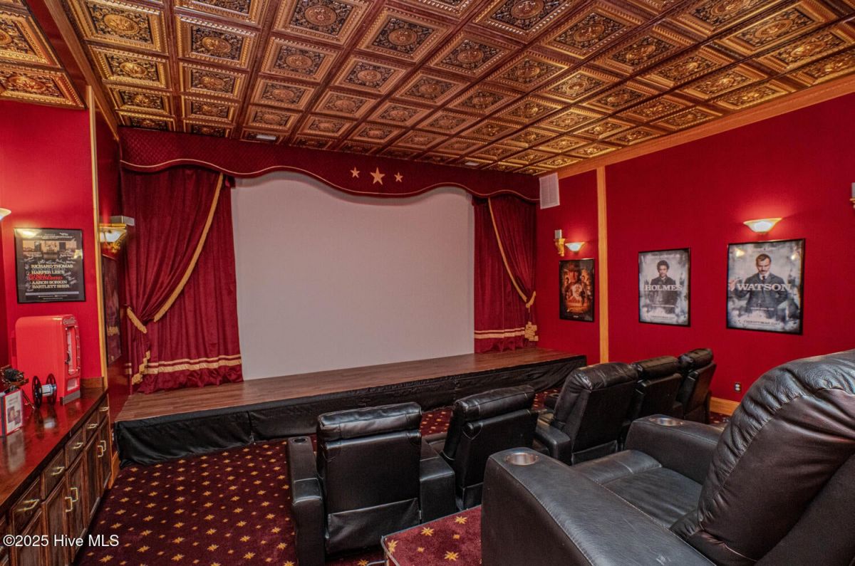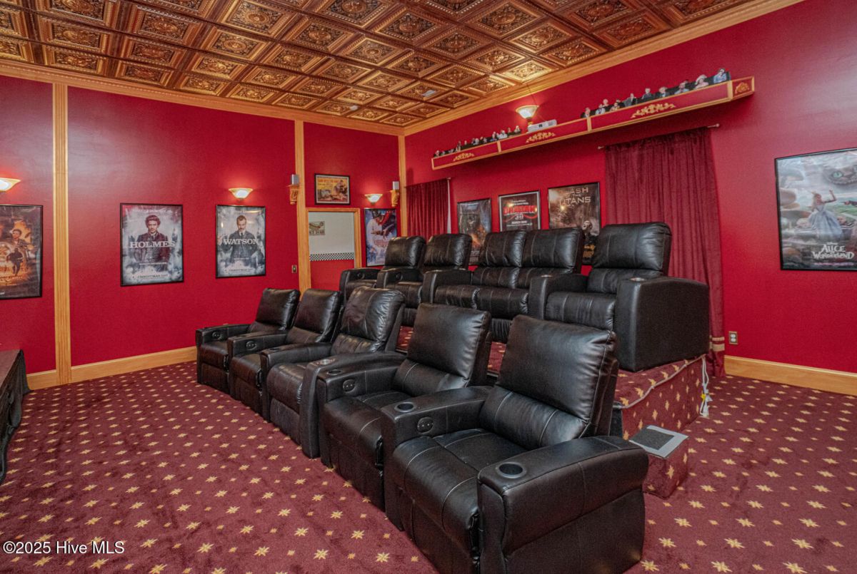 Welcome to 6756 Limerick Pl, located in Prestigious Ocean Ridge Plantation. This amazing property consists of 2 oversized lots totaling 1.18 ac with panoramic golf & water views from every window. You'll enter through double beveled glass doors and the high-ceilinged foyer to a sweeping 2 story great room, with stone fireplace and a recessed ceiling. Pass through the spacious great room through French doors to the Carolina room outfitted with 2 large ceiling fans & Eze breeze windows. The custom kitchen shows off a gorgeous, coffered ceiling, walk in pantry & custom cabinetry with elegant cornices. The front rooms include a formal dining room & office with custom built ins & bay windows in both. The spacious Primary bedroom has a bay window, ceiling fan & fireplace. The adjoining bath has custom vanities, jetted tub, and a large, low step, double entry tiled shower with side water jets, a rain head, and detachable shower sprayer. The closet is massive and contains custom built ins, its own linens closet and flows conveniently into a fully equipped laundry room. The second floor contains 3 bedrooms, generous closets, 2 bathrooms and 3 walk in attic storage areas. You must see the charming bar room Built to resemble a British Pub, it has timbered beams and flooring, and a built-in serving bar. Cheers! A hidden gem, just off of the kitchen, is Entertaiment central. Here you will find a 50's style Diner, complete with working Jukebox, 2 authentic booths and a soda fountain counter. All furniture and items, for this room, convey, unless otherwise specified. As you walk through the Diner, prepare to be impressed with the remarkable 10 seat theater room. The draperies, big screen, opulent ceiling, and concession area will bring back memories of the fun times at the Saturday matinee. Check out the 'gallery' of famous figures enjoying the Movie from up high! Your family & you will be delighted to own this prize. Schedule your viewing appointment today to see for yourself