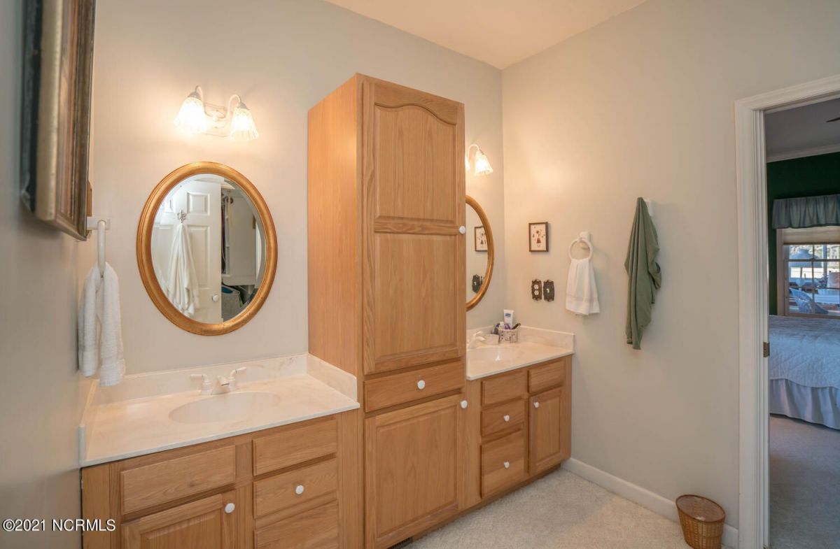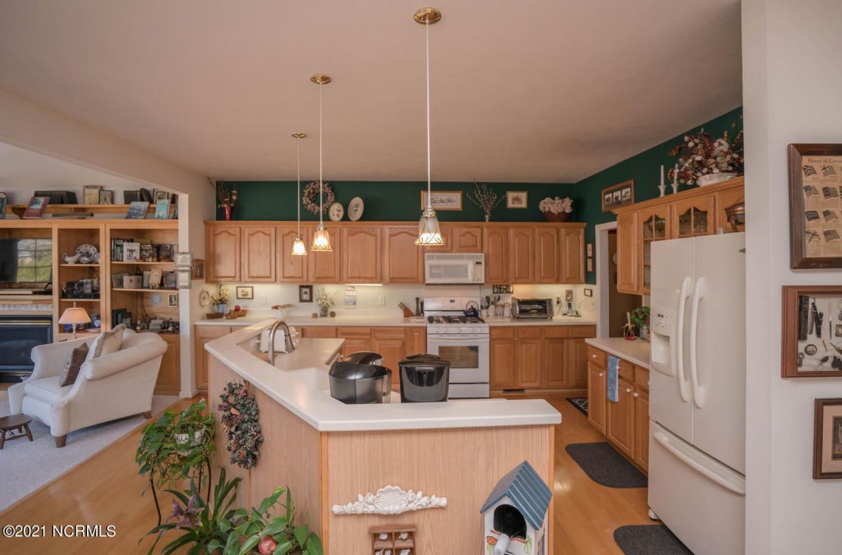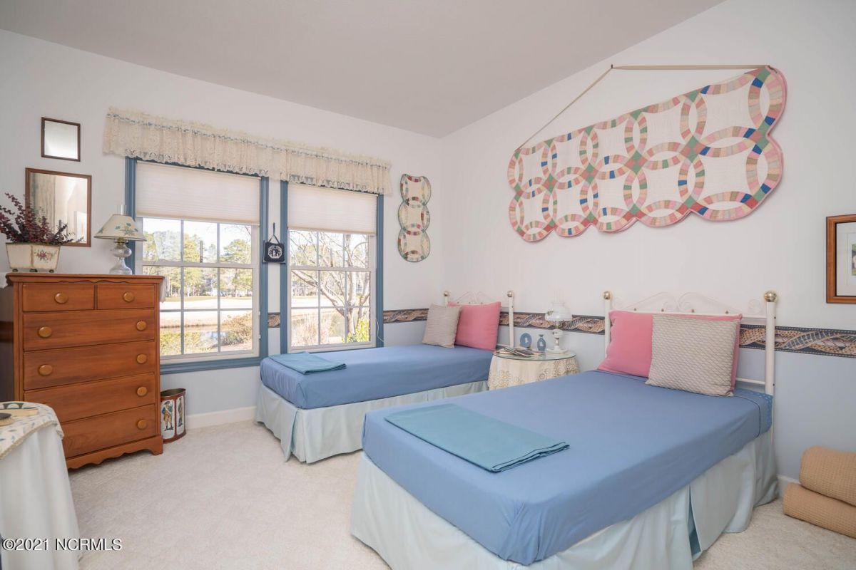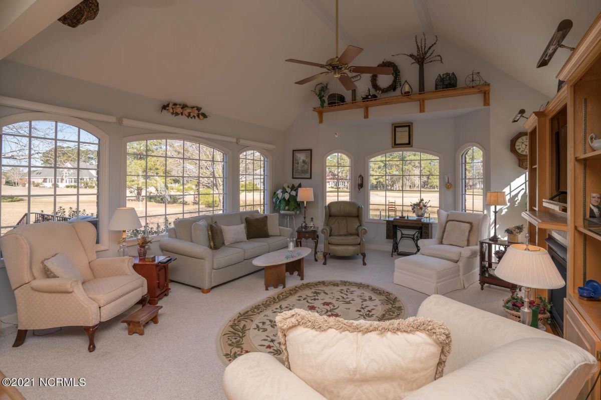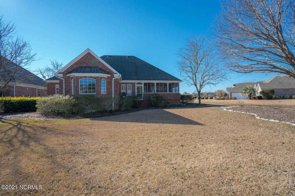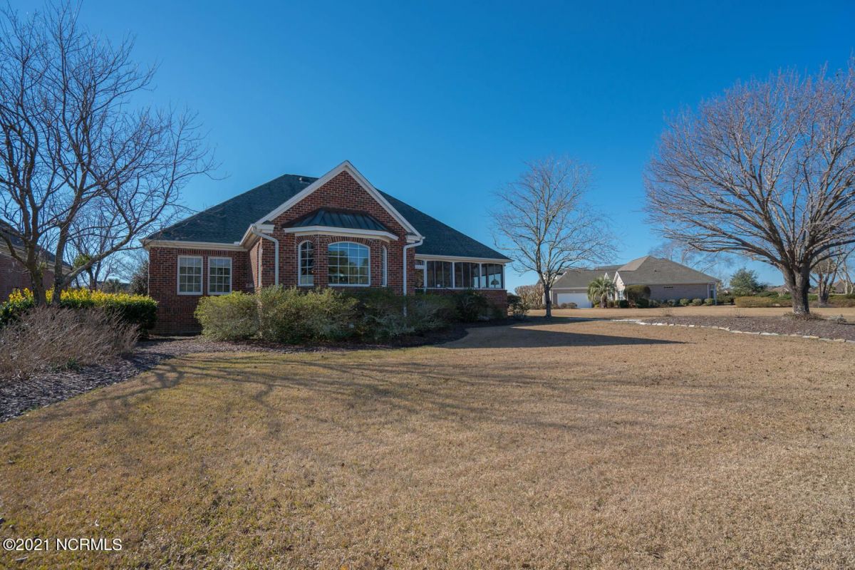 This custom brick beauty built by reputable Ernie Crews Construction boasts some of the best golf and pond views in the entire community! The glass along the back of the living room allows for great natural light with tee to green views of #16 Lion's Paw Golf Course. This home offers the desirable split floor plan with the primary bedroom on one side and the guest bedrooms on the other side so everyone has ample privacy. Also offers a bonus room with a half bath upstairs. Enlarged garage with a shower for cleaning off after coming from the Ocean Ridge Beach Clubhouse on Sunset Beach. Open kitchen to the living room makes it a great home for entertaining and it also has a breakfast nook and a formal dining room. Newly installed EZ Breeze windows on the screened-in porch offers an additional 235 square feet that the owners use much of the year with our great NC weather. Cul-de-sac location offers a quiet setting with great privacy. This home has been maintained extremely well by these original owners. New roof put on in 2021, new gutters, a new garage door, many new windows, new flooring/carpet, and freshly painted. A new heat pump for the downstairs replaced 4/2019, a new gas range in 9/2019, and a new water heater 1/2020. Ocean Ridge is widely regarded as the premier community in the Coastal Carolinas with it's 4 golf courses, 2 golf clubhouses/restaurants, a Plantation Clubhouse with a heated indoor pool, a sauna, steam room, a jacuzzi, a well-equipped fitness center, a banquet room, tennis/pickle ball courts, walking trails, over 50 social groups, a community garden, and last but not least, a beach clubhouse on the world famous Sunset Beach. There is something for everyone in Ocean Ridge!