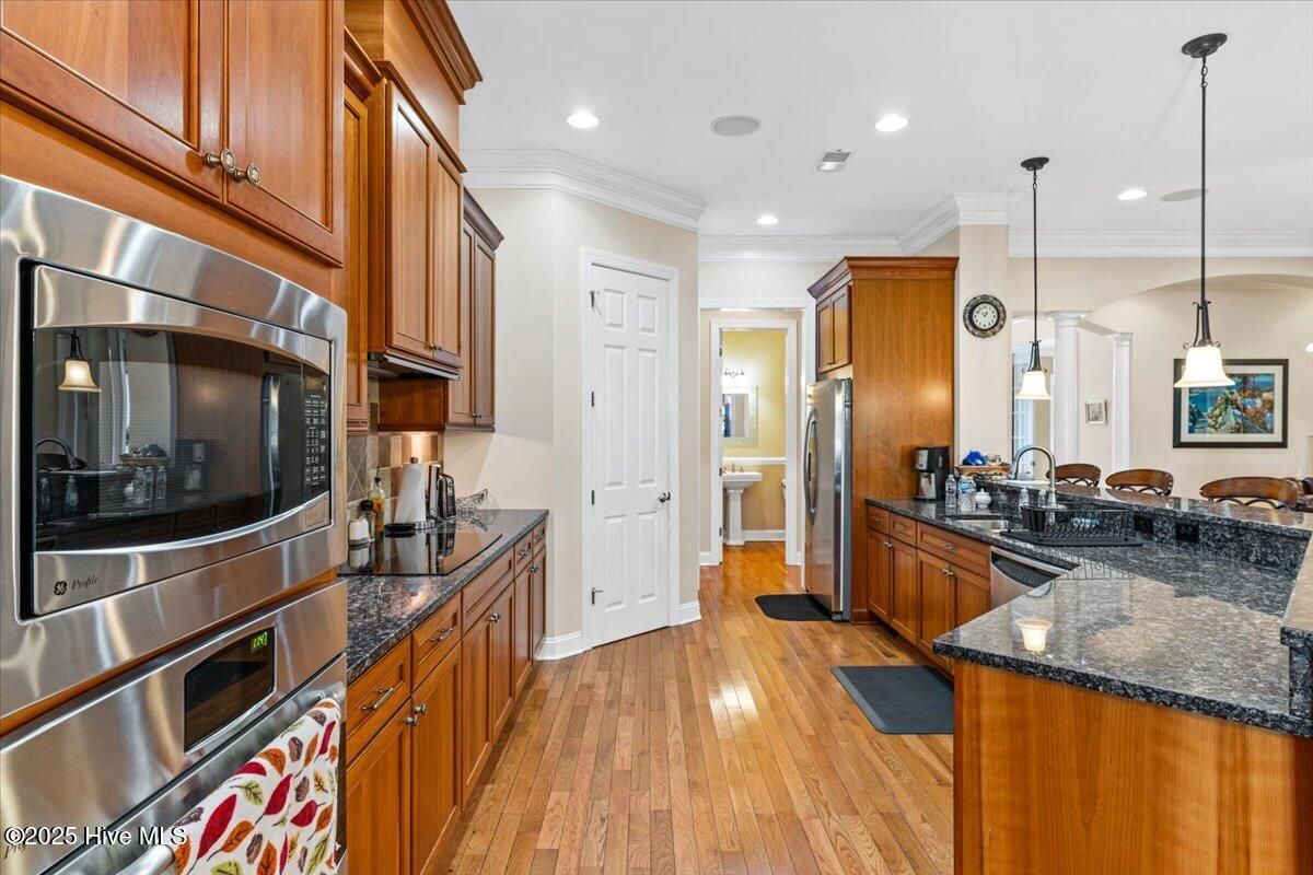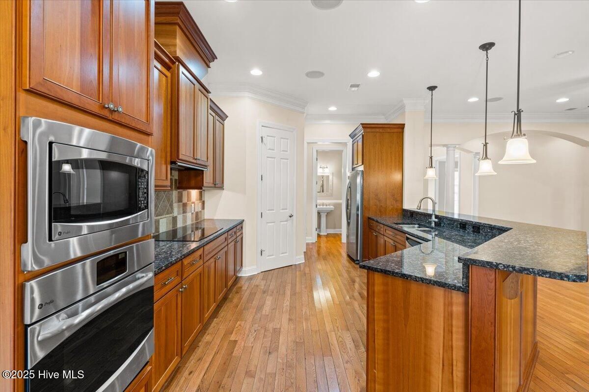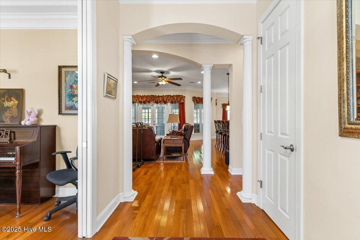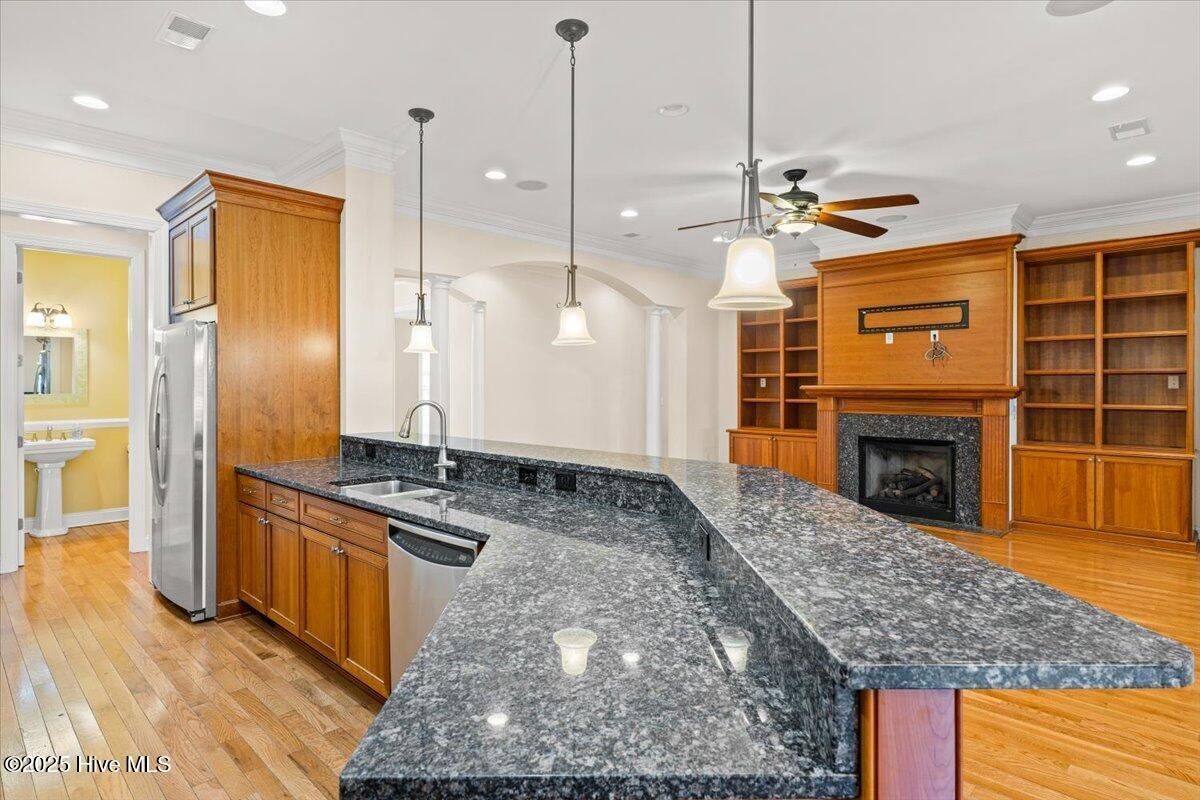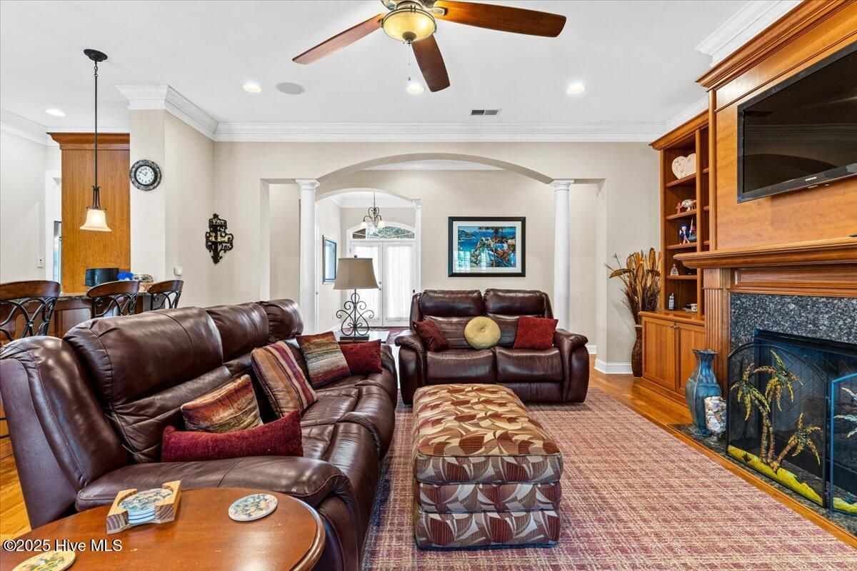 Discover Coastal Elegance at 7403 Haddington Place in Ocean Ridge Plantation, where luxury meets functionality in the highly desirable Haddington Place at Ocean Ridge Plantation. This remarkable home, offering over 3,000 square feet of thoughtfully designed living space, is situated on a spacious 0.323-acre lot that allows for outdoor enjoyment. As you approach, the front entrance, the exterior immediately commands attention, accented by architectural shingles and a copper cupola that adds a touch of timeless charm. The beautifully landscaped yard leads to a welcoming entryway that hints at the sophistication within. Inside, you're greeted by an open floor plan that exudes warmth and elegance. Vaulted ceilings draw your gaze upward, while custom built-ins surround a gas fireplace topped with a beautiful custom, crafted mantle—perfect for cozy evenings. The real hardwood floors extend throughout the main living spaces, tying the home together with a sense of timeless craftsmanship. The kitchen is a chef's dream, designed for both practicality and beauty. Granite countertops glisten under soft lighting, while a tile backsplash complements the electric cooktop and GE Profile appliances. Soft-close drawers, a walk-in pantry, and ample counter space make this kitchen as functional as it is stylish. The master suite offers a private retreat, complete with an expansive walk-in shower featuring two shower heads that feels like a personal retreat. Two additional bedrooms on the main floor feature plush carpeting and their own attached baths, offering comfort and convenience for family or guests. Upstairs, you'll find a versatile bonus room (or fourth bedroom) with durable LVP flooring and its own HVAC system, just approx. three years old—perfect for a private retreat, home gym, or entertainment space. Step into the sunroom, where natural light pours in through large windows, illuminating the inviting space that includes a bar, hot tub, and TV, ideal for entertaining or unwinding after a long day. From here, step out onto the stone paver patio, a charming outdoor space framed by wood railings and surrounded by lush landscaping. Whether hosting a summer barbecue or enjoying quiet evenings under the stars, this patio is your gateway to outdoor relaxation. Practicality meets luxury in every corner of this home. The oversized garage features an epoxy-coated floor, shelving, a refrigerator, and a convenient exterior door. Beneath the home, the crawl space is equipped with a vapor barrier and termite bond, ensuring peace of mind. Additional features include a central vacuum system, a propane tank connected to the grill, and an irrigation system unit for easy lawn maintenance. Beyond the home itself, ownership in Ocean Ridge Plantation grants access to unparalleled amenities such as access to four golf courses like Tiger's Eye, Leopard's Chase, Panther's Run and Lion's Paw. Spend your days at the private beachfront clubhouse on Sunset Beach, complete with showers, porches, and convenient parking. Enjoy the state-of-the-art fitness center, indoor and outdoor pools, and pickleball courts, or explore the walking trails and community gardens. A second amenity center, currently under construction, will add even more to this vibrant community, including an amphitheater and additional outdoor pool. Golf enthusiasts will revel in the three championship courses and two clubhouses right within the neighborhood. This home isn't just a place to live it's an invitation to embrace the ultimate coastal lifestyle. Don't miss the chance to call 7403 Haddington Place SW your own. Schedule your private tour today and step into the life you've always dreamed of!