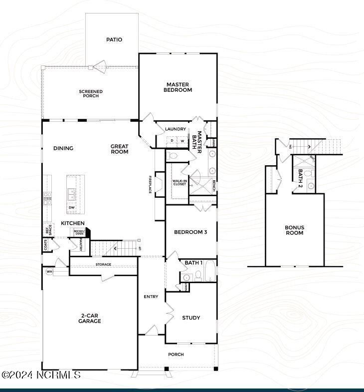 The Angler, a charming three-bedroom home, offers an open floor plan with plenty of space and an oversized screened porch tucked away for privacy while enjoying the peaceful and spacious backyard. . The main living area features a vaulted ceiling, and the master suite includes a walk-in closet and dual vanities. Conveniently placed laundry is easily accessible. Additionally, the home boasts a study for added functionality and an upstairs bonus room with a full bathroom and closet - could be used as a third bedroom for extra versatility. Additional storage is found in the garage, and a spacious pantry complements the kitchen. The Angler stands out as one of our most sought-after plans!