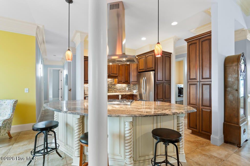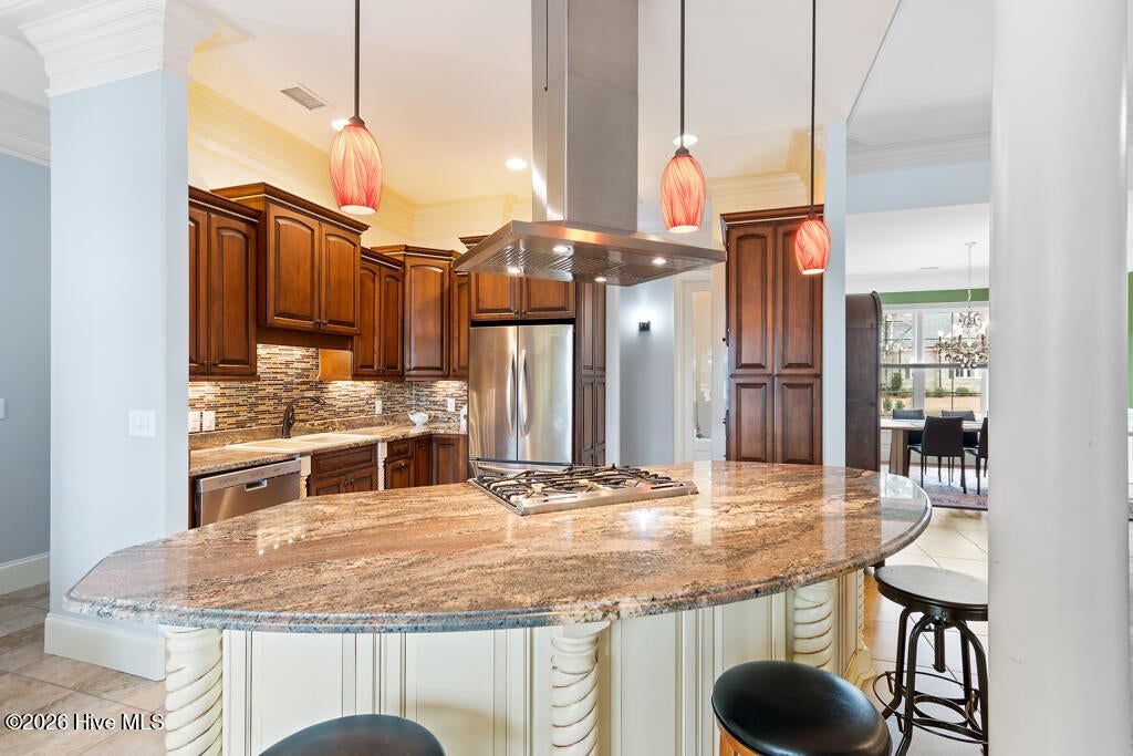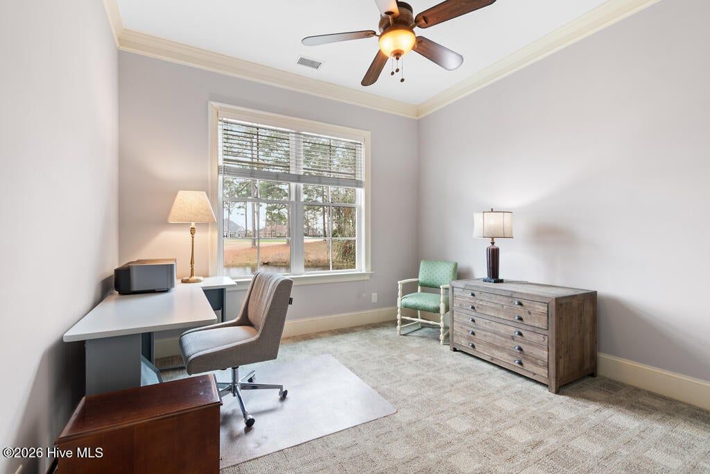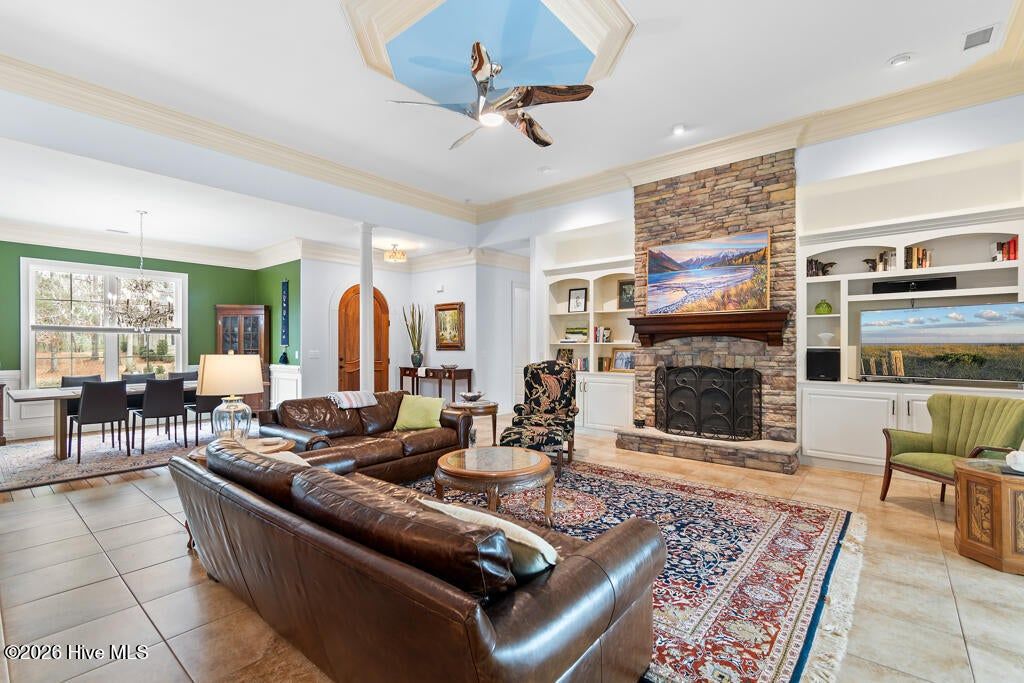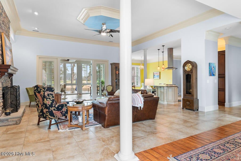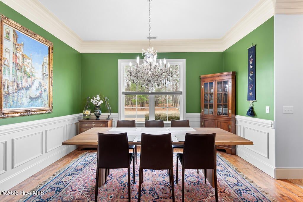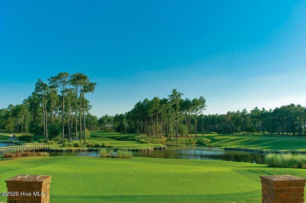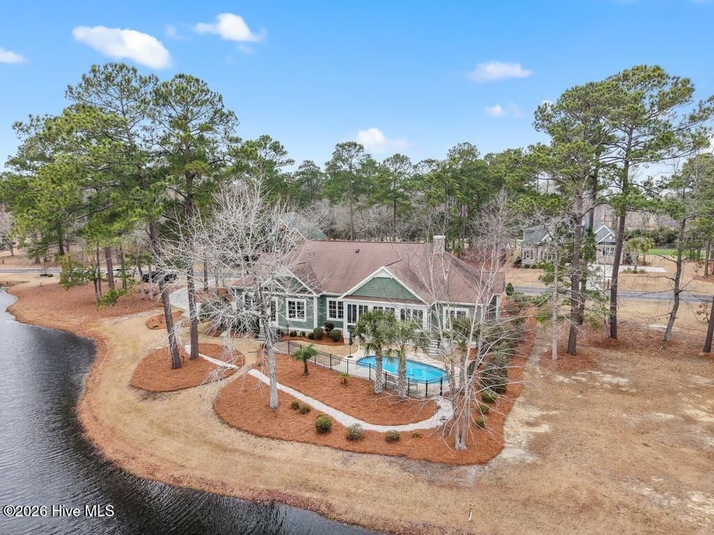 Panoramic water and golf course views set the stage for this beautifully crafted custom home built in 2012. Perfectly positioned on an exceptional homesite, the property captures sweeping vistas across the pond and fairway while offering privacy and mature landscaping. Designed to embrace the views, the spacious sunroom spans the rear of the home and provides nearly 200 degrees of breathtaking scenery overlooking the pool, water, and golf course. Just beyond, the saltwater swimming pool creates a resort-style retreat ideal for relaxing or entertaining during warm coastal Carolina days. Inside, the home showcases quality craftsmanship and thoughtful design throughout. The main living areas feature elegant tile flooring, detailed three- and four-piece crown molding, and a striking stone fireplace that anchors the living room. The custom kitchen is equally impressive, offering beautifully crafted cabinetry, granite countertops, and stainless-steel appliances designed for both function and style. The split-bedroom floor plan includes four bedrooms and three-and-a-half baths, providing comfort and privacy for family and guests. Each bedroom enjoys tranquil views of either the water or the golf course, creating a serene setting throughout the home. A spacious bonus room with a full bath offers an ideal guest suite, media room, or private retreat.
