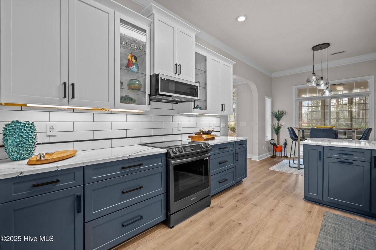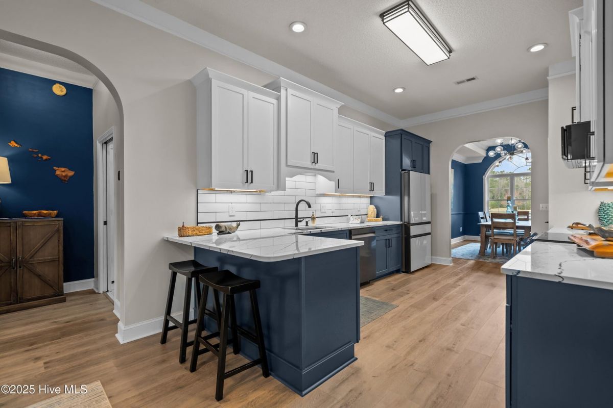 Don't miss the opportunity to see this newly listed one level home in Ocean Ridge Plantation. With three bedrooms and two and one half baths, this is one level living. A long and private driveway will lead you to the fantastic custom-built brick home. It has been recently renovated and wait until you see the finishes! Situated on nearly one-half acre of beautifully landscaped property with natural back yard and a golf course view. The kitchen has just been completed with all Samsung BeSpoke appliances, Cambria quartz countertops and tile backsplash. The entire home has Mohawk Rev Wood Villa Oak Flooring. There is a large formal dining room and a breakfast nook. Living room with fireplace to cozy up to and enjoy the surrounding nature and golf course. Primary bedroom is spacious with two walk-in closets, large bathroom has tub and walk in shower, The porch is EZ Breeze and there is a flagstone patio. Large laundry room with built-in refrigerator. Walk up attic and extra work room in garage area. This home is a must see, there is literally nothing to do but move in. Ocean Ridge is an amenity rich community with four highly rated golf courses, indoor and outdoor pools, tennis, pickleball, exercise facility, social group and all residents have use of the Sunset Beach Golf House and parking lot. This is a private club only for Ocean Ridge property owners. There are walking and hiking trails within the community. Additionally, the new Ridge Center and Campus will soon open with 9300 square feet of additional recreation, library, conference room and catering facility. Both Sunset and Ocean Isle Beaches are just a few miles away. Wilmington and Myrtle Beach Airports are easy to access, parks and restaurants are abundant and filled with friendly faces and great food! With all of the area restaurants, golf courses and entertainment you will never be bored! This is an award-winning community. and it's time for you to make it your home!!