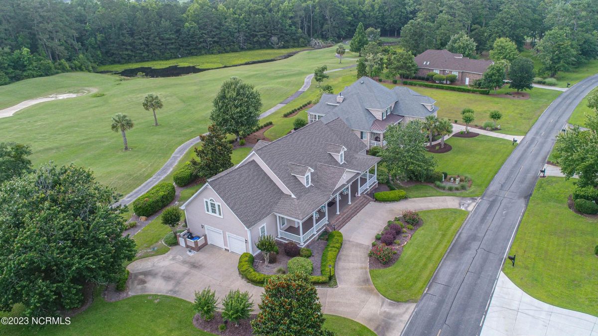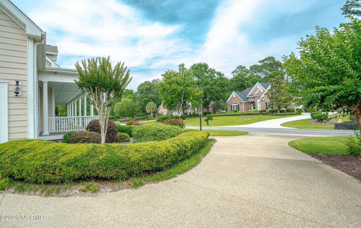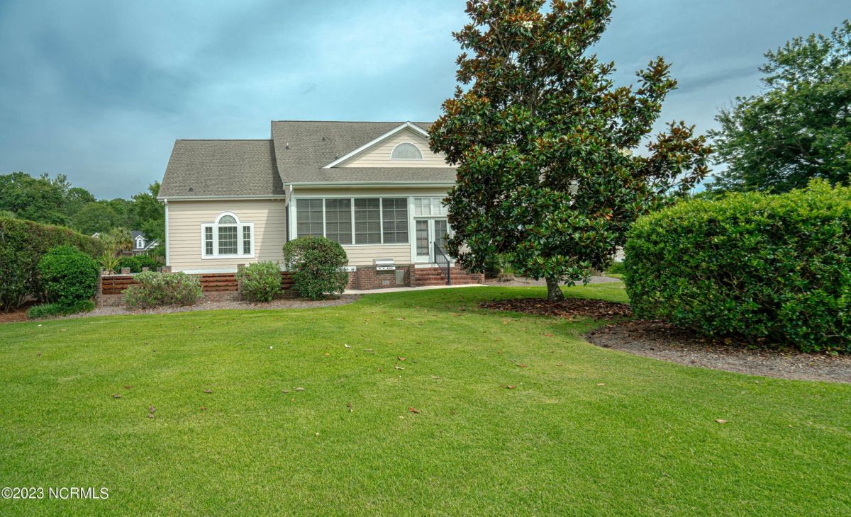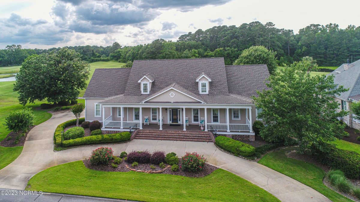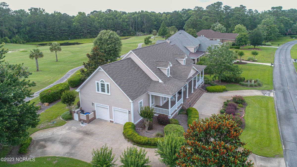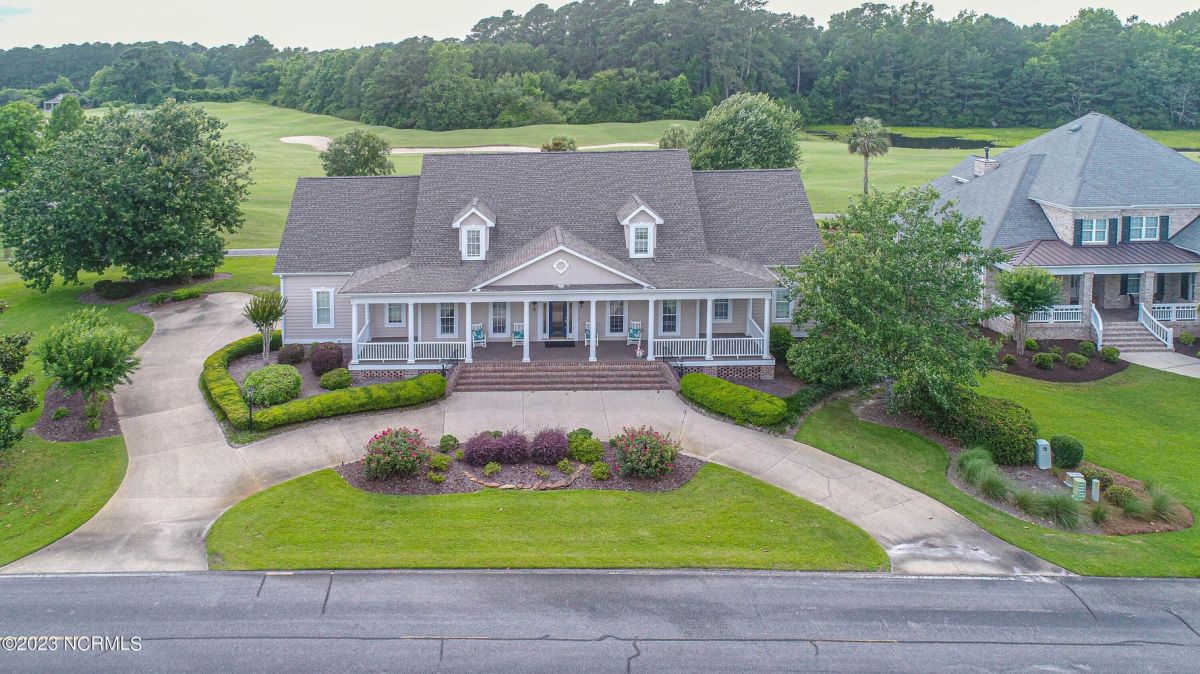 This beautiful low country style home welcomes you from the minute you turn onto the circular drive. It sits on a .46/acre corner lot and backs up to the 5th hole of Lion's Paw Golf Course. Offers tee-to-green views, only one neighbor, and thick tree coverage beyond the golf course. The privacy afforded by the location sets it apart. It was originally the personal home of its custom builder and it shows. The architectural details include the mouldings, 2 fireplaces, built-in wall cabinets, gleaming hardwood floors throughout the main living areas, ceramic tile in the entry way and kitchen, and 3.5 bathrooms. The structural details include steel framed construction, Hardie siding (painted in 2020), and a crawl space with a dehumidifier and sump pump. This home has all the rooms you'll ever need. The first floor has a formal dining room, a cook's kitchen with a gas cooktop, a breakfast nook, a den/office, a large living room accented by a beautiful stone fireplace, and a large primary suite with a dressing room closet. It also features a huge screened-in porch with EZ Breeze windows. Enjoy watching the hackers go by as you sip your morning coffee or a late afternoon adult beverage! Upstairs features 3 additional bedrooms and 2 full bathrooms. Storage galore in this home with many closets, several walk-in attics, and even a heated/cooled storage space. This well-maintained home has a new roof (2017), 2 new heat pumps, and new crawl-space sump pump (2022). The big-ticket items have been addressed so you can move in and start living the good life. This home offers great value for those looking for more space to stretch out! Ocean Ridge has it all with its 4 golf courses, a beach clubhouse on Sunset Beach, a heated indoor pool, sauna, steam room, jacuzzi, a banquet room, an outdoor pool, pickle ball courts, & a great fitness center. Ocean Ridge is widely regarded as the premier community in the entire coastal NC area.