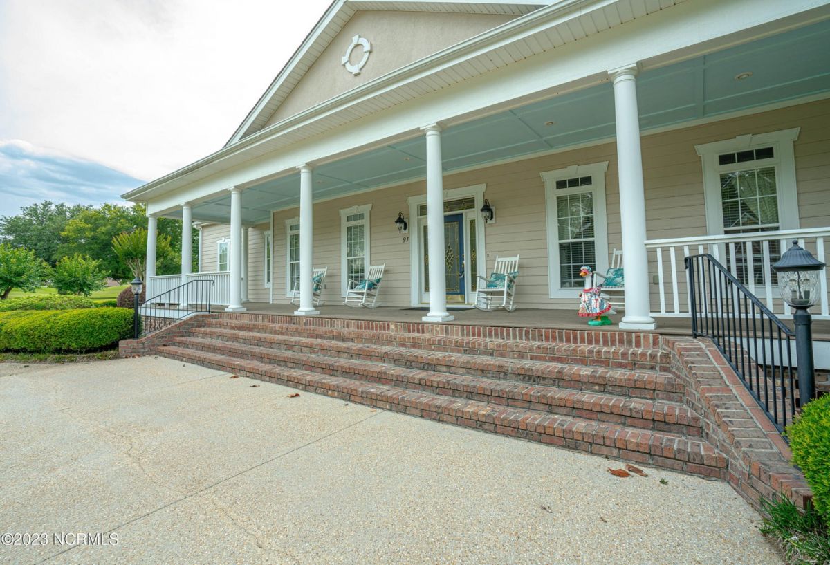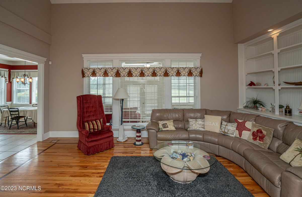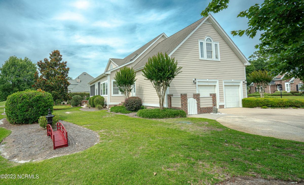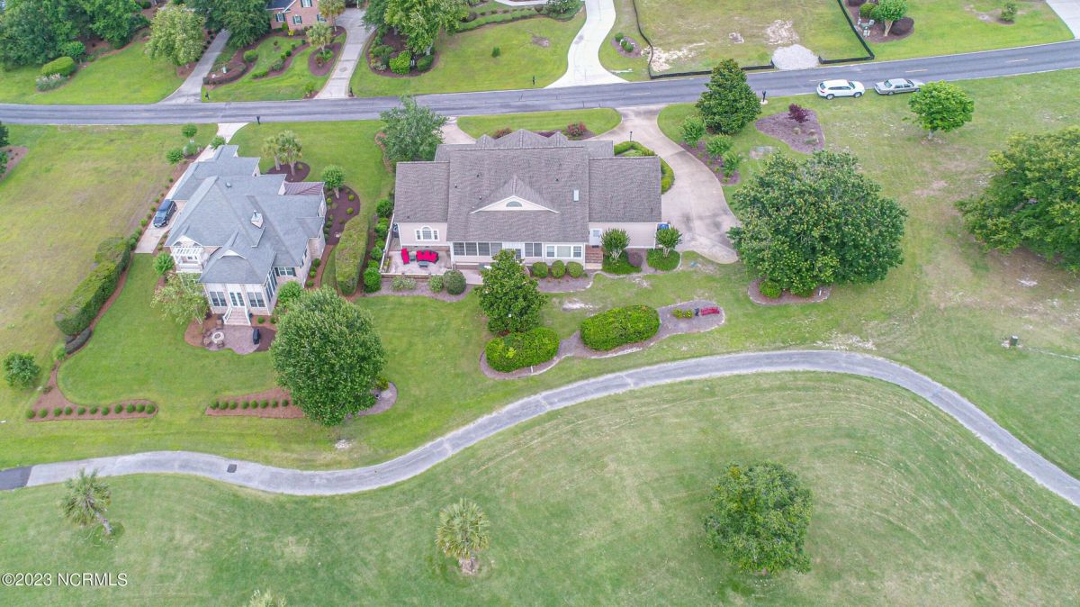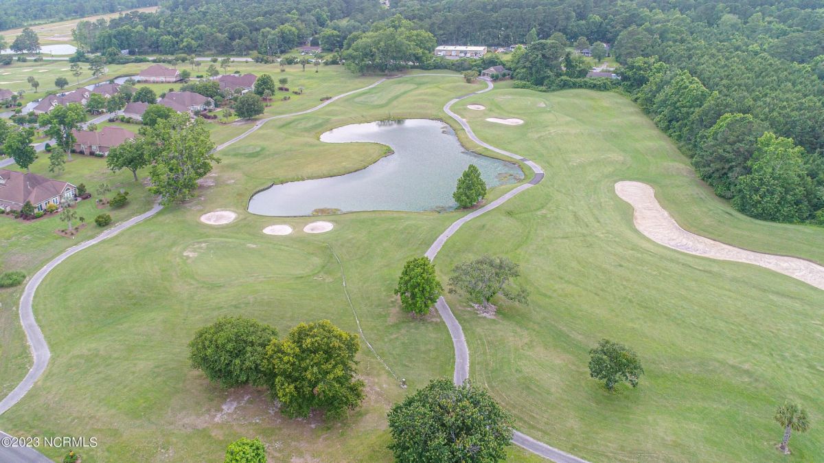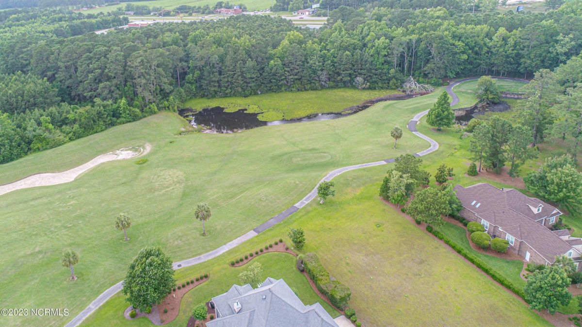 This beautiful low country style home welcomes you from the minute you turn onto the circular drive. It sits on a .46/acre corner lot and backs up to the 5th hole of Lion's Paw Golf Course. Offers tee-to-green views, only one neighbor, and thick tree coverage beyond the golf course. The privacy afforded by the location sets it apart. It was originally the personal home of its custom builder and it shows. The architectural details include the mouldings, 2 fireplaces, built-in wall cabinets, gleaming hardwood floors throughout the main living areas, ceramic tile in the entry way and kitchen, and 3.5 bathrooms. The structural details include steel framed construction, Hardie siding (painted in 2020), and a crawl space with a dehumidifier and sump pump. This home has all the rooms you'll ever need. The first floor has a formal dining room, a cook's kitchen with a gas cooktop, a breakfast nook, a den/office, a large living room accented by a beautiful stone fireplace, and a large primary suite with a dressing room closet. It also features a huge screened-in porch with EZ Breeze windows. Enjoy watching the hackers go by as you sip your morning coffee or a late afternoon adult beverage! Upstairs features 3 additional bedrooms and 2 full bathrooms. Storage galore in this home with many closets, several walk-in attics, and even a heated/cooled storage space. This well-maintained home has a new roof (2017), 2 new heat pumps, and new crawl-space sump pump (2022). The big-ticket items have been addressed so you can move in and start living the good life. This home offers great value for those looking for more space to stretch out! Ocean Ridge has it all with its 4 golf courses, a beach clubhouse on Sunset Beach, a heated indoor pool, sauna, steam room, jacuzzi, a banquet room, an outdoor pool, pickle ball courts, & a great fitness center. Ocean Ridge is widely regarded as the premier community in the entire coastal NC area.