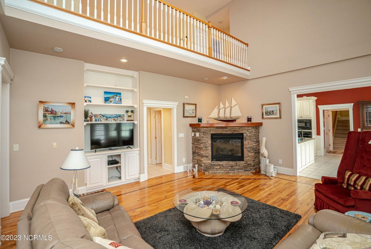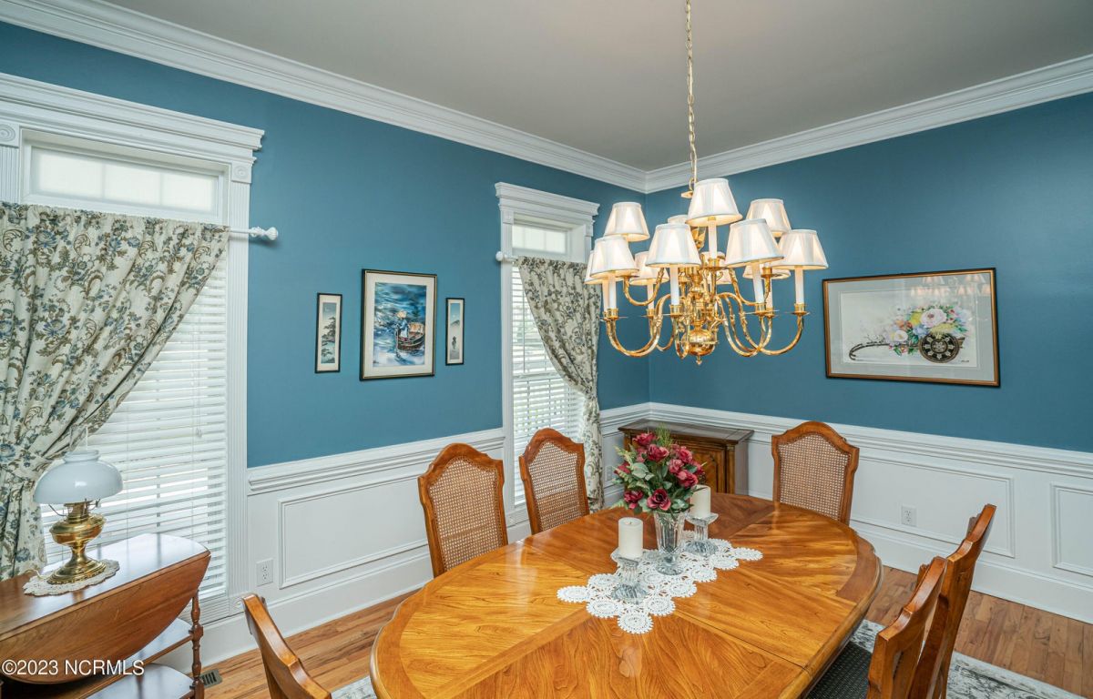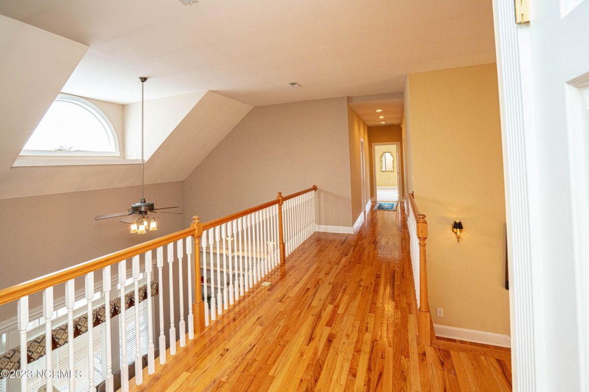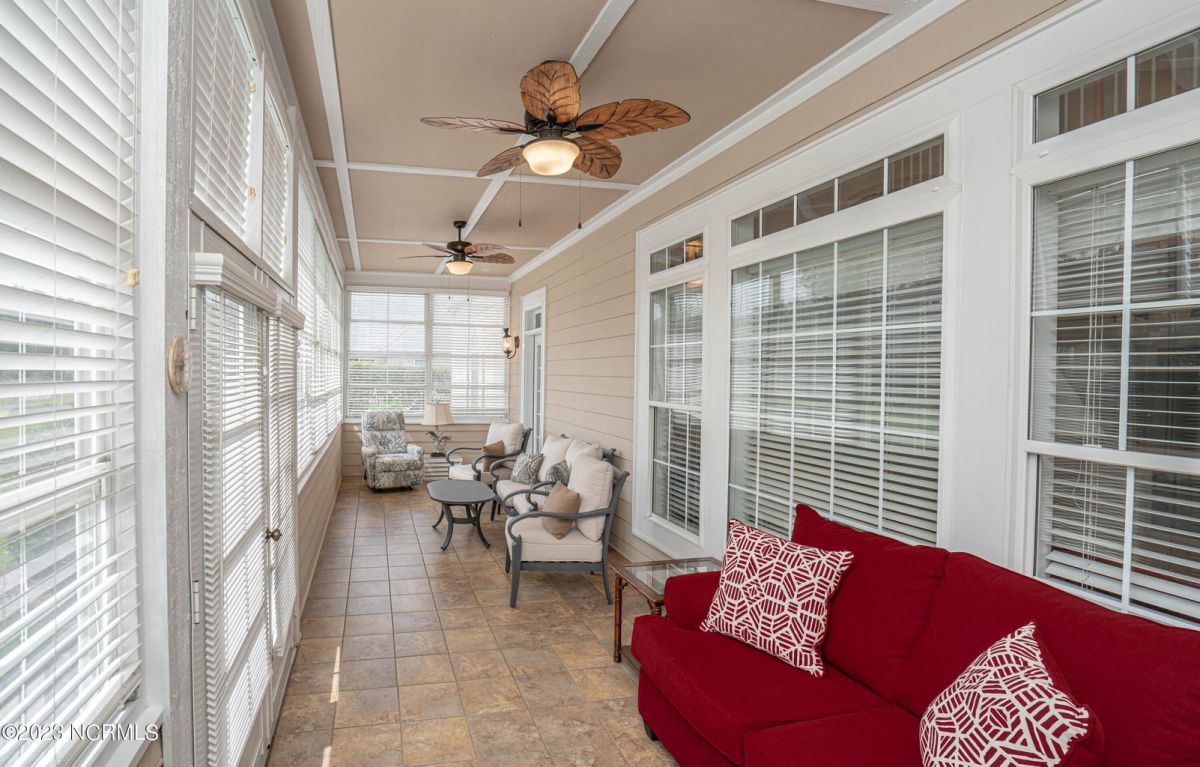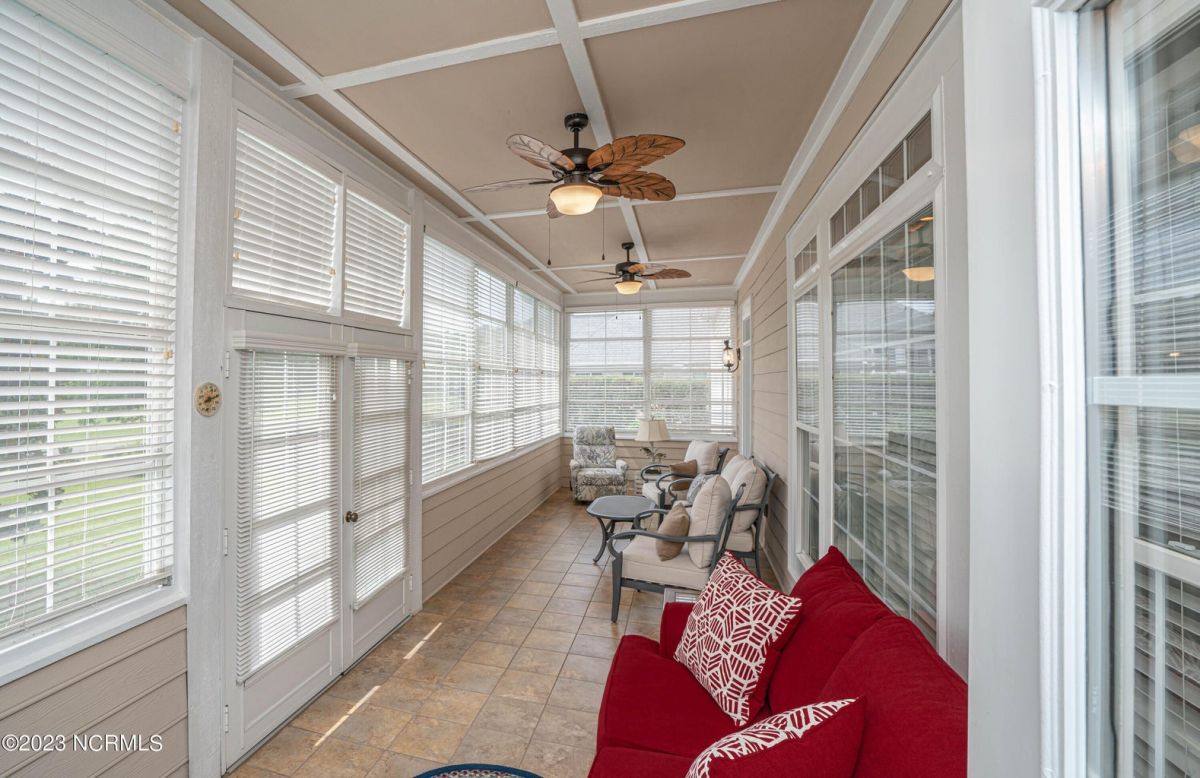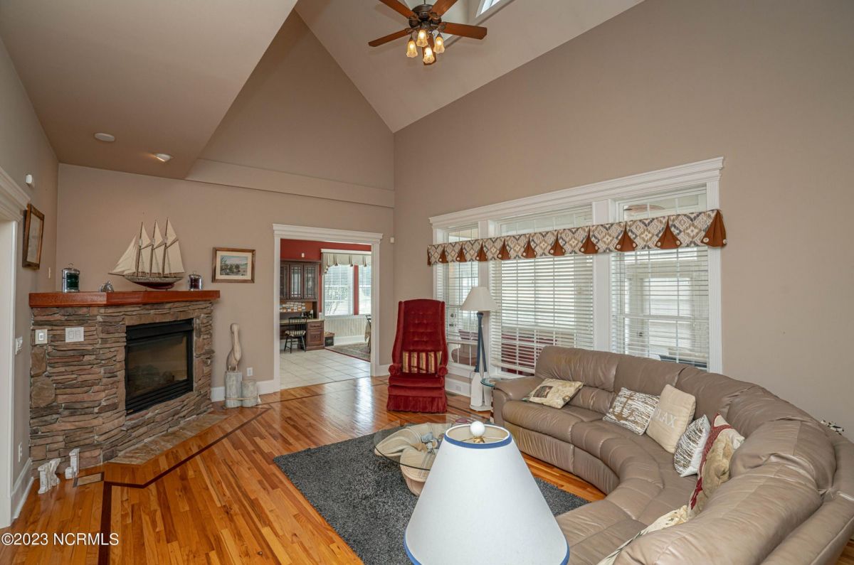 This beautiful low country style home welcomes you from the minute you turn onto the circular drive. It sits on a .46/acre corner lot and backs up to the 5th hole of Lion's Paw Golf Course. Offers tee-to-green views, only one neighbor, and thick tree coverage beyond the golf course. The privacy afforded by the location sets it apart. It was originally the personal home of its custom builder and it shows. The architectural details include the mouldings, 2 fireplaces, built-in wall cabinets, gleaming hardwood floors throughout the main living areas, ceramic tile in the entry way and kitchen, and 3.5 bathrooms. The structural details include steel framed construction, Hardie siding (painted in 2020), and a crawl space with a dehumidifier and sump pump. This home has all the rooms you'll ever need. The first floor has a formal dining room, a cook's kitchen with a gas cooktop, a breakfast nook, a den/office, a large living room accented by a beautiful stone fireplace, and a large primary suite with a dressing room closet. It also features a huge screened-in porch with EZ Breeze windows. Enjoy watching the hackers go by as you sip your morning coffee or a late afternoon adult beverage! Upstairs features 3 additional bedrooms and 2 full bathrooms. Storage galore in this home with many closets, several walk-in attics, and even a heated/cooled storage space. This well-maintained home has a new roof (2017), 2 new heat pumps, and new crawl-space sump pump (2022). The big-ticket items have been addressed so you can move in and start living the good life. This home offers great value for those looking for more space to stretch out! Ocean Ridge has it all with its 4 golf courses, a beach clubhouse on Sunset Beach, a heated indoor pool, sauna, steam room, jacuzzi, a banquet room, an outdoor pool, pickle ball courts, & a great fitness center. Ocean Ridge is widely regarded as the premier community in the entire coastal NC area.