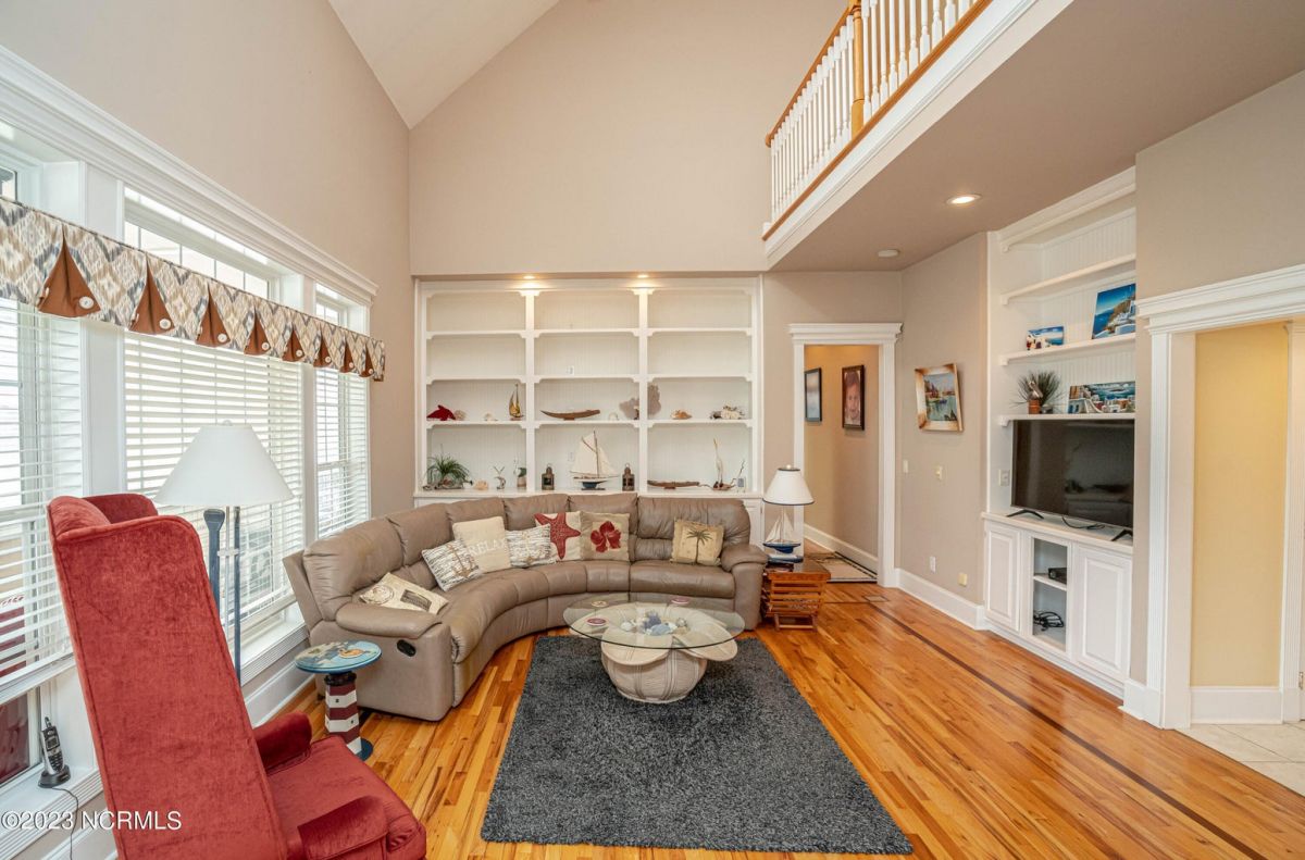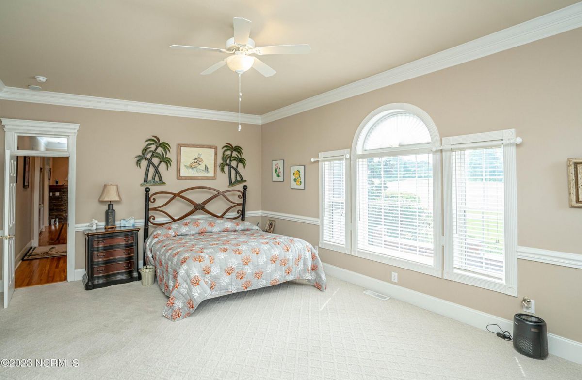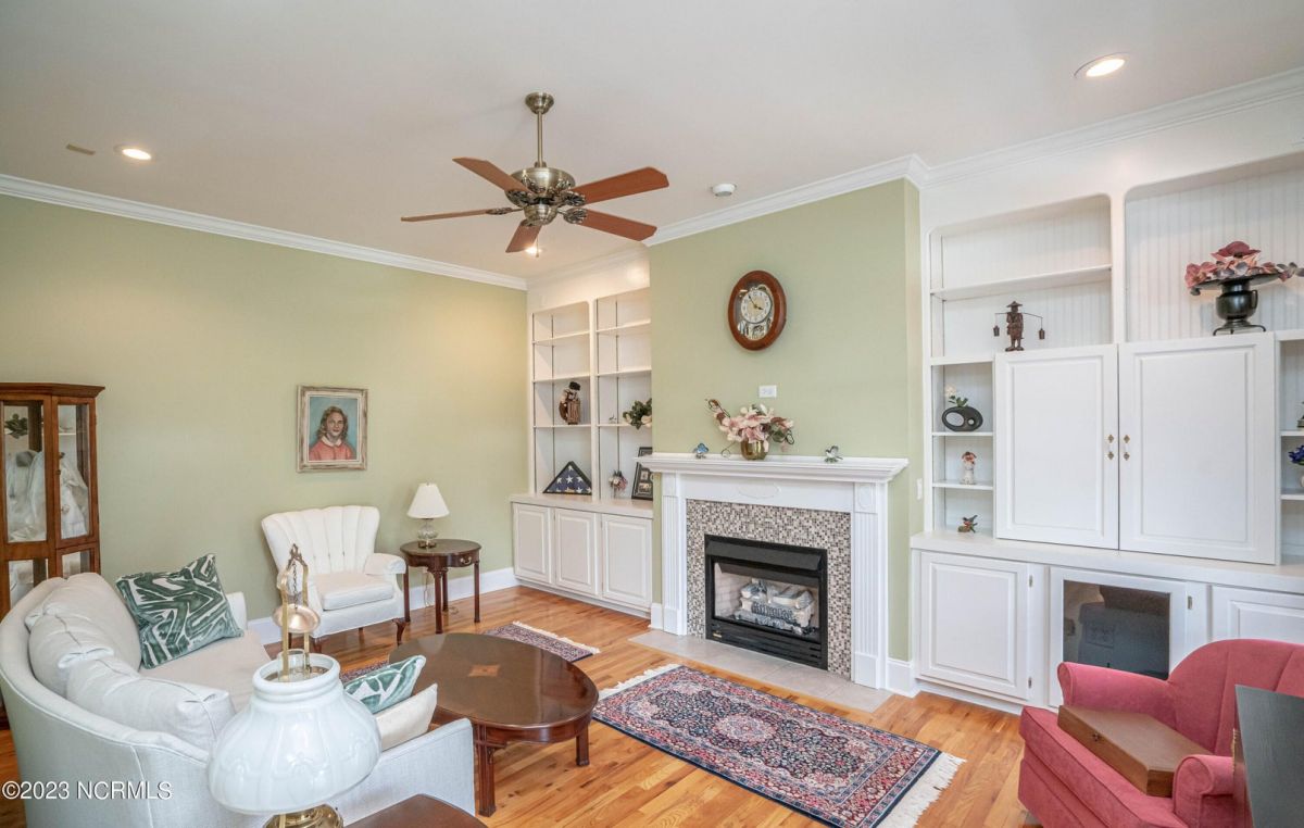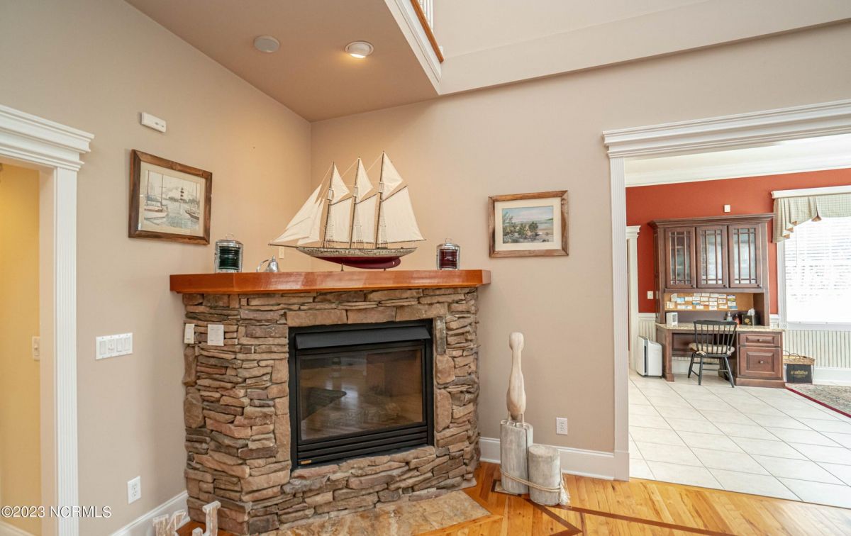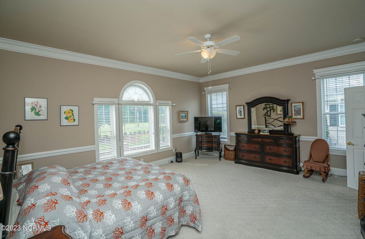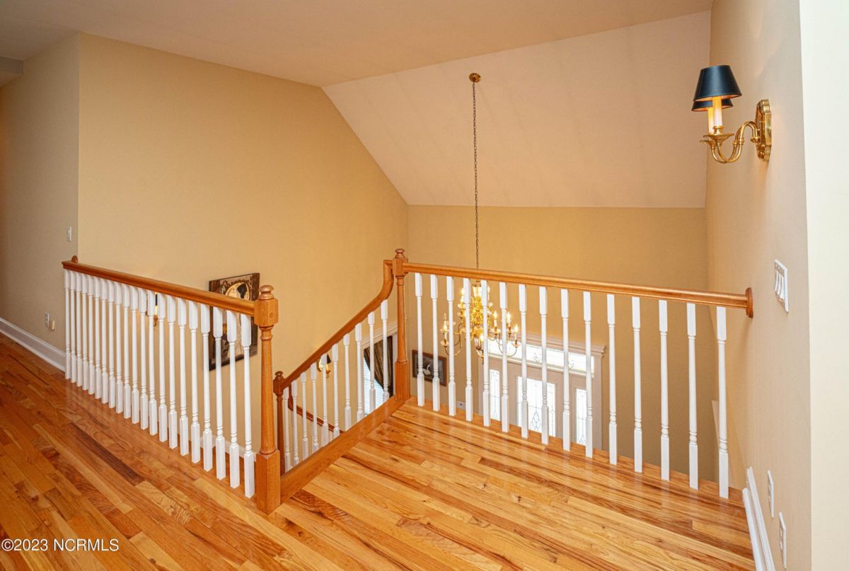 This beautiful low country style home welcomes you from the minute you turn onto the circular drive. It sits on a .46/acre corner lot and backs up to the 5th hole of Lion's Paw Golf Course. Offers tee-to-green views, only one neighbor, and thick tree coverage beyond the golf course. The privacy afforded by the location sets it apart. It was originally the personal home of its custom builder and it shows. The architectural details include the mouldings, 2 fireplaces, built-in wall cabinets, gleaming hardwood floors throughout the main living areas, ceramic tile in the entry way and kitchen, and 3.5 bathrooms. The structural details include steel framed construction, Hardie siding (painted in 2020), and a crawl space with a dehumidifier and sump pump. This home has all the rooms you'll ever need. The first floor has a formal dining room, a cook's kitchen with a gas cooktop, a breakfast nook, a den/office, a large living room accented by a beautiful stone fireplace, and a large primary suite with a dressing room closet. It also features a huge screened-in porch with EZ Breeze windows. Enjoy watching the hackers go by as you sip your morning coffee or a late afternoon adult beverage! Upstairs features 3 additional bedrooms and 2 full bathrooms. Storage galore in this home with many closets, several walk-in attics, and even a heated/cooled storage space. This well-maintained home has a new roof (2017), 2 new heat pumps, and new crawl-space sump pump (2022). The big-ticket items have been addressed so you can move in and start living the good life. This home offers great value for those looking for more space to stretch out! Ocean Ridge has it all with its 4 golf courses, a beach clubhouse on Sunset Beach, a heated indoor pool, sauna, steam room, jacuzzi, a banquet room, an outdoor pool, pickle ball courts, & a great fitness center. Ocean Ridge is widely regarded as the premier community in the entire coastal NC area.