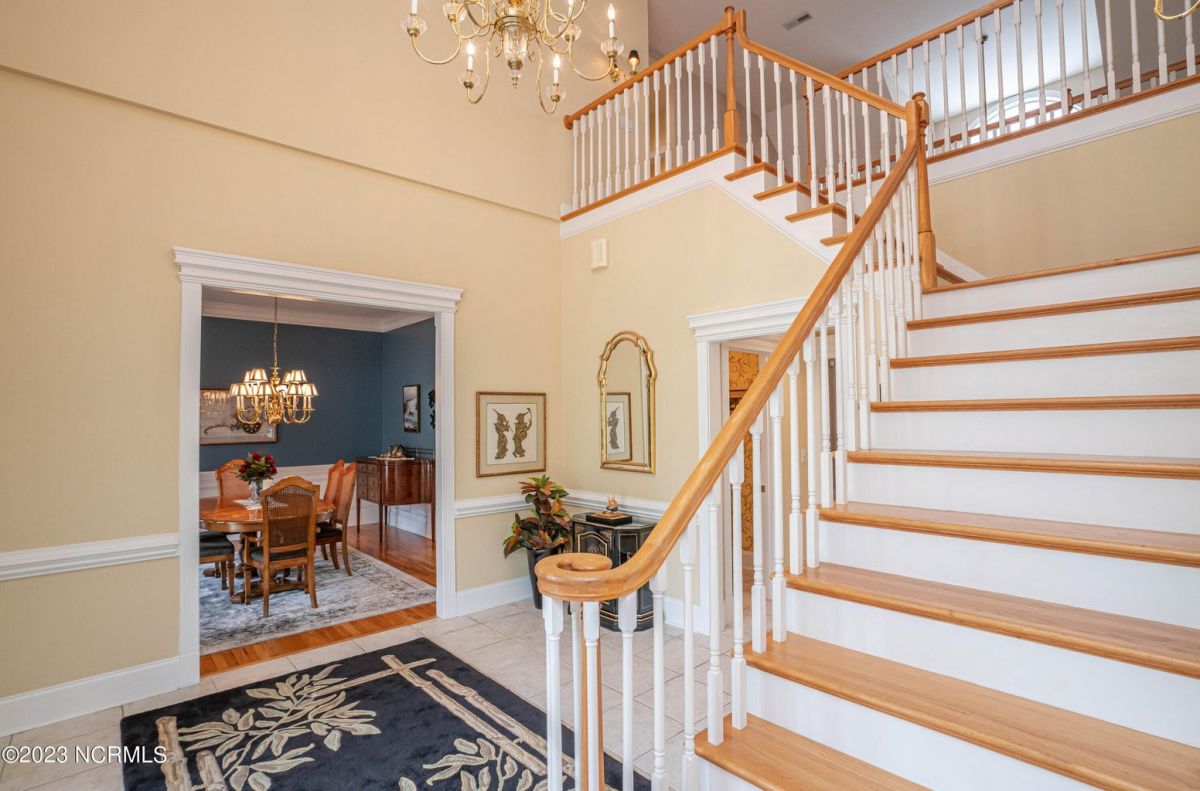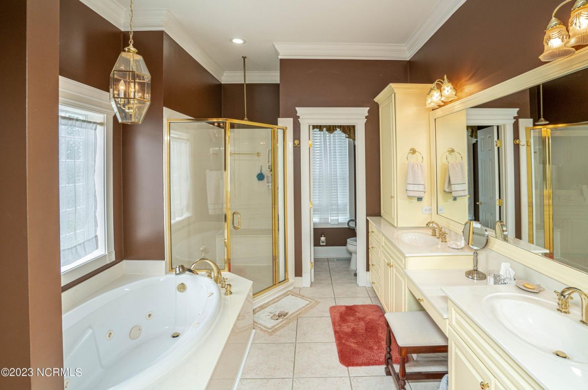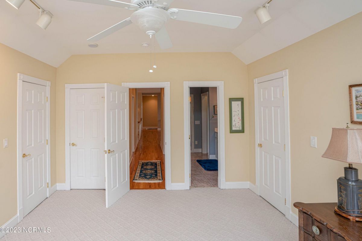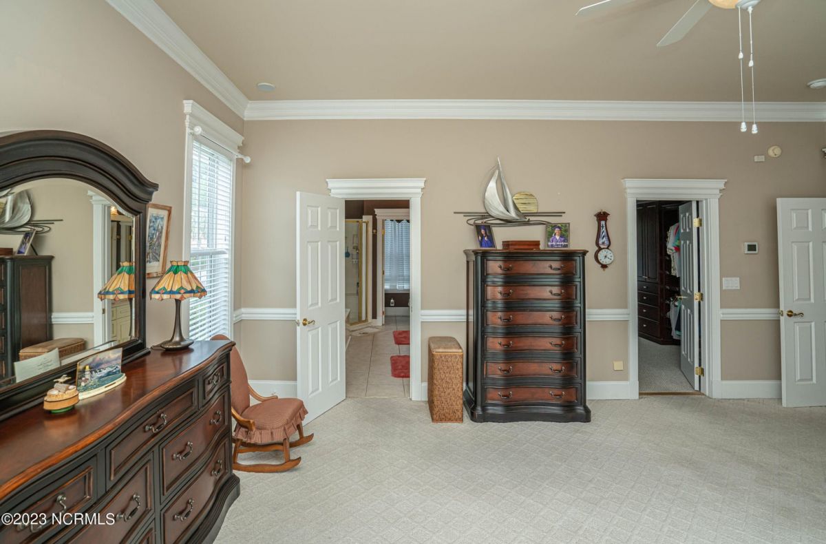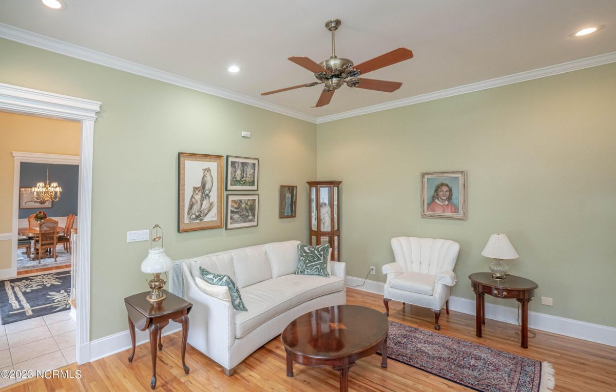 This beautiful low country style home welcomes you from the minute you turn onto the circular drive. It sits on a .46/acre corner lot and backs up to the 5th hole of Lion's Paw Golf Course. Offers tee-to-green views, only one neighbor, and thick tree coverage beyond the golf course. The privacy afforded by the location sets it apart. It was originally the personal home of its custom builder and it shows. The architectural details include the mouldings, 2 fireplaces, built-in wall cabinets, gleaming hardwood floors throughout the main living areas, ceramic tile in the entry way and kitchen, and 3.5 bathrooms. The structural details include steel framed construction, Hardie siding (painted in 2020), and a crawl space with a dehumidifier and sump pump. This home has all the rooms you'll ever need. The first floor has a formal dining room, a cook's kitchen with a gas cooktop, a breakfast nook, a den/office, a large living room accented by a beautiful stone fireplace, and a large primary suite with a dressing room closet. It also features a huge screened-in porch with EZ Breeze windows. Enjoy watching the hackers go by as you sip your morning coffee or a late afternoon adult beverage! Upstairs features 3 additional bedrooms and 2 full bathrooms. Storage galore in this home with many closets, several walk-in attics, and even a heated/cooled storage space. This well-maintained home has a new roof (2017), 2 new heat pumps, and new crawl-space sump pump (2022). The big-ticket items have been addressed so you can move in and start living the good life. This home offers great value for those looking for more space to stretch out! Ocean Ridge has it all with its 4 golf courses, a beach clubhouse on Sunset Beach, a heated indoor pool, sauna, steam room, jacuzzi, a banquet room, an outdoor pool, pickle ball courts, & a great fitness center. Ocean Ridge is widely regarded as the premier community in the entire coastal NC area.