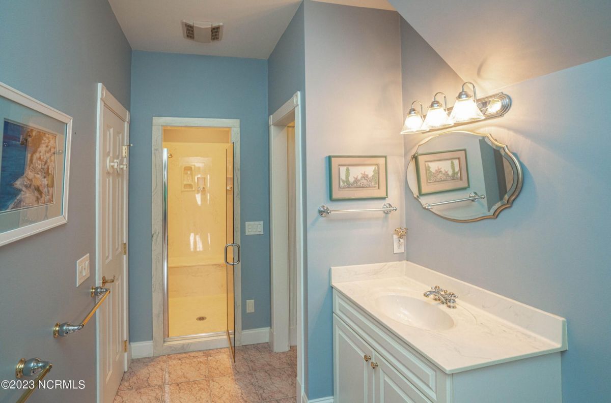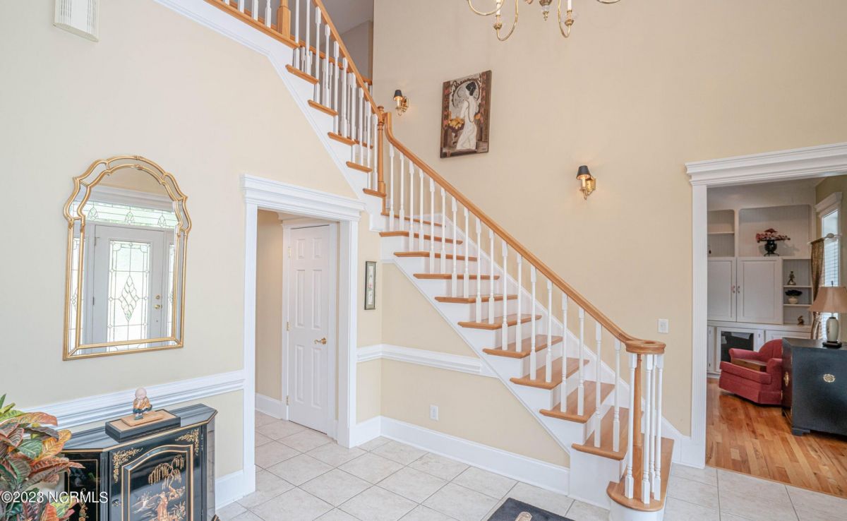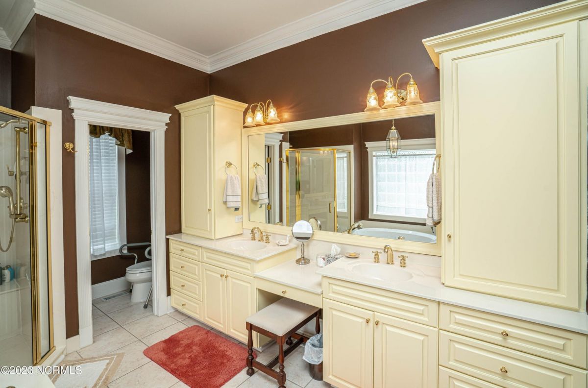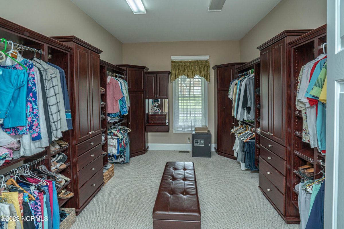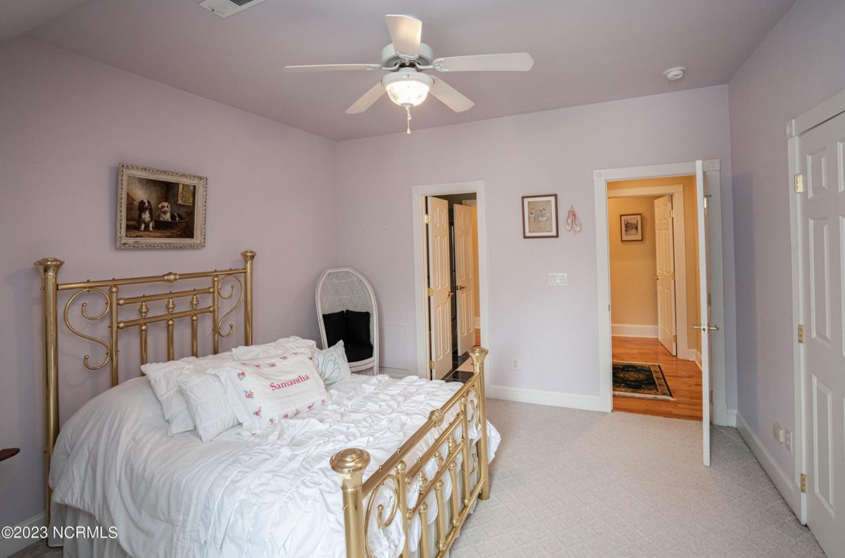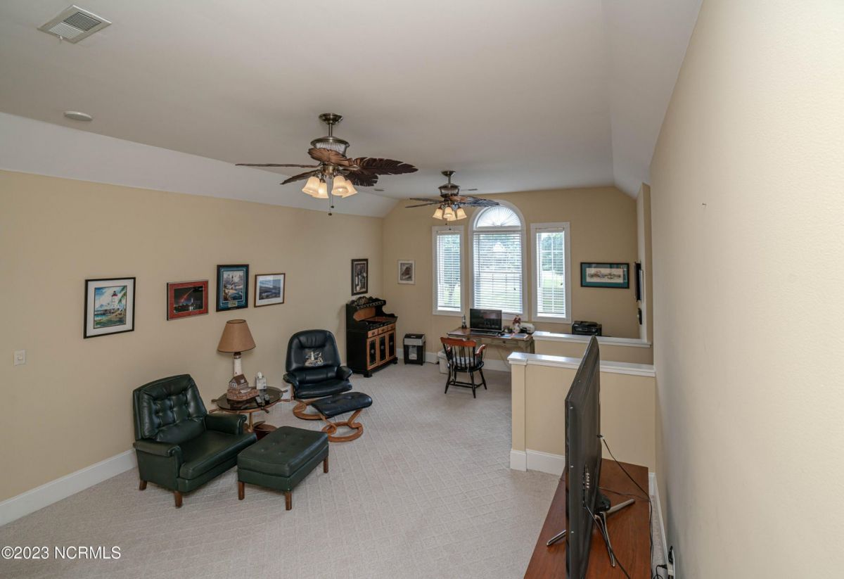 This beautiful low country style home welcomes you from the minute you turn onto the circular drive. It sits on a .46/acre corner lot and backs up to the 5th hole of Lion's Paw Golf Course. Offers tee-to-green views, only one neighbor, and thick tree coverage beyond the golf course. The privacy afforded by the location sets it apart. It was originally the personal home of its custom builder and it shows. The architectural details include the mouldings, 2 fireplaces, built-in wall cabinets, gleaming hardwood floors throughout the main living areas, ceramic tile in the entry way and kitchen, and 3.5 bathrooms. The structural details include steel framed construction, Hardie siding (painted in 2020), and a crawl space with a dehumidifier and sump pump. This home has all the rooms you'll ever need. The first floor has a formal dining room, a cook's kitchen with a gas cooktop, a breakfast nook, a den/office, a large living room accented by a beautiful stone fireplace, and a large primary suite with a dressing room closet. It also features a huge screened-in porch with EZ Breeze windows. Enjoy watching the hackers go by as you sip your morning coffee or a late afternoon adult beverage! Upstairs features 3 additional bedrooms and 2 full bathrooms. Storage galore in this home with many closets, several walk-in attics, and even a heated/cooled storage space. This well-maintained home has a new roof (2017), 2 new heat pumps, and new crawl-space sump pump (2022). The big-ticket items have been addressed so you can move in and start living the good life. This home offers great value for those looking for more space to stretch out! Ocean Ridge has it all with its 4 golf courses, a beach clubhouse on Sunset Beach, a heated indoor pool, sauna, steam room, jacuzzi, a banquet room, an outdoor pool, pickle ball courts, & a great fitness center. Ocean Ridge is widely regarded as the premier community in the entire coastal NC area.