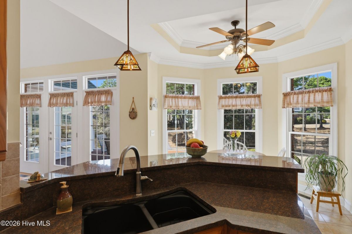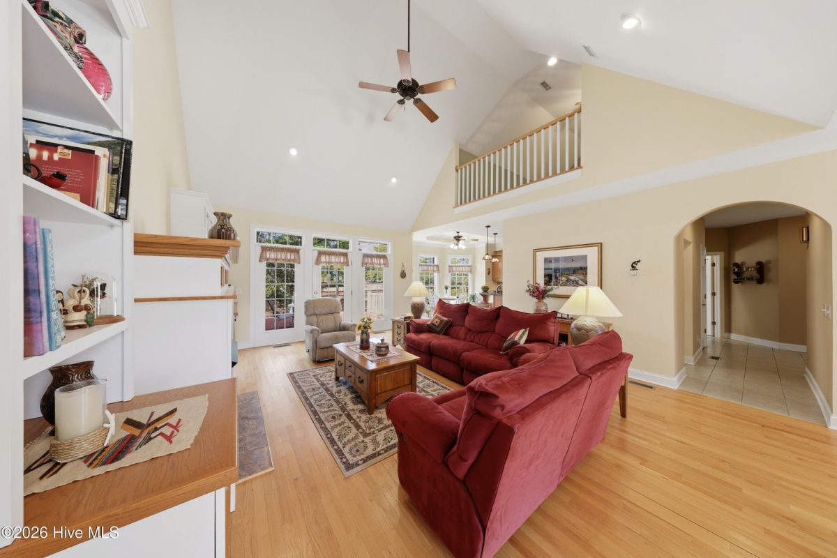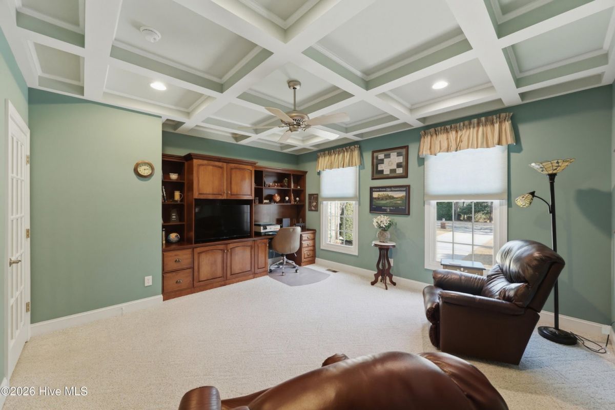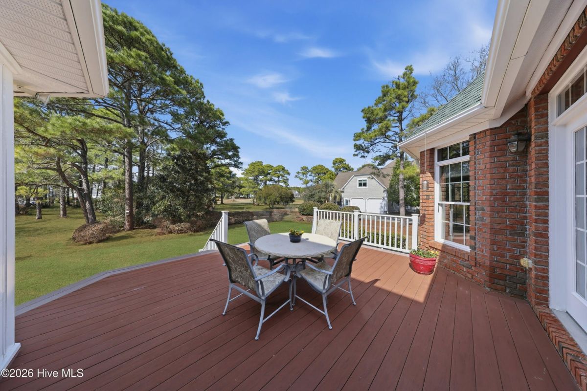 Love to entertain while enjoying stunning views of the pond and the 10th green of Founders? This beautifully maintained brick custom home offers an open floor plan designed for gathering and everyday comfort, thoughtfully positioned to capture peaceful water and golf course vistas from the main living areas. The cook's kitchen features granite countertops, abundant cabinetry, generous prep space, and a built-in desk area, opening seamlessly to the great room where vaulted ceilings, a wall of windows, and a cozy fireplace create a warm, light-filled setting. The private owner's wing serves as a true retreat. The spacious primary suite is highlighted by a double tray ceiling and serene views, while the luxurious bath offers dual vanities, a jetted jacuzzi tub, a built-in dressing table, and a beautifully appointed walk-in shower complete with built-in bench seating, handheld spray, and overhead rain shower. Dual walk-in closets provide exceptional storage and functionality. On the opposite side of the home, you'll find a guest bedroom and full bath, along with a dedicated office or study featuring a coffered ceiling, ideal for working from home or accommodating visitors with privacy. Upstairs, a loft-style bedroom overlooks the great room below, adding architectural interest and an open feel. A generous bonus room with built-in drawers and additional storage closets provides flexible living space for guests, hobbies, fitness, or media use. Crown molding throughout adds timeless architectural detail and craftsmanship. Outdoor living truly shines. The glass-enclosed porch features its own dedicated mini-split system, allowing for true year-round comfort while enjoying views of the pond and 10th green of Founders. The low-maintenance Trex deck offers a beautiful setting for entertaining or enjoying quiet mornings surrounded by water and golf views. The oversized garage provides ample room for vehicles and workspace, complete with a large workbench with built-in drawers and additional cabinetry for exceptional organization. Major updates provide peace of mind, including a fortified roof installed in 2023, a newer HVAC system, and a fully encapsulated crawl space with dehumidifier. An updated guest bath and meticulous maintenance throughout make this home truly move-in ready. Located in St. James Plantation, residents enjoy a gated coastal community with four secure entry points, a private oceanfront beach club with pool and showers, a full-service marina, and waterfront dining at Beacon 315 Restaurant & Tiki Bar. Optional private club memberships provide access to four golf clubs offering 81 holes of championship golf, additional pools, fitness centers, and award-winning tennis, pickleball, and croquet. Whether entertaining on the deck, relaxing on the enclosed porch, or unwinding in your spa-inspired primary suite, this home offers an exceptional blend of comfort, elegance, and coastal lifestyle.