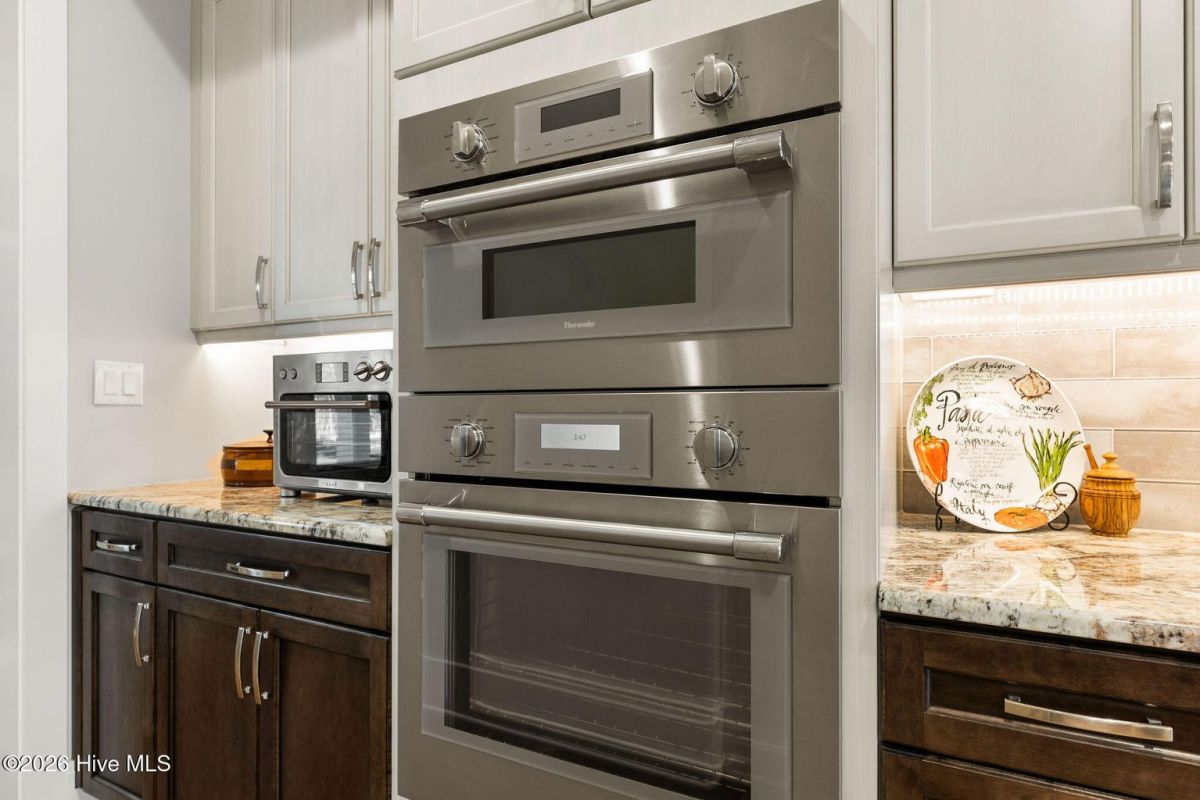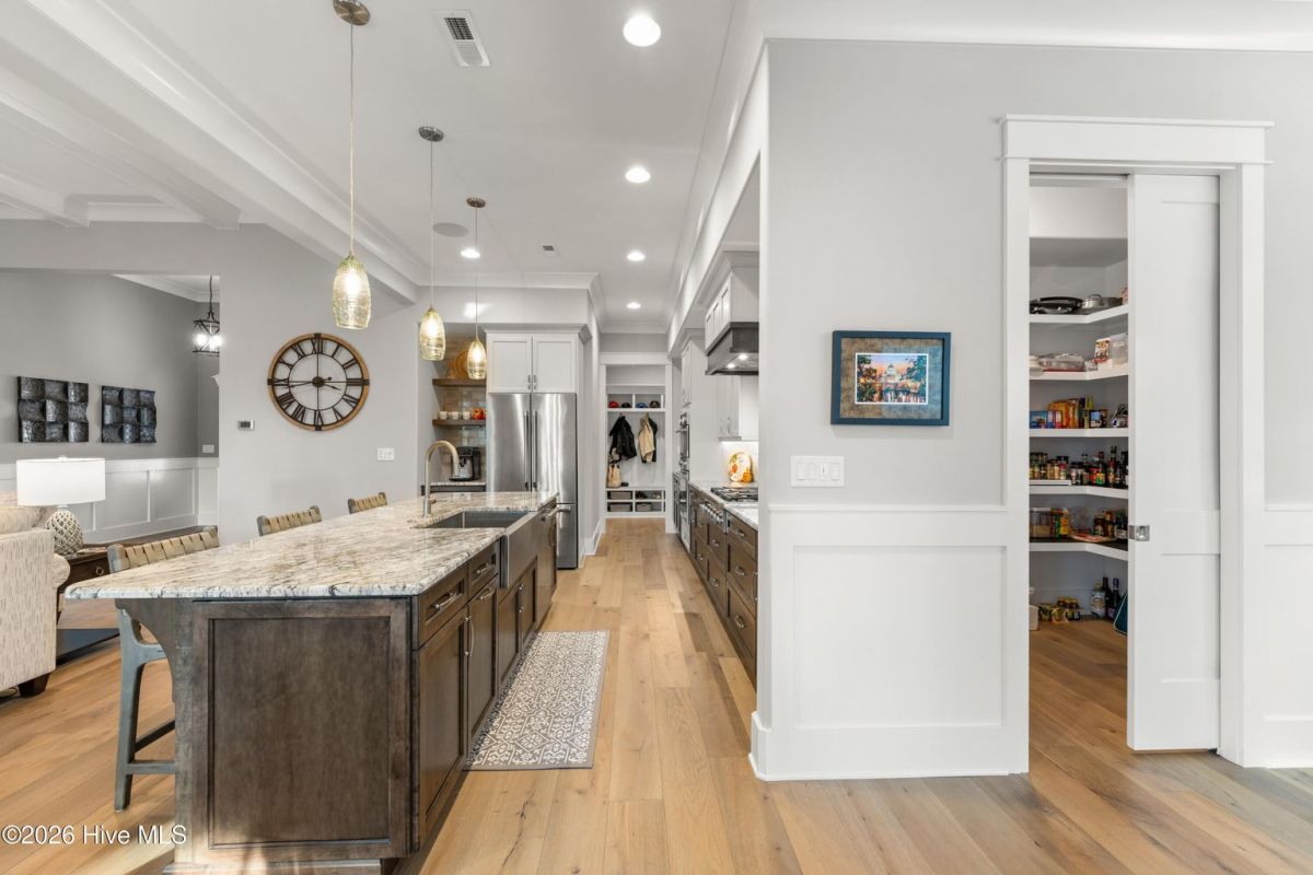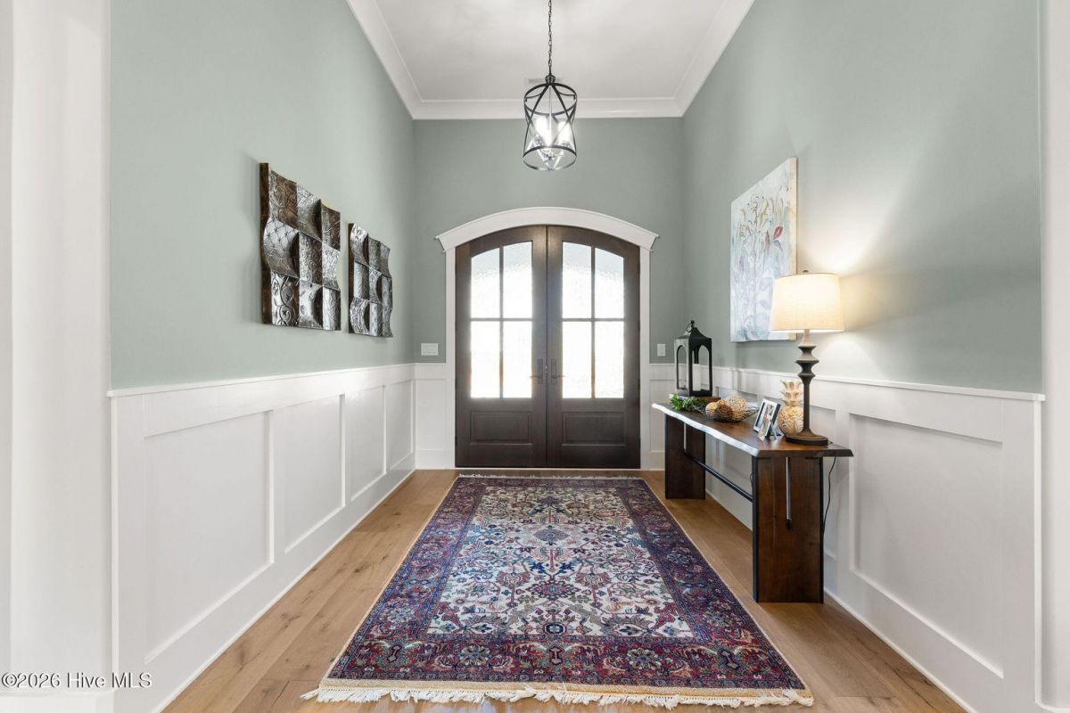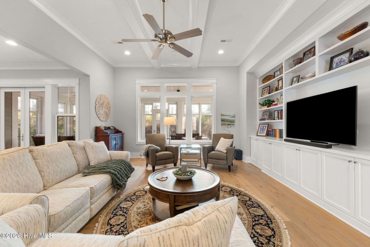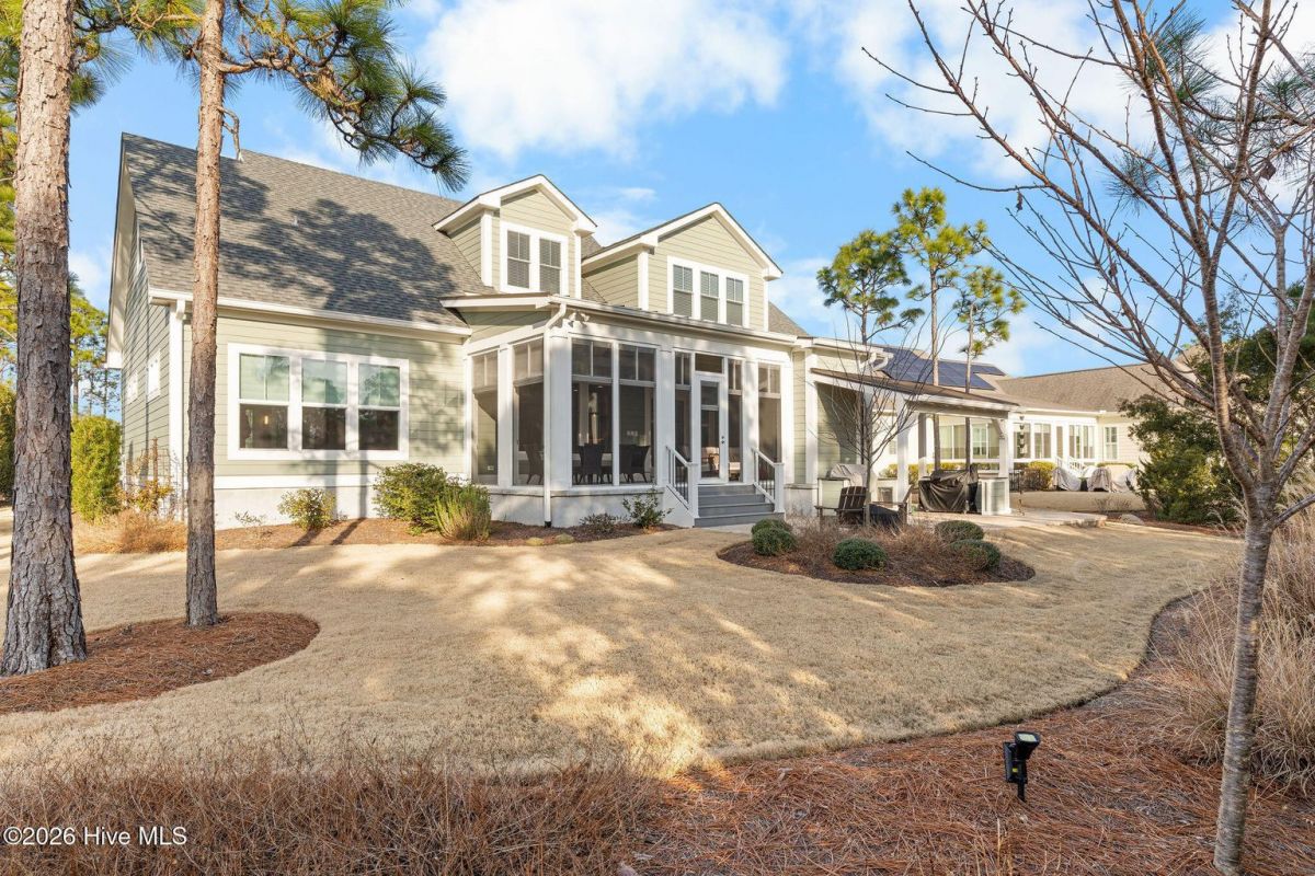 Designed by renowned builder George Crane and completed in 2023, this refined coastal residence offers a rare blend of craftsmanship, comfort, and timeless sophistication. Perfectly positioned on a tranquil pond-view lot backing to protected nature, the home enjoys exceptional privacy, peaceful water views, and a serene outdoor setting ideal for both entertaining and everyday living. French oak flooring flows throughout the main living spaces and is beautifully complemented by Pella windows, motorized blinds, and a striking mahogany front door. Thoughtfully designed California Closets elevate storage well beyond expectations, while dual-zone HVAC and a whole-home Port City sound system provide effortless modern comfort. The gracious formal dining room is designed for entertaining and features dual built-in wine and beverage refrigerators, while the chef's kitchen is anchored by premium Thermador appliances, abundant prep space, and generous storage—perfect for both casual living and elevated gatherings. A beautifully crafted solid-wood walk-in pantry, functional drop zone, and a dedicated Christmas tree closet with additional laundry storage add uncommon and highly practical luxury. The primary suite is a true retreat, offering a spacious bedroom, an impressive walk-in closet, and a spa-inspired bath with a walk-in shower and heated towel rack. A private first-floor office, enclosed by a sleek glass pocket door, provides a quiet and stylish workspace. A separate downstairs guest suite is ideal for visitors or multigenerational living and includes its private bathroom. Outdoor living is exceptional, with serene pond and nature views enjoyed from the extended EZ Breeze porch featuring epoxy flooring, fireplace, and an outdoor covered kitchen with a grill and extended paver. Professionally designed exterior lighting and gutter guards enhance both ambiance and ease of ownership. The rare 2½-car garage has been extended by two feet, offering exceptional storage and flexibility, and includes epoxy flooring, a separate exterior garage entrance, and an EV charging outlet. Upstairs, an additional private bedroom and full bath are complemented by a spacious media room with surround sound and abundant storage. An expansive attic provides outstanding future potential and may be converted into a fourth bedroom or a dedicated golf simulator, with additional attic storage accessed through a bedroom closet. Located in The Reserve at St. James Plantation, Ellington Place offers quick access to the Seaside gate and is surrounded by expansive greenspace, tranquil ponds, and preserved nature. Just minutes from the beach and a short stroll to the covered bridge, amphitheater, and lake in The Woodlands, the setting blends serenity with everyday convenience. Residents enjoy four security gates, a private oceanfront beach club with pool, a 475-slip marina with dining and Tiki bar, and the opportunity to join private clubs offering 81 holes of championship golf, multiple pools, dining venues, fitness centers, Har-Tru tennis, pickleball, and croquet. Discover why St. James has been the #1 coastal community in the Carolinas for over 20 years.