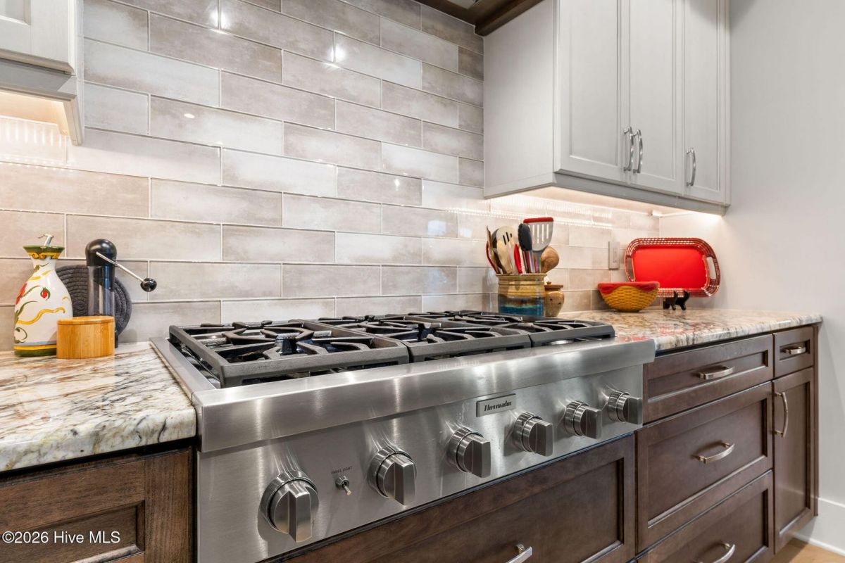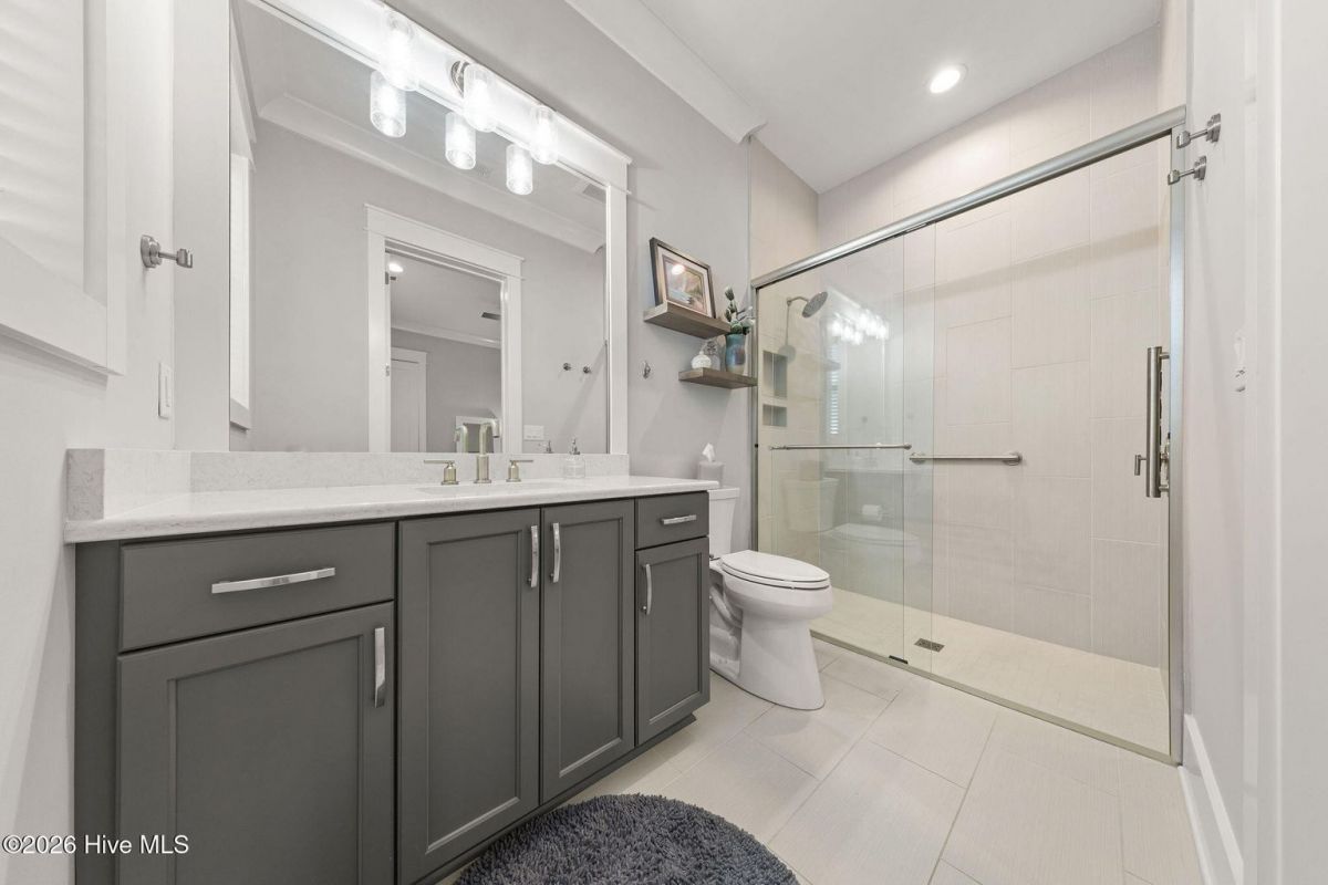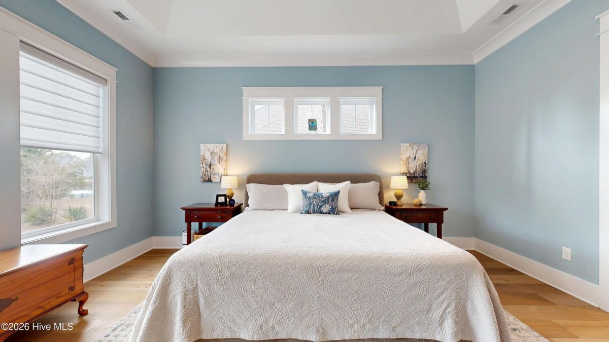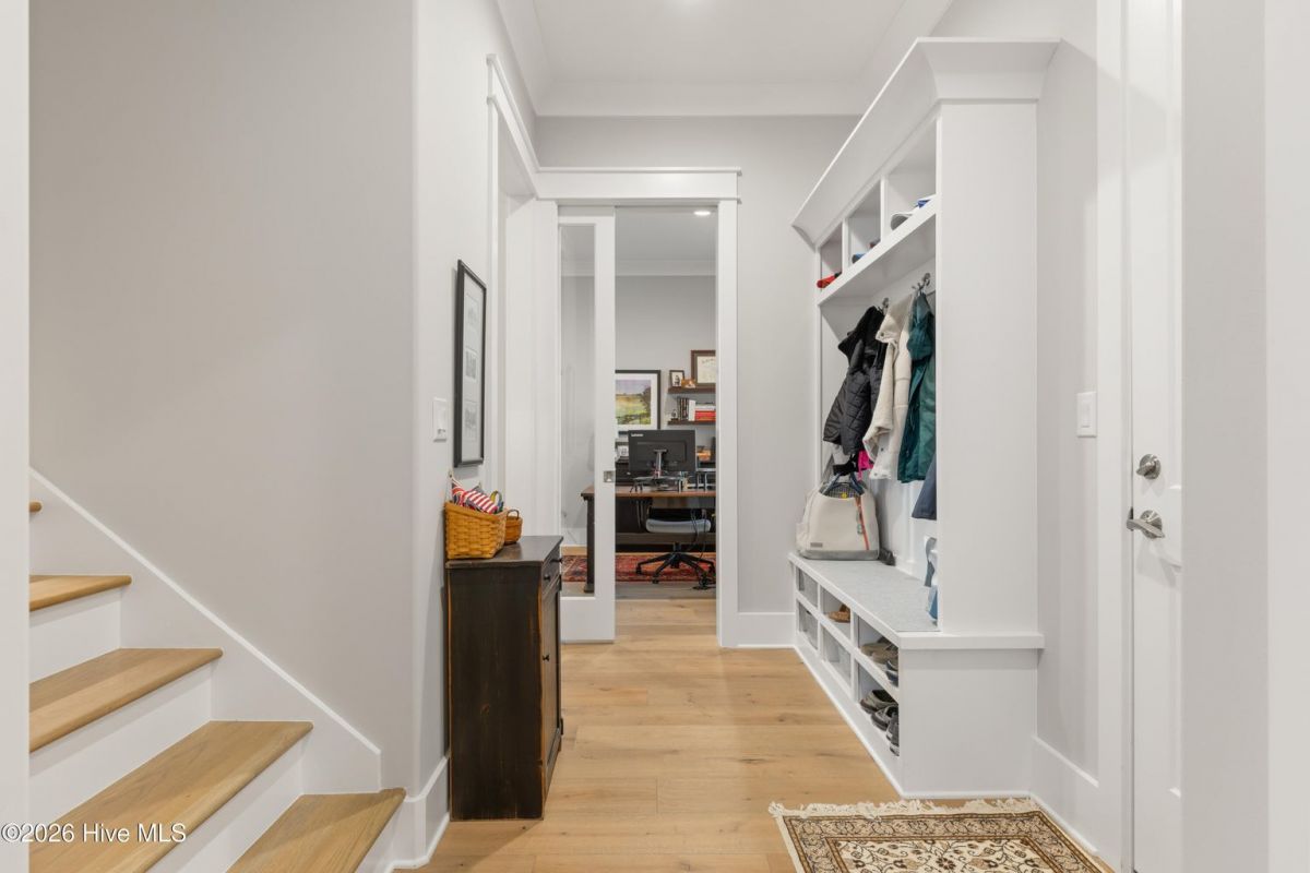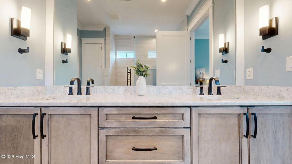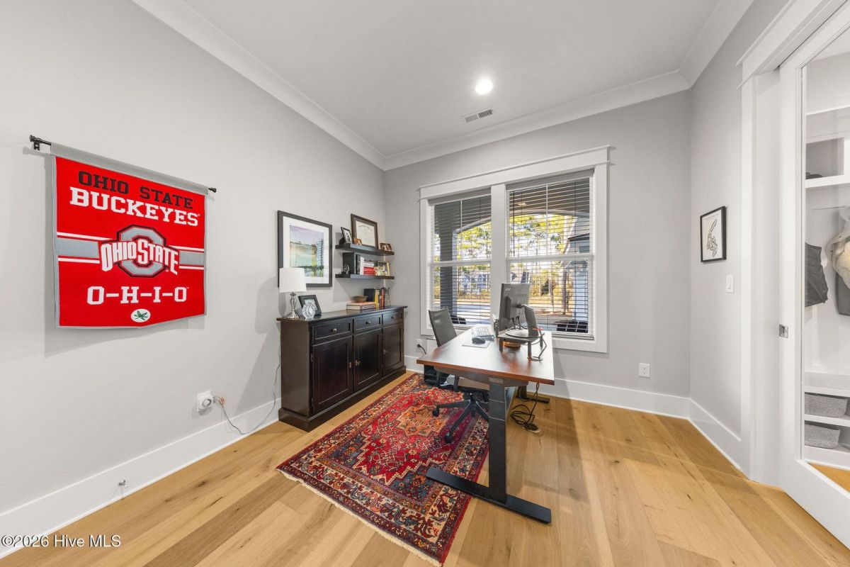 Designed by renowned builder George Crane and completed in 2023, this refined coastal residence offers a rare blend of craftsmanship, comfort, and timeless sophistication. Perfectly positioned on a tranquil pond-view lot backing to protected nature, the home enjoys exceptional privacy, peaceful water views, and a serene outdoor setting ideal for both entertaining and everyday living. French oak flooring flows throughout the main living spaces and is beautifully complemented by Pella windows, motorized blinds, and a striking mahogany front door. Thoughtfully designed California Closets elevate storage well beyond expectations, while dual-zone HVAC and a whole-home Port City sound system provide effortless modern comfort. The gracious formal dining room is designed for entertaining and features dual built-in wine and beverage refrigerators, while the chef's kitchen is anchored by premium Thermador appliances, abundant prep space, and generous storage—perfect for both casual living and elevated gatherings. A beautifully crafted solid-wood walk-in pantry, functional drop zone, and a dedicated Christmas tree closet with additional laundry storage add uncommon and highly practical luxury. The primary suite is a true retreat, offering a spacious bedroom, an impressive walk-in closet, and a spa-inspired bath with a walk-in shower and heated towel rack. A private first-floor office, enclosed by a sleek glass pocket door, provides a quiet and stylish workspace. A separate downstairs guest suite is ideal for visitors or multigenerational living and includes its private bathroom. Outdoor living is exceptional, with serene pond and nature views enjoyed from the extended EZ Breeze porch featuring epoxy flooring, fireplace, and an outdoor covered kitchen with a grill and extended paver. Professionally designed exterior lighting and gutter guards enhance both ambiance and ease of ownership. The rare 2½-car garage has been extended by two feet, offering exceptional storage and flexibility, and includes epoxy flooring, a separate exterior garage entrance, and an EV charging outlet. Upstairs, an additional private bedroom and full bath are complemented by a spacious media room with surround sound and abundant storage. An expansive attic provides outstanding future potential and may be converted into a fourth bedroom or a dedicated golf simulator, with additional attic storage accessed through a bedroom closet. Located in The Reserve at St. James Plantation, Ellington Place offers quick access to the Seaside gate and is surrounded by expansive greenspace, tranquil ponds, and preserved nature. Just minutes from the beach and a short stroll to the covered bridge, amphitheater, and lake in The Woodlands, the setting blends serenity with everyday convenience. Residents enjoy four security gates, a private oceanfront beach club with pool, a 475-slip marina with dining and Tiki bar, and the opportunity to join private clubs offering 81 holes of championship golf, multiple pools, dining venues, fitness centers, Har-Tru tennis, pickleball, and croquet. Discover why St. James has been the #1 coastal community in the Carolinas for over 20 years.