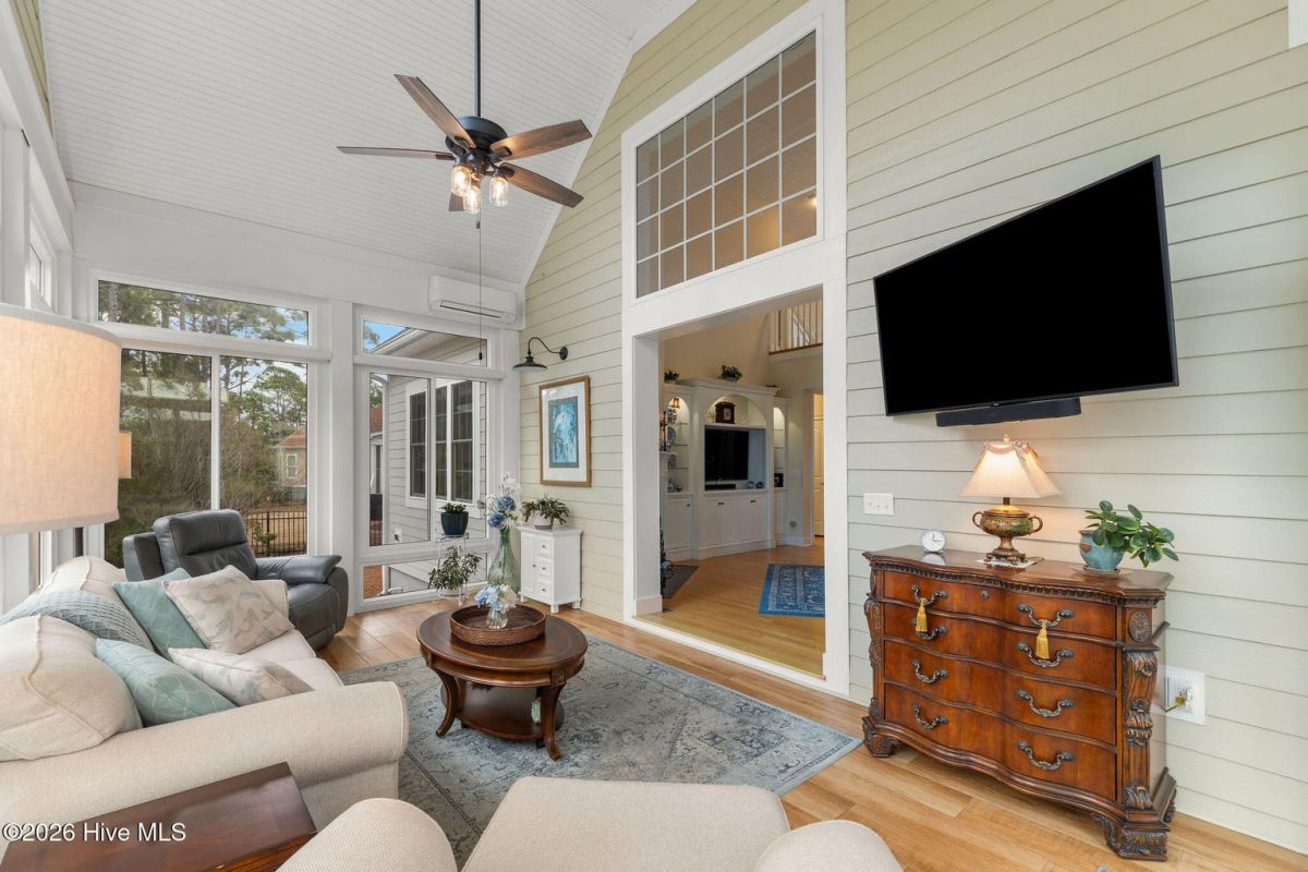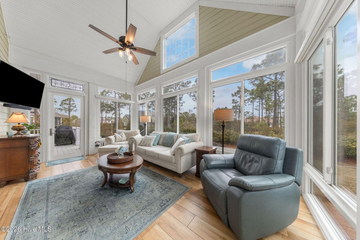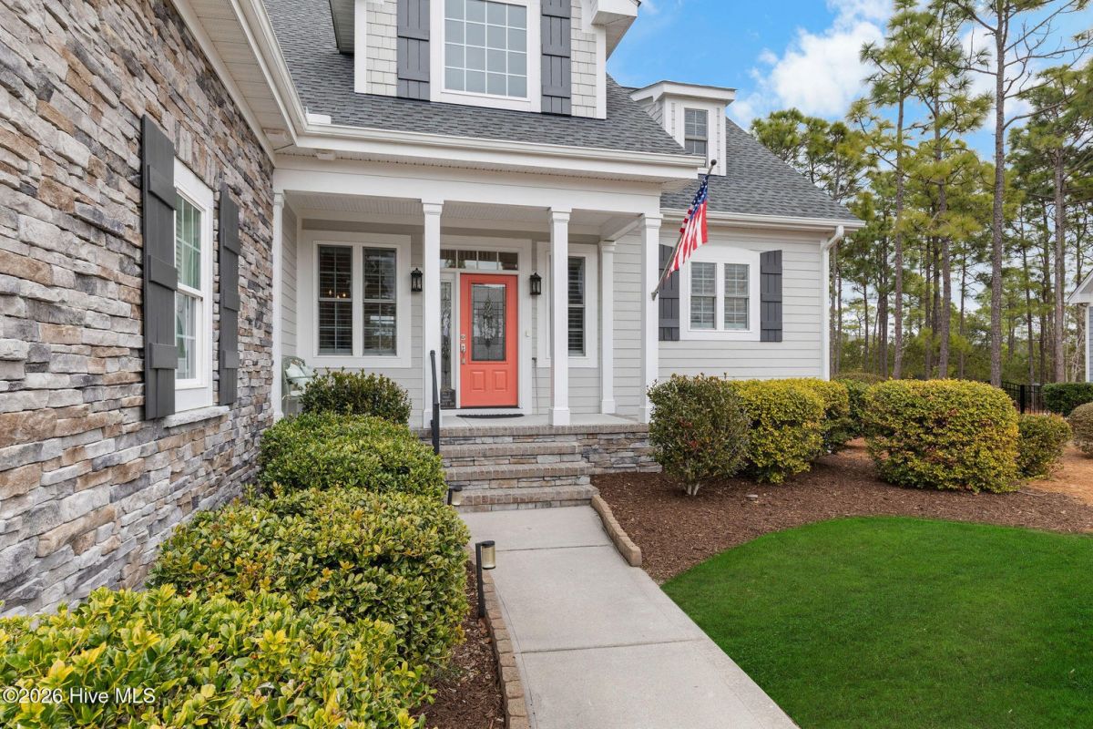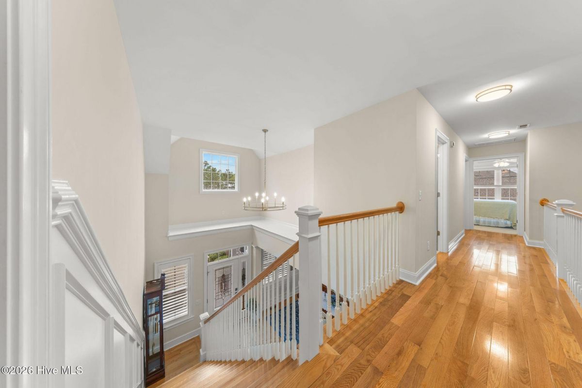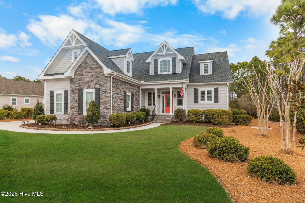 This custom built 4 bedroom, 3-and-1/2-bathroom home in The Reserve of St. James Plantation has been thoughtfully upgraded with stylish, high-end updates that elevate an already exceptional floor plan. With 3,100 square feet, stacked stone accents, and a side-load garage, the curb appeal is fresh and attractive but the quality updating inside is what truly sets this home apart. An inviting front porch leads into the dramatic two-story foyer, where hardwood flooring, custom wainscoting, and an elegant chandelier set the tone for this stunning interior. The formal dining room perfect for large family/friend gatherings is framed by detailed millwork and classic architectural lines. The great room is open and centrally located to the kitchen, dining, and sunroom. This special space features soaring ceilings, a gas fireplace, and custom built-ins cabinetry. The well designed, newly renovated kitchen boasts quartz counters, quality wood box soft close dovetailed cabinetry, and spacious center island, complemented by a stylish backsplash and upgraded gold hardware throughout. Updated lighting adds warmth and dimension, giving this entire space an uplifted, designer feel. Stainless appliances, a custom hood, generous breakfast nook, large pantry, and island seating make this kitchen both functional and visually striking. Enjoy the private backyard from the amazing heated and cooled sunroom. The back of this home is privately situated overlooking a St James POA piece of property which means there will not be a home built directly behind the backyard. The sunroom showcases a cathedral ceiling with beadboard detail, tiled floor, expansive windows, and views of the private backyard. With direct access to the covered and open deck areas, this space is ideal for enjoying the quiet natural setting behind the home. The bottom level owner's suite is an impressive size at 14X22 ft. and is complemented by crown molding and has two walk-in closets. The primary bath has been completely refreshed, featuring a new quartz-topped vanity and a beautifully retiled walk-in shower that delivers a clean, modern aesthetic. Take the updated wooden stairs to a wood floored catwalk overlooking the foyer and great room below which leads to two guest bedrooms. For privacy, these bedrooms are on opposite ends and are serviced by a nicely appointed guest bathroom where the vanity is separate from the toilet and shower room. The upstairs bonus/flex area has undergone a significant transformation changing this space into a suite area much like an "in-law suite" perfect for multigenerational living. As you enter there is a 14X14 ft. flex area which a new en-suite full bathroom has been added with a gorgeous walk-in shower. A custom bump-out has also been added, creating a dedicated office or flex workspace within the bonus suite, making it ideal again for guests or extended stays. Take a few steps down into the oversized bonus room which now gives you all the space you could possibly desire. Additional improvements include numerous updated light fixtures throughout the home, further enhancing its polished, move-in-ready appeal. There is no lack of storage with 2 walk-in attic spaces and the side load garage. Located near the Seaside entrance, Woodlands Park trails and amphitheater, and Seaside amenity center, this refreshed Reserve home offers a rare opportunity to own a renovated, thoughtfully upgraded property in one of St. James Plantation's most desirable neighborhoods.