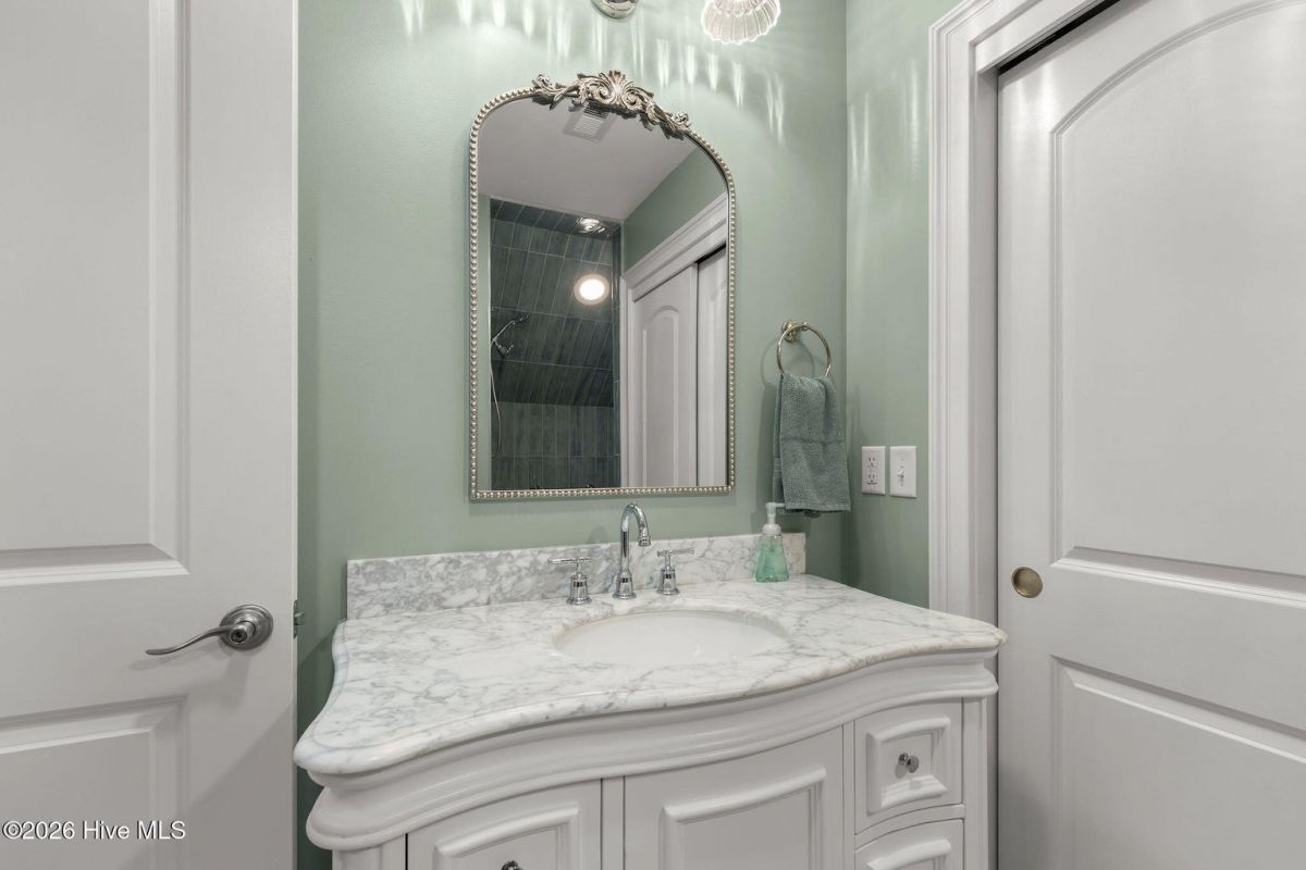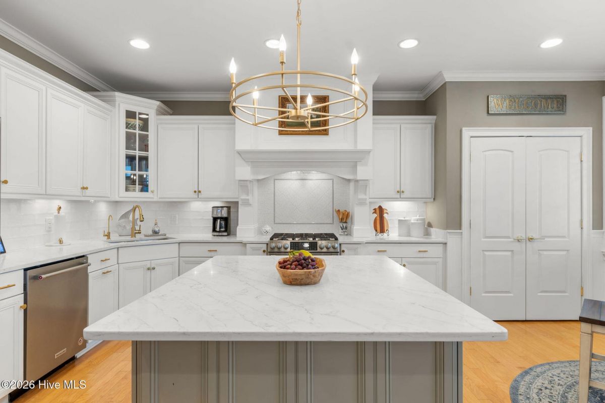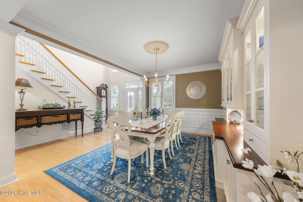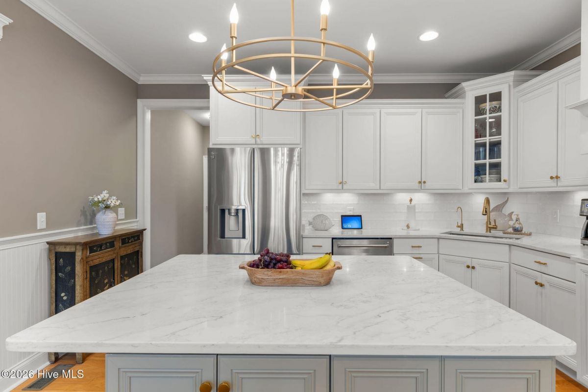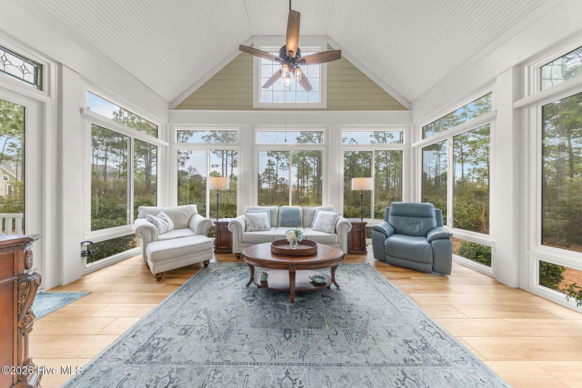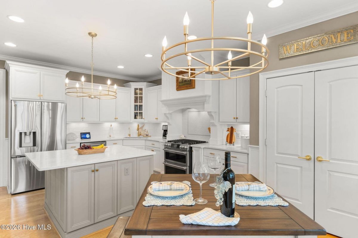 This custom built 4 bedroom, 3-and-1/2-bathroom home in The Reserve of St. James Plantation has been thoughtfully upgraded with stylish, high-end updates that elevate an already exceptional floor plan. With 3,100 square feet, stacked stone accents, and a side-load garage, the curb appeal is fresh and attractive but the quality updating inside is what truly sets this home apart. An inviting front porch leads into the dramatic two-story foyer, where hardwood flooring, custom wainscoting, and an elegant chandelier set the tone for this stunning interior. The formal dining room perfect for large family/friend gatherings is framed by detailed millwork and classic architectural lines. The great room is open and centrally located to the kitchen, dining, and sunroom. This special space features soaring ceilings, a gas fireplace, and custom built-ins cabinetry. The well designed, newly renovated kitchen boasts quartz counters, quality wood box soft close dovetailed cabinetry, and spacious center island, complemented by a stylish backsplash and upgraded gold hardware throughout. Updated lighting adds warmth and dimension, giving this entire space an uplifted, designer feel. Stainless appliances, a custom hood, generous breakfast nook, large pantry, and island seating make this kitchen both functional and visually striking. Enjoy the private backyard from the amazing heated and cooled sunroom. The back of this home is privately situated overlooking a St James POA piece of property which means there will not be a home built directly behind the backyard. The sunroom showcases a cathedral ceiling with beadboard detail, tiled floor, expansive windows, and views of the private backyard. With direct access to the covered and open deck areas, this space is ideal for enjoying the quiet natural setting behind the home. The bottom level owner's suite is an impressive size at 14X22 ft. and is complemented by crown molding and has two walk-in closets. The primary bath has been completely refreshed, featuring a new quartz-topped vanity and a beautifully retiled walk-in shower that delivers a clean, modern aesthetic. Take the updated wooden stairs to a wood floored catwalk overlooking the foyer and great room below which leads to two guest bedrooms. For privacy, these bedrooms are on opposite ends and are serviced by a nicely appointed guest bathroom where the vanity is separate from the toilet and shower room. The upstairs bonus/flex area has undergone a significant transformation changing this space into a suite area much like an "in-law suite" perfect for multigenerational living. As you enter there is a 14X14 ft. flex area which a new en-suite full bathroom has been added with a gorgeous walk-in shower. A custom bump-out has also been added, creating a dedicated office or flex workspace within the bonus suite, making it ideal again for guests or extended stays. Take a few steps down into the oversized bonus room which now gives you all the space you could possibly desire. Additional improvements include numerous updated light fixtures throughout the home, further enhancing its polished, move-in-ready appeal. There is no lack of storage with 2 walk-in attic spaces and the side load garage. Located near the Seaside entrance, Woodlands Park trails and amphitheater, and Seaside amenity center, this refreshed Reserve home offers a rare opportunity to own a renovated, thoughtfully upgraded property in one of St. James Plantation's most desirable neighborhoods.